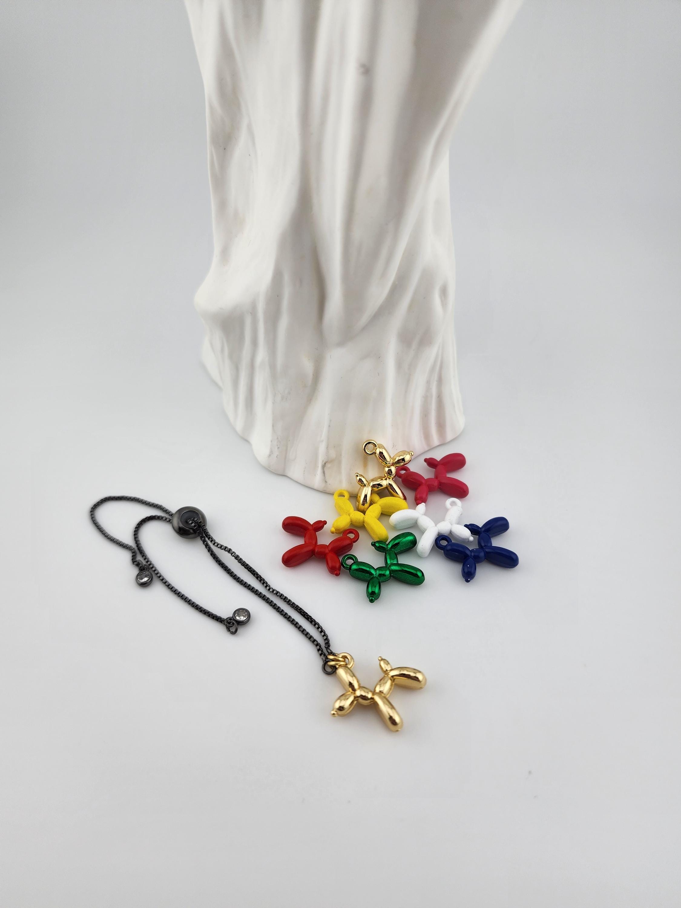 These are shiny black slider chain bracelets that have tiny round crystals at the ends. They have enamel metal balloon animal dog charms in 7 colors to choose from: #1- Metallic Gold #2- Red #3- White #4- Blue #5- Pink #6- Yellow #7- Metallic Green * Your purchase will arrive in pretty packaging