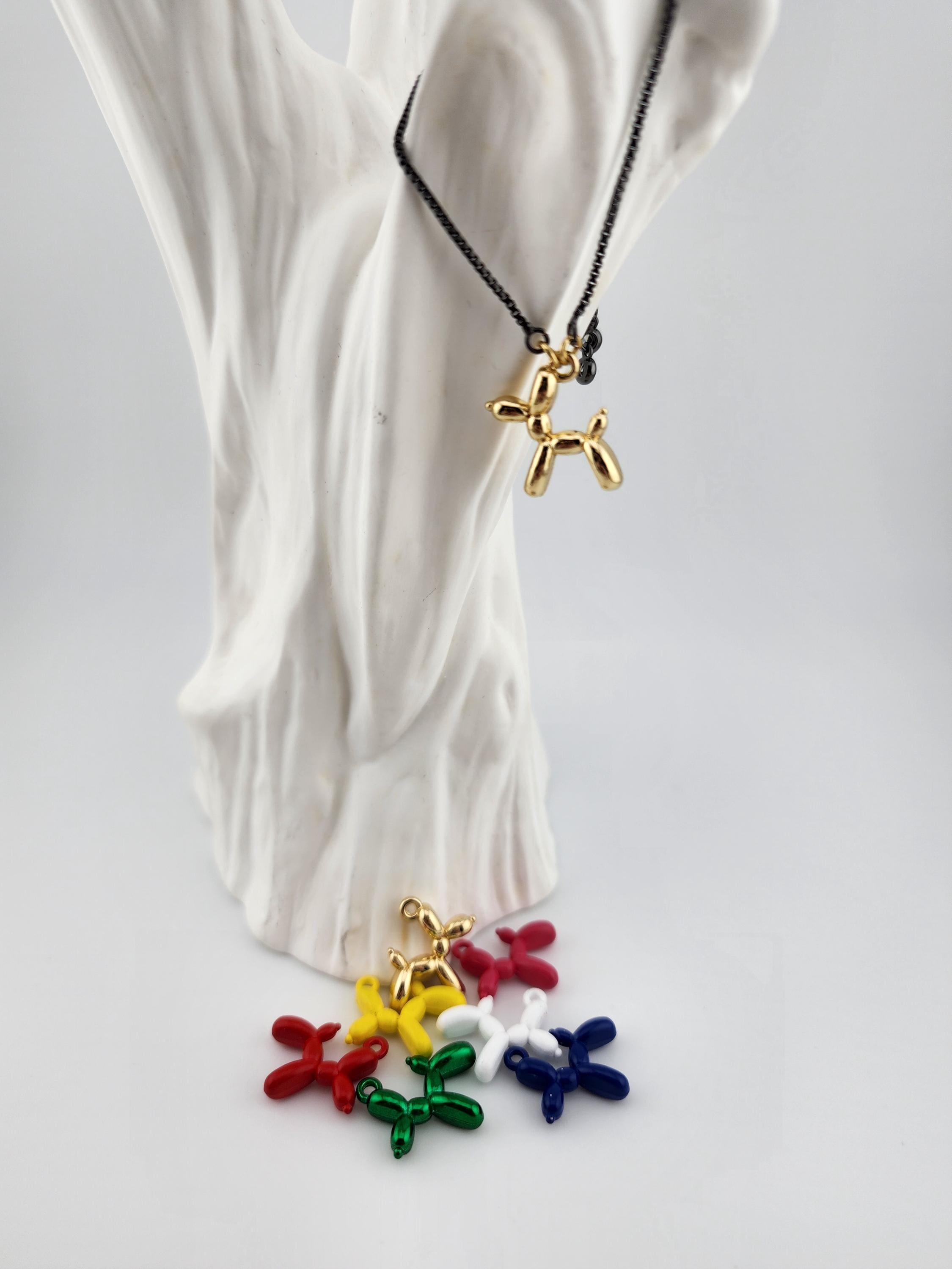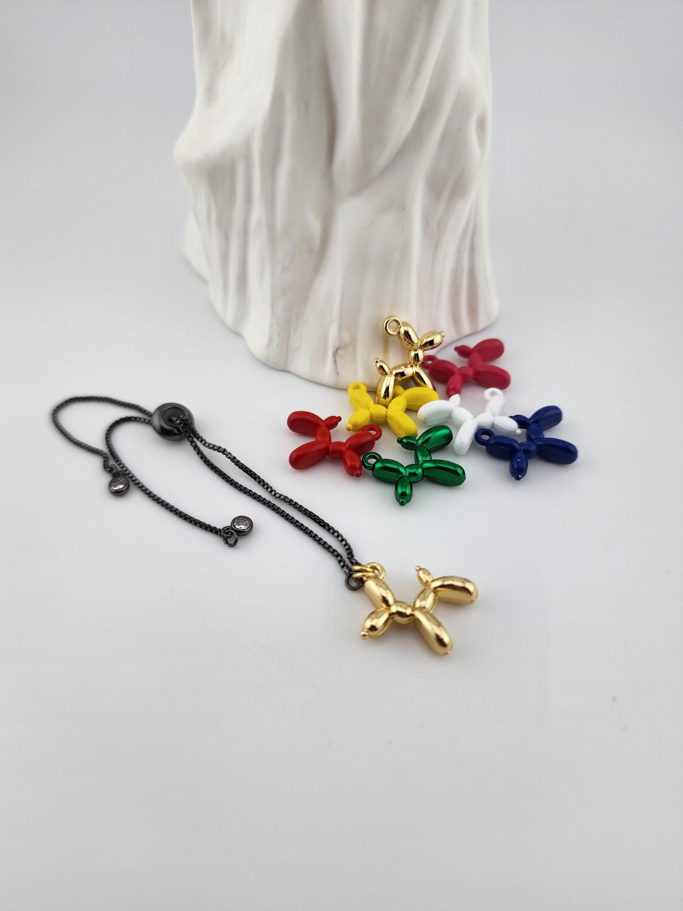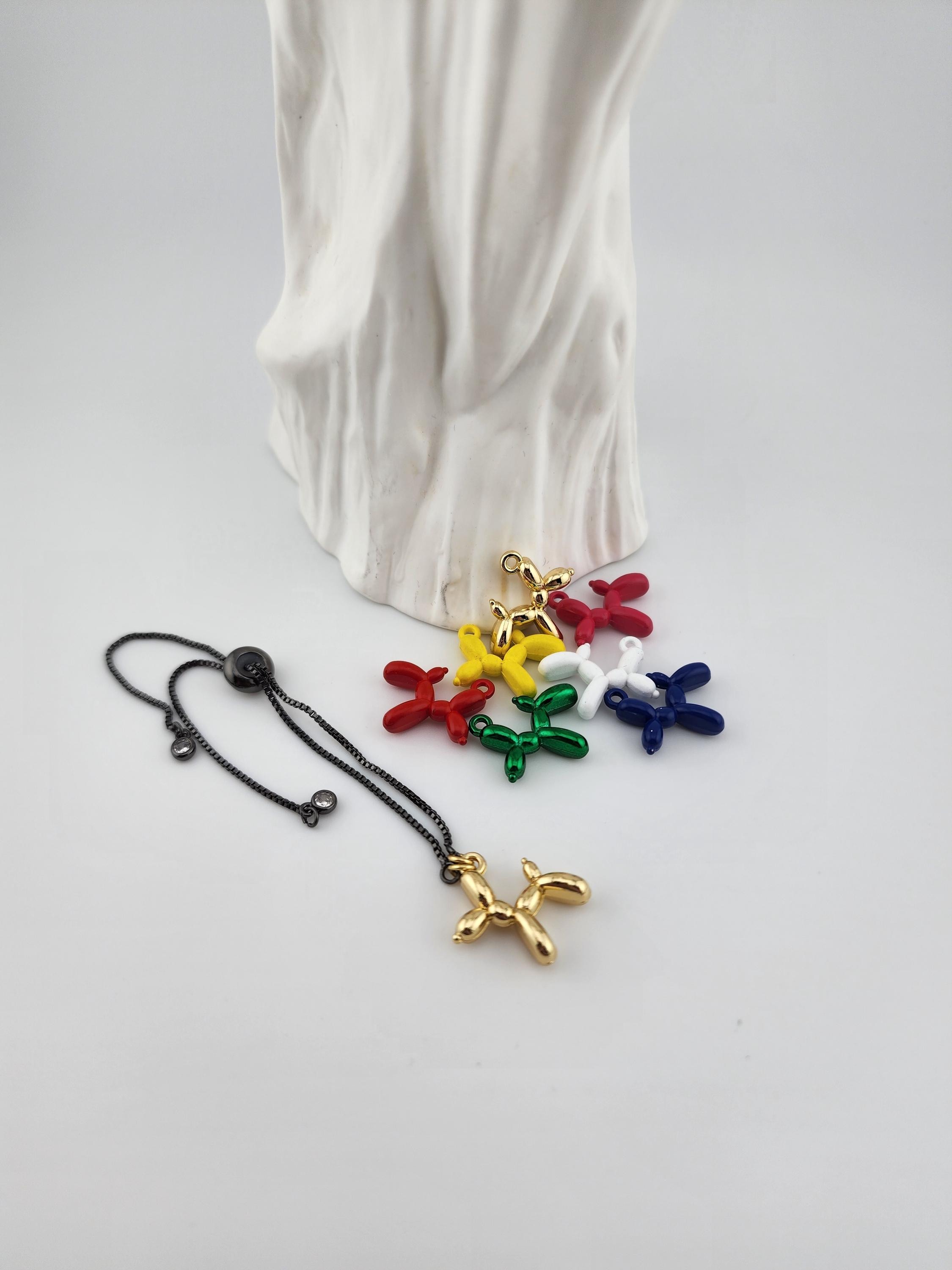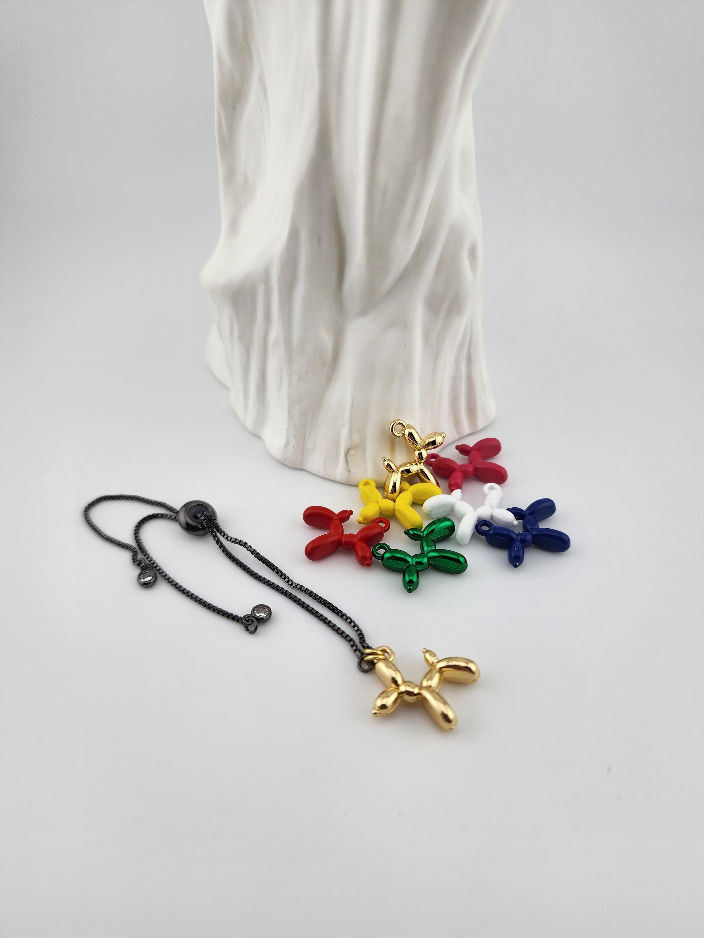 These are shiny black slider chain bracelets that have tiny round crystals at the ends. They have enamel metal balloon animal dog charms in 7 colors to choose from: #1- Metallic Gold #2- Red #3- White #4- Blue #5- Pink #6- Yellow #7- Metallic Green * Your purchase will arrive in pretty packaging * Shipping is free within the U.S.