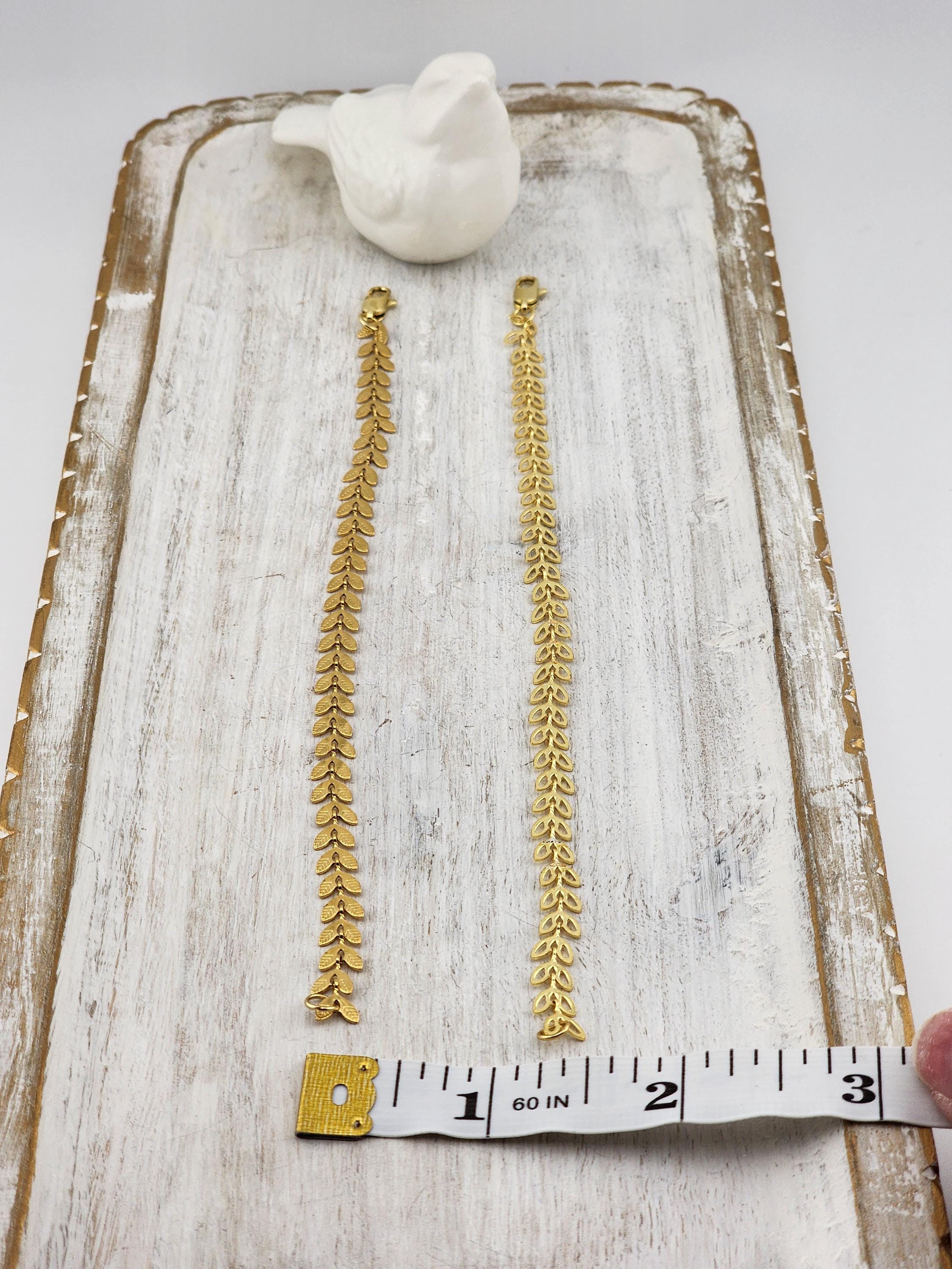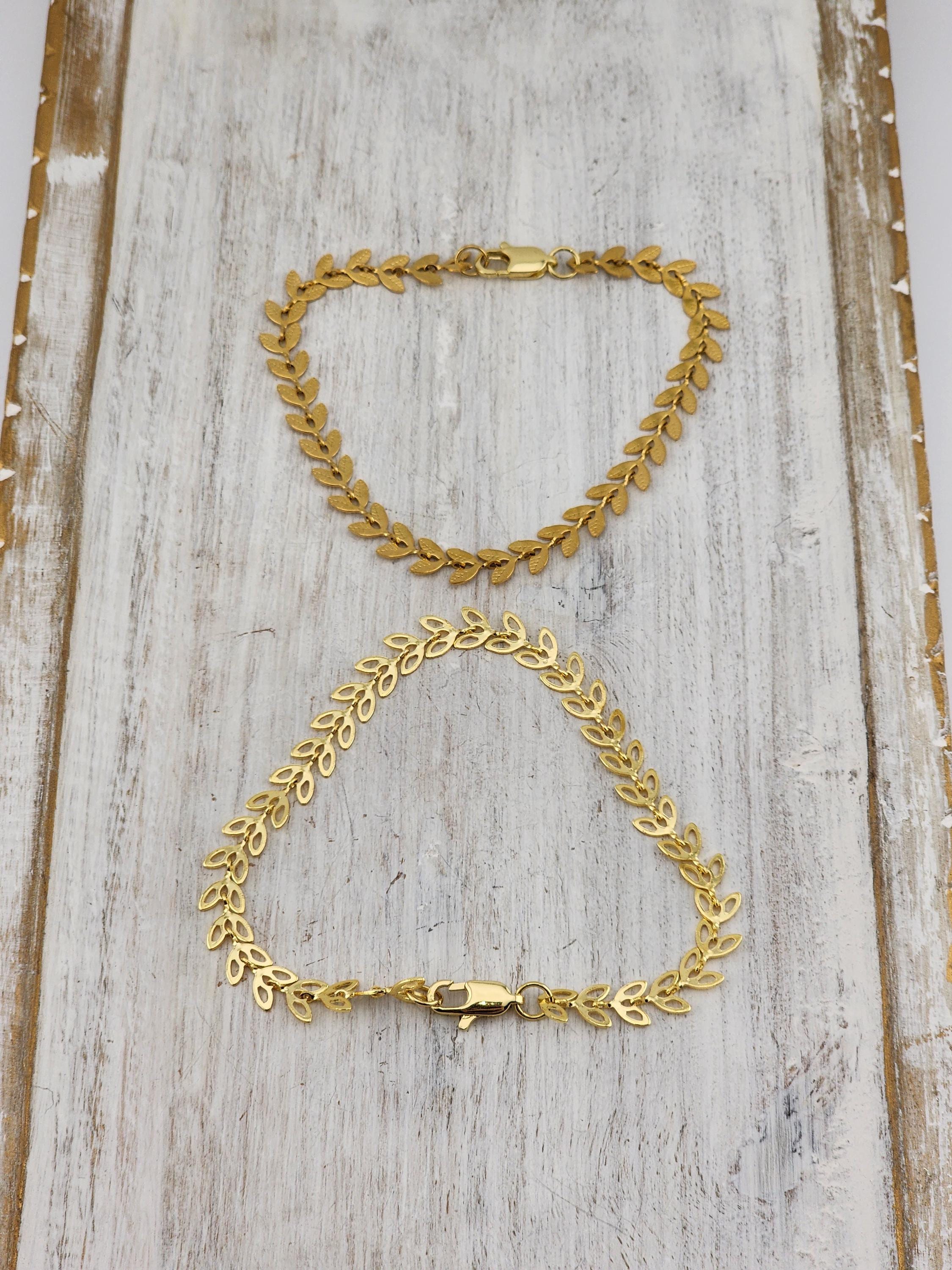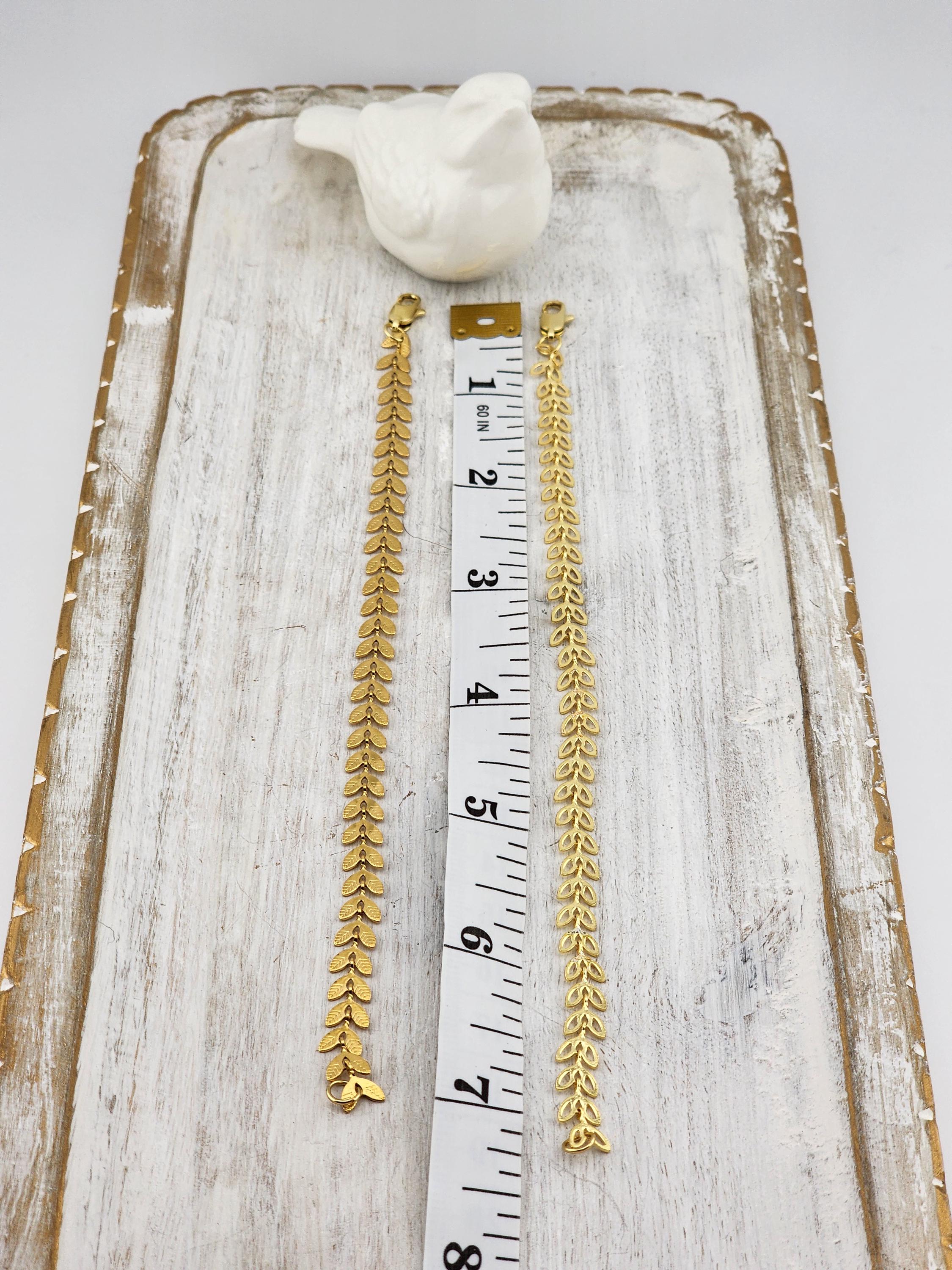 I made two different types of tarnish resistant 18k gold plated brass LEAF chain bracelets with 16k gold plated clasps and 24k gold plated connecting rings. Your choices of chain are: #1- Hollow Leaf #2- Solid Leaf * Your purchase will arrive in pretty packaging * Shipping is free within the U.S.