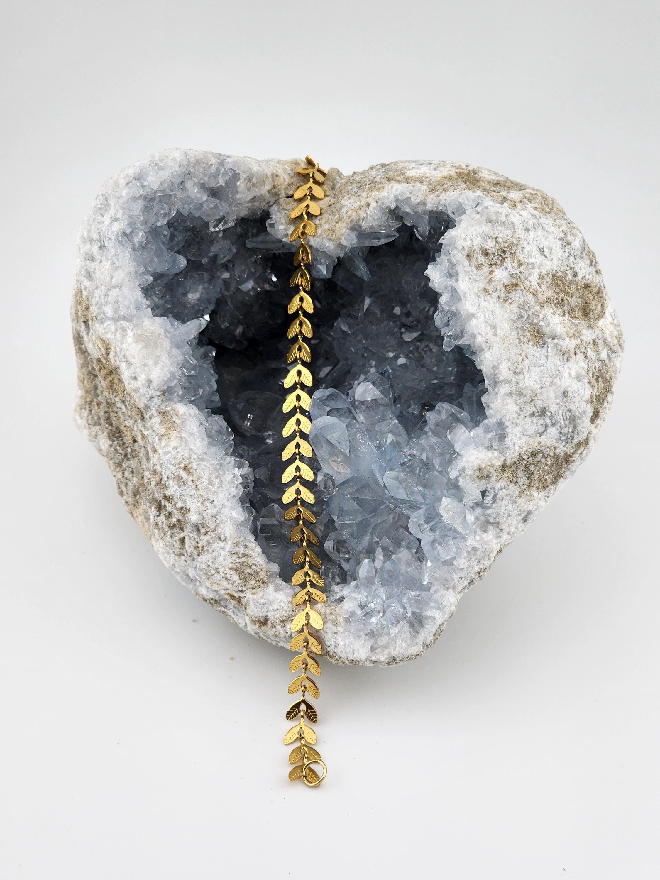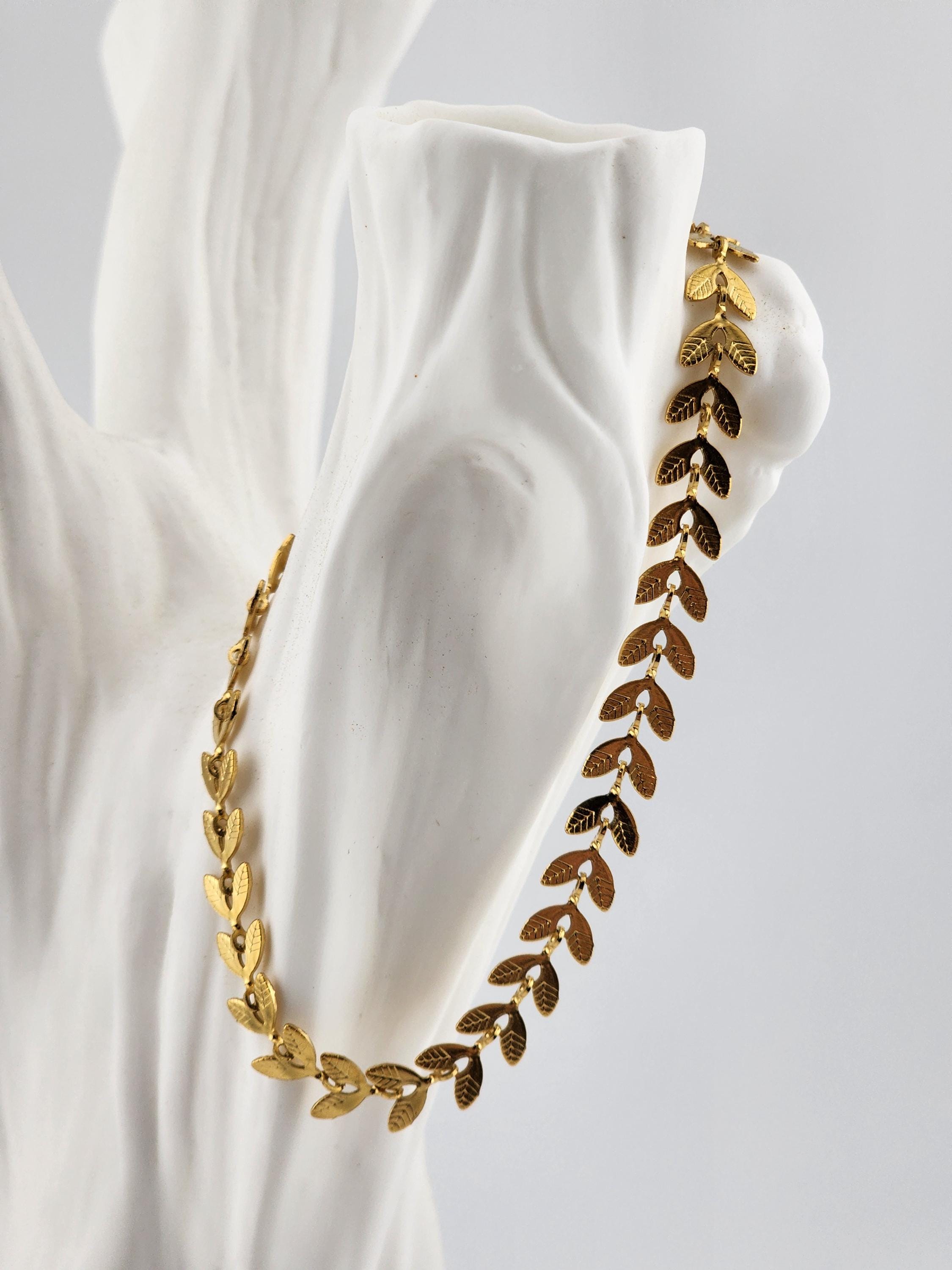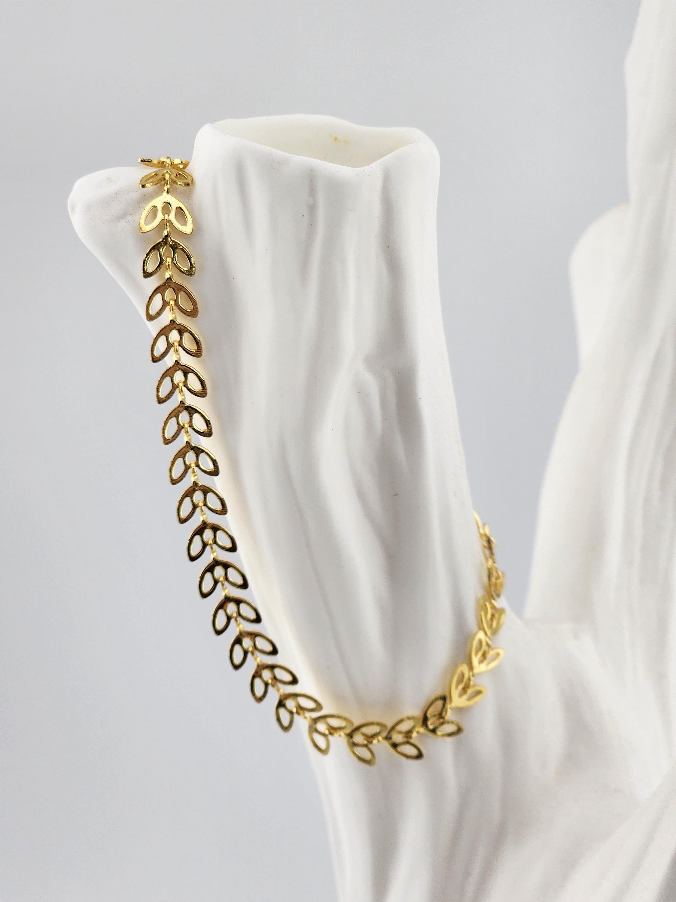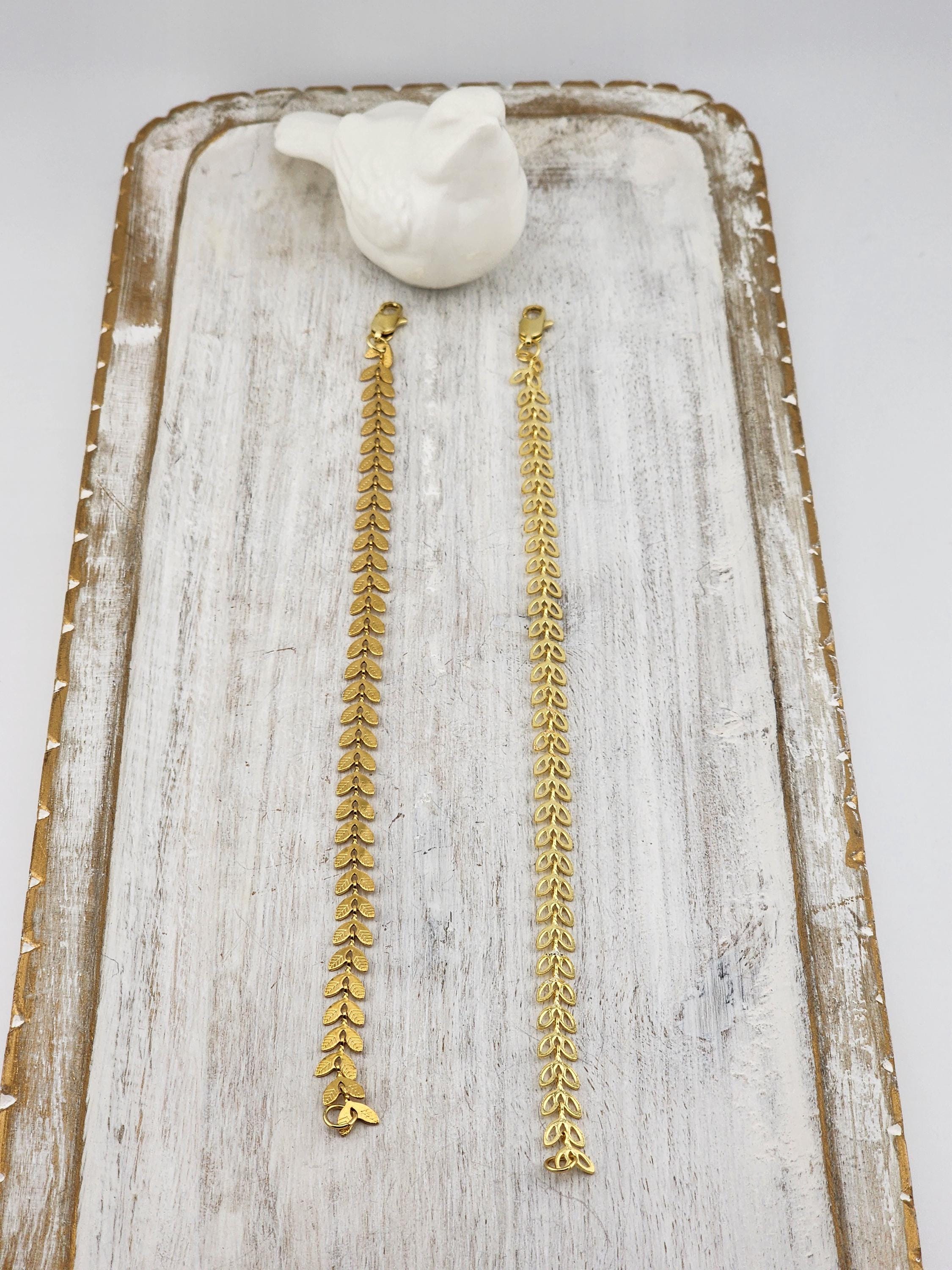 I made two different types of tarnish resistant 18k gold plated brass LEAF chain bracelets with 16k gold plated clasps and 24k gold plated connecting rings. Your choices of chain are: #1- Hollow Leaf #2- Solid Leaf * Your purchase will arrive in pretty packaging * Shipping is free within the U.S.
