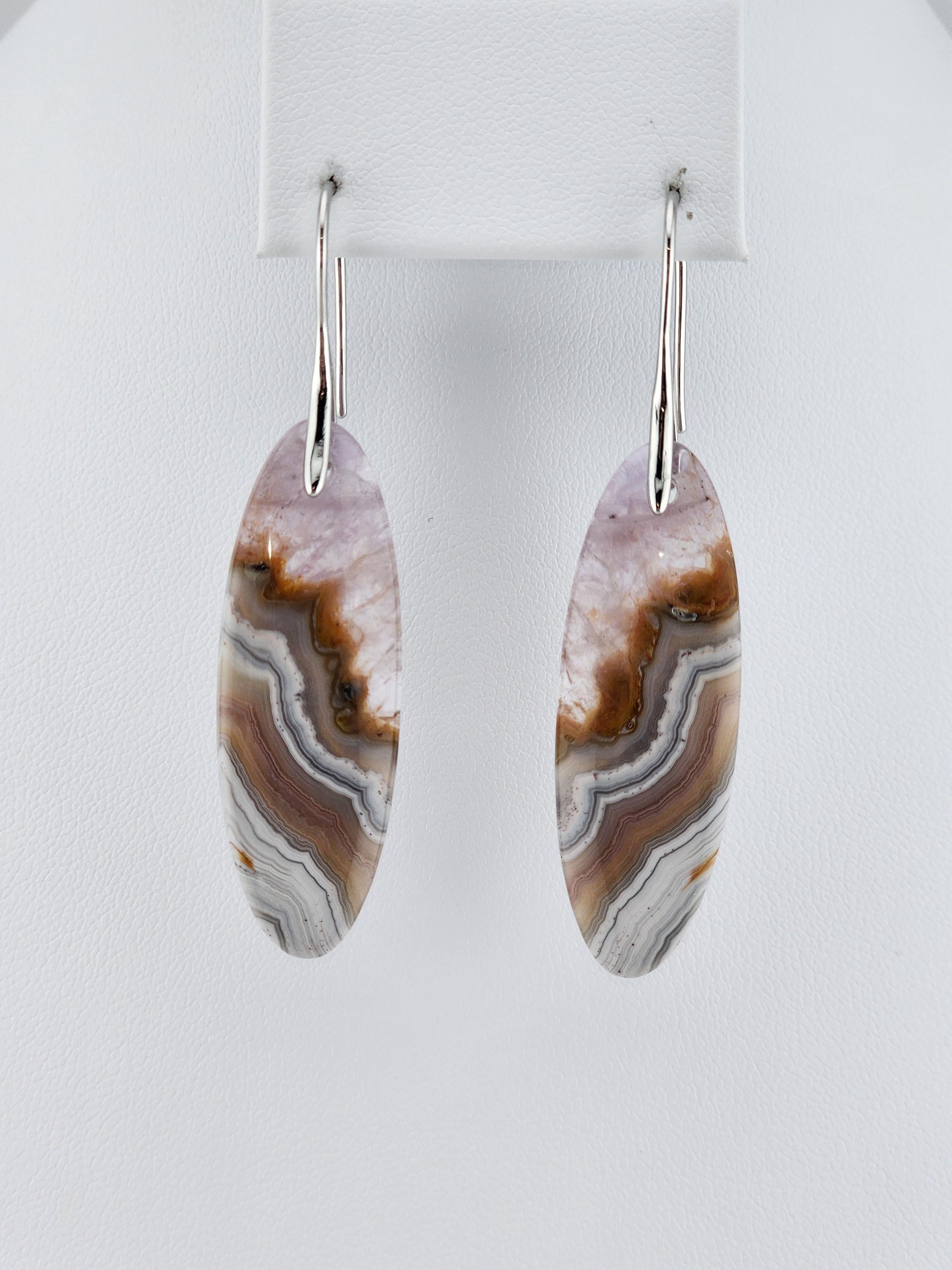 I made these earrings using platinum plated brass threader hooks. From them I added the most outstanding, rare collected matched pair of elongated teardrop, natural amethyst & laguna agate stones, grown together for this unique colorful pattern. * Your purchase will arrive in pretty packaging * Measuring approx 43mm x 18mm x 7mm