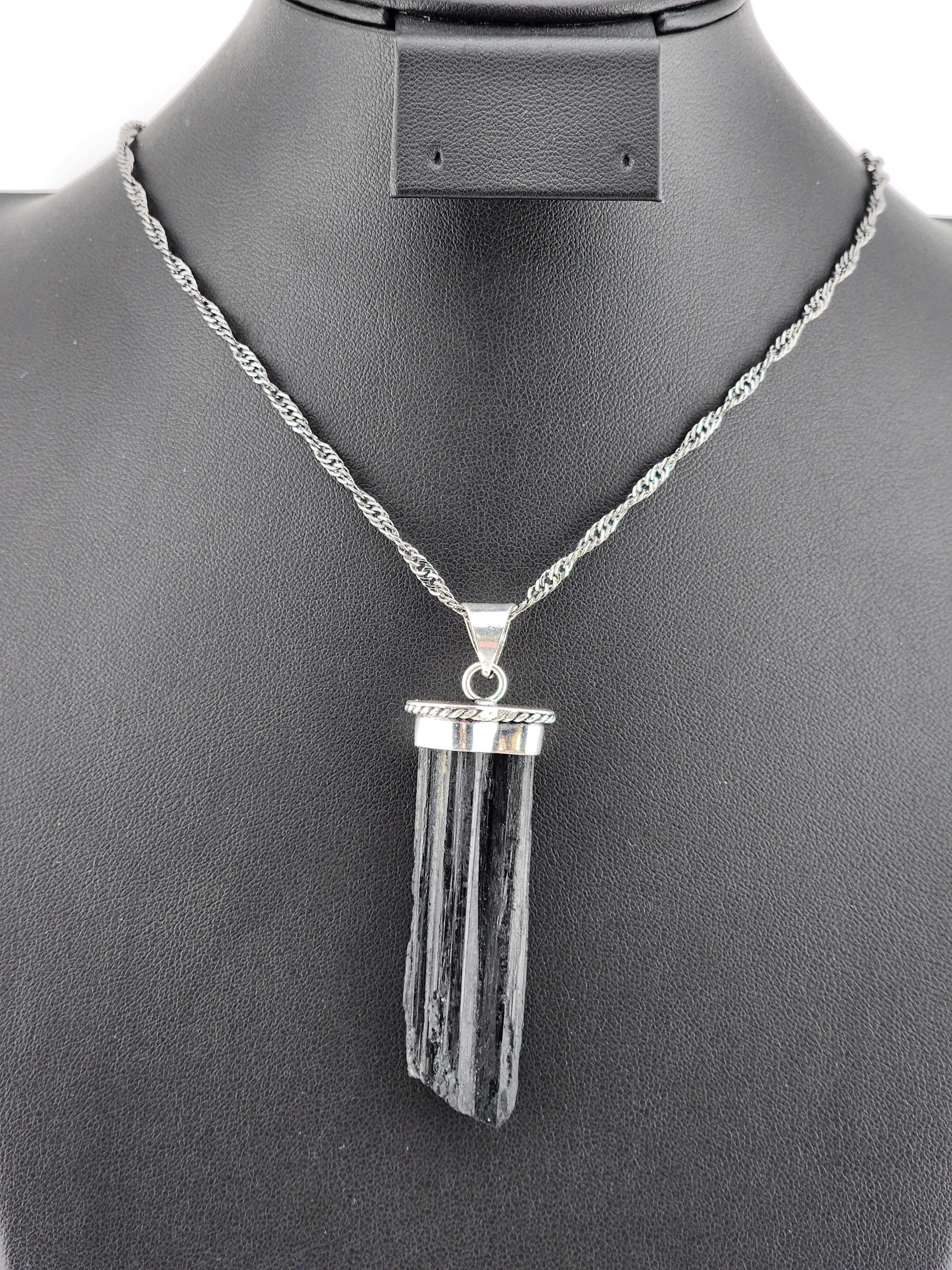 I made this boho style necklace using elegant, gorgeous twisted gunmetal plated chain. Then I added an incredible natural rough Black Tourmaline Stick Gemstone Pendant in a handcrafted (in India) sterling silver plated brass cap. * Your purchase will arrive in pretty packaging * Pendant Height : 1.5" to 2.5" (Inch) >>>>>>>>>>>>>>>>>>>>>>>>>>>>>>>>>>>>>>>>>>>>>>>>>>>>>>>>>>>>>>>>>>>>>>>>>>>> NOTE: Silver-plated jewelry comes originally from the 19th century and was created to provide what would be expensive items to the masses. It is again in high demand since last few years because of consistent increase in raw silver prices world-over. My jewelry is made with high quality silver plating procedures but all silver-plated jewelry tarnishes at some point, as the chemicals from daily wear and the exposed layer of silver may react with air to change the color of the item. Therefore, it is necessary to using specific silver cleaning products, only on the silver, not the stone.
