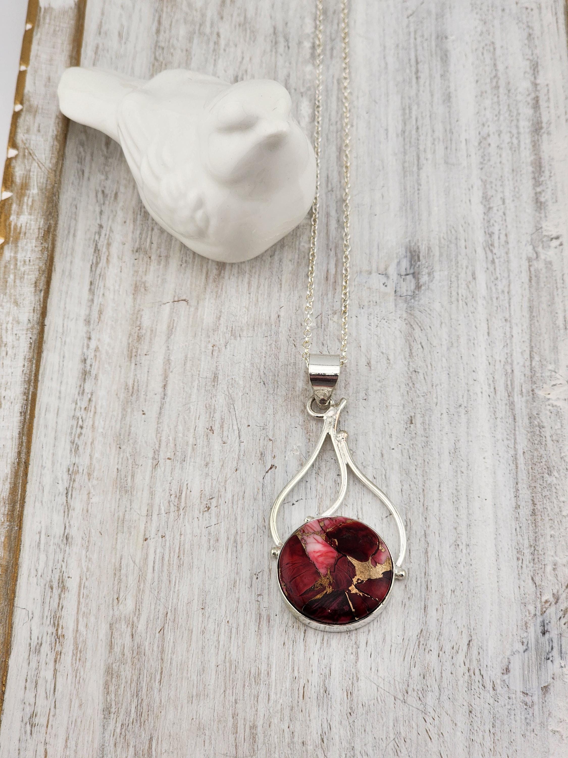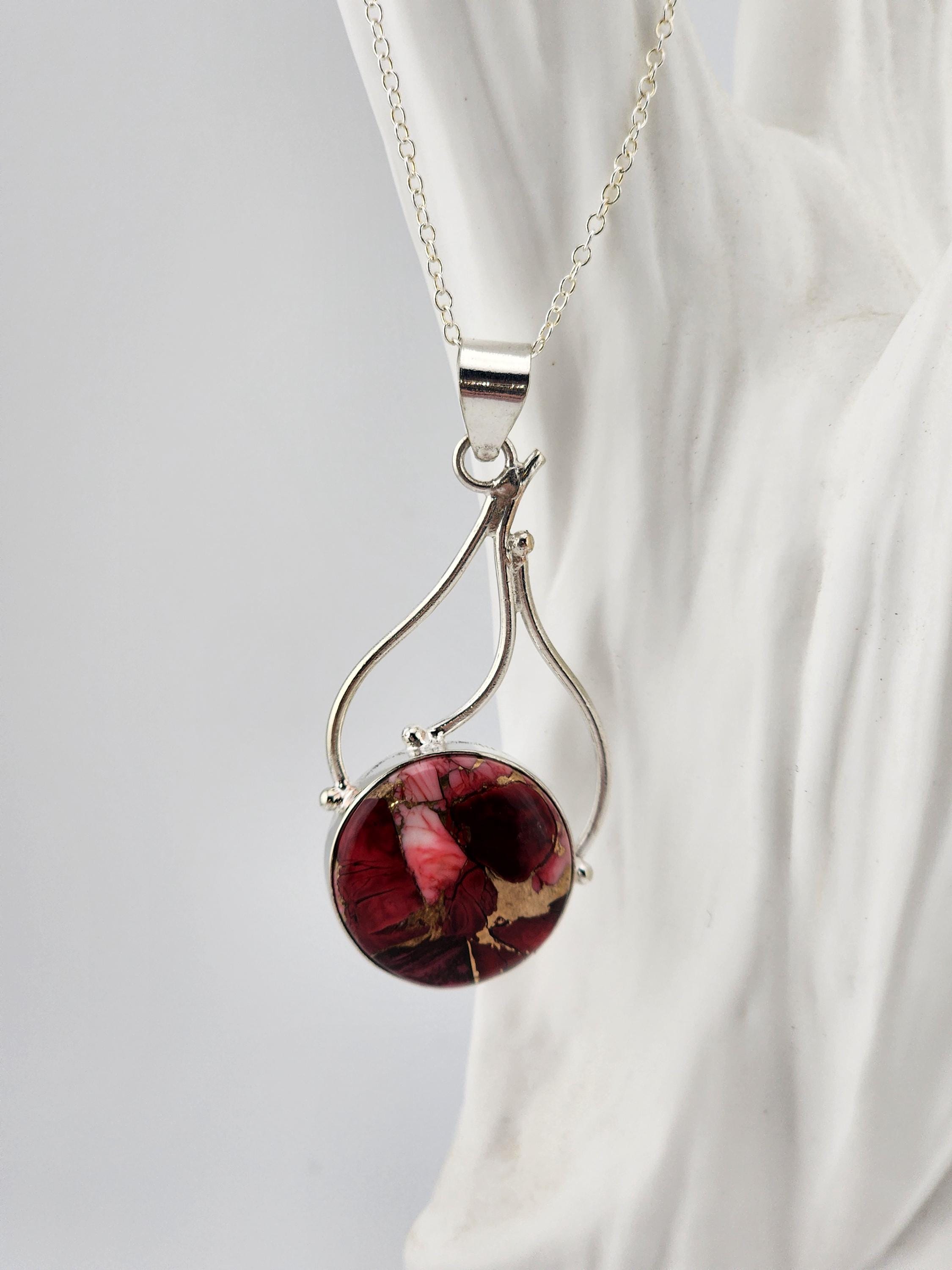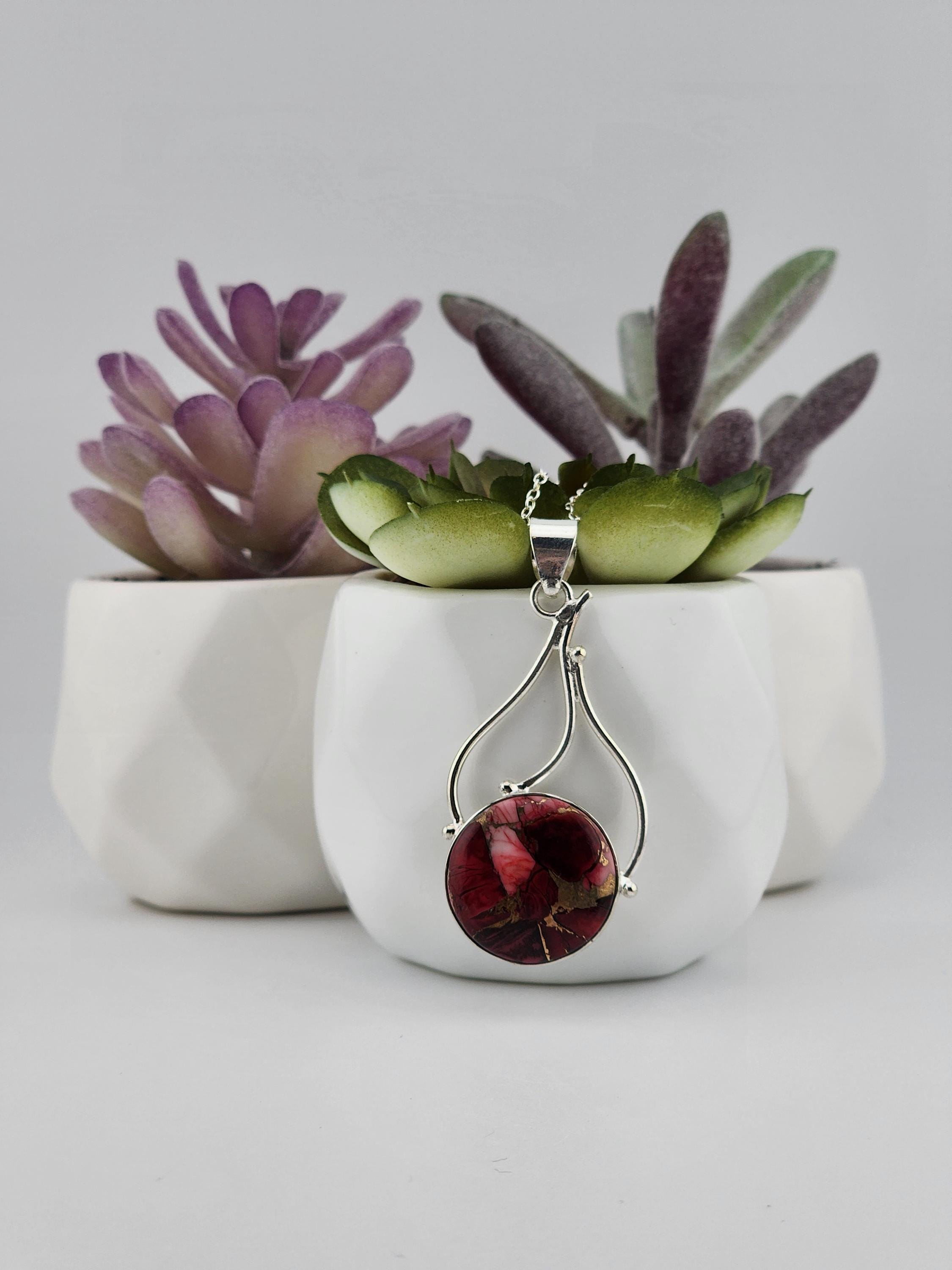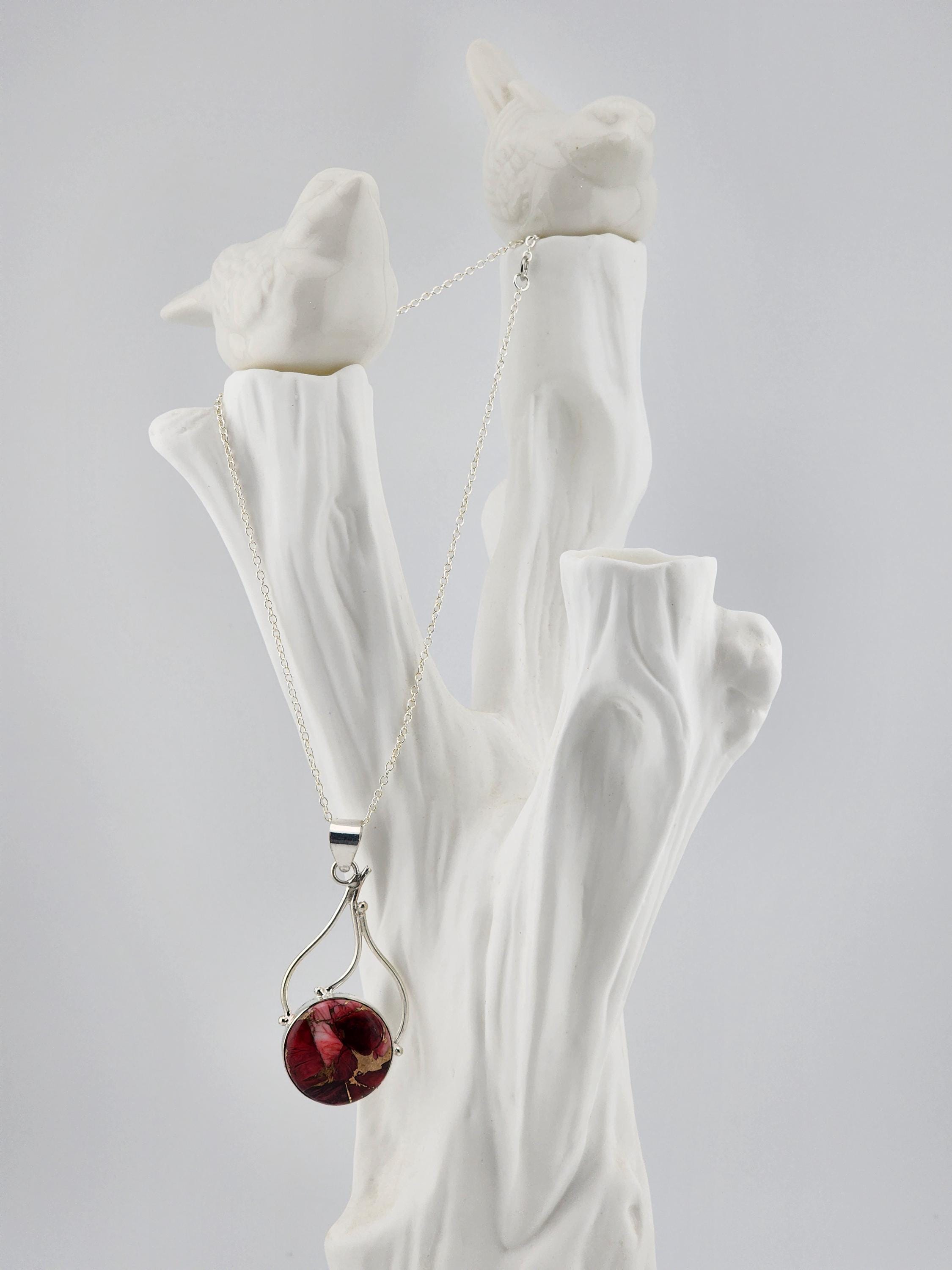 I made this necklace using 925 sterling silver delicate chain. Then I added an artistic, ornate handcrafted (in India) 925 sterling silver pendant with a round red rose dahlia turquoise stone. * Your purchase will arrive in pretty packaging * Shipping is free within the U.S. >>>>>>>>>>>>>>>>>>>>>>>>>>>>>>>>>>>>>>>>>>>>>>>>>>>>>>>>>>>>>>>>>>>>>>>>>>>>>>>>>>>>> Benefits Of Red Rose Dahlia Turquoise: 🌹 Red Rose Symbolizes: Love, passion, romance 🌺 Dahlia Symbolizes: Elegance, inner strength, creativity Color: Can be various colors, but often associated with vibrant pinks, purples, reds 💎 Turquoise Symbolizes: Calm, protection, healing >>>>>>>>>>>>>>>>>>>>>>>>>>>>>>>>>>>>>>>>>>>>>>>>>>>>>>>>>>>>>>>>>>>>>>>>>>>>>>>>>>>> Benefits Of Silver: Silver jewelry has long been valued for its potential health benefits. Its antibacterial properties help prevent the spread of infections, while its cooling effect can alleviate inflammation. Wearing silver jewelry is also believed to promote emotional well-being by fostering a sense of calmness and stability.