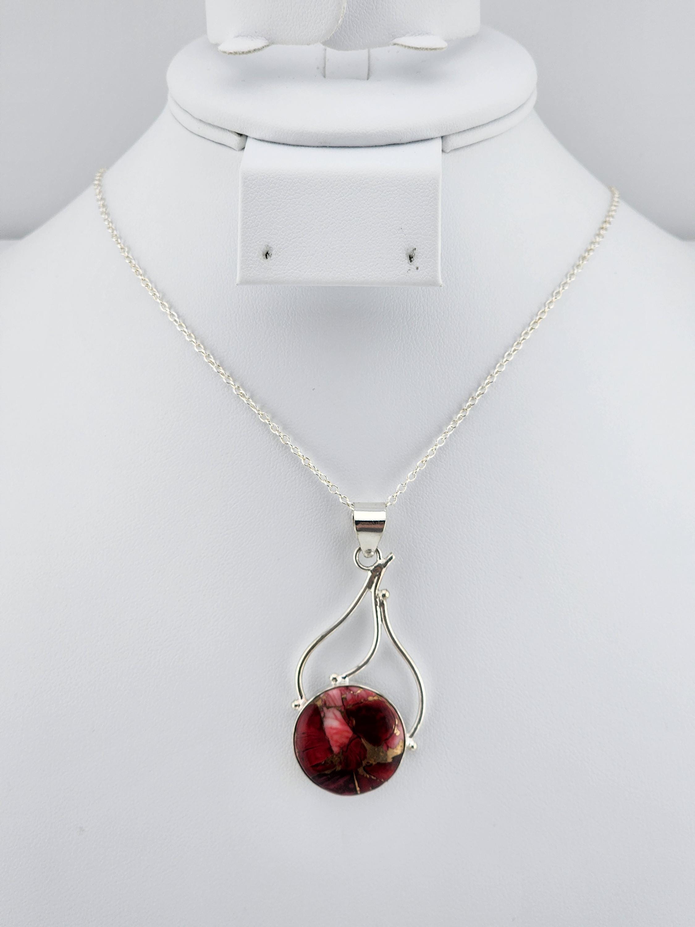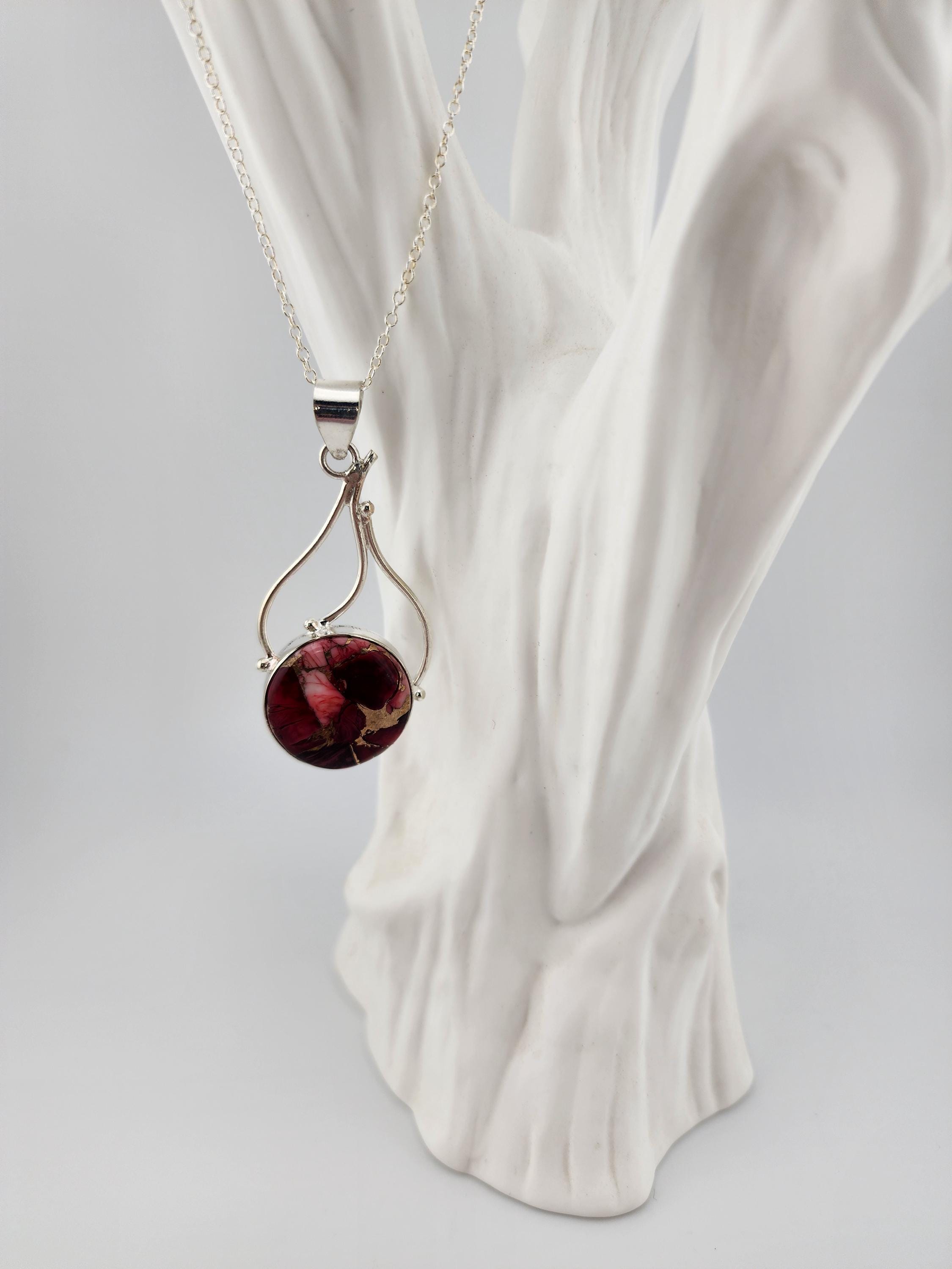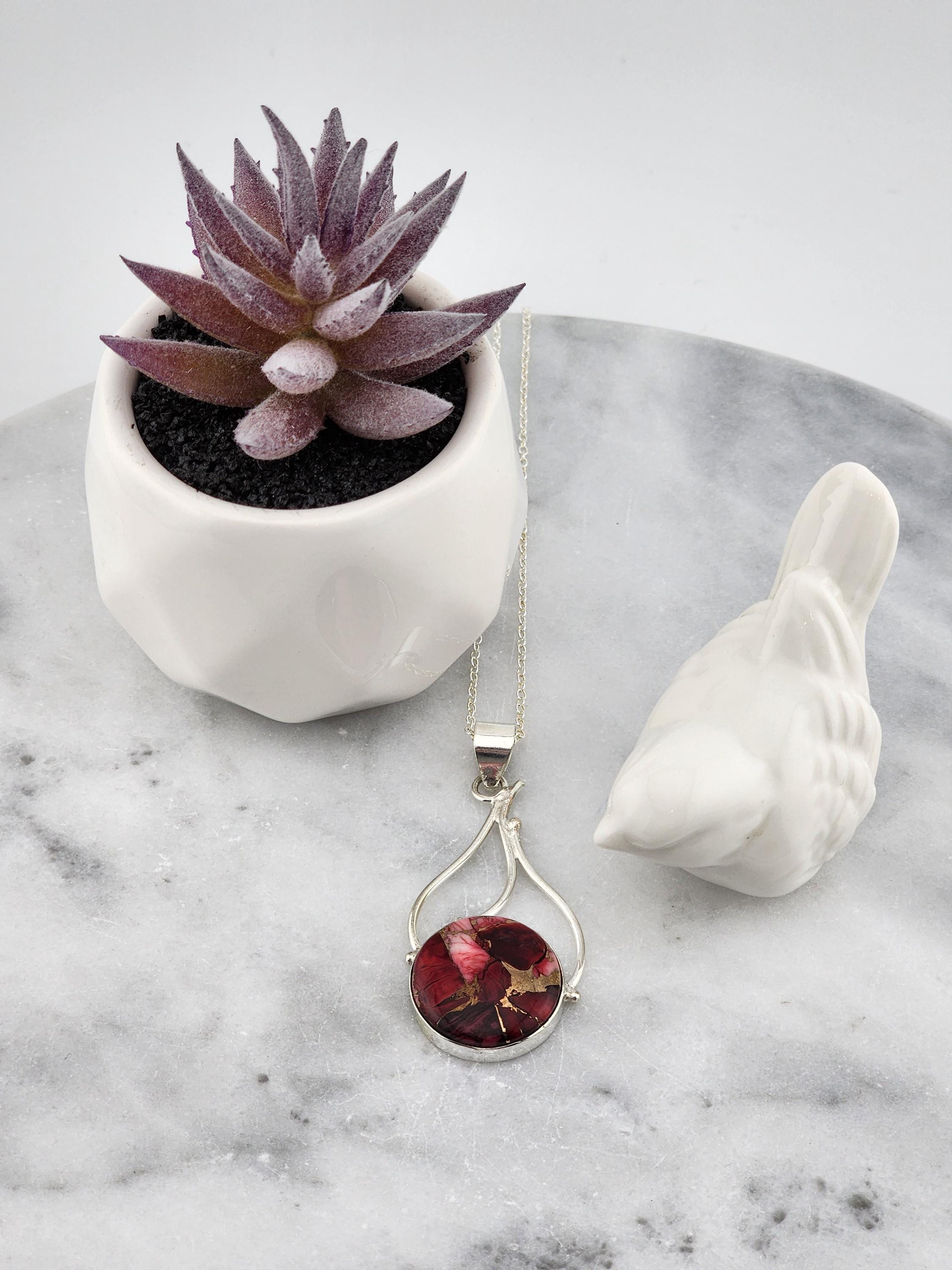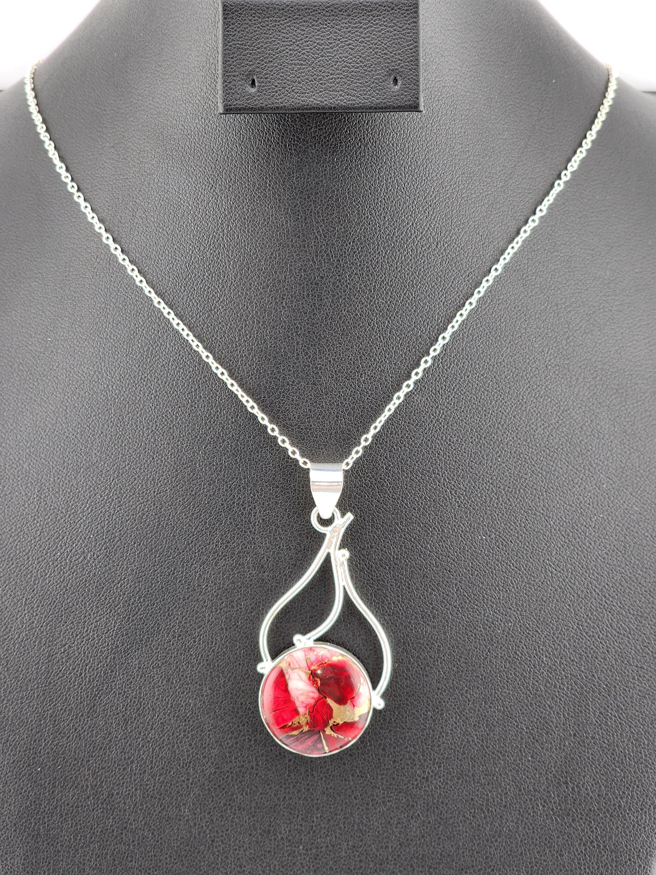 I made this necklace using 925 sterling silver delicate chain. Then I added an artistic, ornate handcrafted (in India) 925 sterling silver pendant with a round red rose dahlia turquoise stone. * Your purchase will arrive in pretty packaging * Shipping is free within the U.S. >>>>>>>>>>>>>>>>>>>>>>>>>>>>>>>>>>>>>>>>>>>>>>>>>>>>>>>>>>>>>>>>>>>>>>>>>>>>>>>>>>>>> Benefits Of Red Rose Dahlia Turquoise: 🌹 Red Rose Symbolizes: Love, passion, romance 🌺 Dahlia Symbolizes: Elegance, inner strength, creativity Color: Can be various colors, but often associated with vibrant pinks, purples, reds 💎 Turquoise Symbolizes: Calm, protection, healing >>>>>>>>>>>>>>>>>>>>>>>>>>>>>>>>>>>>>>>>>>>>>>>>>>>>>>>>>>>>>>>>>>>>>>>>>>>>>>>>>>>> Benefits Of Silver: Silver jewelry has long been valued for its potential health benefits. Its antibacterial properties help prevent the spread of infections, while its cooling effect can alleviate inflammation. Wearing silver jewelry is also believed to promote emotional well-being by fostering a sense of calmness and stability.