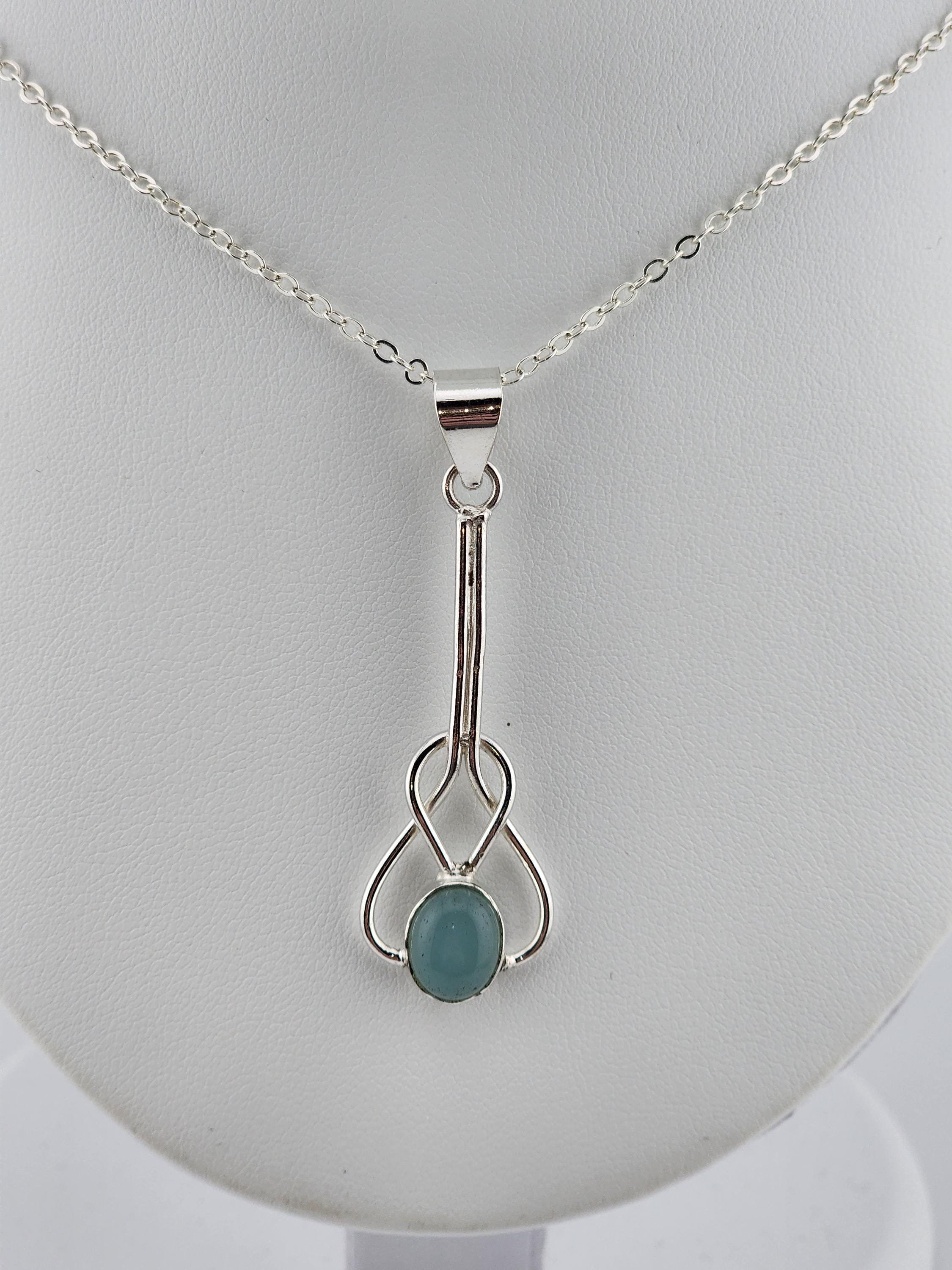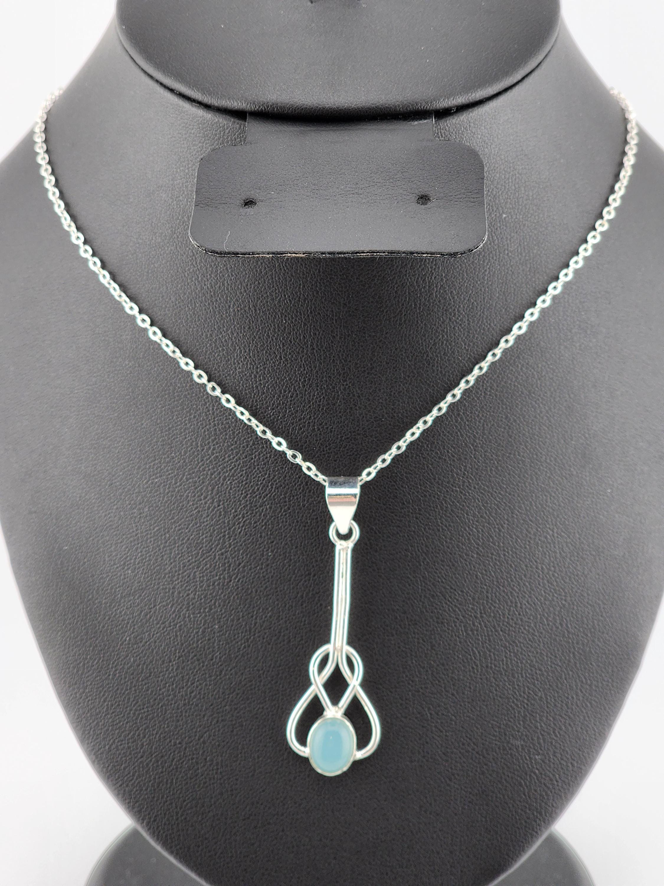 Blue Aquamarine Handcrafted Gemstone Pendant on a 925 Sterling Silver Choker Necklace