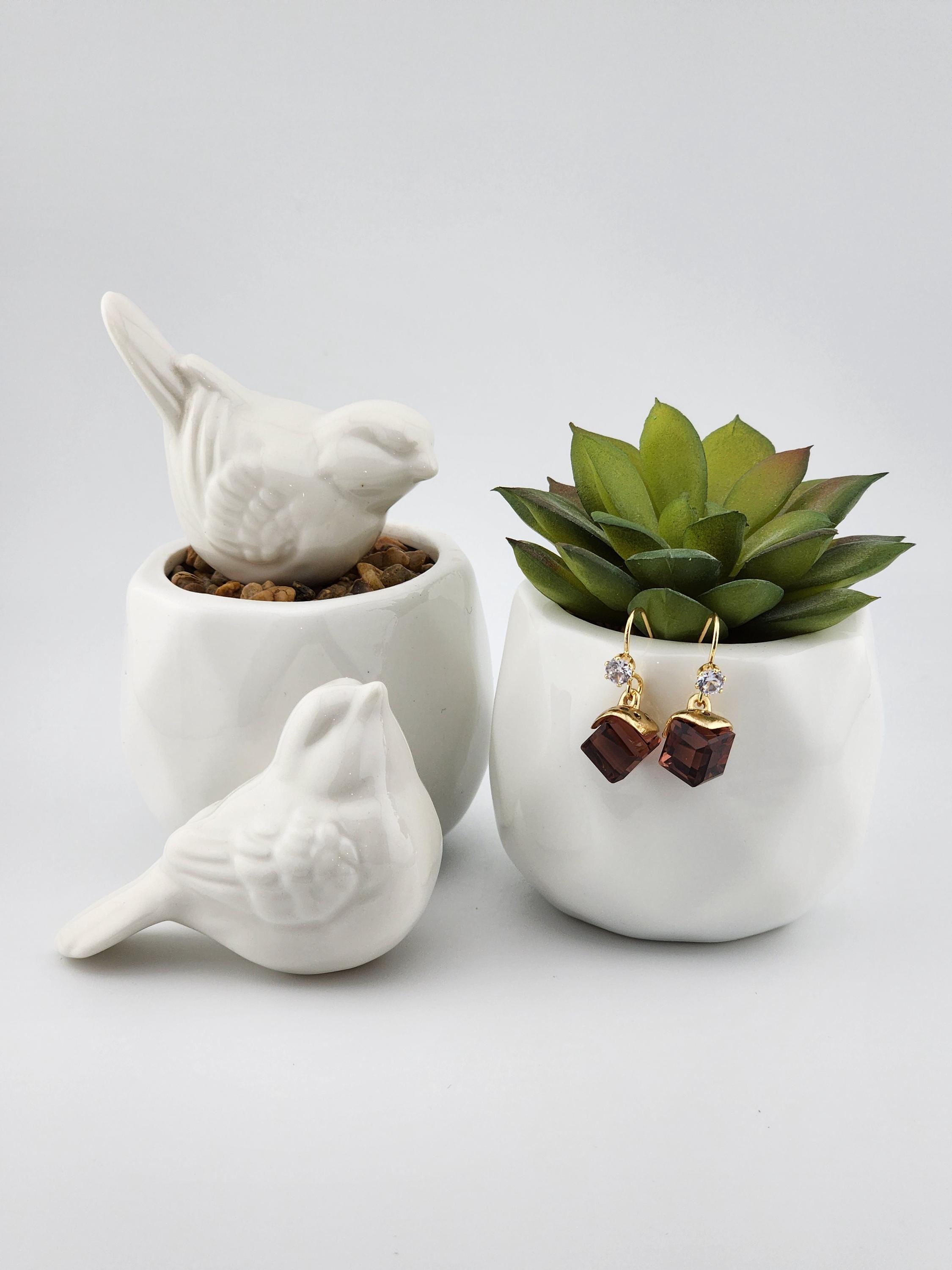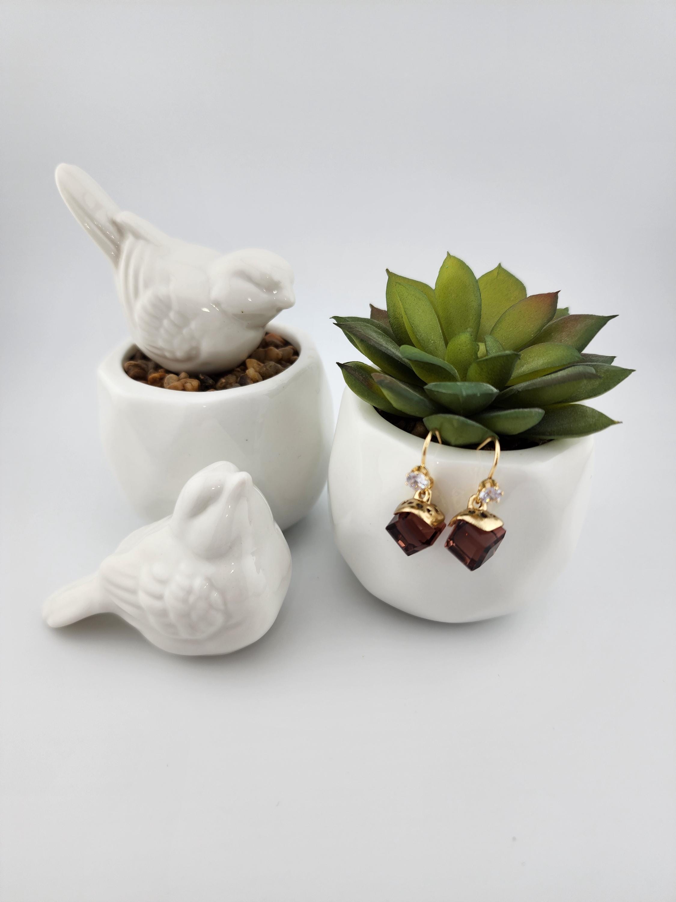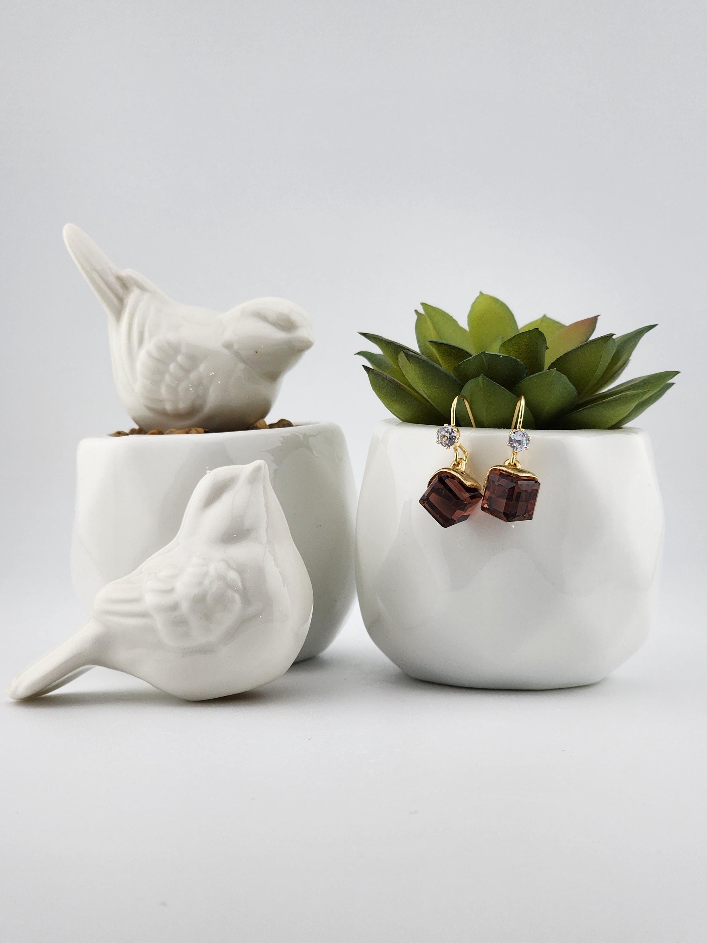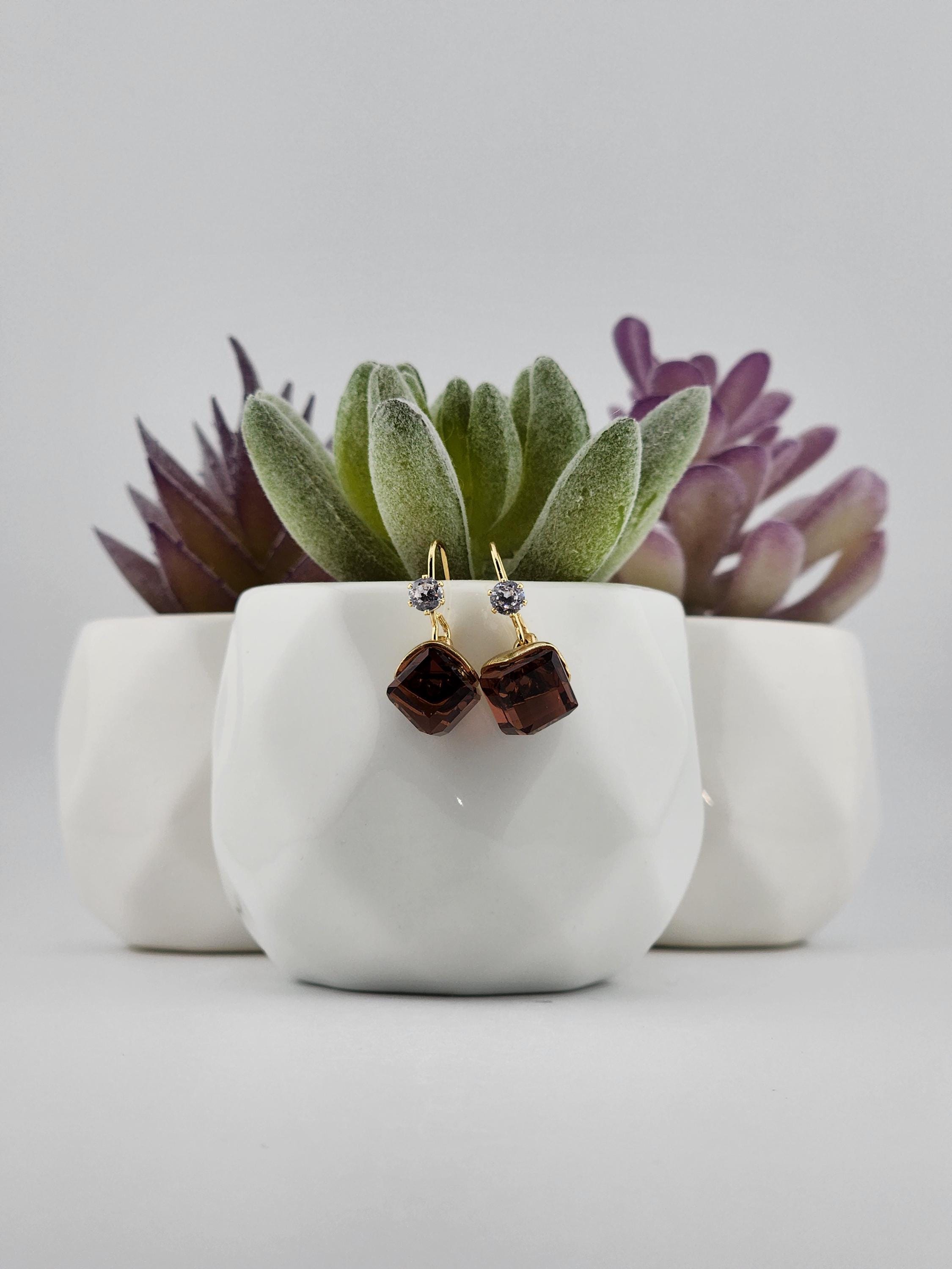 I made these earrings using tarnish resistant 18k gold plated brass ear wire hooks that have tiny cubic zirconia crystal. From them are hanging gold capped deep purple faceted crystal cubes. * Your purchase will arrive in pretty packaging * Shipping is free within the U.S.