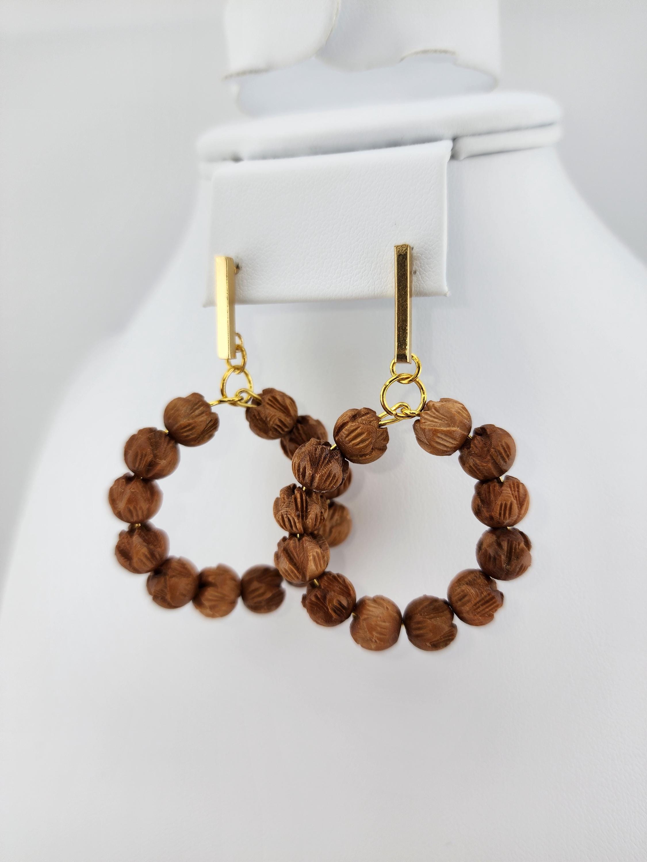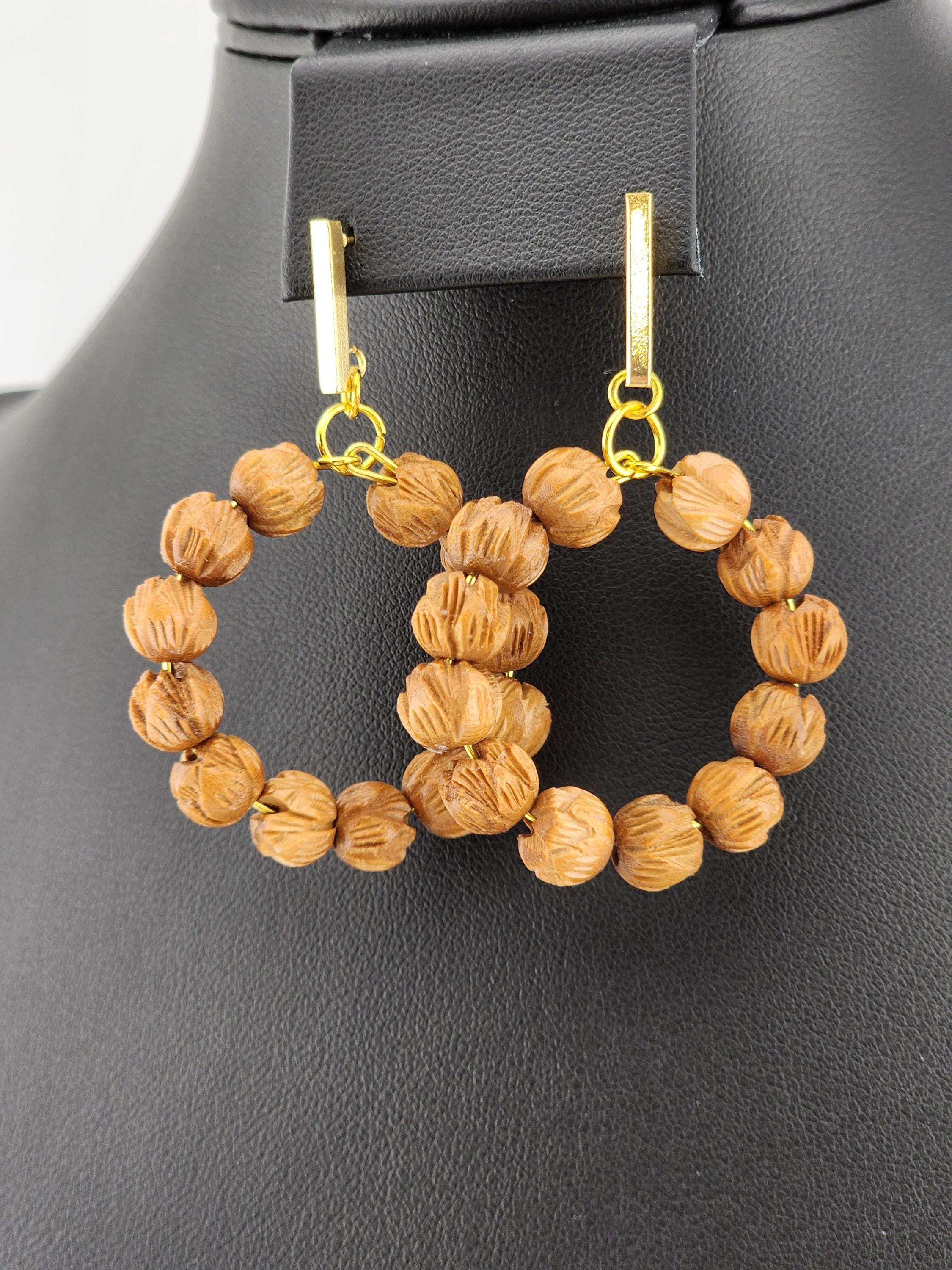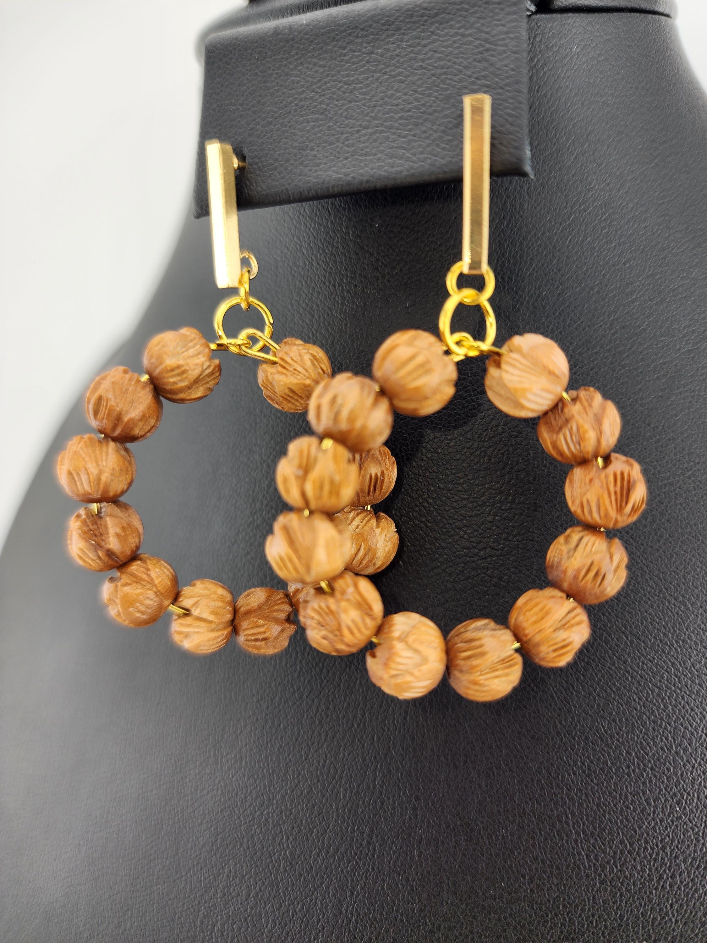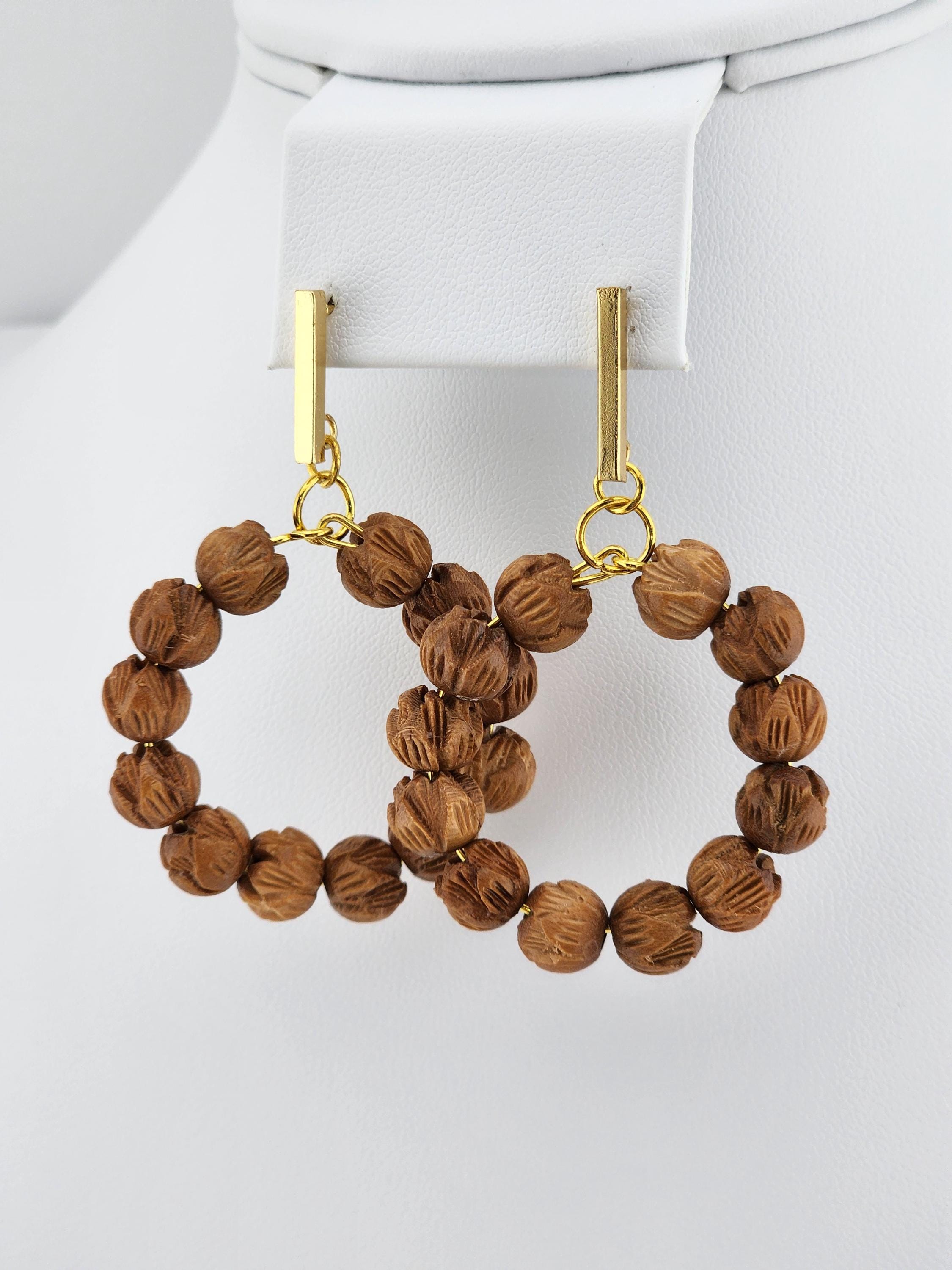 I made these earrings using tarnish resistant 18k gold plated brass bar posts. On gold hoops are lined carved wood lotus flower beads and they hang from 24k gold plated connecting rings. * Your purchase will arrive in pretty packaging * Shipping is included