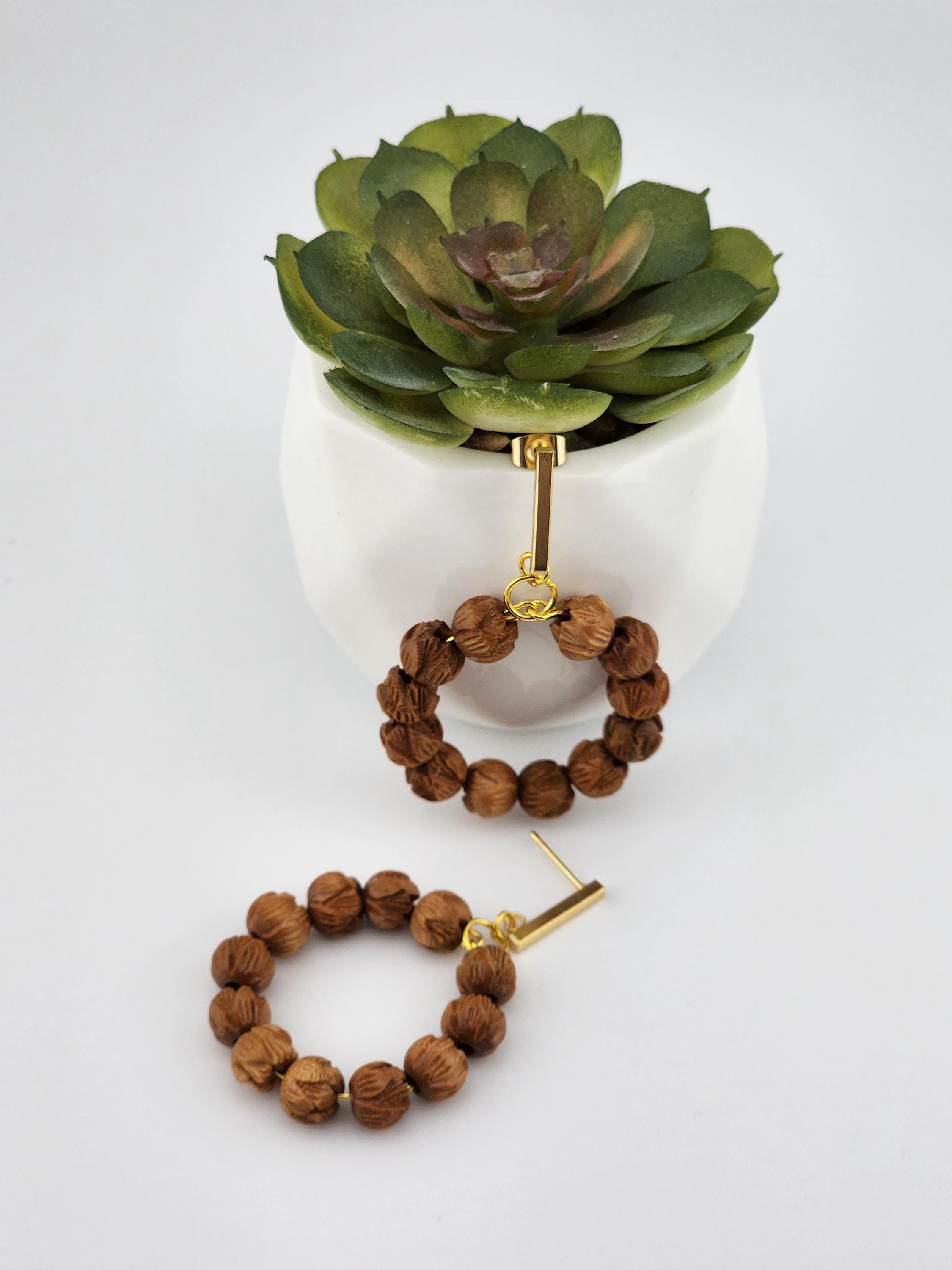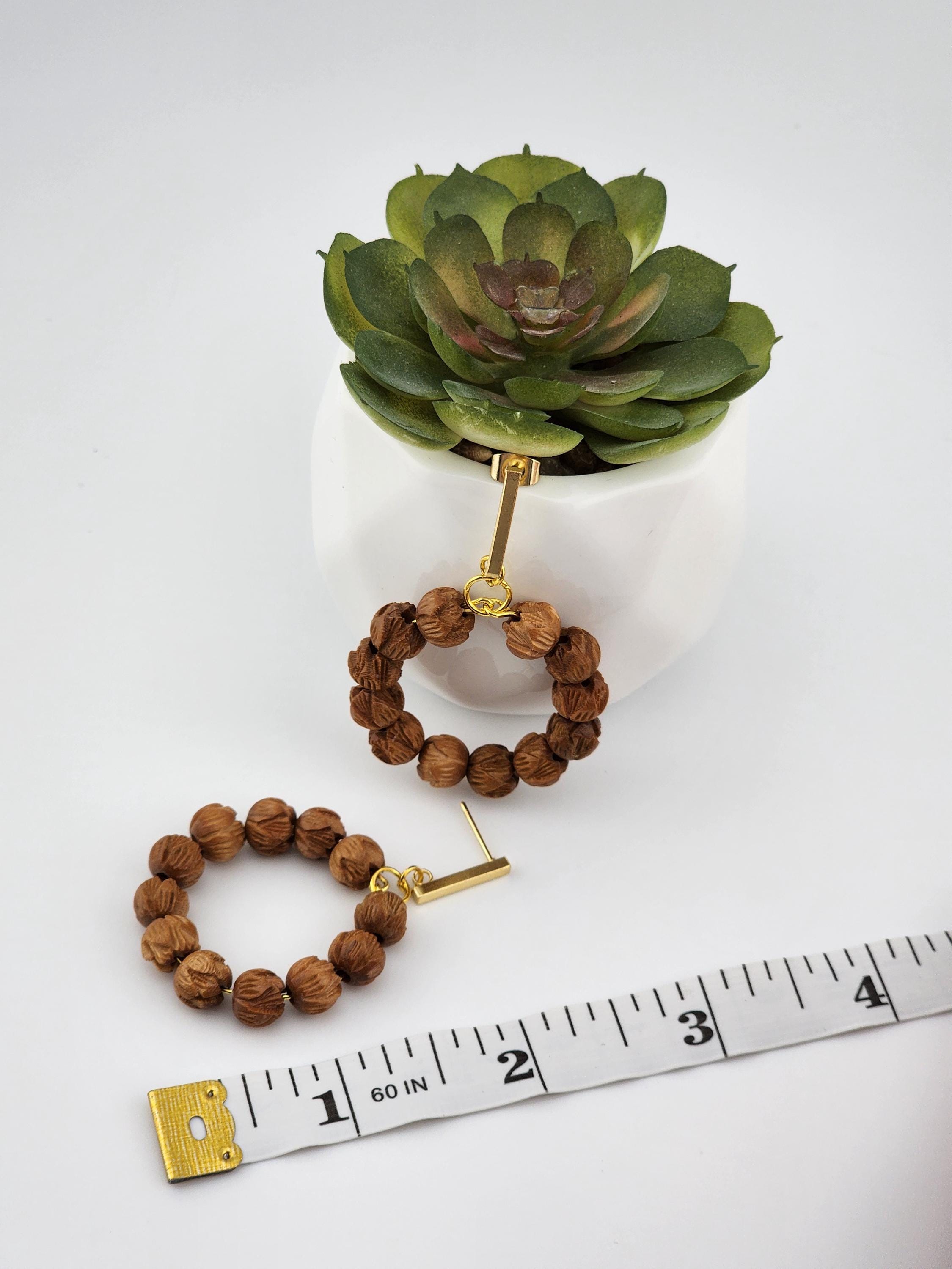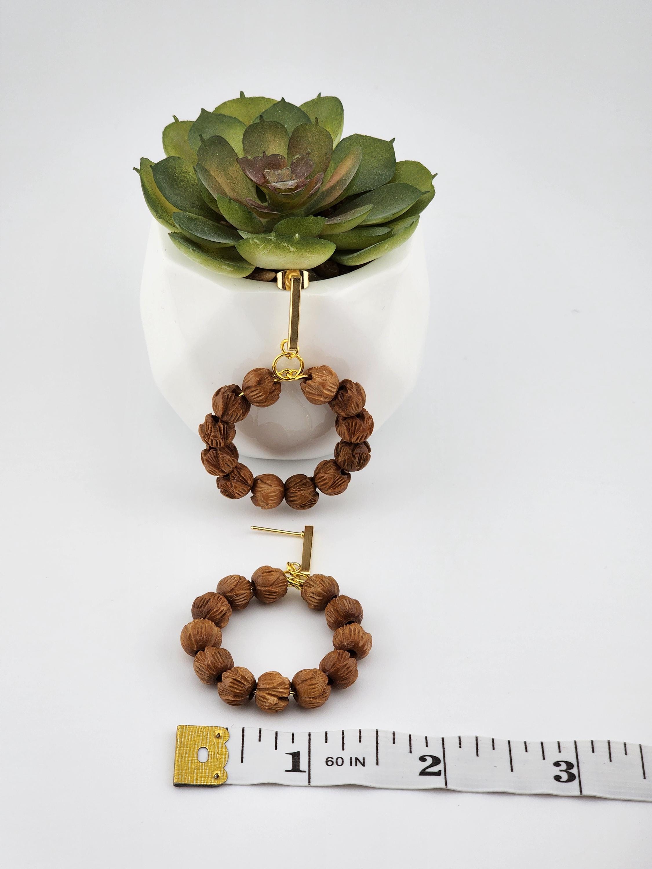 I made these earrings using tarnish resistant 18k gold plated brass bar posts. On gold hoops are lined carved wood lotus flower beads and they hang from 24k gold plated connecting rings. * Your purchase will arrive in pretty packaging * Shipping is included