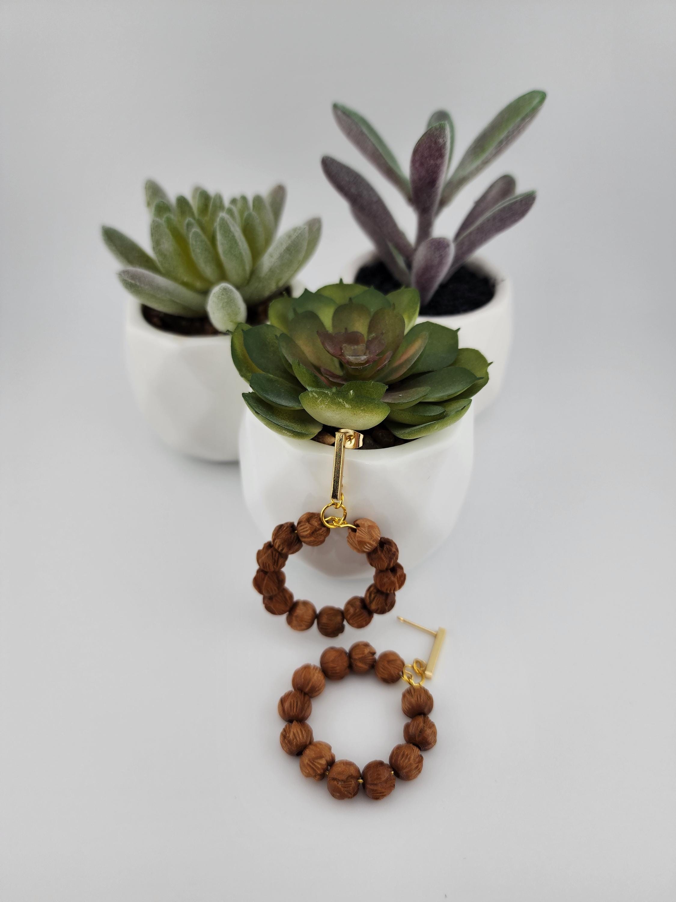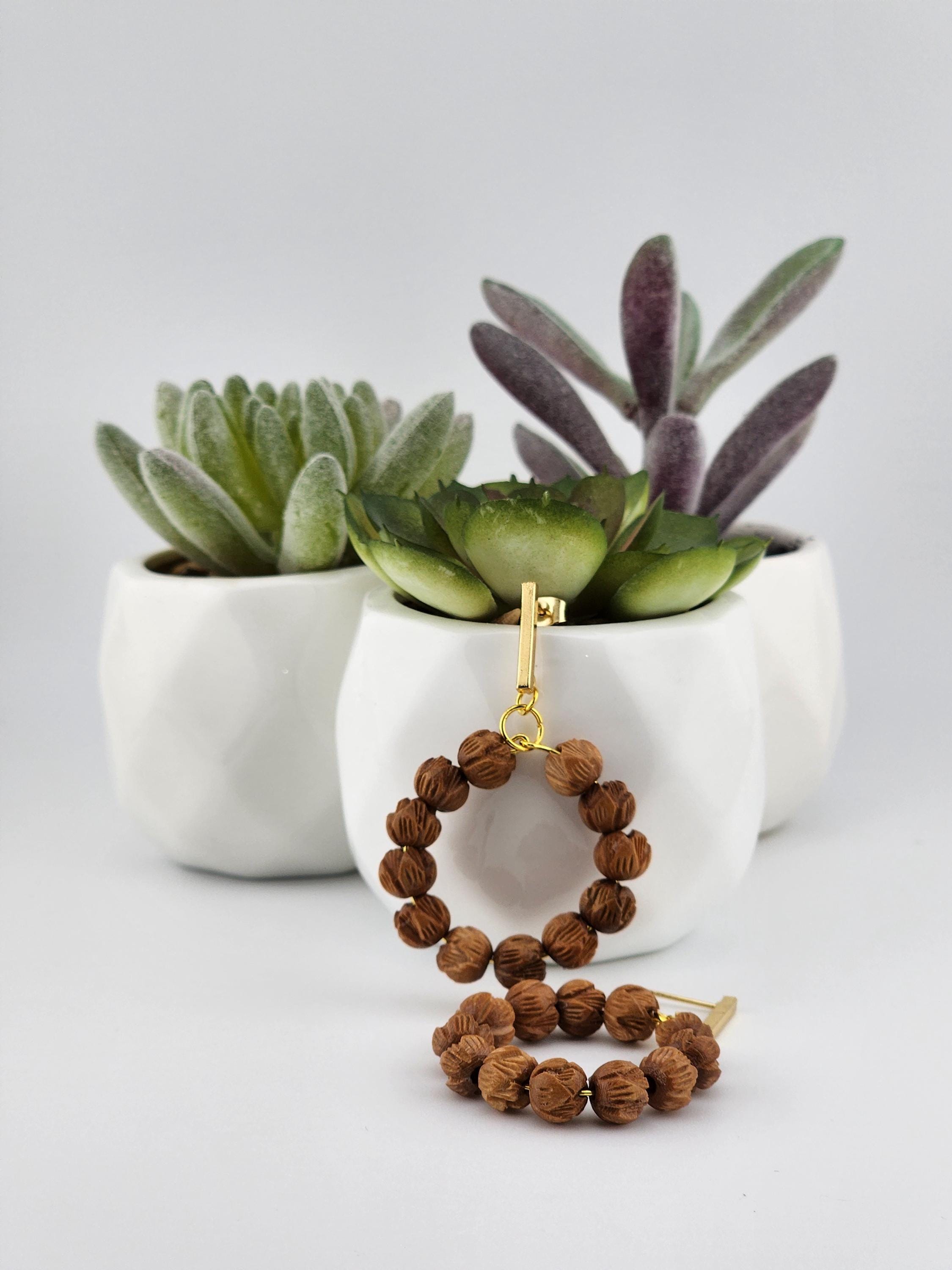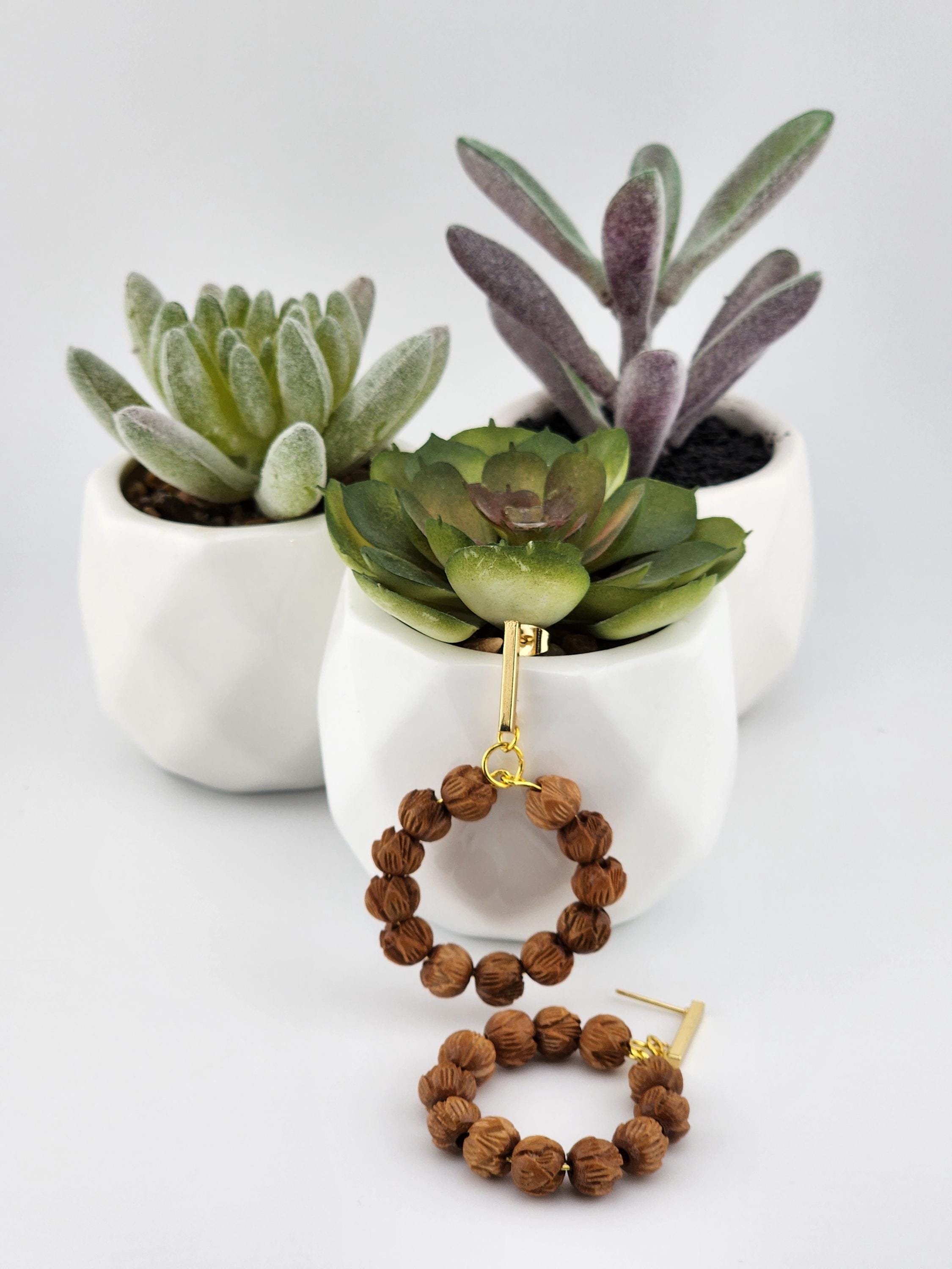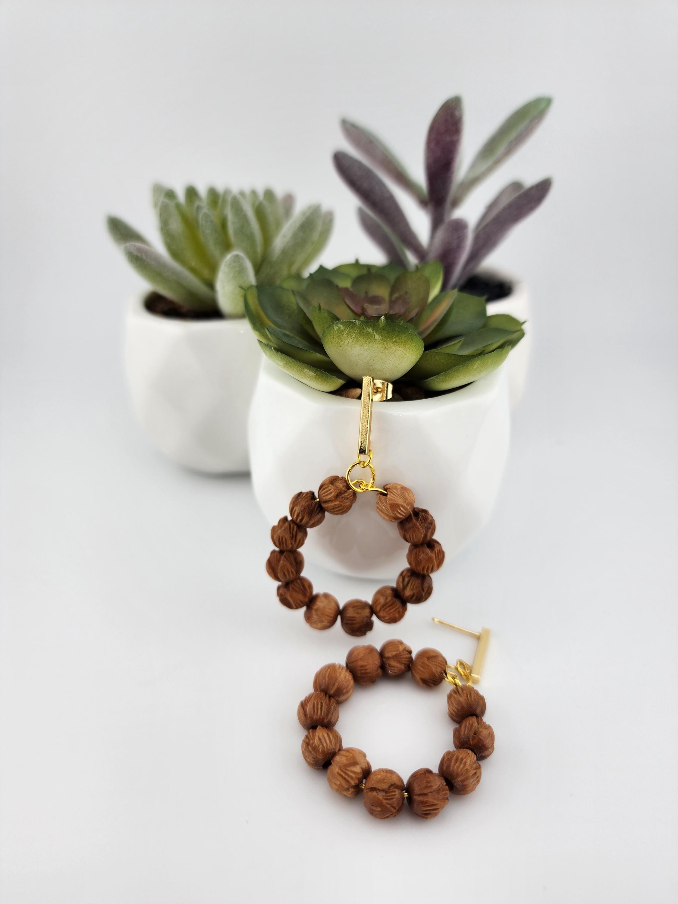 I made these earrings using tarnish resistant 18k gold plated brass bar posts. On gold hoops are lined carved wood lotus flower beads and they hang from 24k gold plated connecting rings. * Your purchase will arrive in pretty packaging * Shipping is included