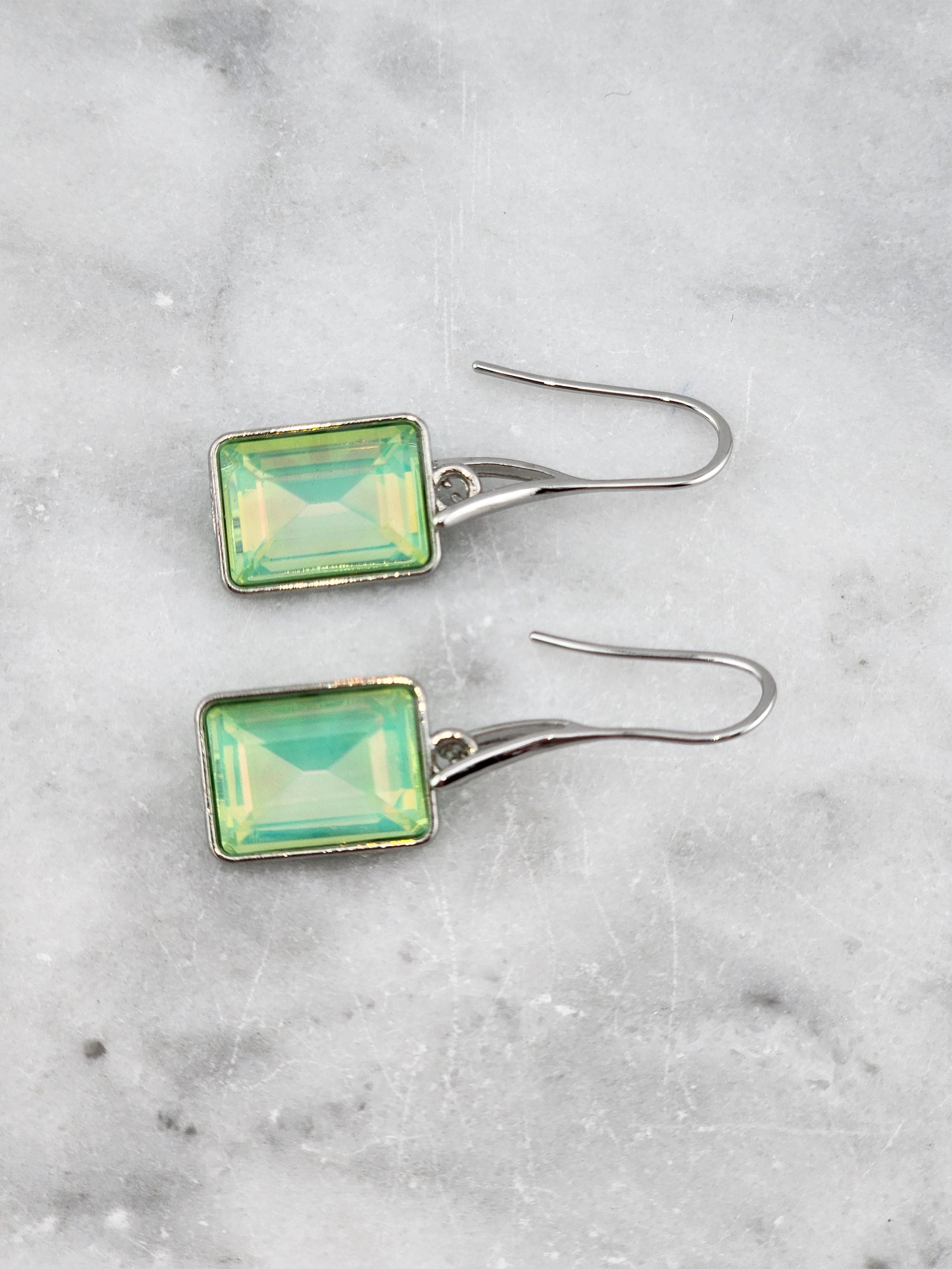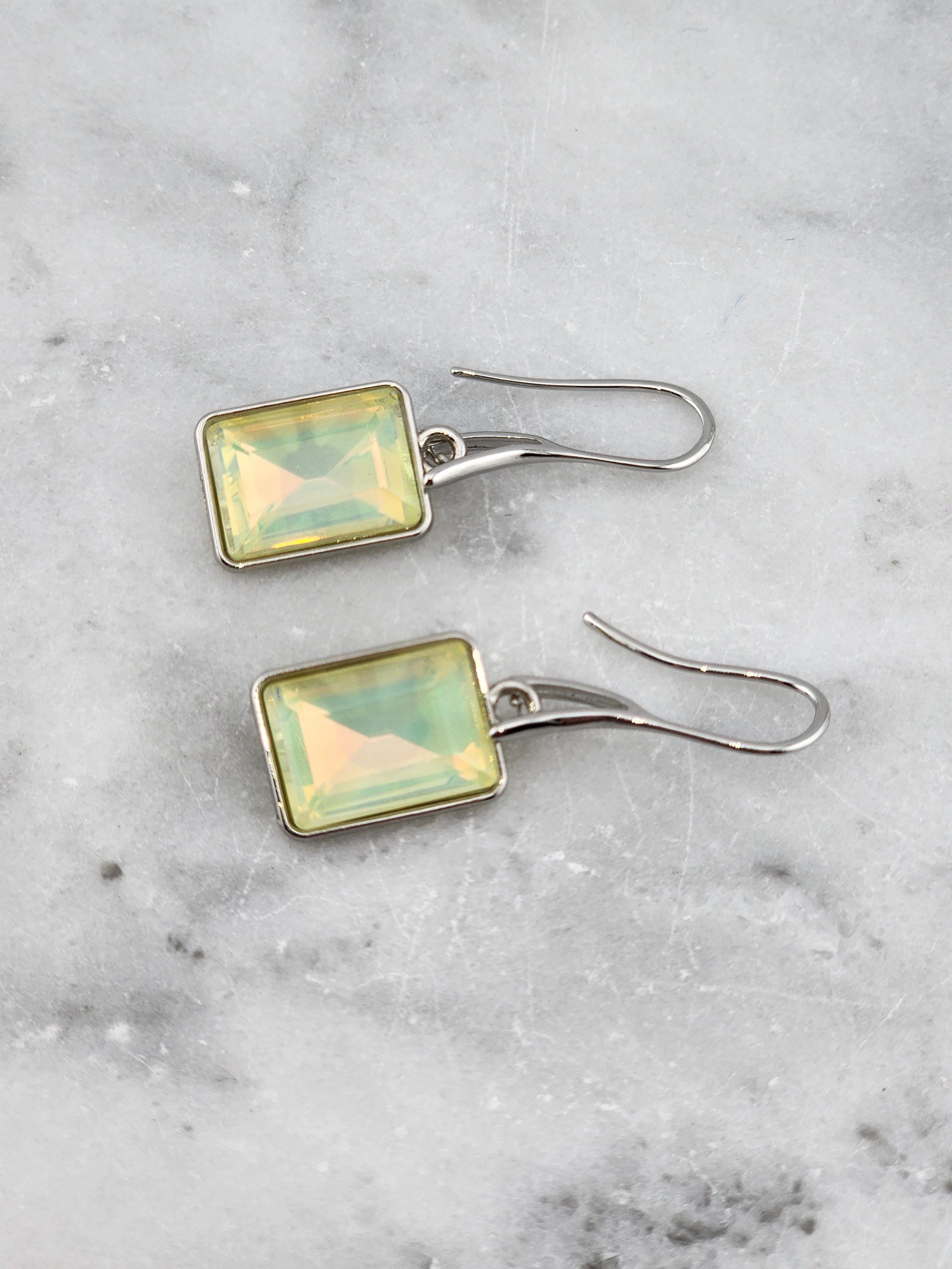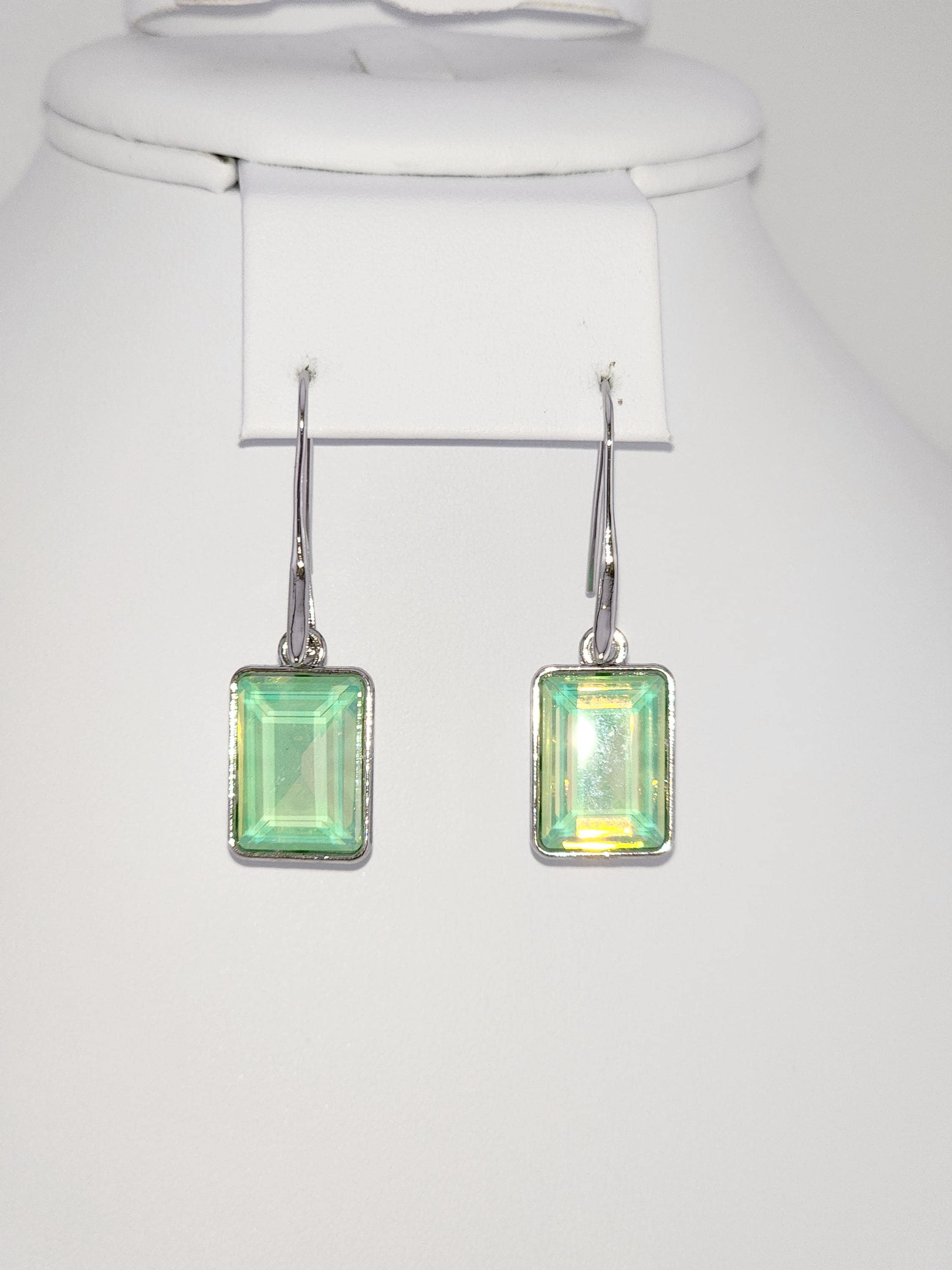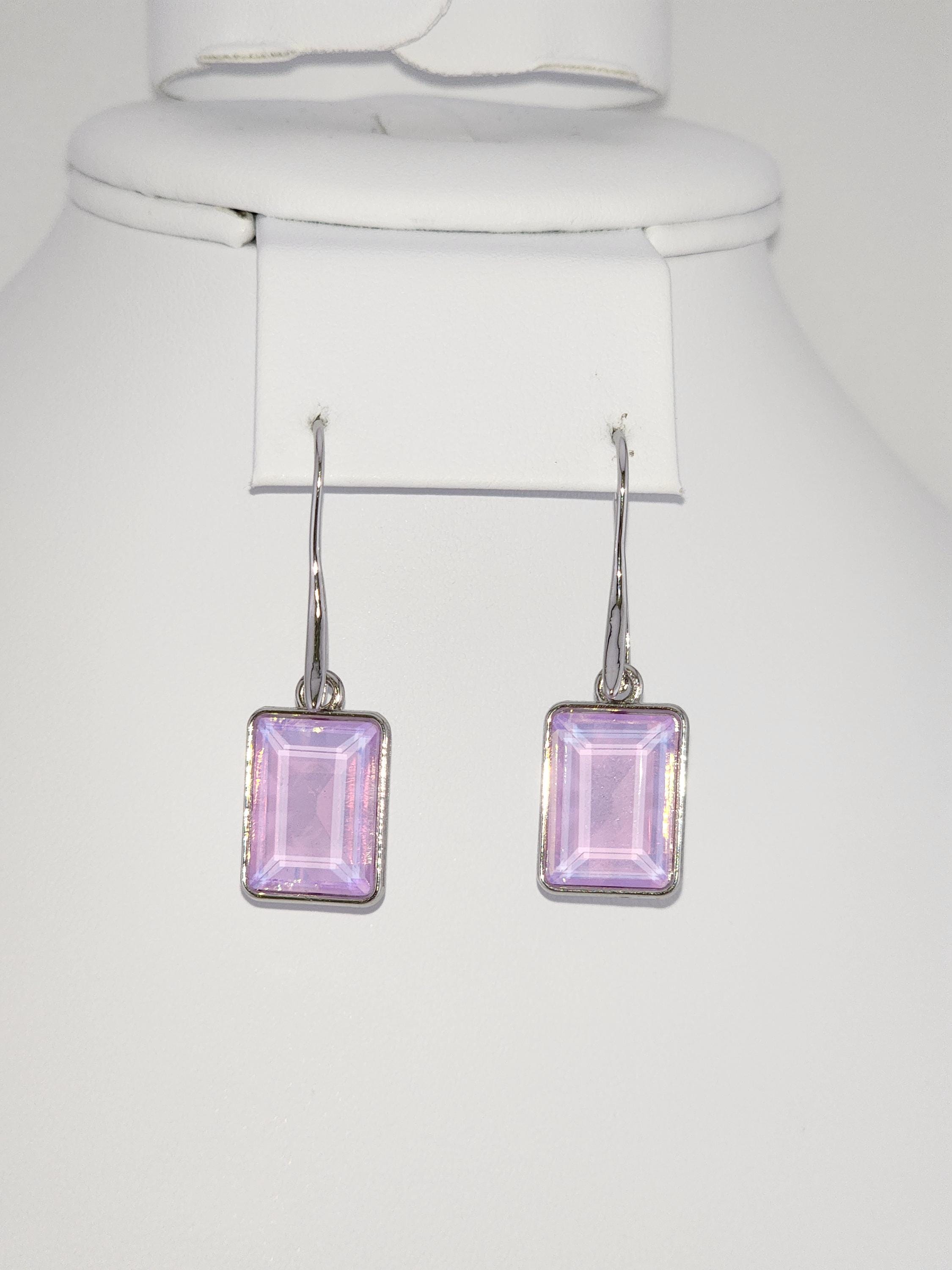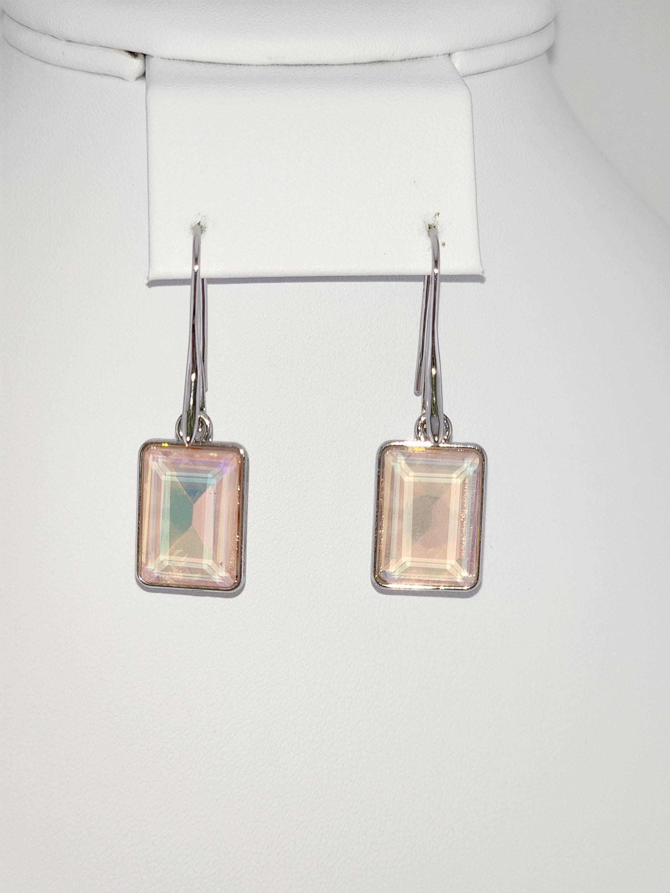I made these earrings using platinum plated brass wire hooks. From them are multi-color, emerald shaped faceted crystal charms. YOUR CHOICES ARE: #1- Pink #2- Green #3- Purple #4- Peach #5- Yellow * Your purchase will arrive in pretty packaging * Shipping is included
