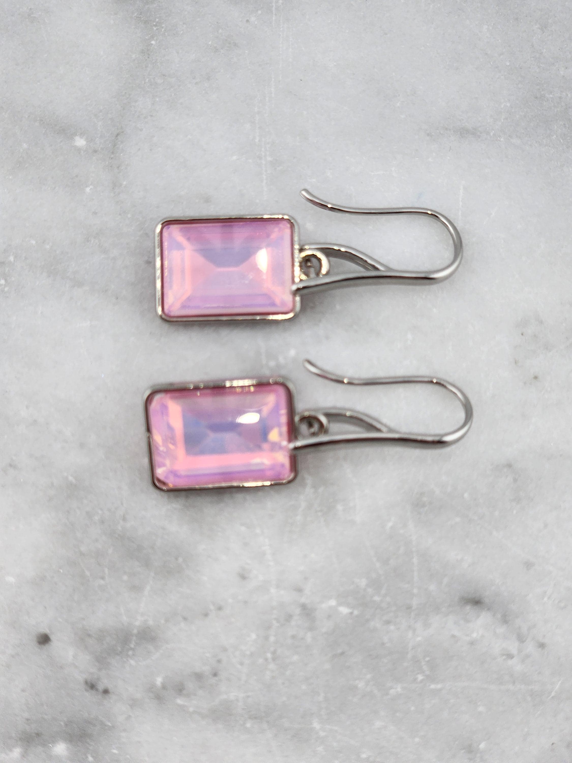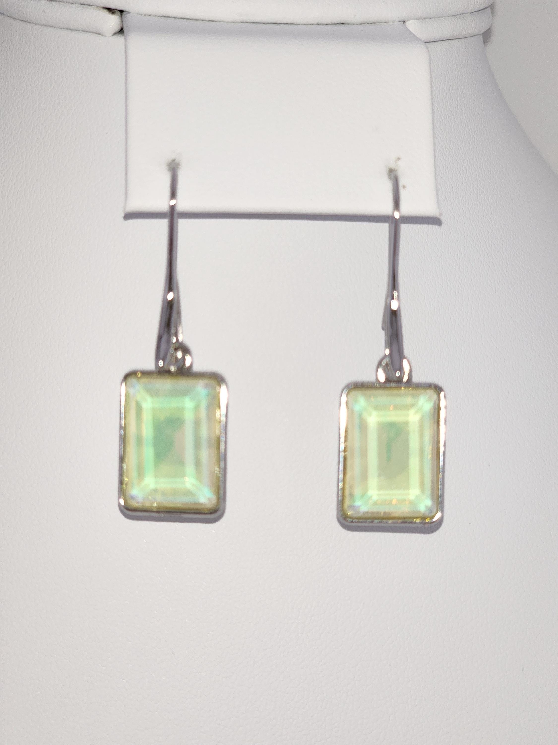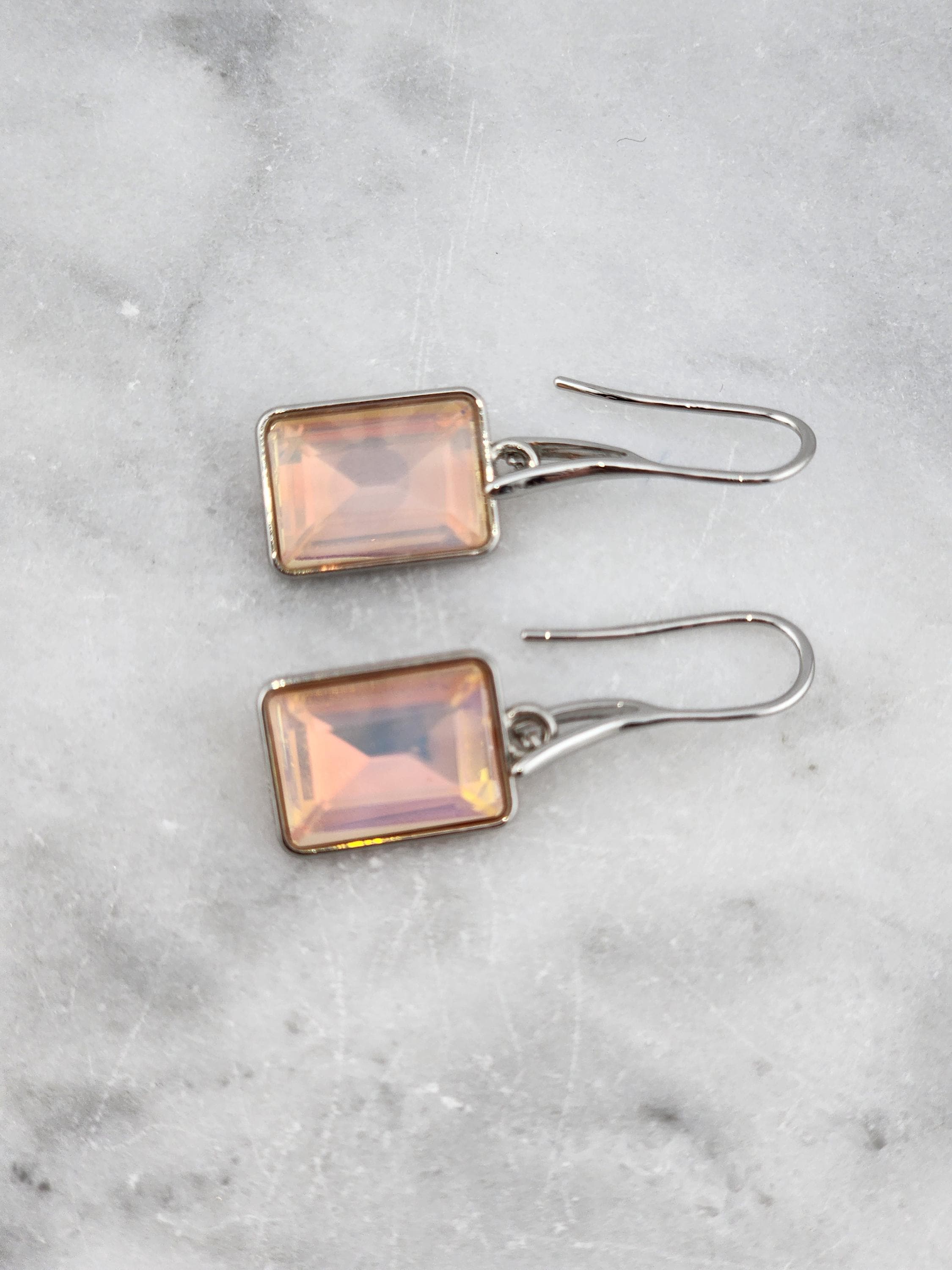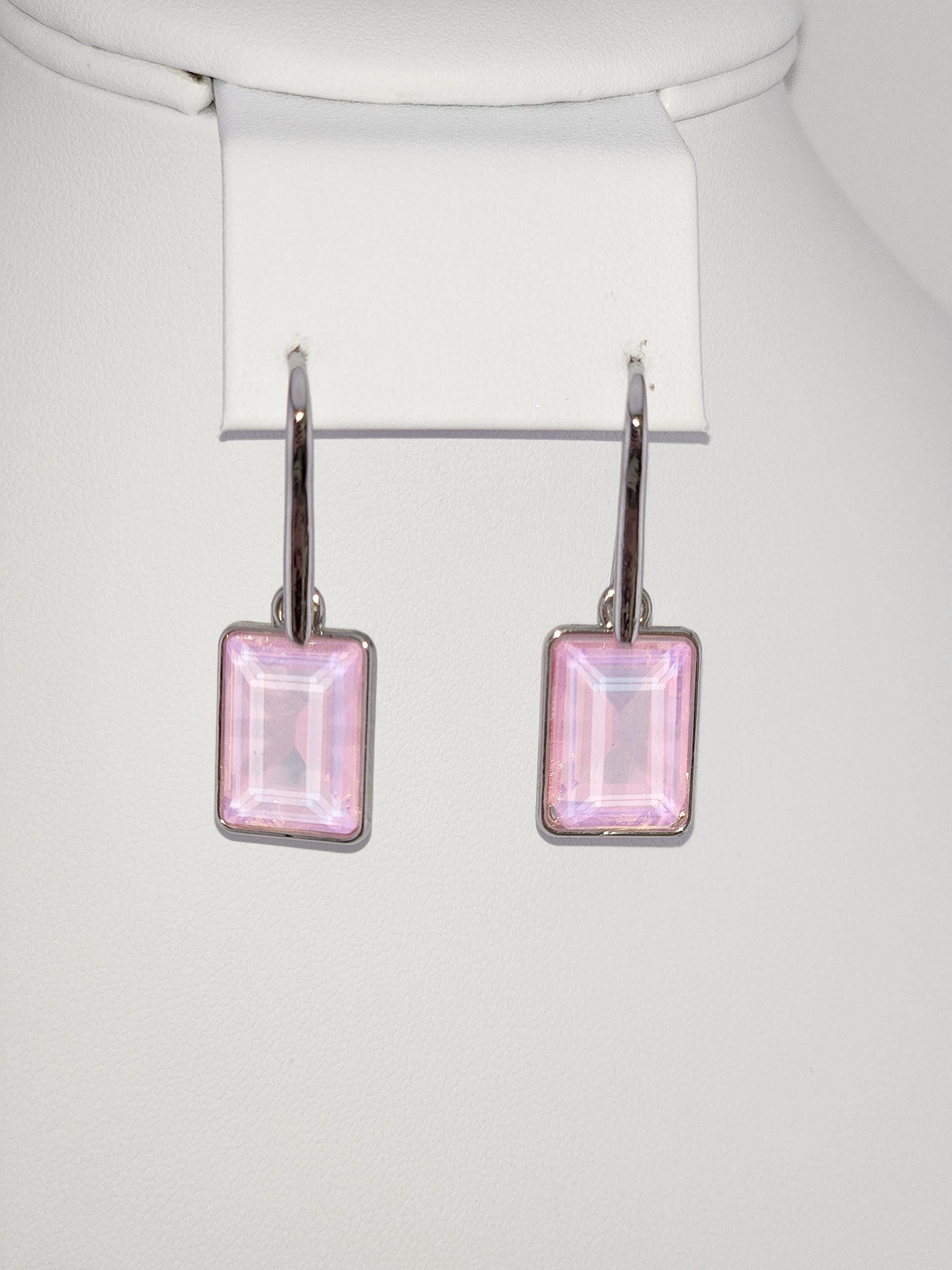 I made these earrings using platinum plated brass wire hooks. From them are multi-color, emerald shaped faceted crystal charms. YOUR CHOICES ARE: #1- Pink #2- Green #3- Purple #4- Peach #5- Yellow * Your purchase will arrive in pretty packaging * Shipping is included