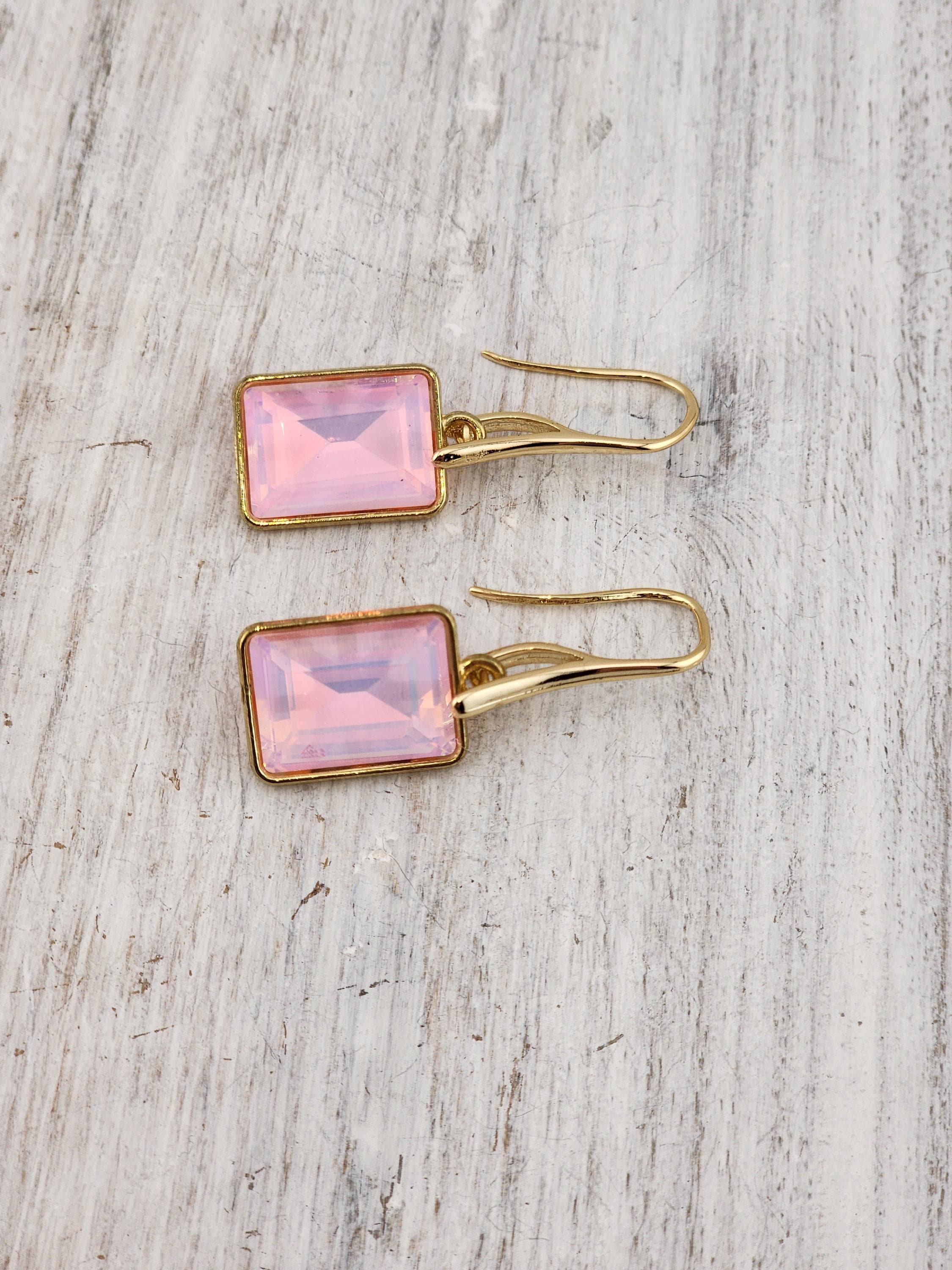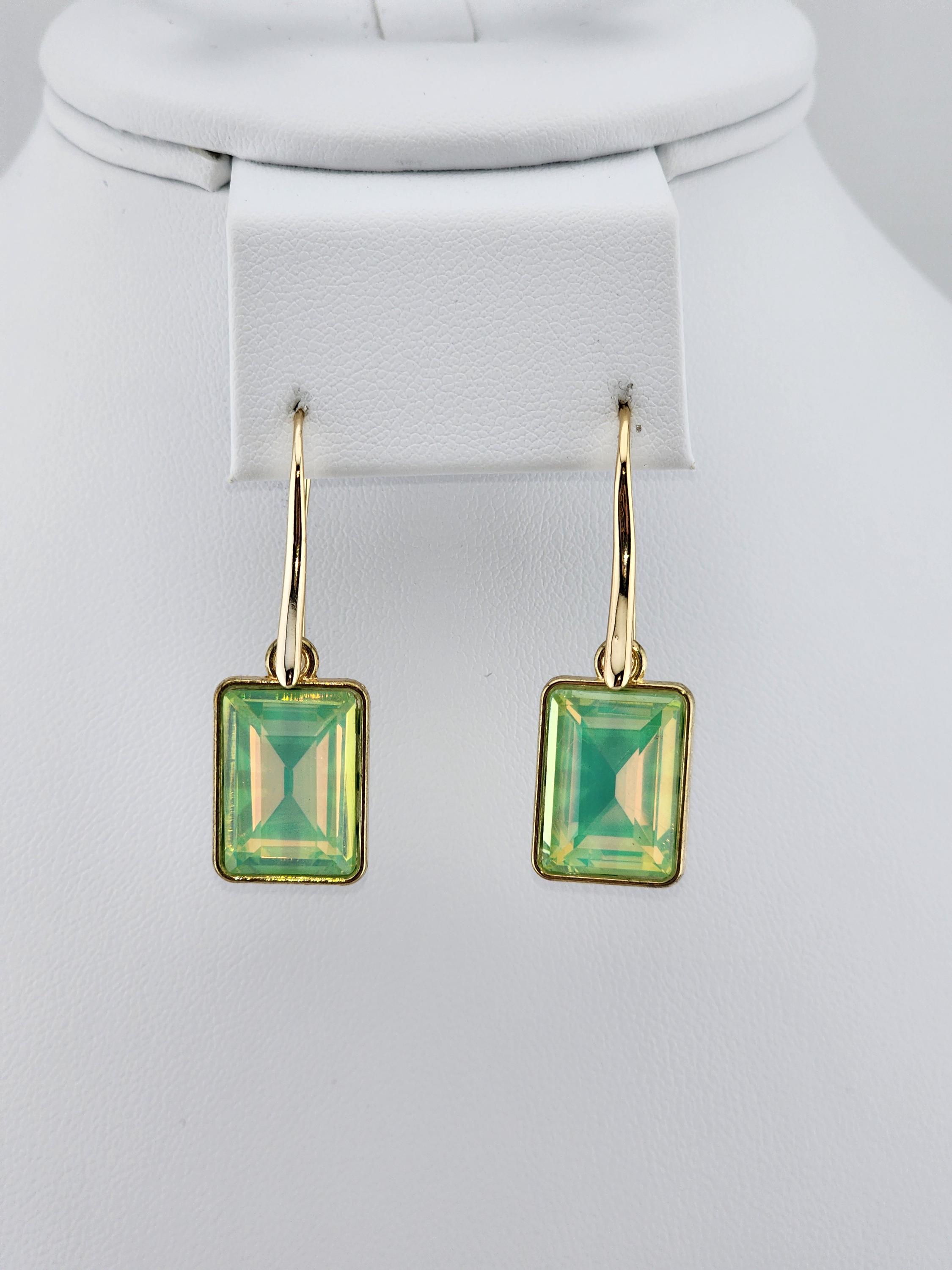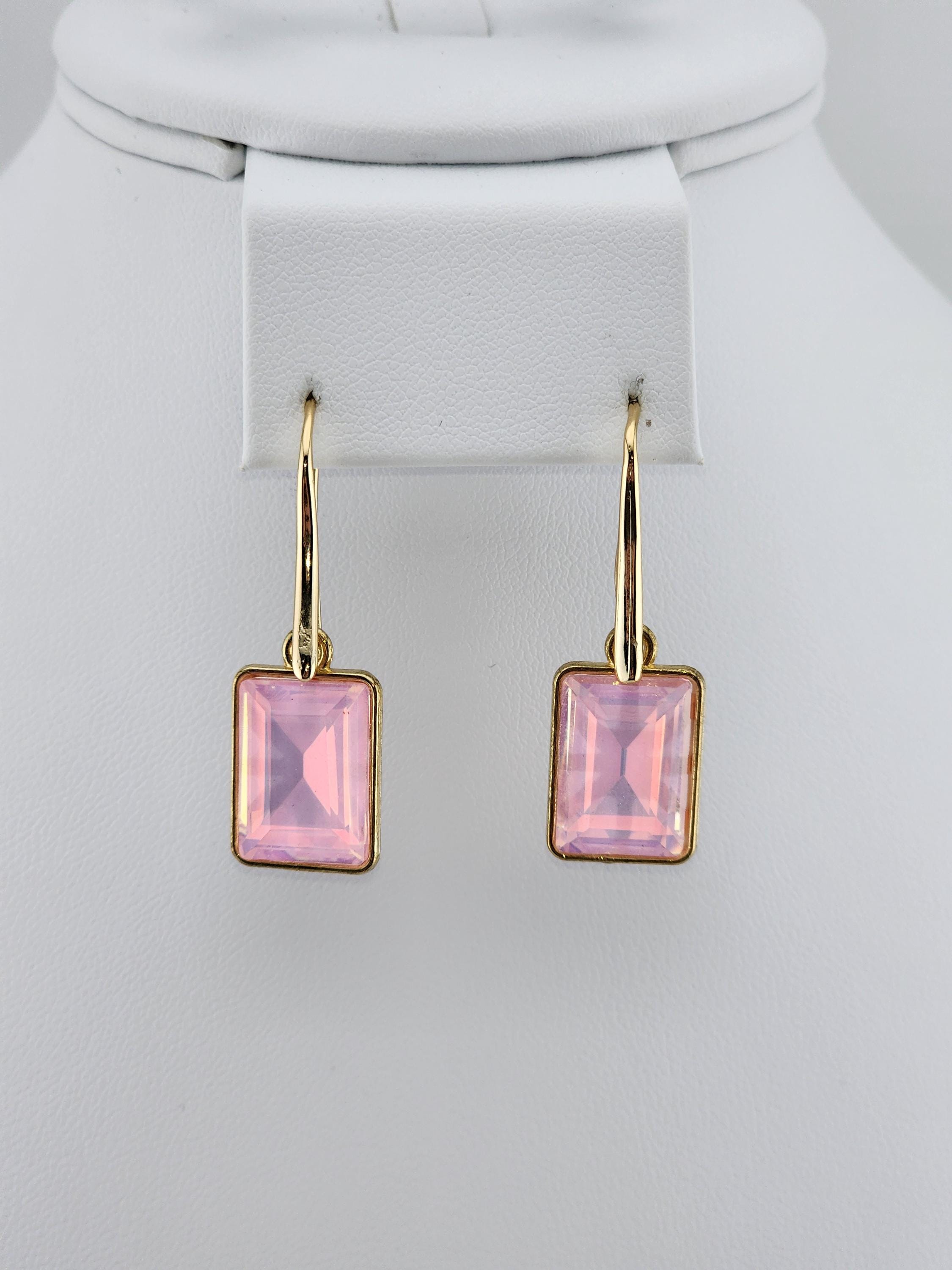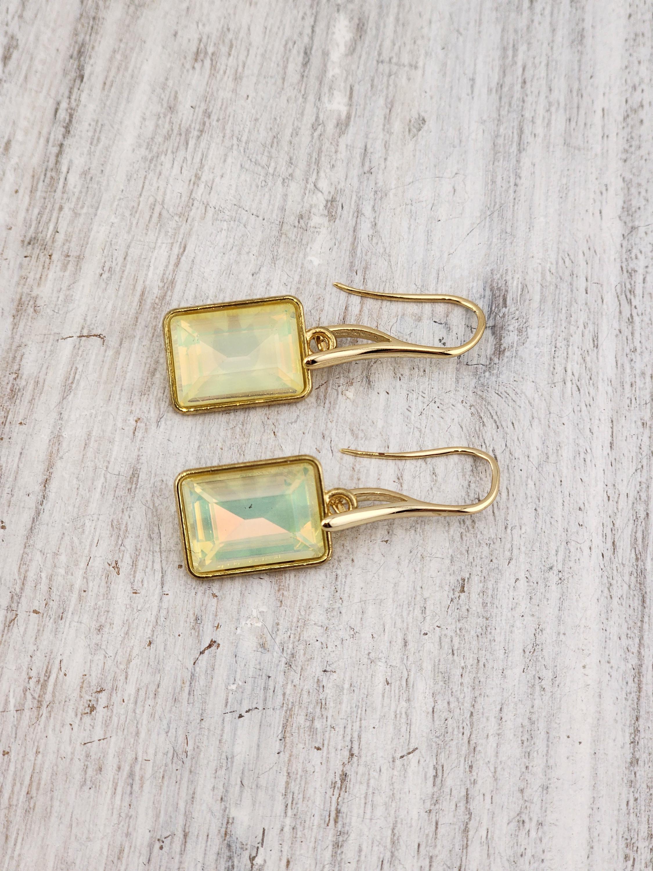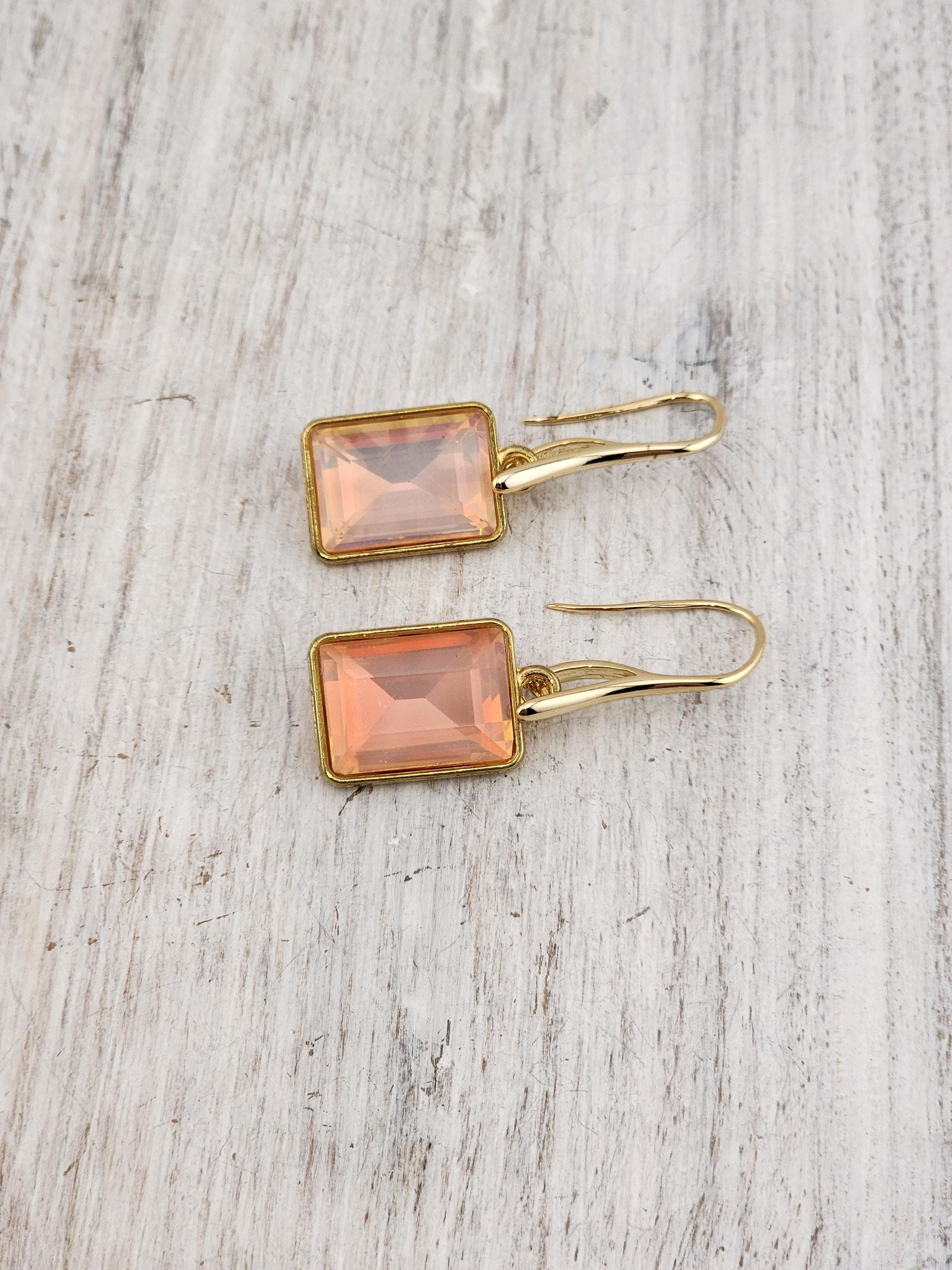I made these earrings using tarnish resistant 18k gold plated brass wire hooks. From them are multi-color emerald shaped crystal charms. YOUR CHOICES ARE: #1- Pink #2- Yellow #3- Purple #4- Blue #5- Green #6- Peach * Your purchase will arrive in pretty packaging * Shipping is included
