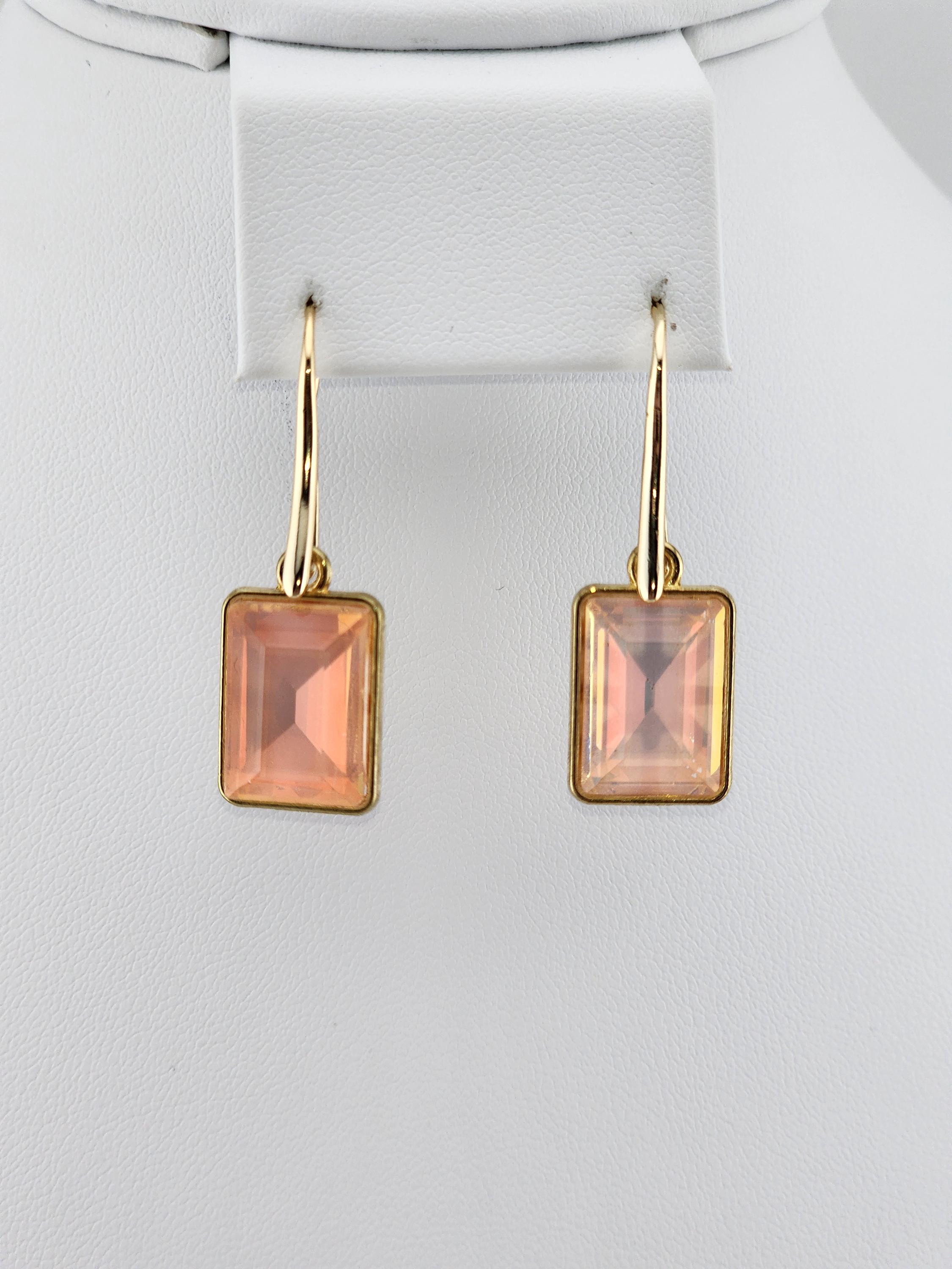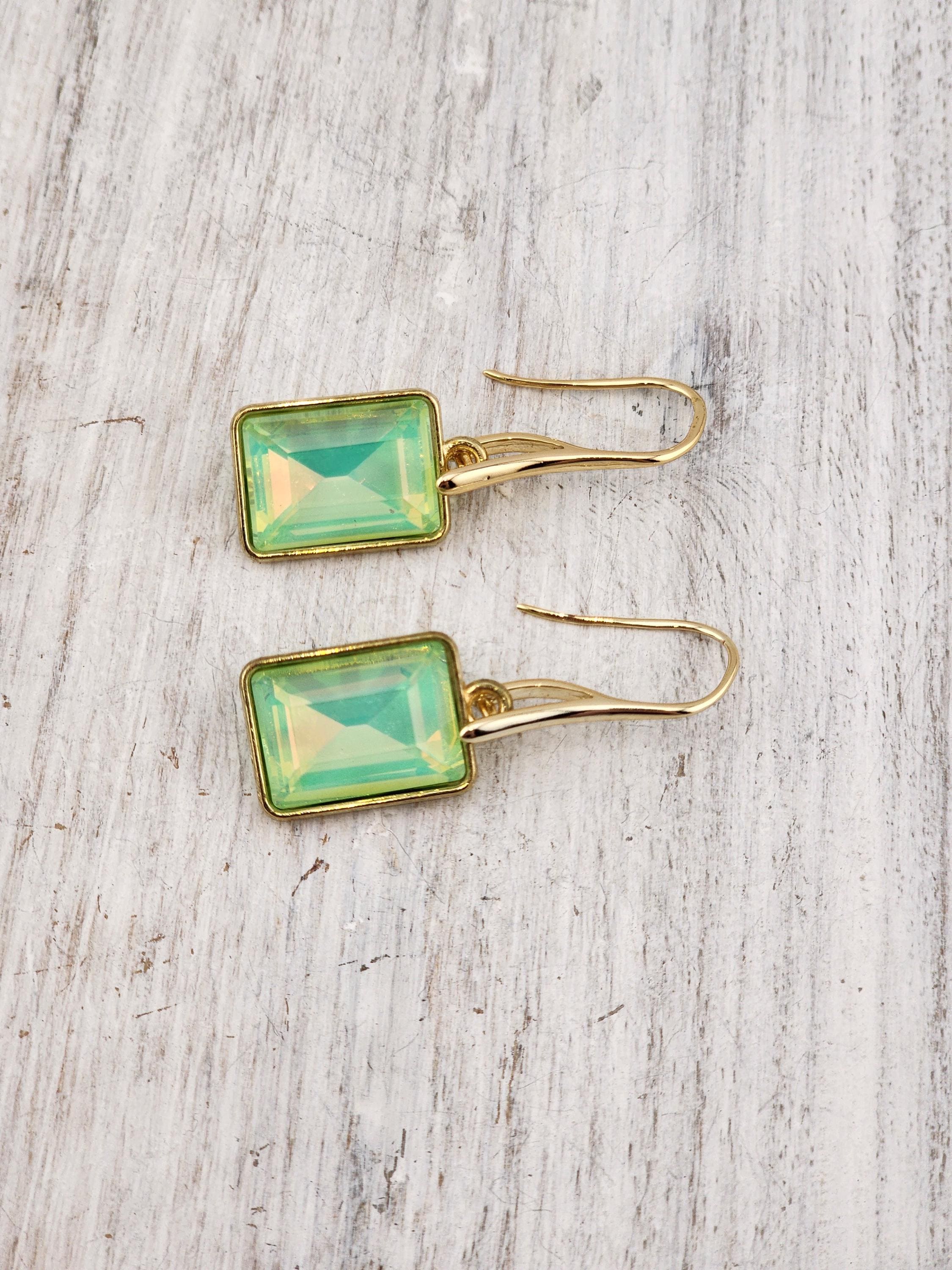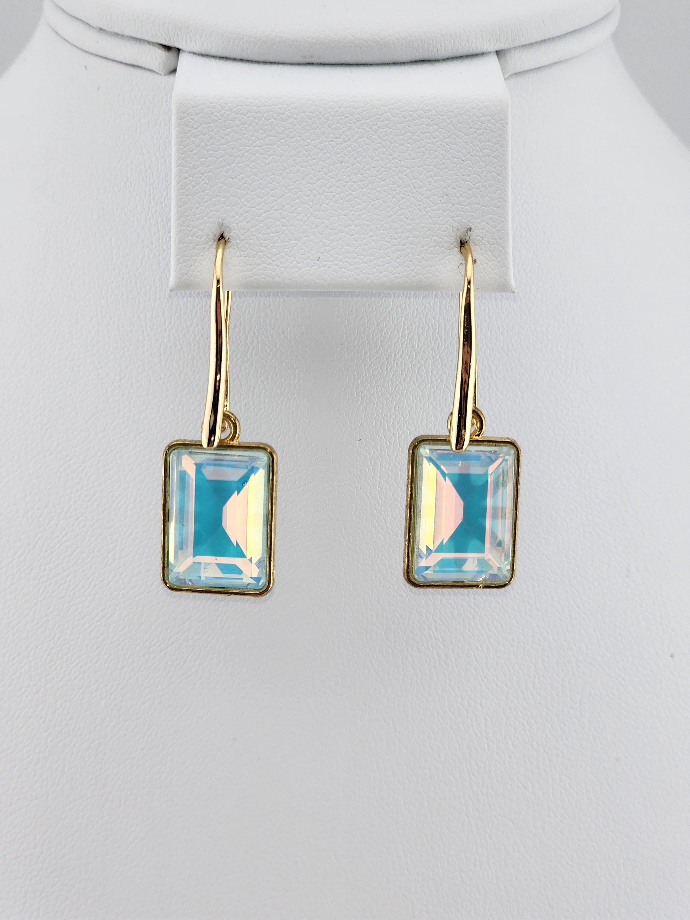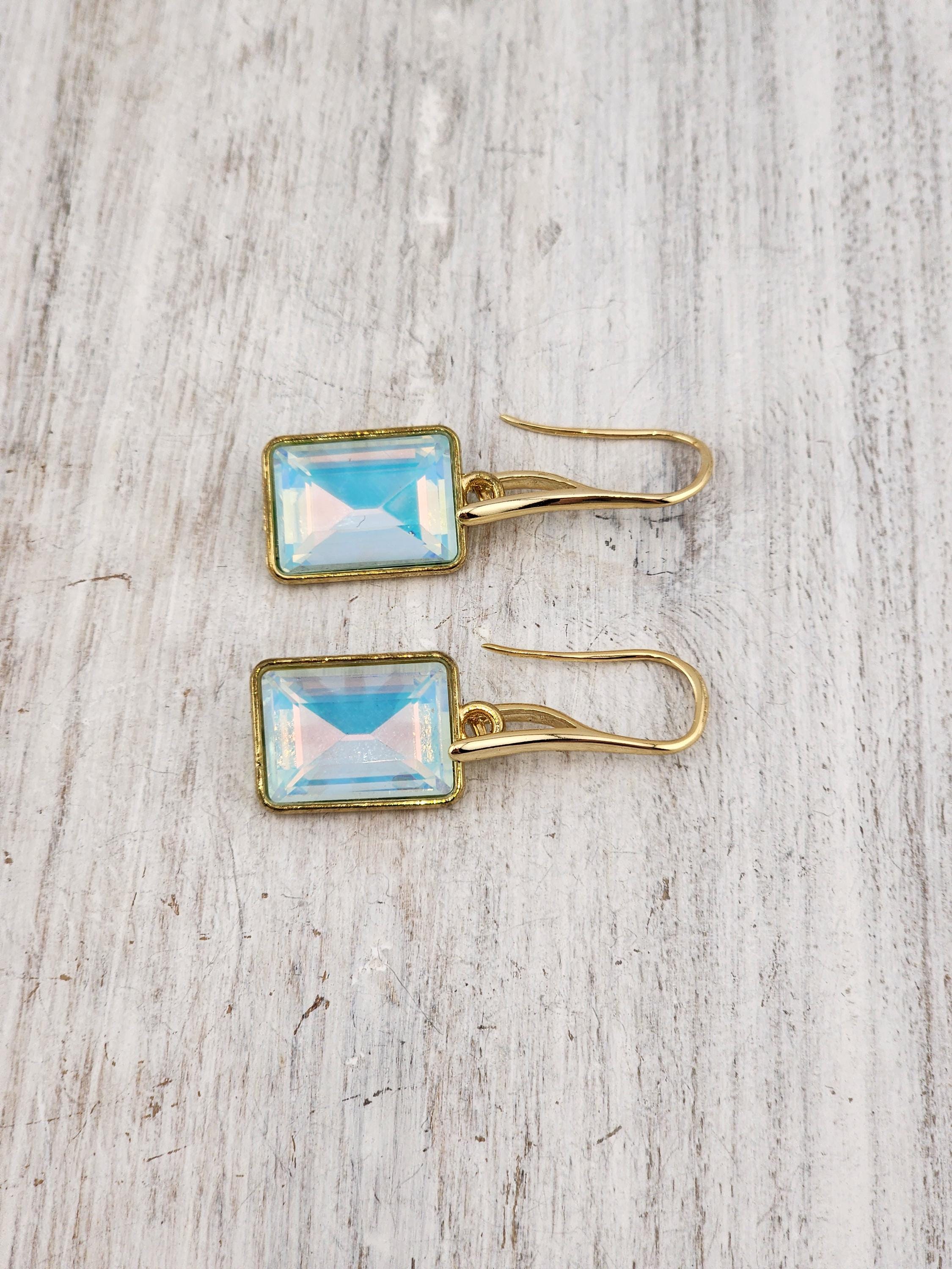 I made these earrings using tarnish resistant 18k gold plated brass wire hooks. From them are multi-color emerald shaped crystal charms. YOUR CHOICES ARE: #1- Pink #2- Yellow #3- Purple #4- Blue #5- Green #6- Peach * Your purchase will arrive in pretty packaging * Shipping is included