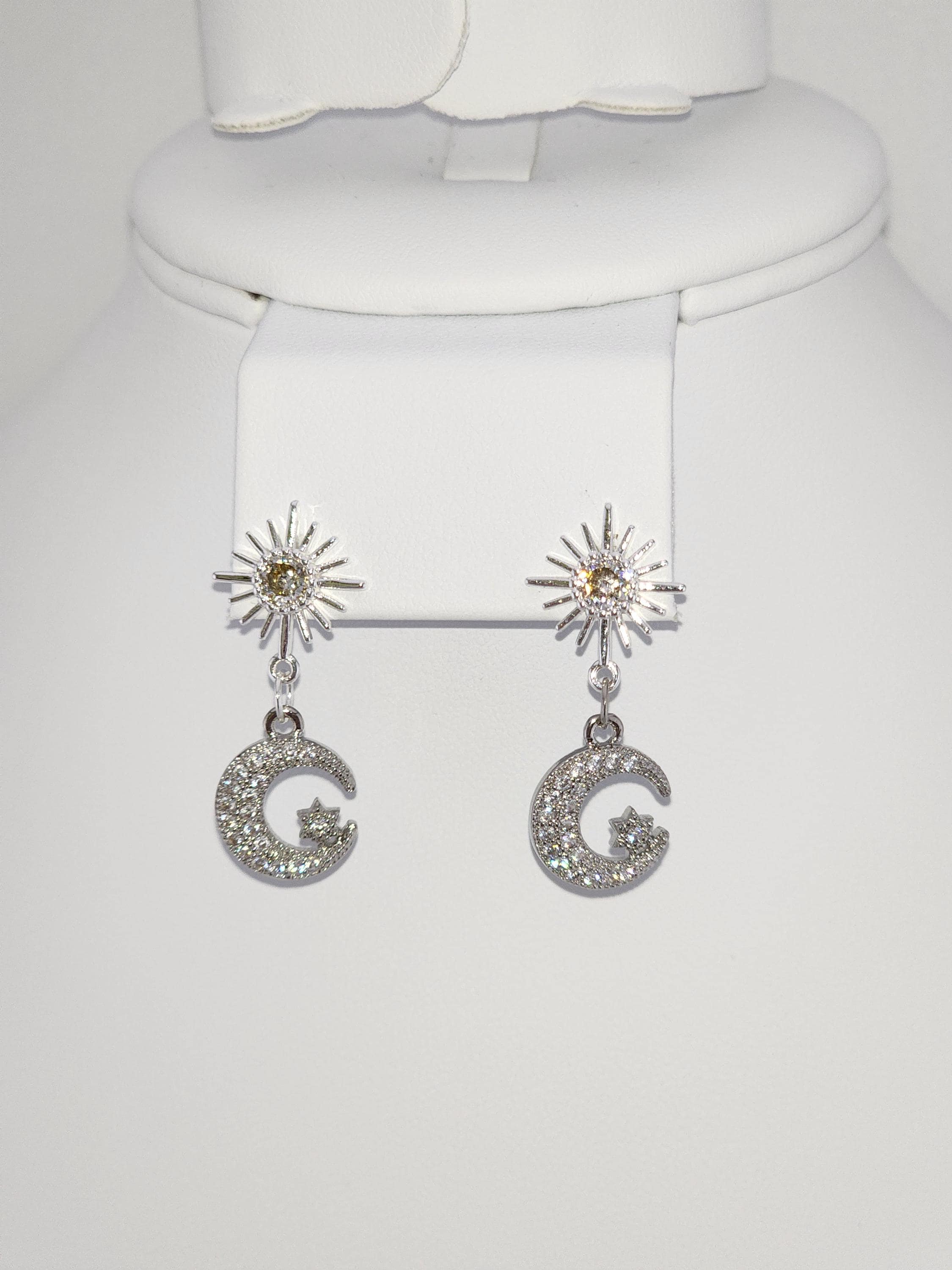 These celestial earrings are so sparkly and pretty. I made them using Sterling Silver plated brass and cubic zirconia crystal sun posts. Then I added using sterling silver connecting rings, silver pava' crystal crescent moon and star charms. * Your purchase will arrive in pretty packaging