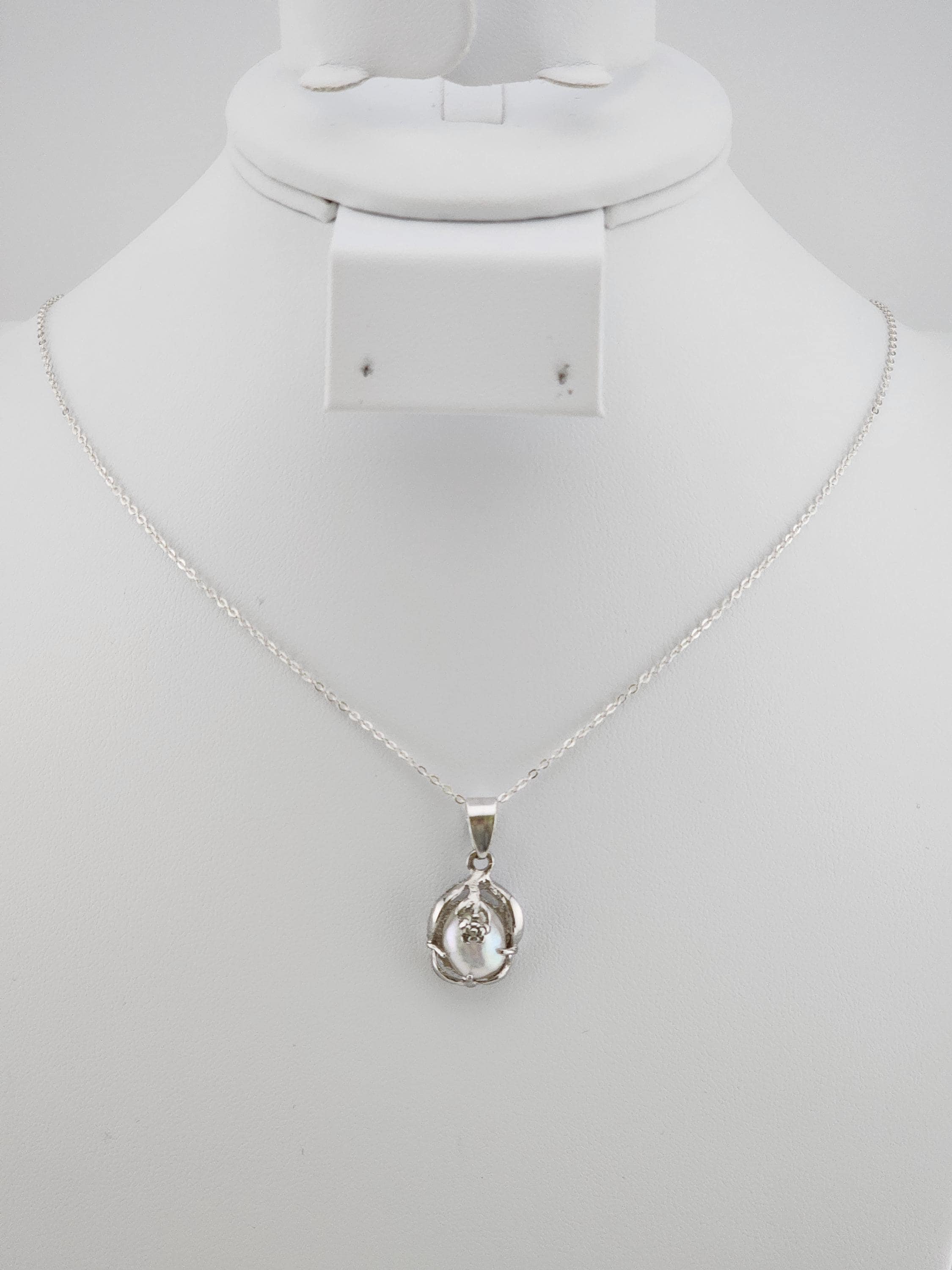 White Freshwater Pearl Pendant on a 925 Sterling Silver Necklace
