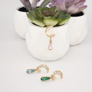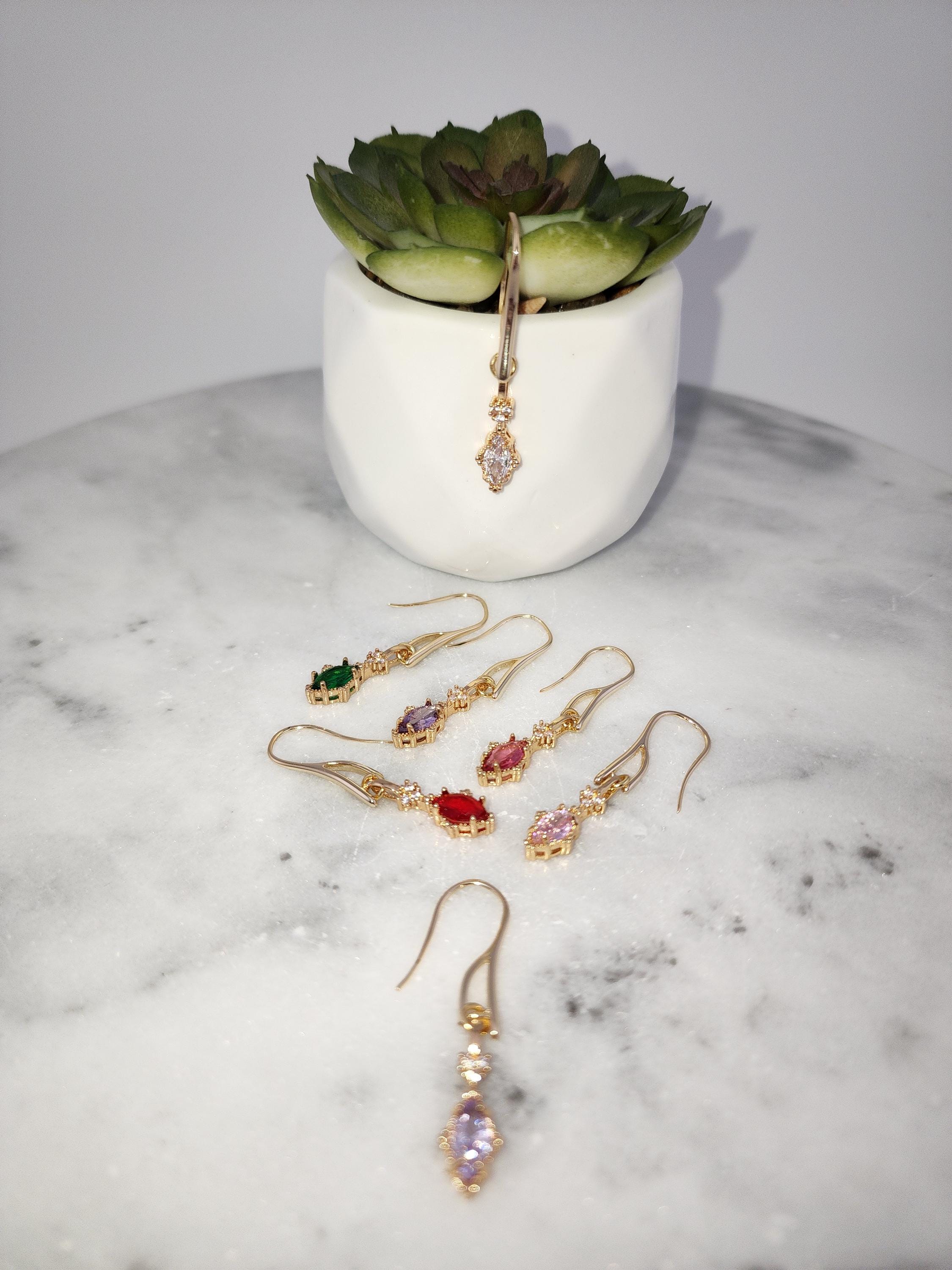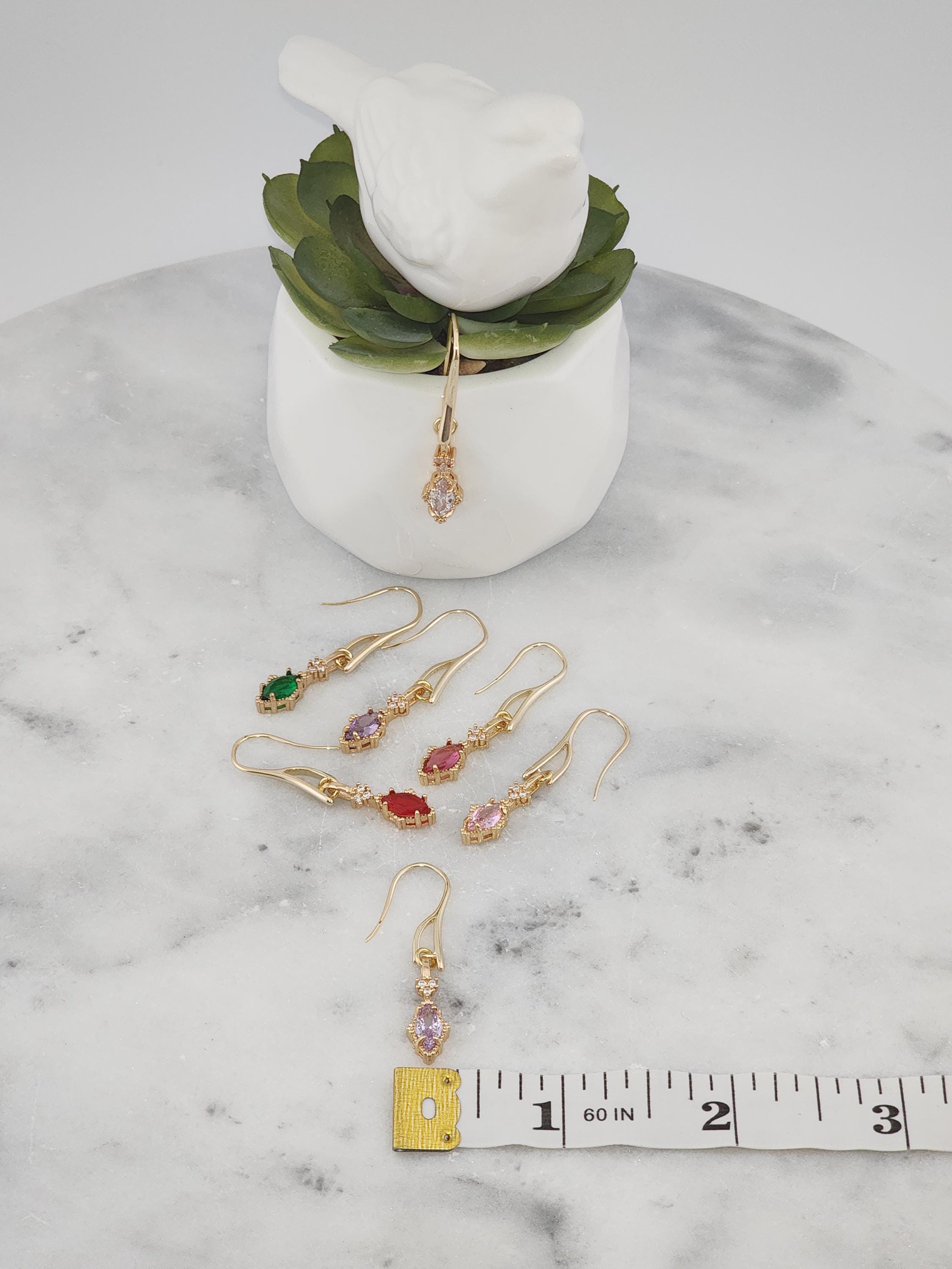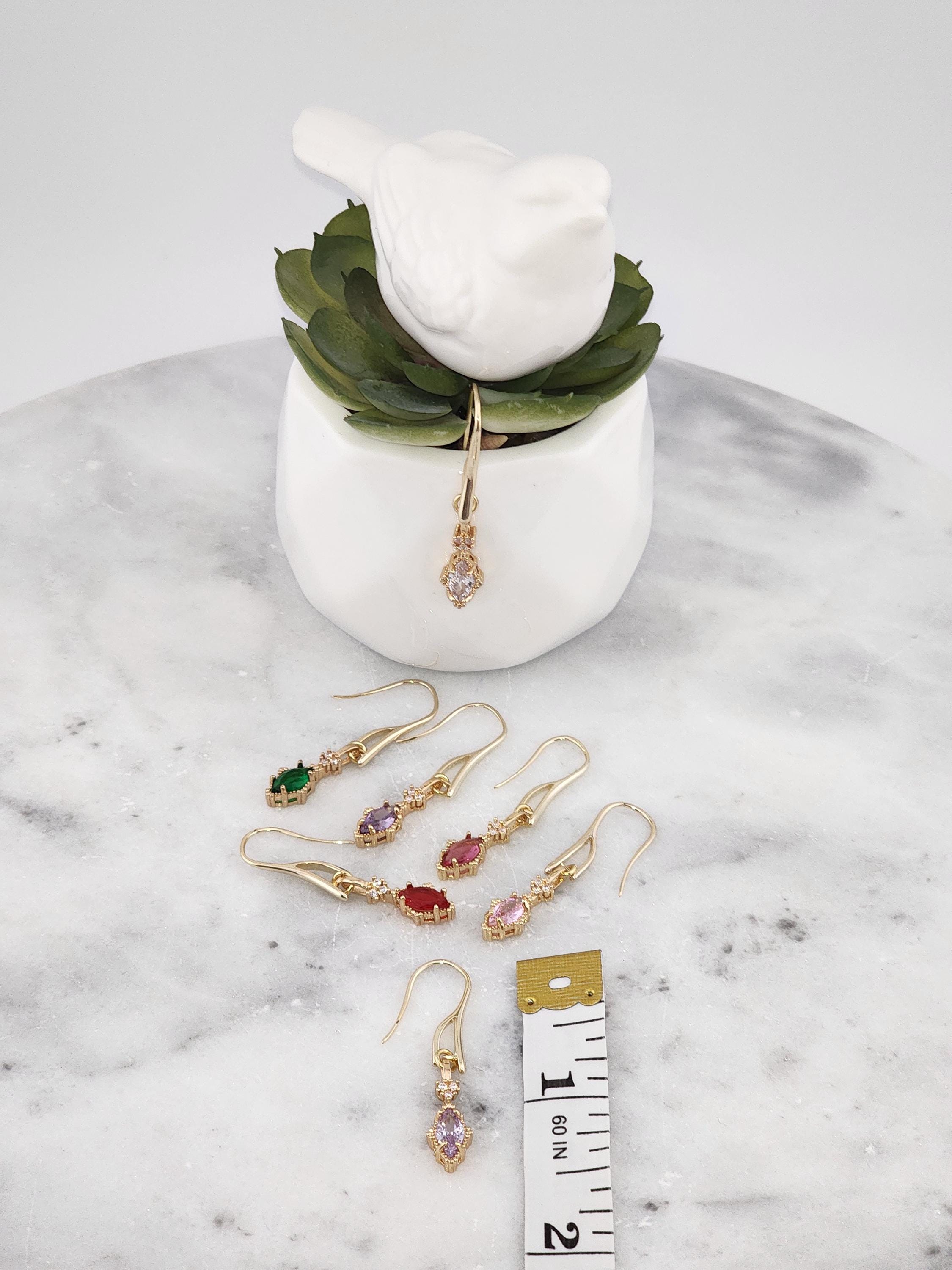 I made these earrings using tarnish resistant 18k gold plated brass wire hooks. From them are a multitude of colorful oval crystal charms set in 18k gold plated brass. YOUR CHOICE OF COLORS ARE: #1- Green #2- Purple #3- Pink #4- Lavender #5- Rose #6- Clear #7- Red * Your purchase will arrive in pretty packaging * Shipping is included