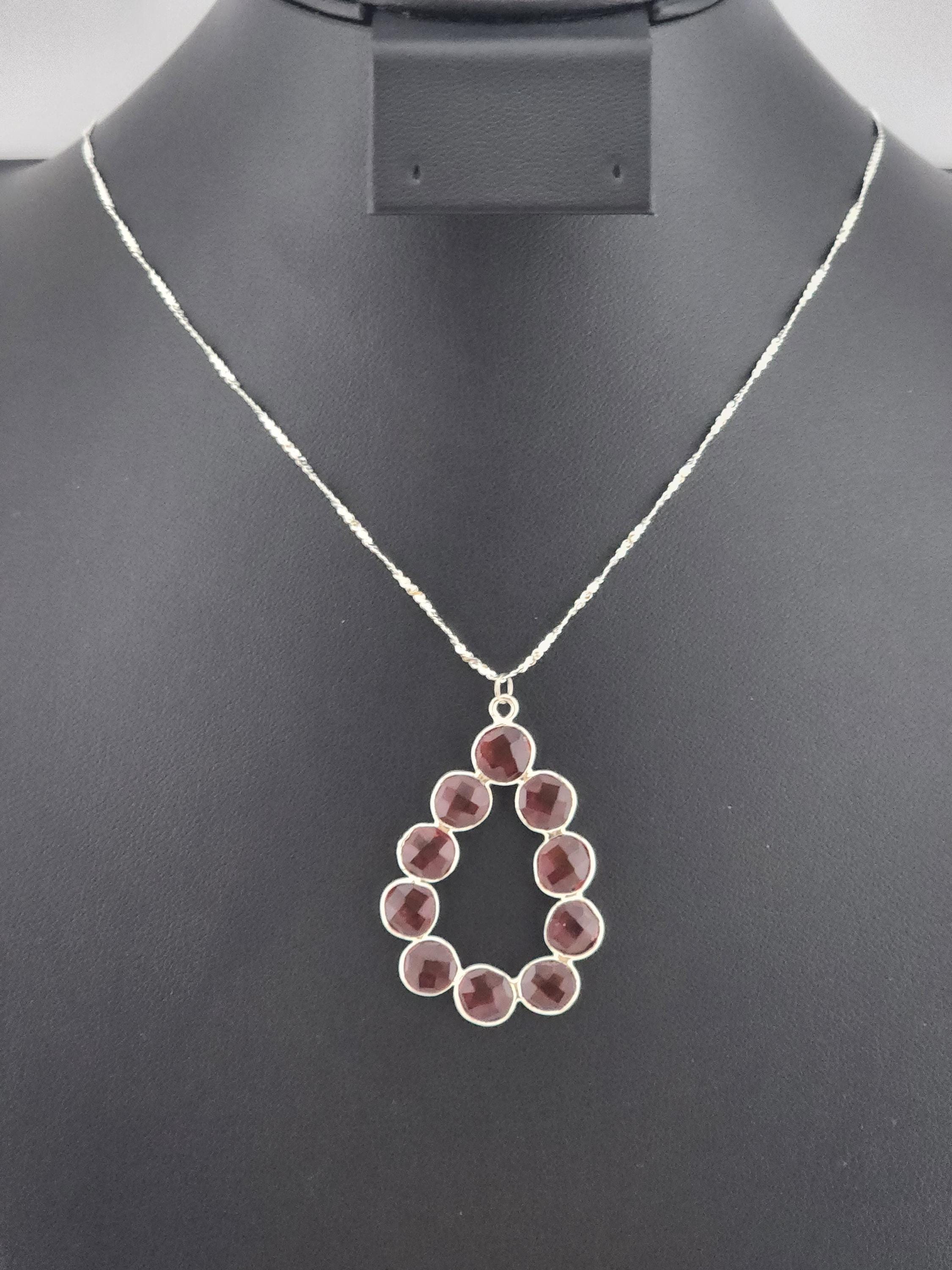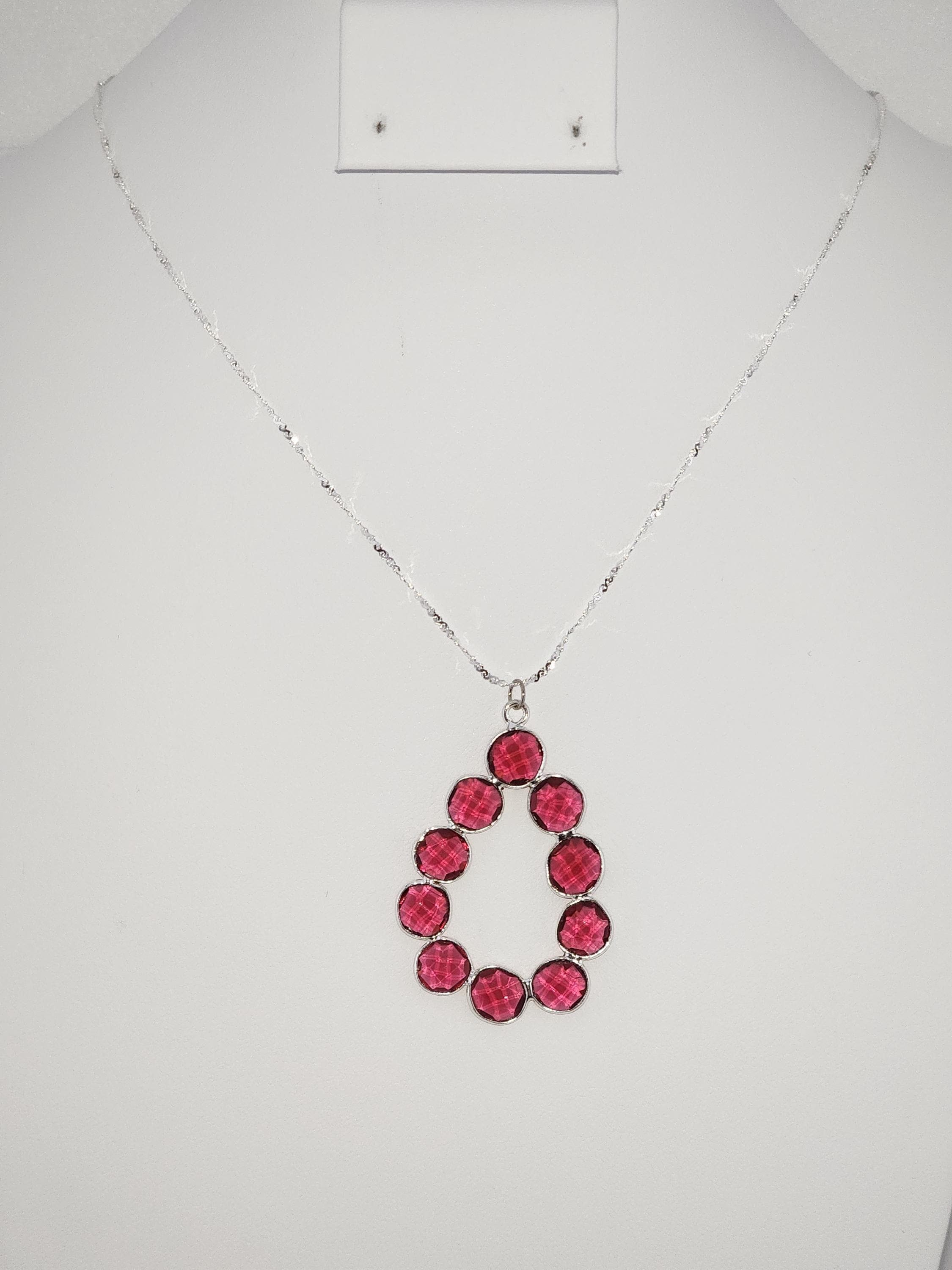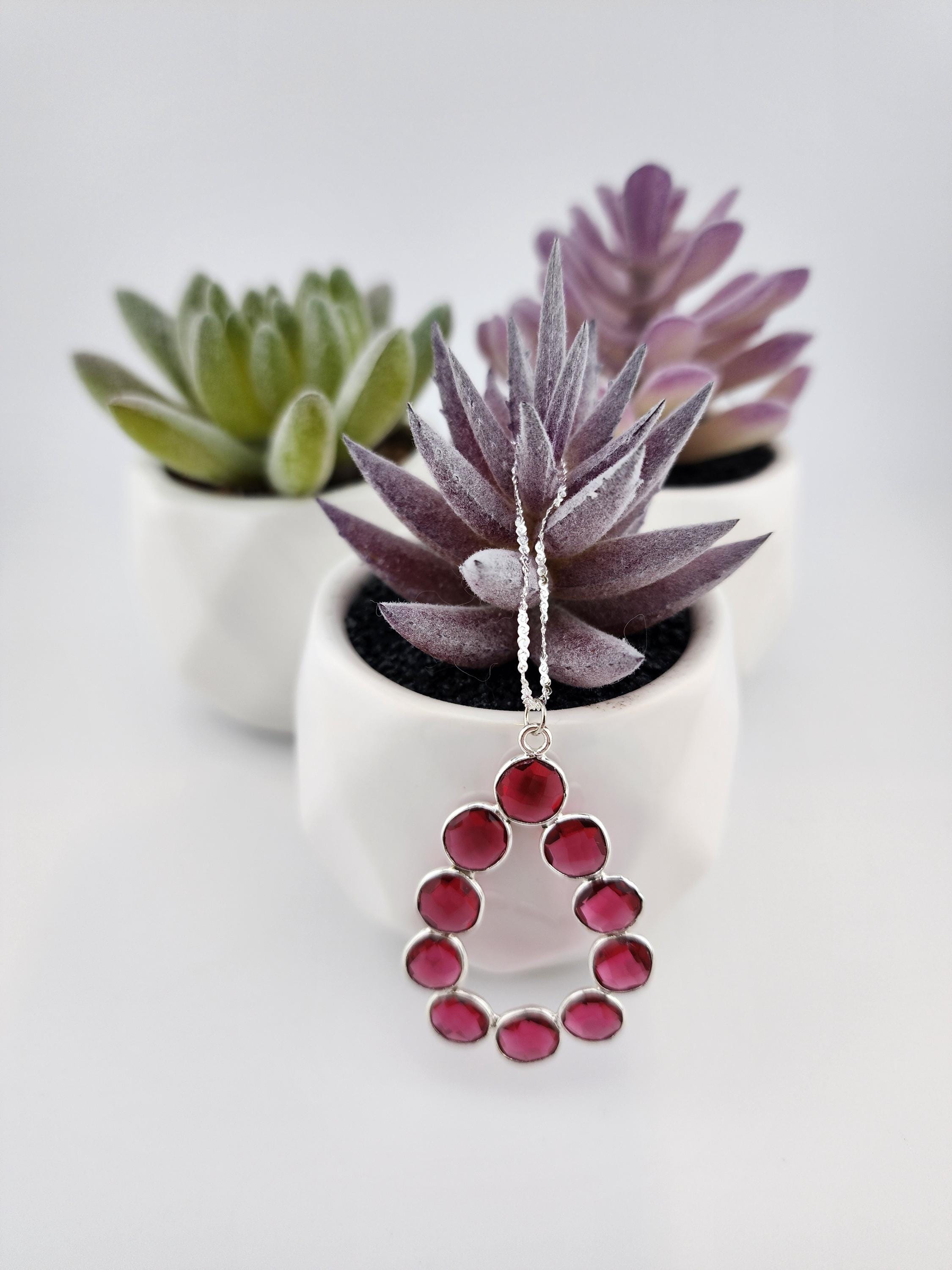 I made this exquisite necklace using elegant twisted 925 sterling silver chain. I added a hollow teardrop shape pendant that has 10 round cut faceted pink tourmaline gemstones, set in 925 sterling silver and hangs from a 925 sterling silver ring. This pendant was handcrafted in India. * Your purchase will arrive in pretty packaging * Shipping is included >>>>>>>>>>>>>>>>>>>>>>>>>>>>>>>>>>>>>>>>>>>>>>>>>>>>>>>>>>>>>>>>>>>>>>>>>>>>>>>>>>>>>>>>> EMOTIONAL AND MENTAL BENEFITS OF TOURMALINE: * Heart Healing: Encouraging love, compassion, and forgiveness for self and others. * Stress Relief: Provides a calming, soothing energy, acting as a "warm hug" for the nervous system and easing anxiety. * Releases Negativity: Helps to let go of past wounds, burdens, and negative energy, bringing clarity and peace. * Boosts Self-Love: Encourages self-acceptance, confidence, and feeling worthy of love. OR, SO THEY SAY... >>>>>>>>>>>>>>>>>>>>>>>>>>>>>>>>>>>>>>>>>>>>>>>>>>>>>>>>>>>>>>>>>>>>>>>>>>>>>>>>>>>>>>>> HEALTH AND WELLNESS BENEFITS OF WEARING STERLING SILVER: * Hypoallergenic: Sterling silver is less likely to cause allergic reactions, making it a safe choice for people with sensitive skin. * Antimicrobial properties: Silver has natural antibacterial and antifungal qualities that can help protect against harmful microorganisms. * Temperature regulation: Silver is highly thermally conductive, which may help balance body temperature and provide a cooling sensation in hot weather. * Immune support: Some sources suggest that wearing silver can help boost the immune system and circulation. *Stress reduction: Wearing silver is believed to have a calming effect, helping to reduce stress, anxiety, and improve mood. >>>>>>>>>>>>>>>>>>>>>>>>>>>>>>>>>>>>>>>>>>>>>>>>>>>>>>>>>>>>>>>>>>>>>>>>>>>>>>>>>>>>>>>>> PRACTICAL AND AESTHETIC BENEFITS: * Durability: The addition of other metals like copper makes sterling silver more durable and resistant to scratching and wear than pure silver. * Affordability: It is a more affordable precious metal compared to gold or platinum, offering a luxurious feel at a lower price point. * Versatility: Sterling silver's timeless, striking color is flattering on most skin tones and complements a wide variety of styles and outfits. * Easy to maintain: It is relatively low-maintenance and can be cleaned and polished to restore its shine.