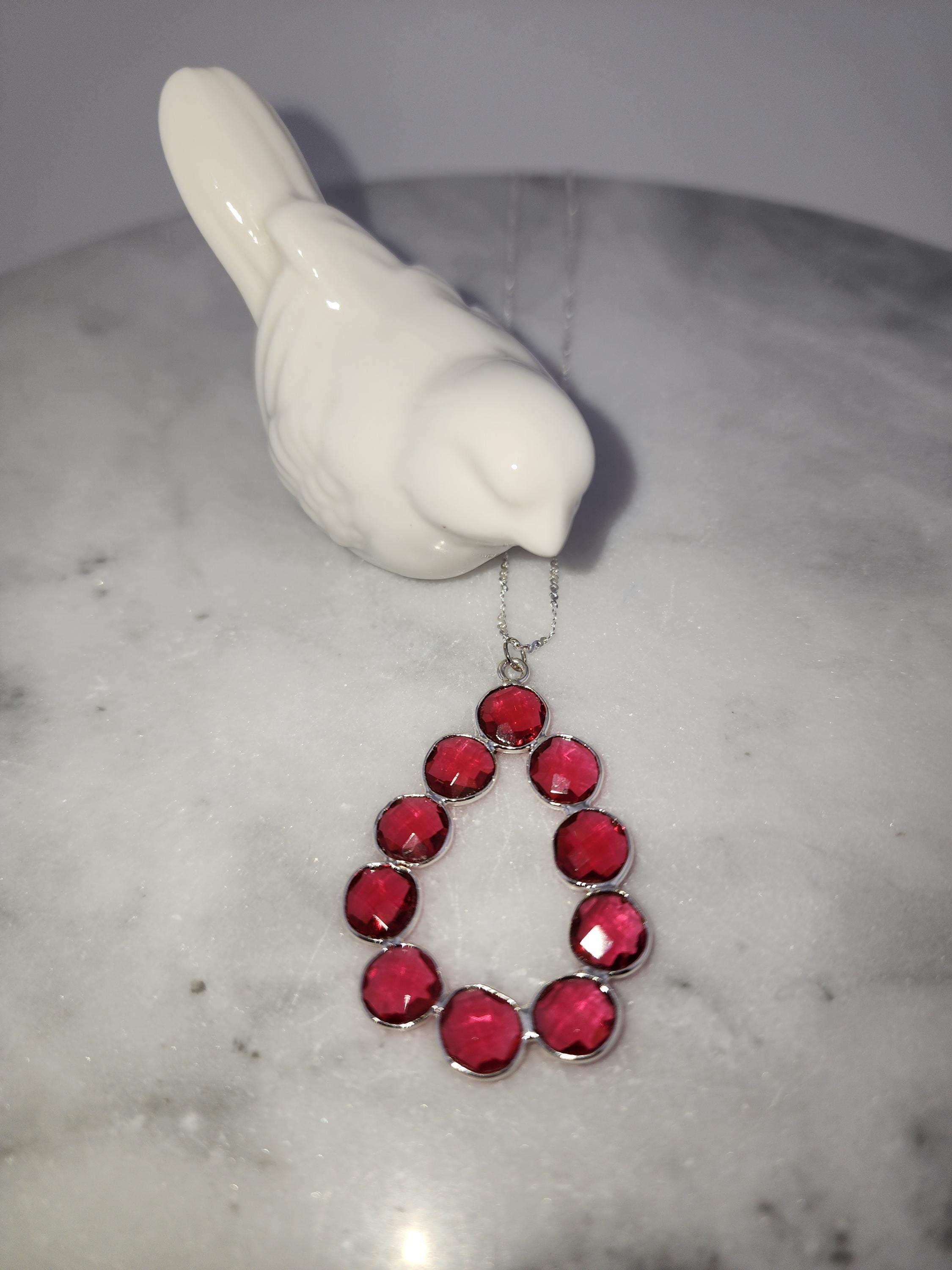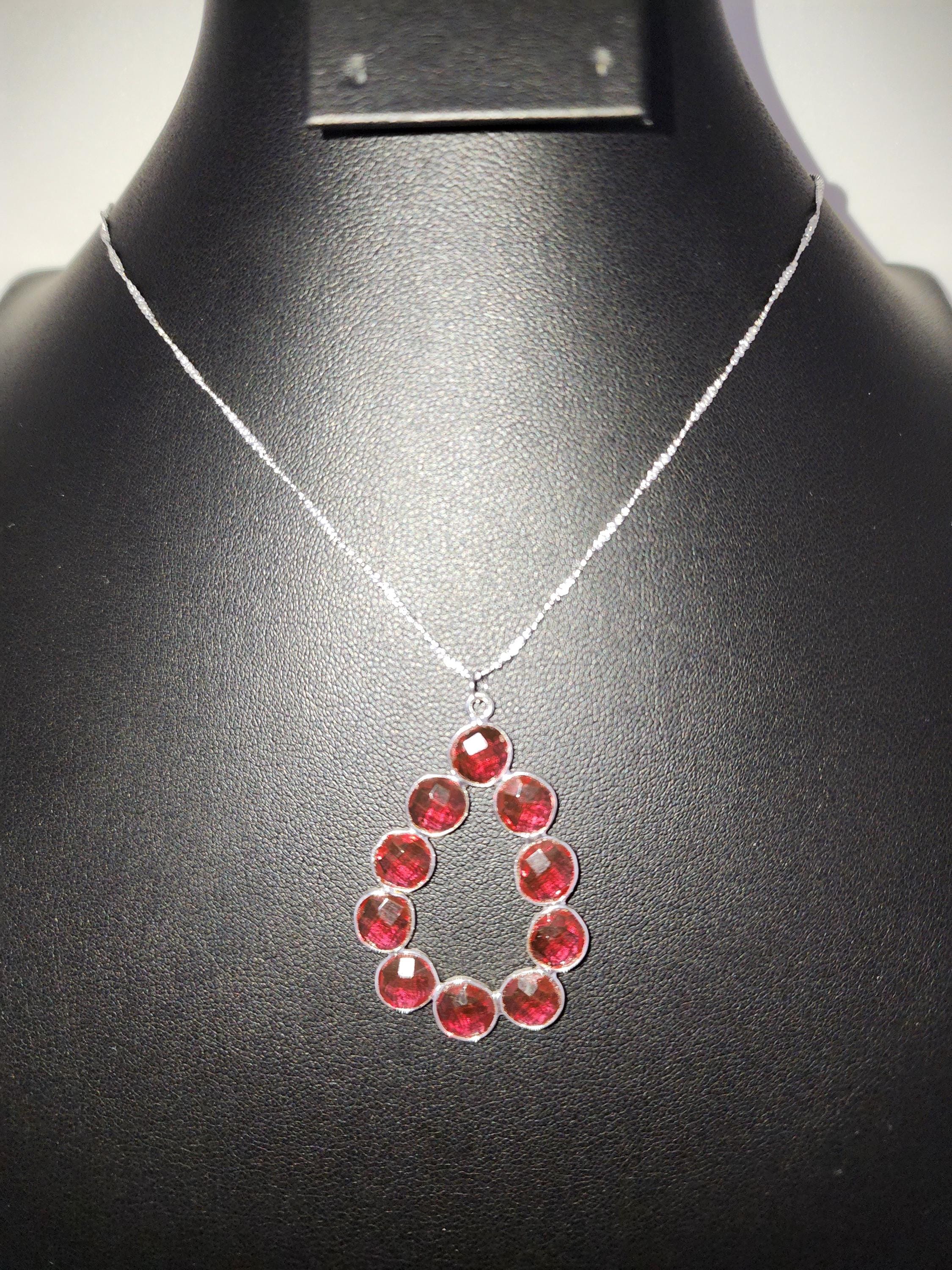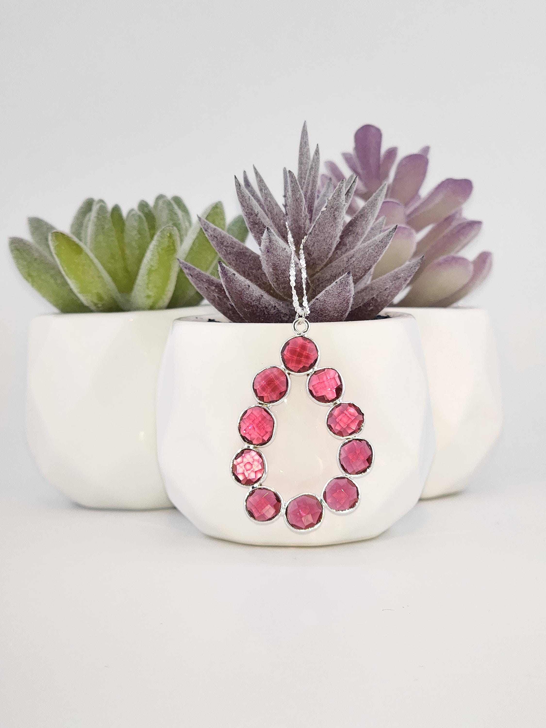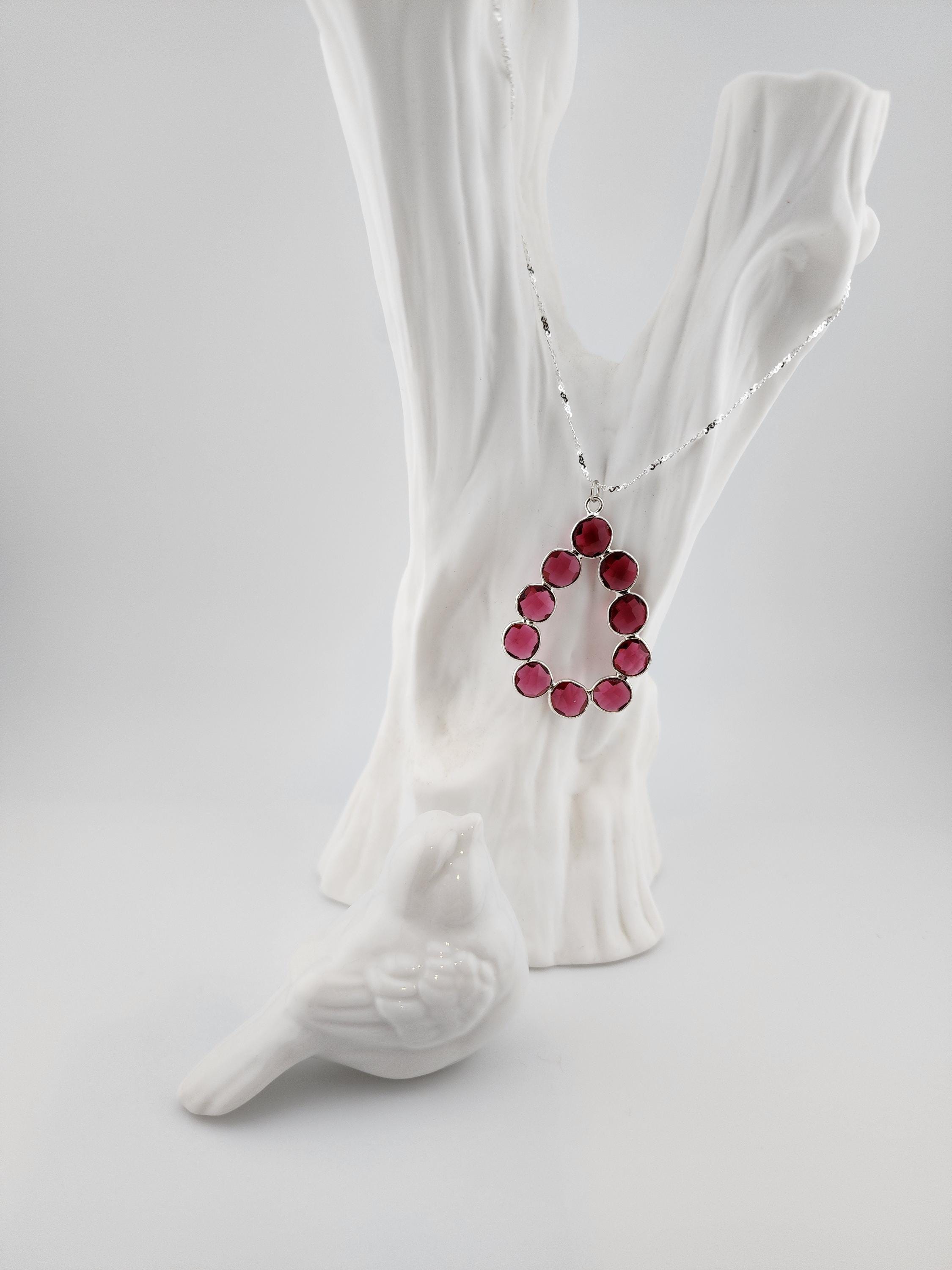 I made this exquisite necklace using elegant twisted 925 sterling silver chain. I added a hollow teardrop shape pendant that has 10 round cut faceted pink tourmaline gemstones, set in 925 sterling silver and hangs from a 925 sterling silver ring. This pendant was handcrafted in India. * Your purchase will arrive in pretty packaging * Shipping is included >>>>>>>>>>>>>>>>>>>>>>>>>>>>>>>>>>>>>>>>>>>>>>>>>>>>>>>>>>>>>>>>>>>>>>>>>>>>>>>>>>>>>>>>> EMOTIONAL AND MENTAL BENEFITS OF TOURMALINE: * Heart Healing: Encouraging love, compassion, and forgiveness for self and others. * Stress Relief: Provides a calming, soothing energy, acting as a "warm hug" for the nervous system and easing anxiety. * Releases Negativity: Helps to let go of past wounds, burdens, and negative energy, bringing clarity and peace. * Boosts Self-Love: Encourages self-acceptance, confidence, and feeling worthy of love. OR, SO THEY SAY... >>>>>>>>>>>>>>>>>>>>>>>>>>>>>>>>>>>>>>>>>>>>>>>>>>>>>>>>>>>>>>>>>>>>>>>>>>>>>>>>>>>>>>>> HEALTH AND WELLNESS BENEFITS OF WEARING STERLING SILVER: * Hypoallergenic: Sterling silver is less likely to cause allergic reactions, making it a safe choice for people with sensitive skin. * Antimicrobial properties: Silver has natural antibacterial and antifungal qualities that can help protect against harmful microorganisms. * Temperature regulation: Silver is highly thermally conductive, which may help balance body temperature and provide a cooling sensation in hot weather. * Immune support: Some sources suggest that wearing silver can help boost the immune system and circulation. *Stress reduction: Wearing silver is believed to have a calming effect, helping to reduce stress, anxiety, and improve mood. >>>>>>>>>>>>>>>>>>>>>>>>>>>>>>>>>>>>>>>>>>>>>>>>>>>>>>>>>>>>>>>>>>>>>>>>>>>>>>>>>>>>>>>>> PRACTICAL AND AESTHETIC BENEFITS: * Durability: The addition of other metals like copper makes sterling silver more durable and resistant to scratching and wear than pure silver. * Affordability: It is a more affordable precious metal compared to gold or platinum, offering a luxurious feel at a lower price point. * Versatility: Sterling silver's timeless, striking color is flattering on most skin tones and complements a wide variety of styles and outfits. * Easy to maintain: It is relatively low-maintenance and can be cleaned and polished to restore its shine.