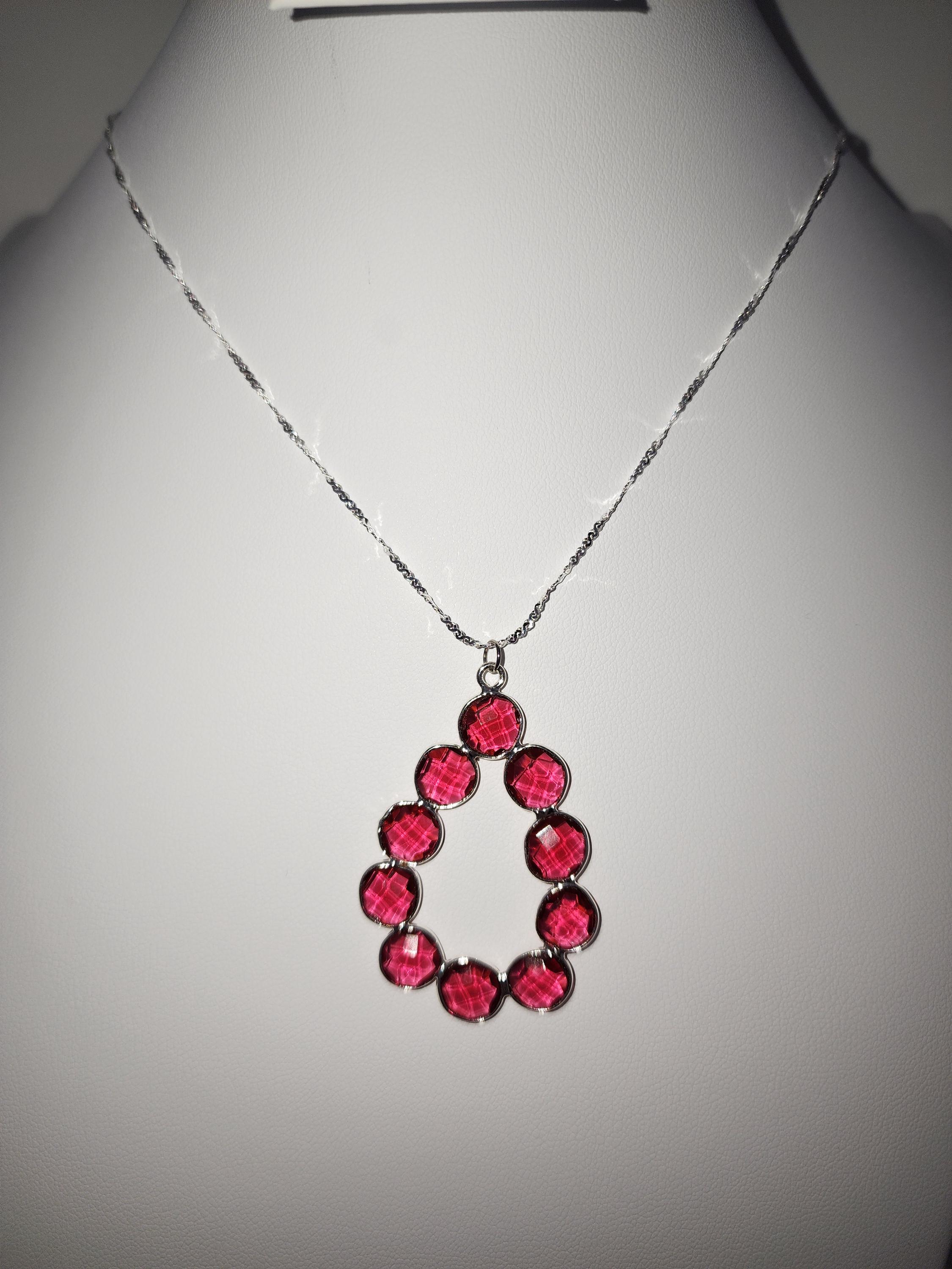I made this exquisite necklace using elegant twisted 925 sterling silver chain. I added a hollow teardrop shape pendant that has 10 round cut faceted pink tourmaline gemstones, set in 925 sterling silver and hangs from a 925 sterling silver ring. This pendant was handcrafted in India. * Your purchase will arrive in pretty packaging >>>>>>>>>>>>>>>>>>>>>>>>>>>>>>>>>>>>>>>>>>>>>>>>>>>>>>>>>>>>>>>>>>>>>>>>>>>>>>>>>>>>>>>>> EMOTIONAL AND MENTAL BENEFITS OF TOURMALINE: * Heart Healing: Encouraging love, compassion, and forgiveness for self and others. * Stress Relief: Provides a calming, soothing energy, acting as a "warm hug" for the nervous system and easing anxiety. * Releases Negativity: Helps to let go of past wounds, burdens, and negative energy, bringing clarity and peace. * Boosts Self-Love: Encourages self-acceptance, confidence, and feeling worthy of love. OR, SO THEY SAY... >>>>>>>>>>>>>>>>>>>>>>>>>>>>>>>>>>>>>>>>>>>>>>>>>>>>>>>>>>>>>>>>>>>>>>>>>>>>>>>>>>>>>>>> HEALTH AND WELLNESS BENEFITS OF WEARING STERLING SILVER: * Hypoallergenic: Sterling silver is less likely to cause allergic reactions, making it a safe choice for people with sensitive skin. * Antimicrobial properties: Silver has natural antibacterial and antifungal qualities that can help protect against harmful microorganisms. * Temperature regulation: Silver is highly thermally conductive, which may help balance body temperature and provide a cooling sensation in hot weather. * Immune support: Some sources suggest that wearing silver can help boost the immune system and circulation. *Stress reduction: Wearing silver is believed to have a calming effect, helping to reduce stress, anxiety, and improve mood. >>>>>>>>>>>>>>>>>>>>>>>>>>>>>>>>>>>>>>>>>>>>>>>>>>>>>>>>>>>>>>>>>>>>>>>>>>>>>>>>>>>>>>>>> PRACTICAL AND AESTHETIC BENEFITS: * Durability: The addition of other metals like copper makes sterling silver more durable and resistant to scratching and wear than pure silver. * Affordability: It is a more affordable precious metal compared to gold or platinum, offering a luxurious feel at a lower price point. * Versatility: Sterling silver's timeless, striking color is flattering on most skin tones and complements a wide variety of styles and outfits. * Easy to maintain: It is relatively low-maintenance and can be cleaned and polished to restore its shine.