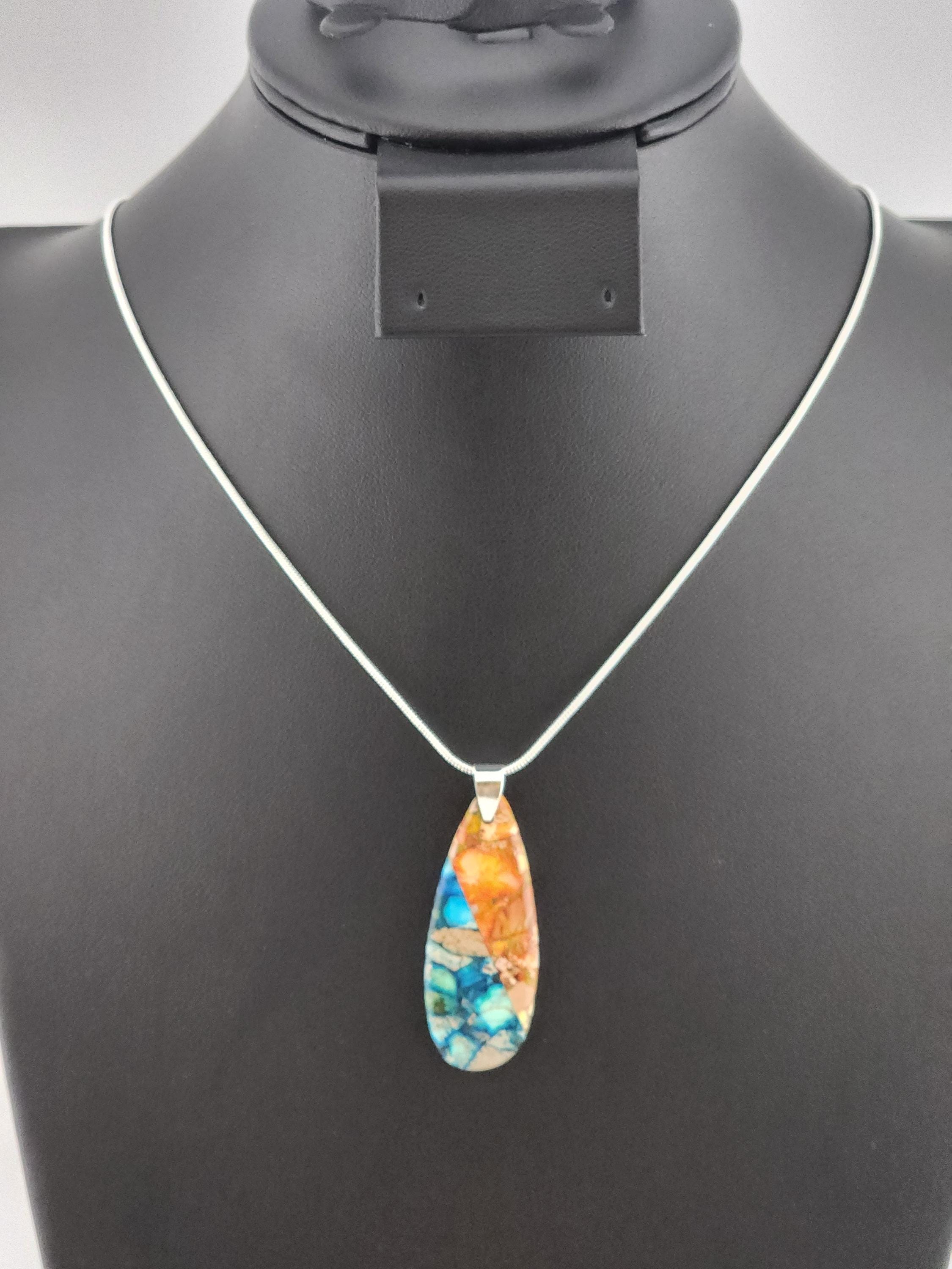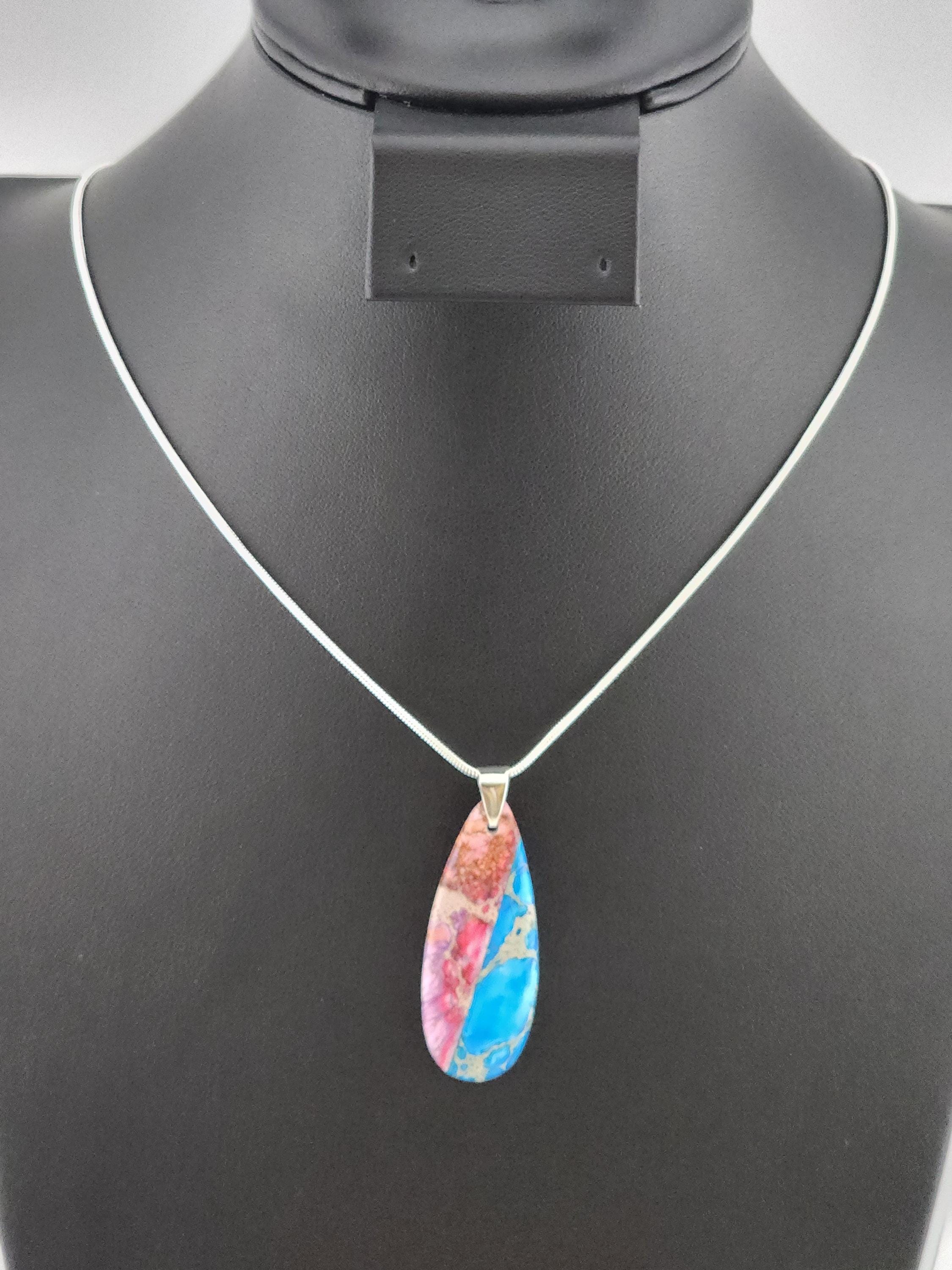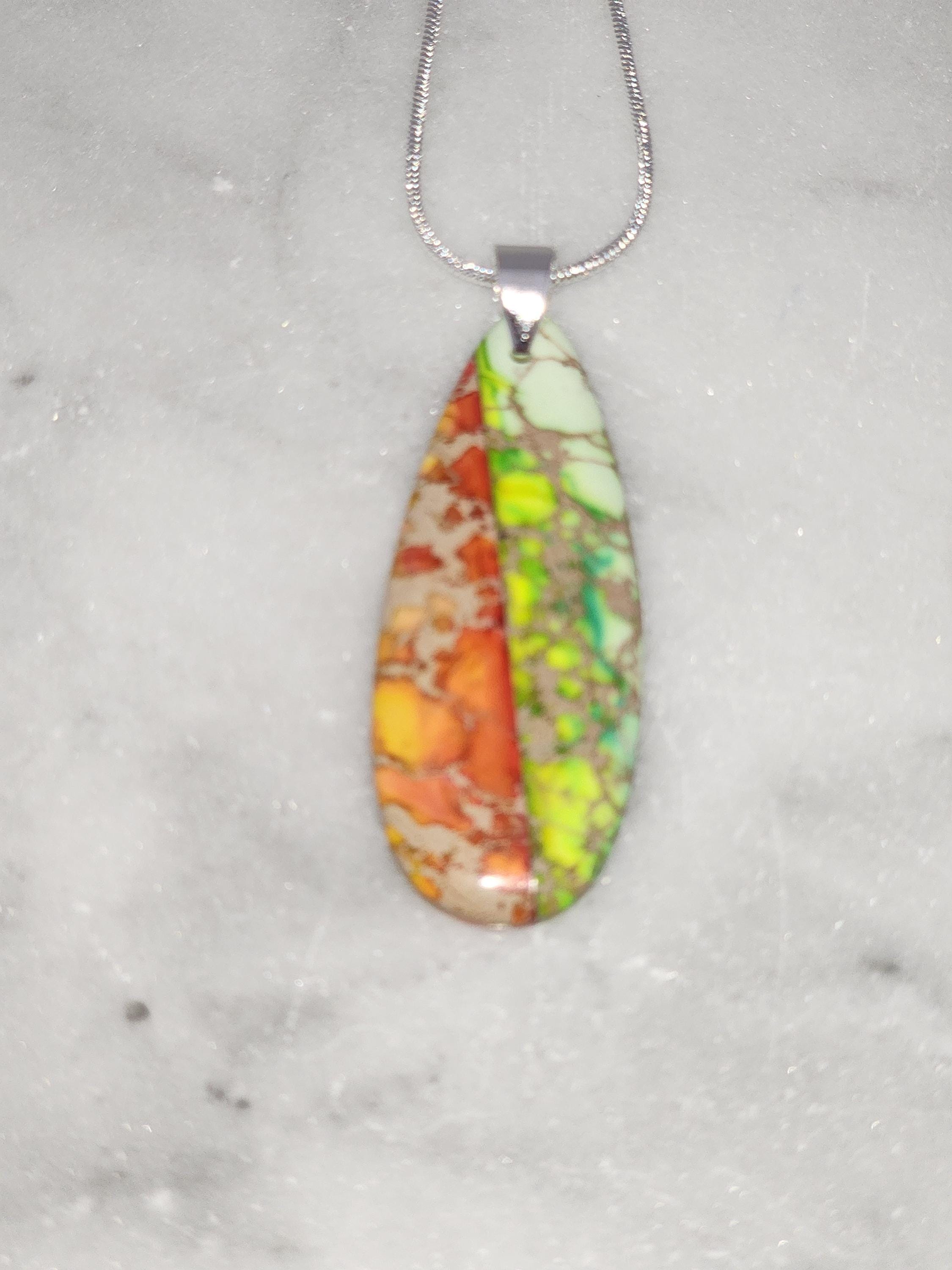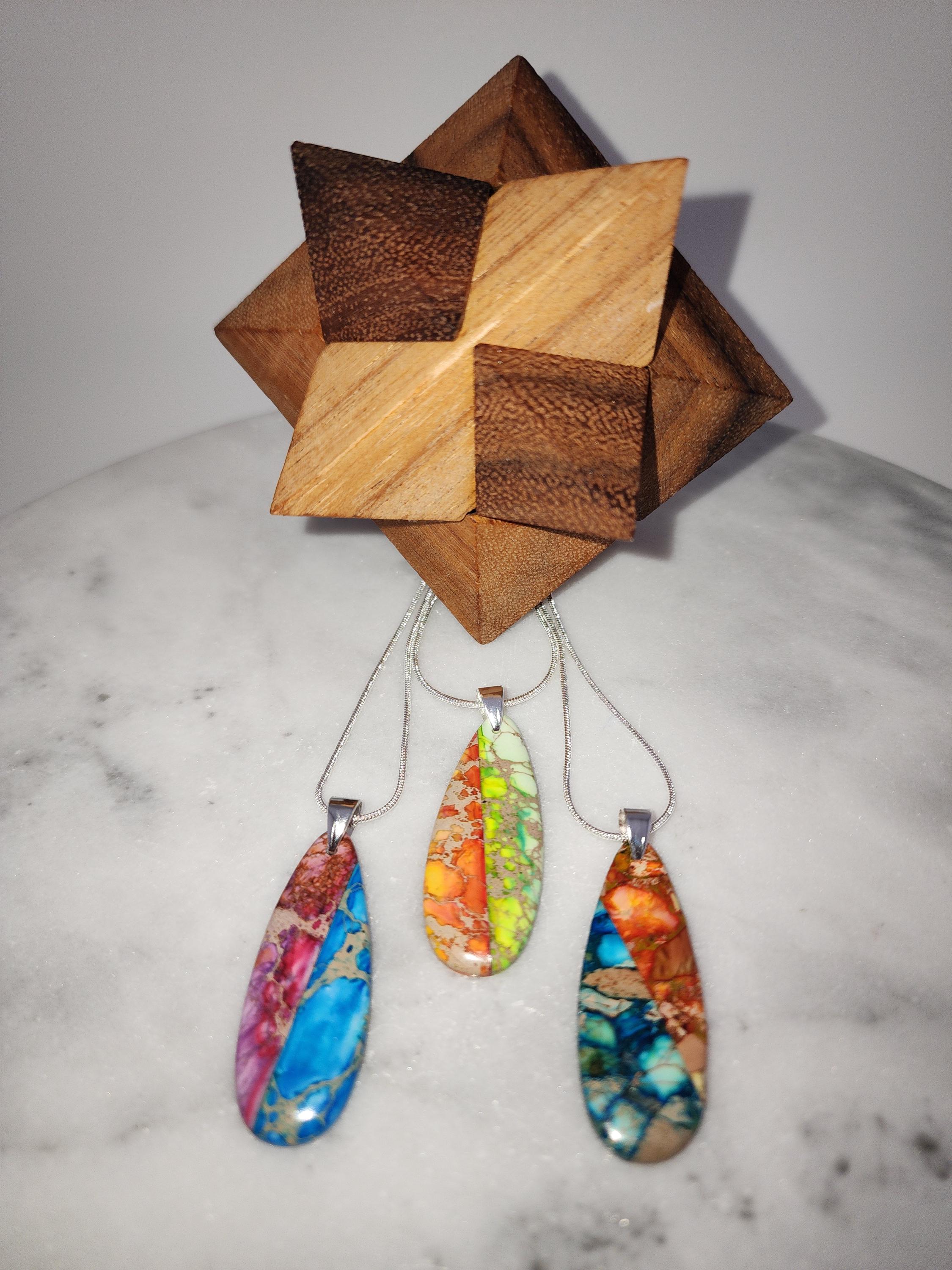 I made these Boho necklaces using delicate 925 sterling silver rope chain. The pendants are long teardrop Imperial Jasper in multiple colors. YOUR CHOICES OF COLORS ARE: #1- Purple/Blue #2- Orange/Yellow #3- Blue/Orange * Your purchase will arrive in pretty packaging * Shipping is included
