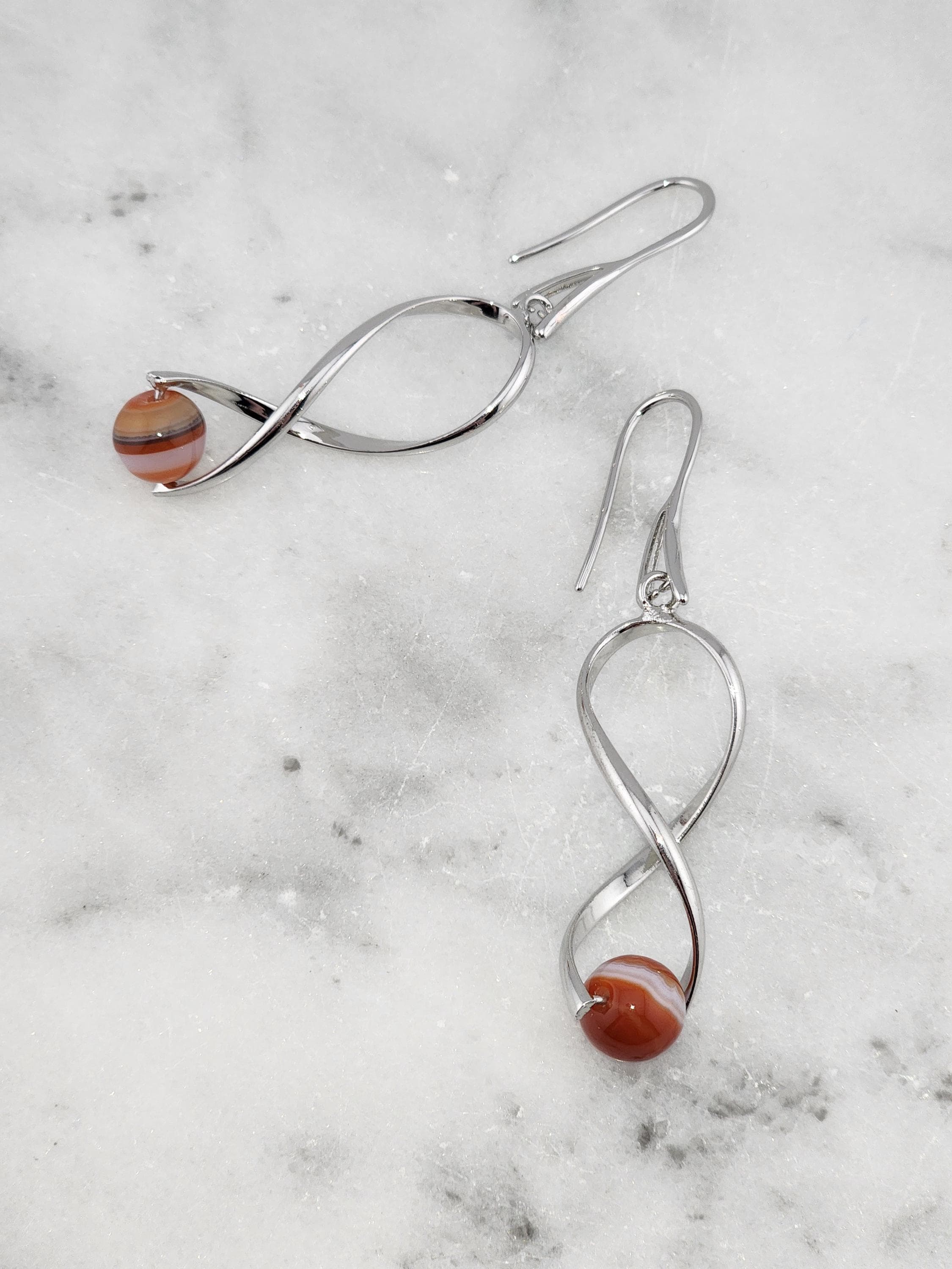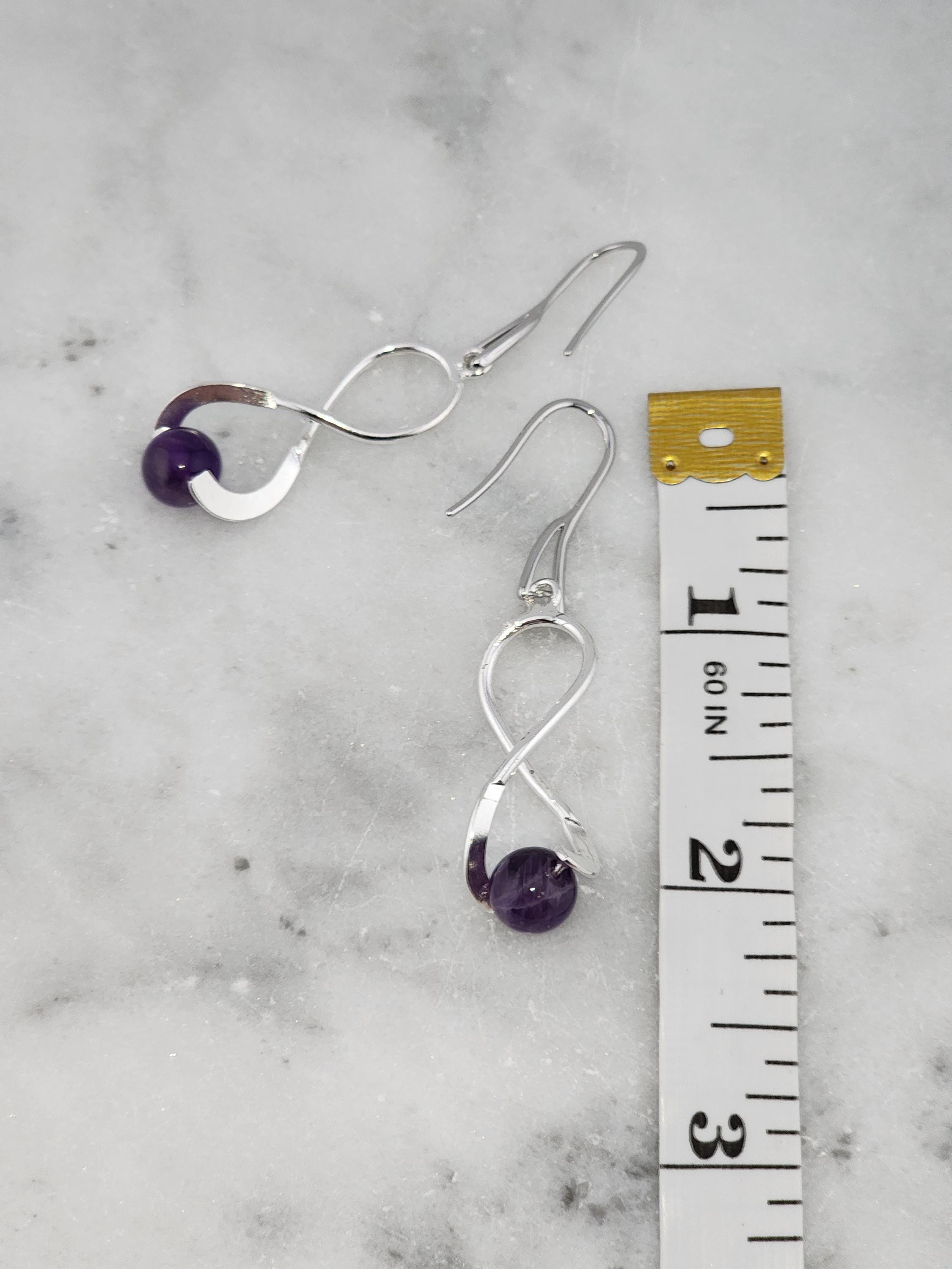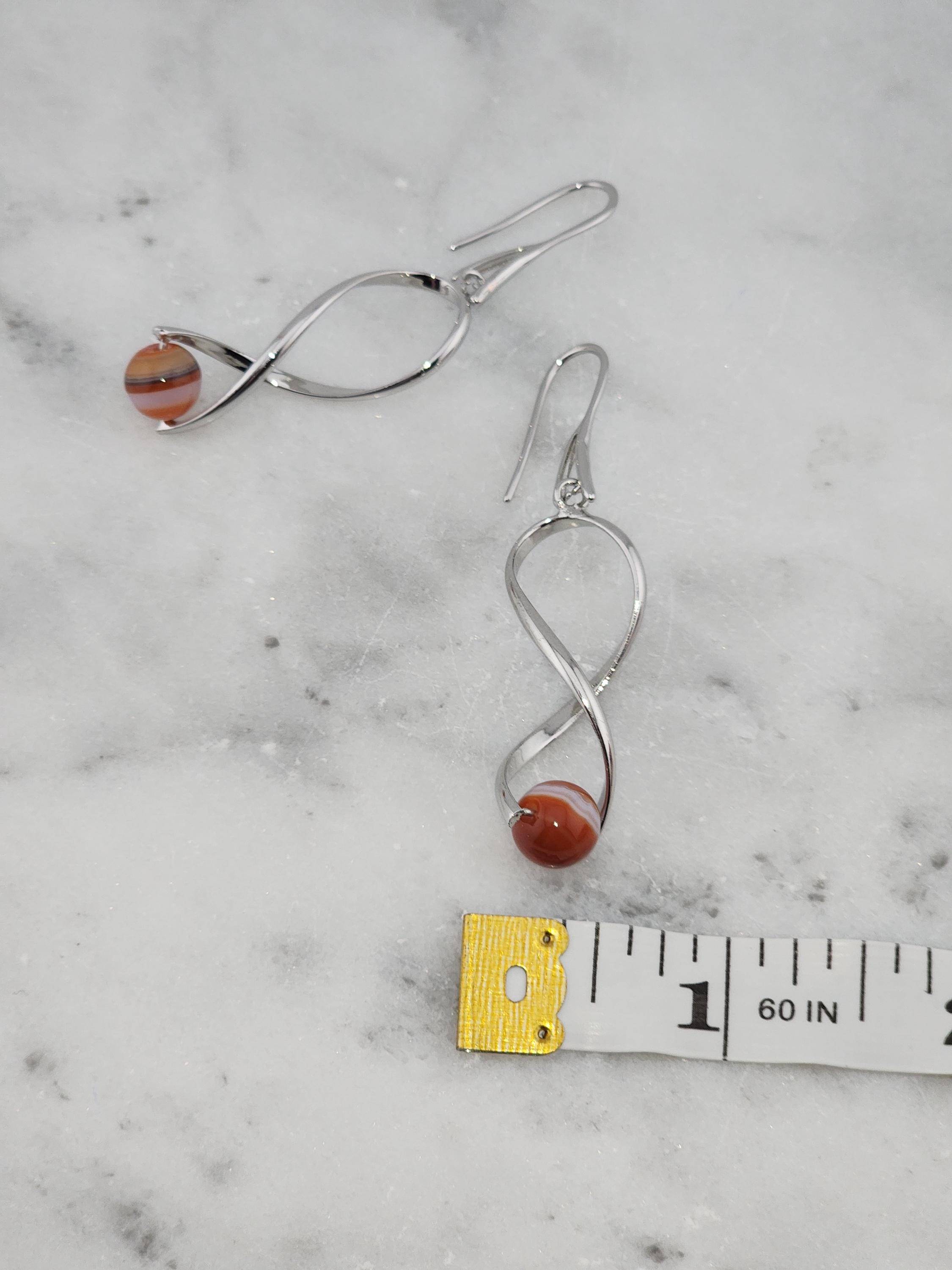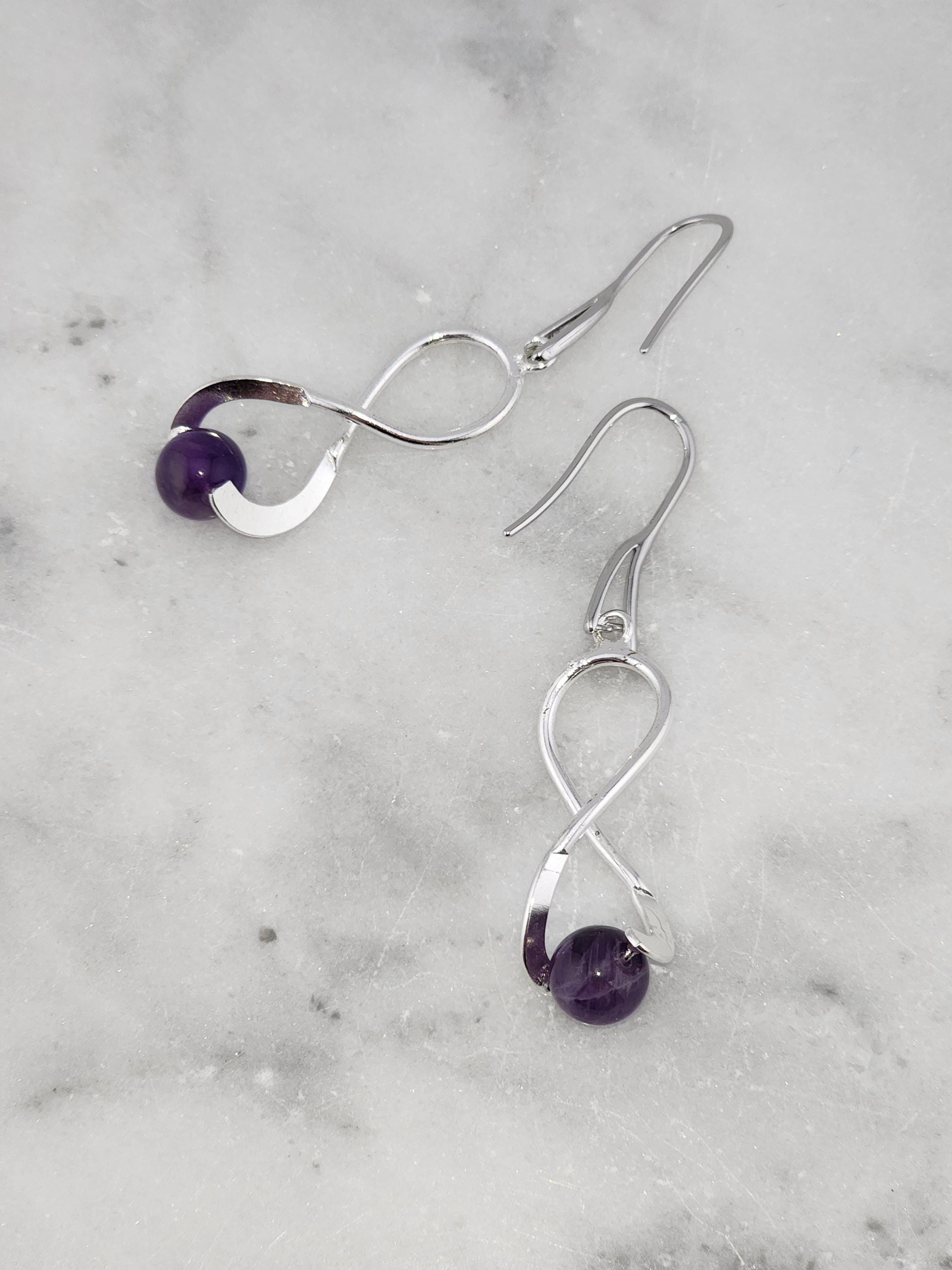 I made these dangle earrings using platinum plated brass hooks. I added platinum plated short infinity twist charms that have gemstone beads locked in them. YOUR CHOICES OF GEMSTONE BEADS ARE: #1- Amethyst #2- Red Banded Agate #3- Obsidian * Your purchase will arrive in pretty packaging * Shipping is included
