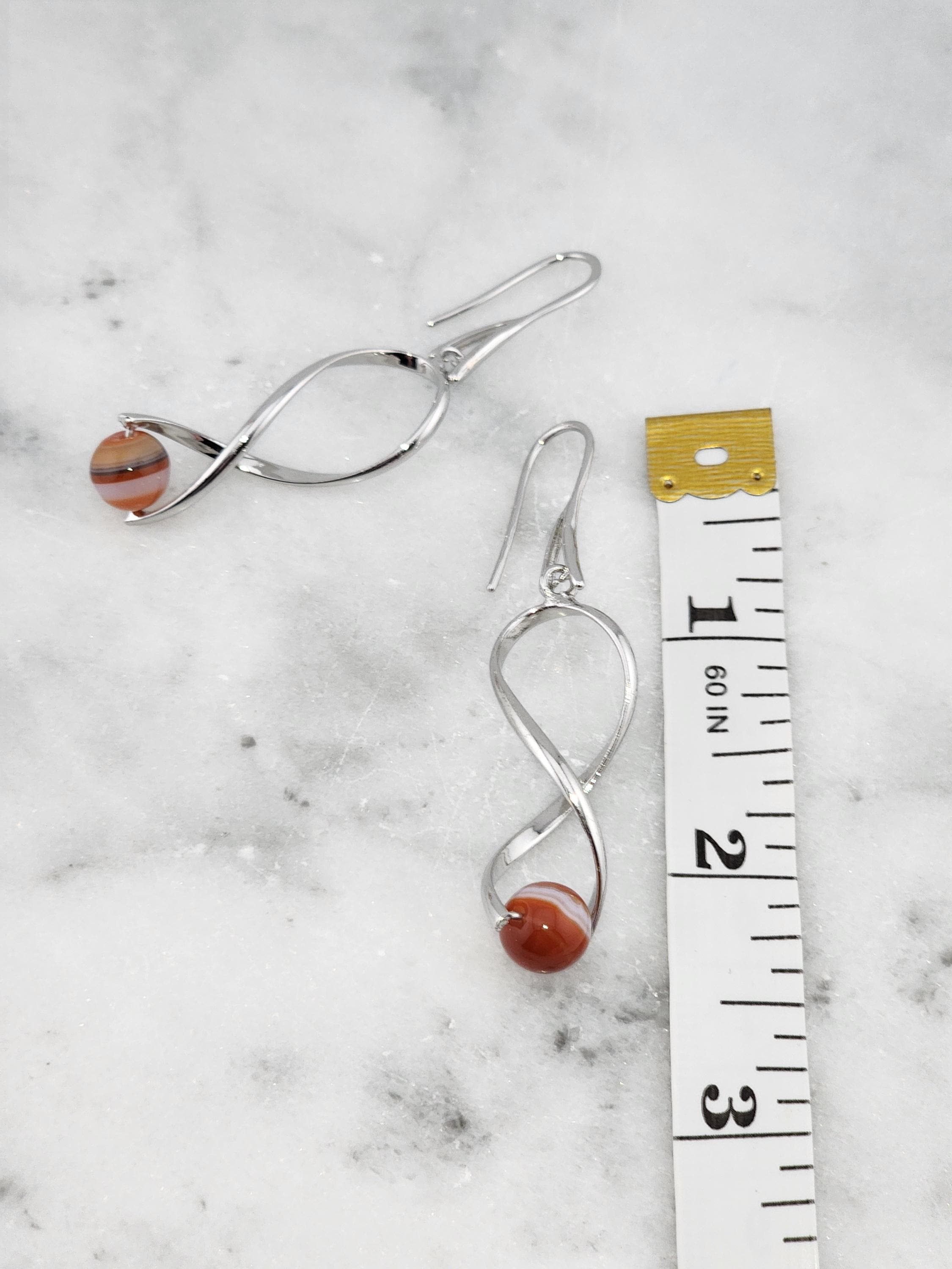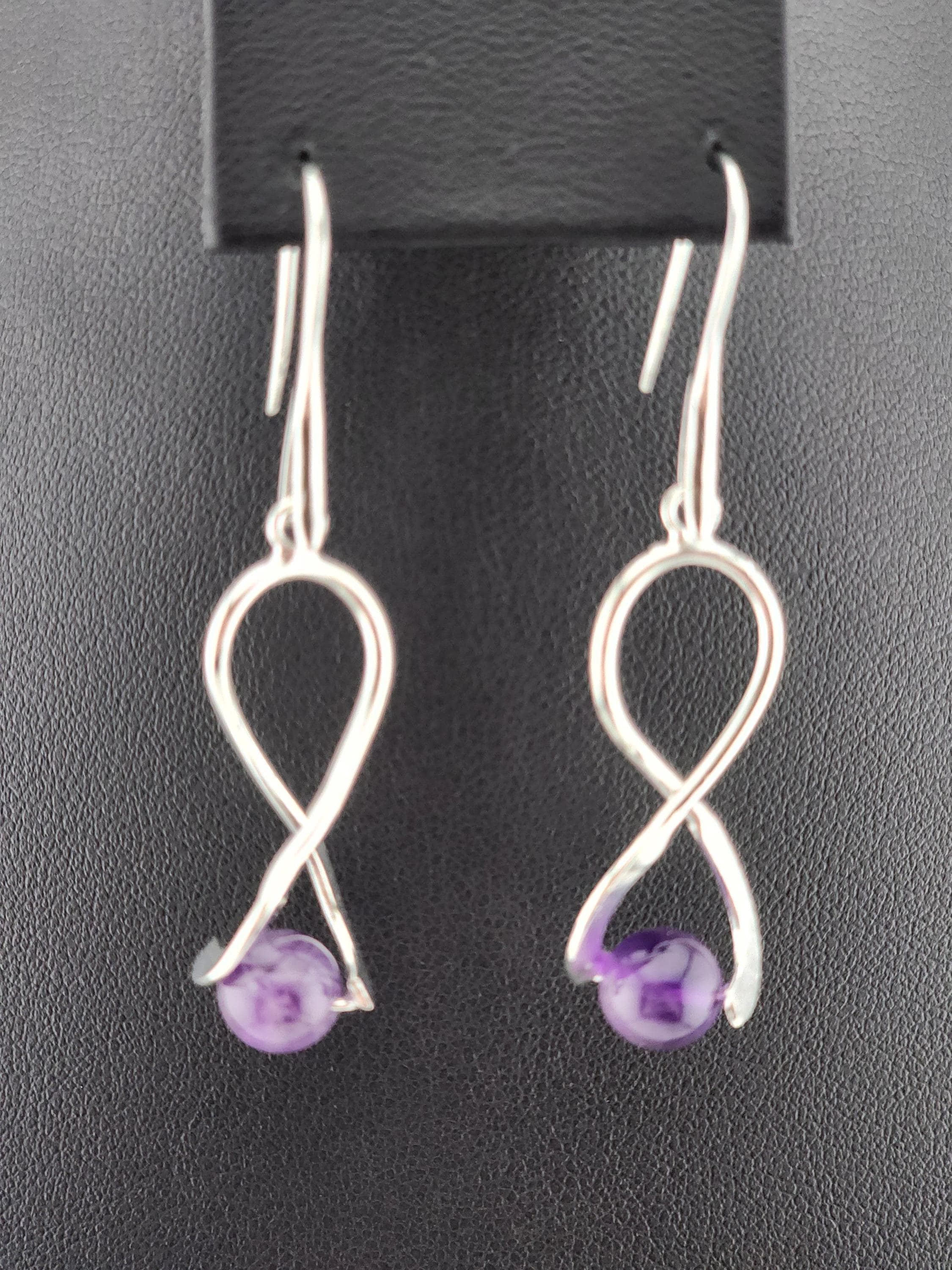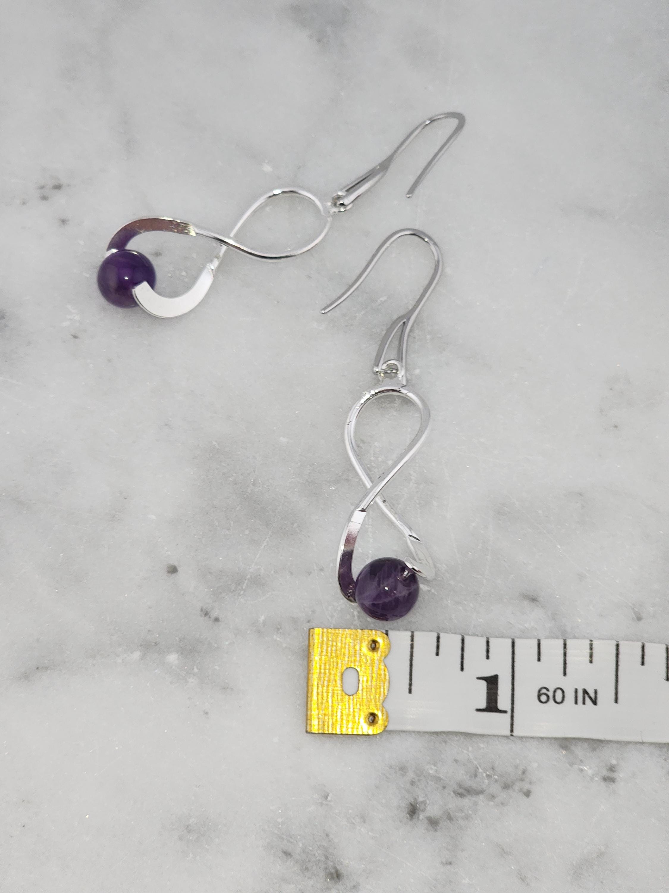 I made these dangle earrings using platinum plated brass hooks. I added platinum plated short infinity twist charms that have gemstone beads locked in them. YOUR CHOICES OF GEMSTONE BEADS ARE: #1- Amethyst #2- Red Banded Agate #3- Obsidian * Your purchase will arrive in pretty packaging * Shipping is included