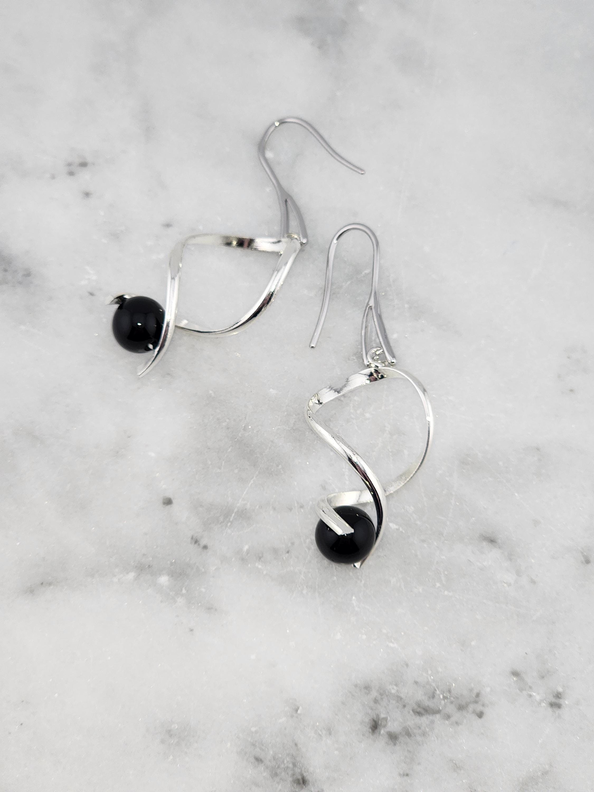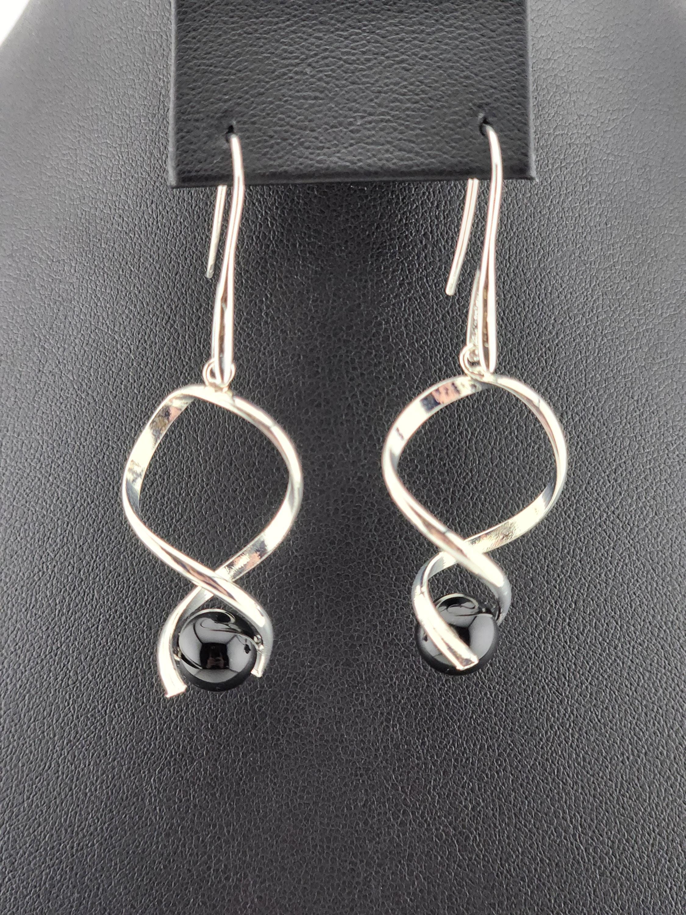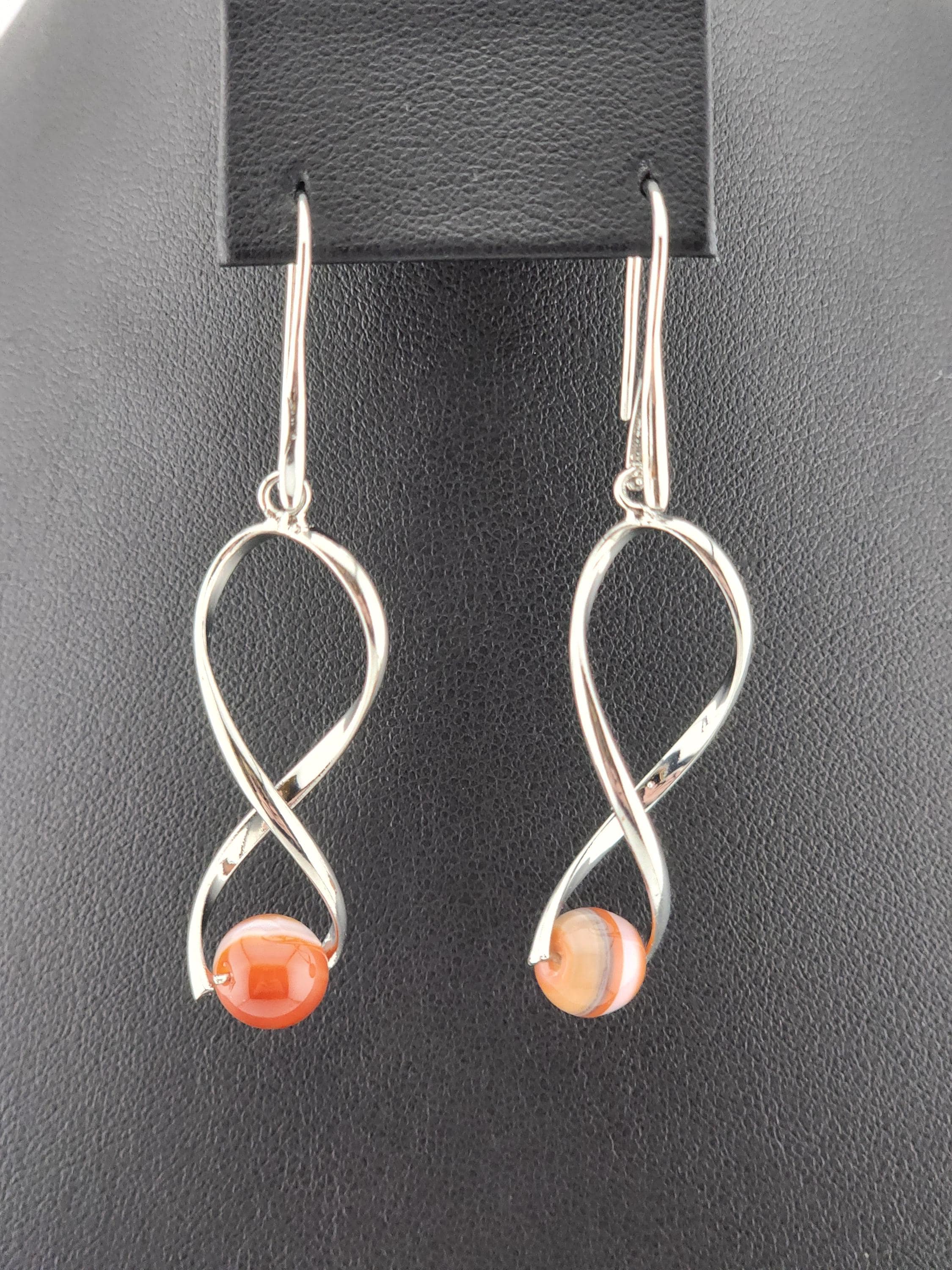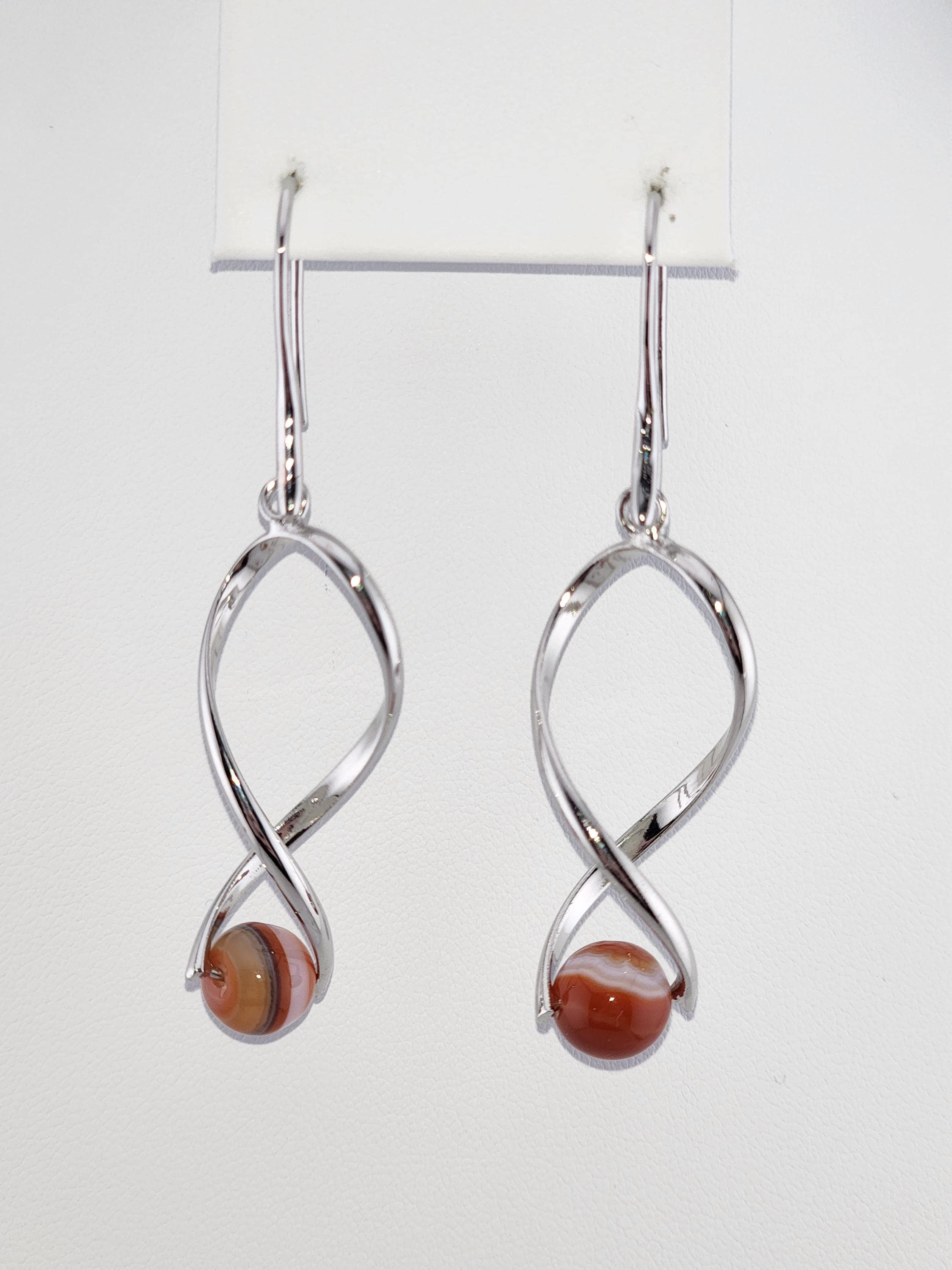 I made these dangle earrings using platinum plated brass hooks. I added platinum plated short infinity twist charms that have gemstone beads locked in them. YOUR CHOICES OF GEMSTONE BEADS ARE: #1- Amethyst #2- Red Banded Agate #3- Obsidian * Your purchase will arrive in pretty packaging * Shipping is included