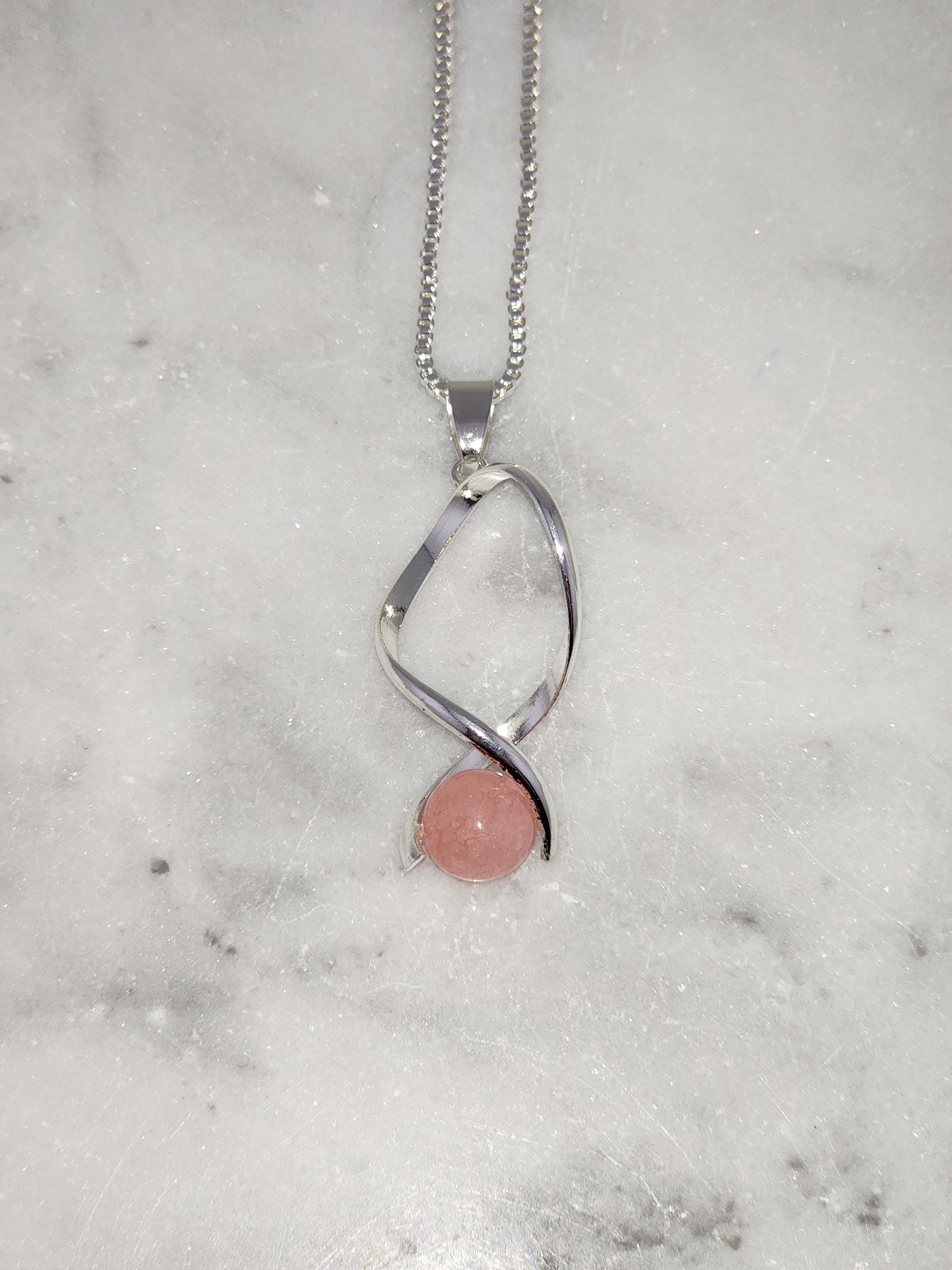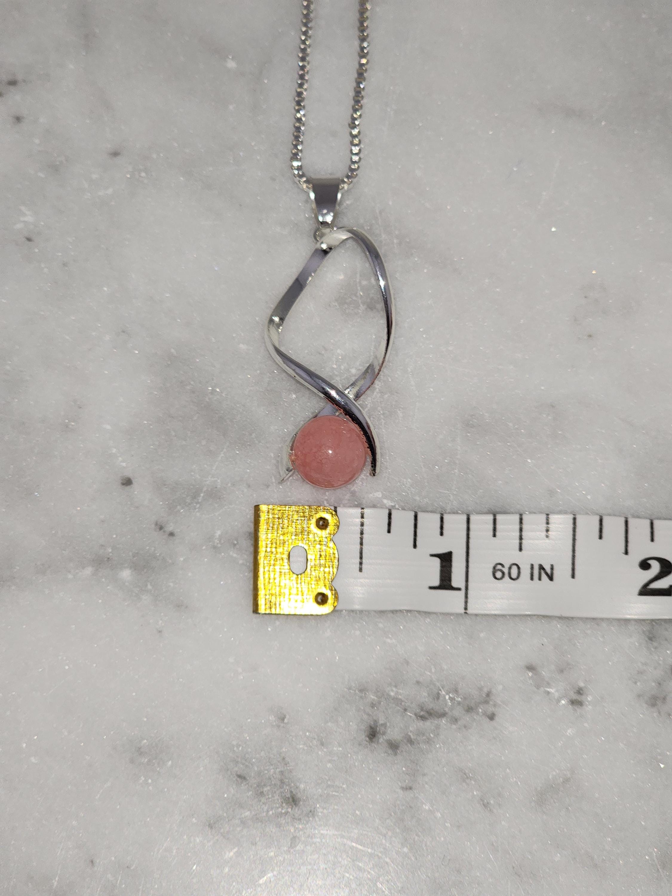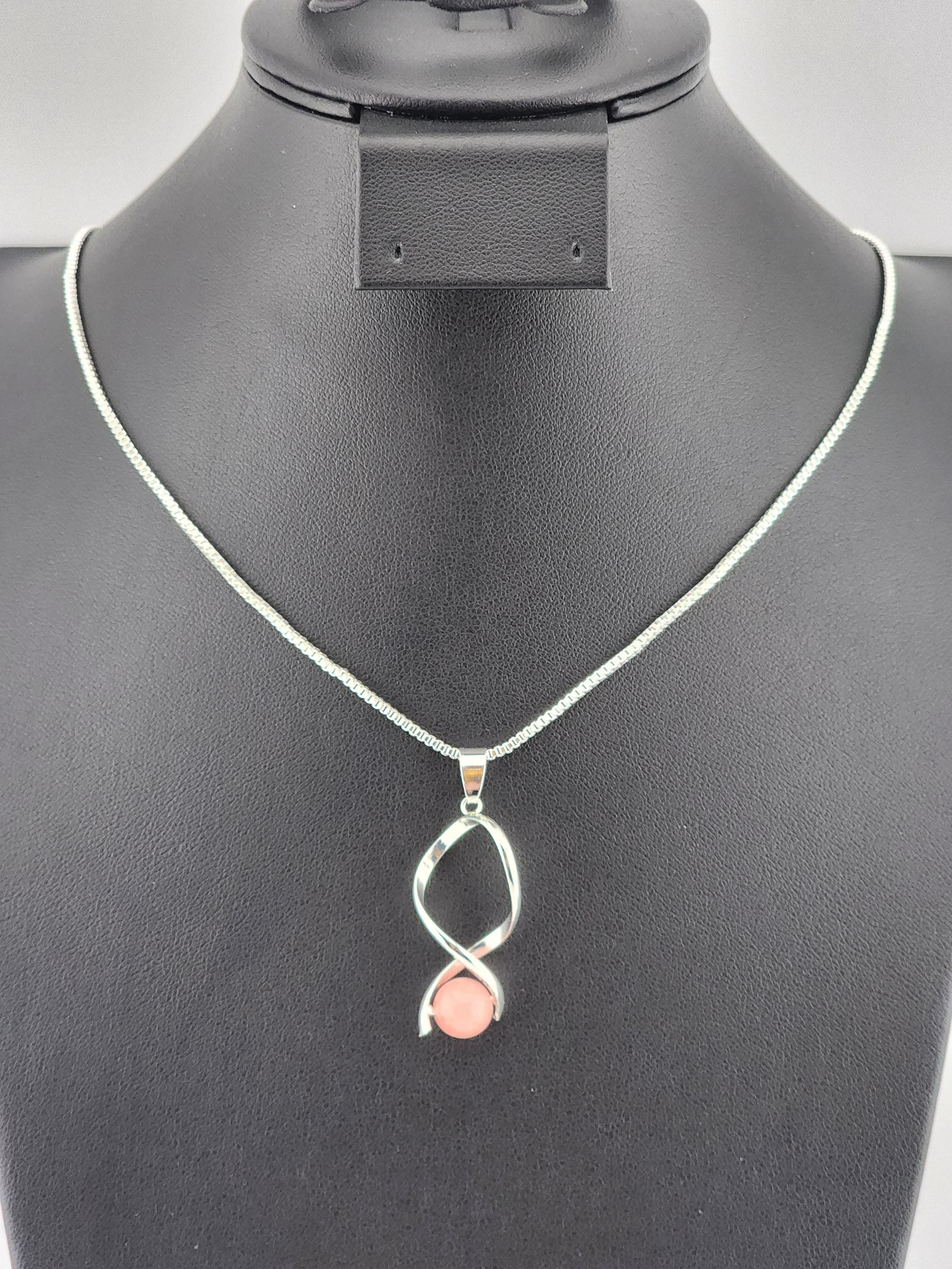 I made these necklaces using sterling silver plated chain that have extenders, making them 20"- 22" in length. I added infinity twisted platinum pendants that have gemstone beads locked in them. YOUR CHOICES OF GEMSTONE BEADS ARE: #1- Pink Chalcedony #2- Pink Hematite #3- Red Banded Agate * Your purchase will arrive in pretty packaging * Shipping is included