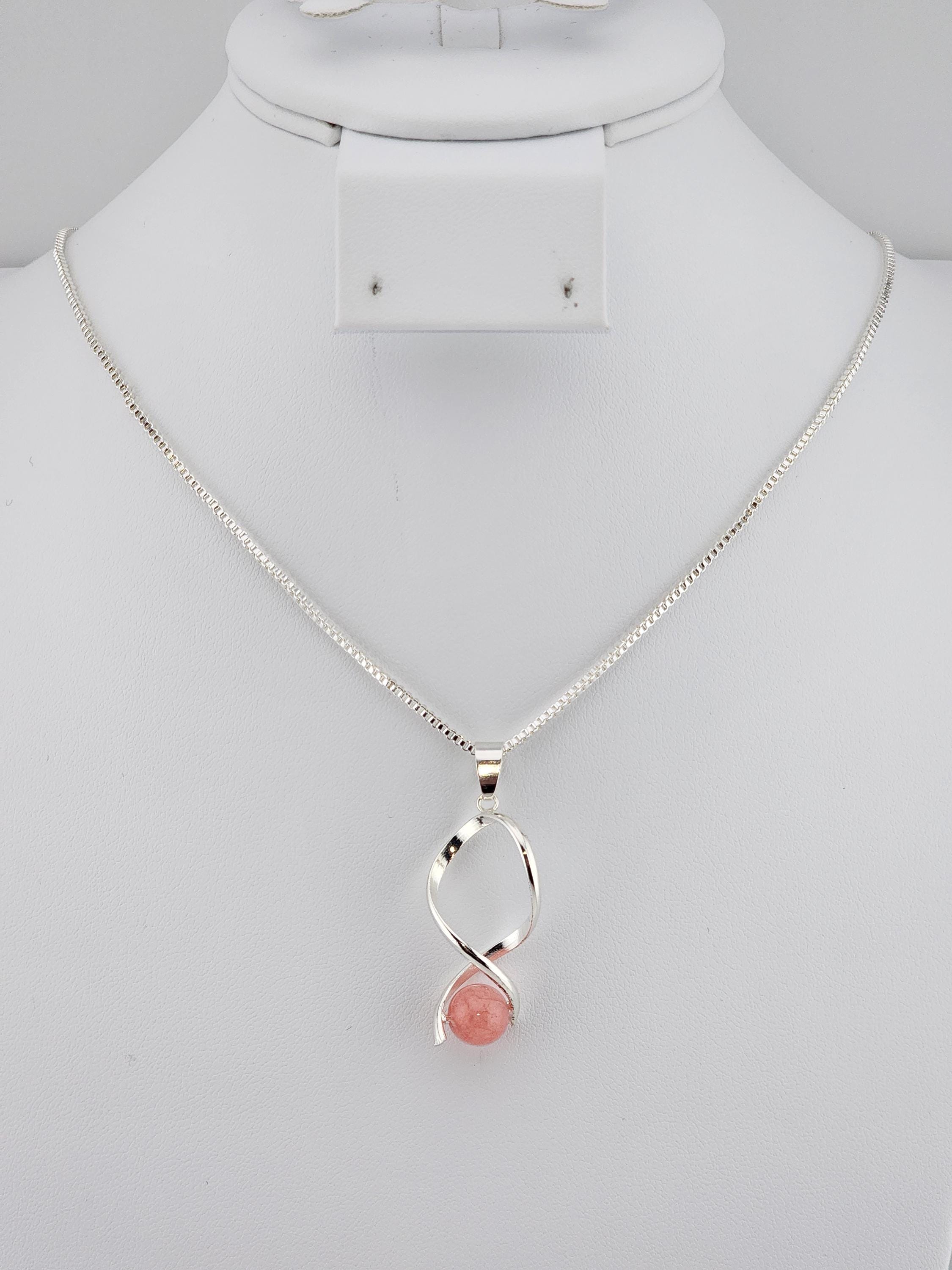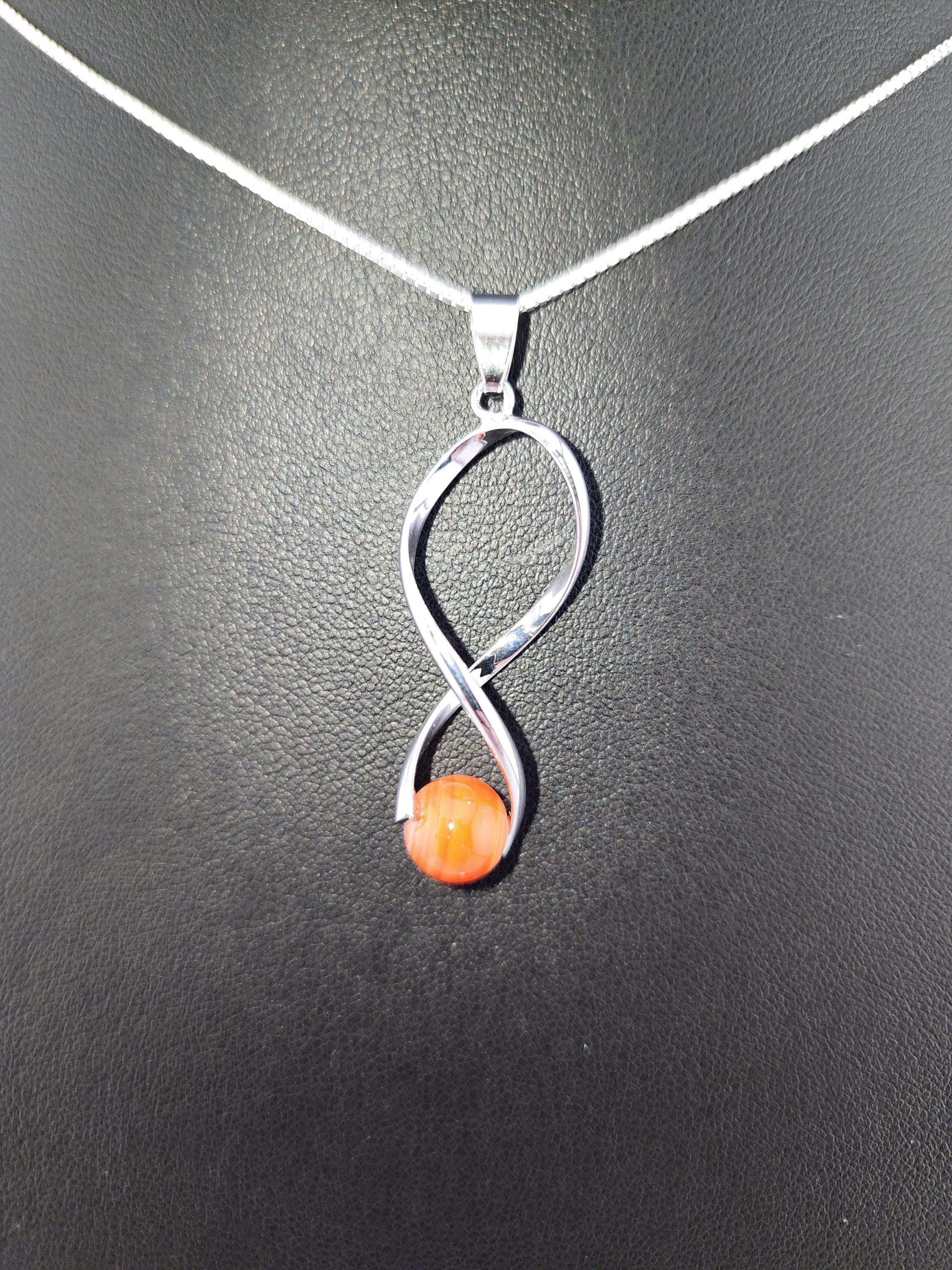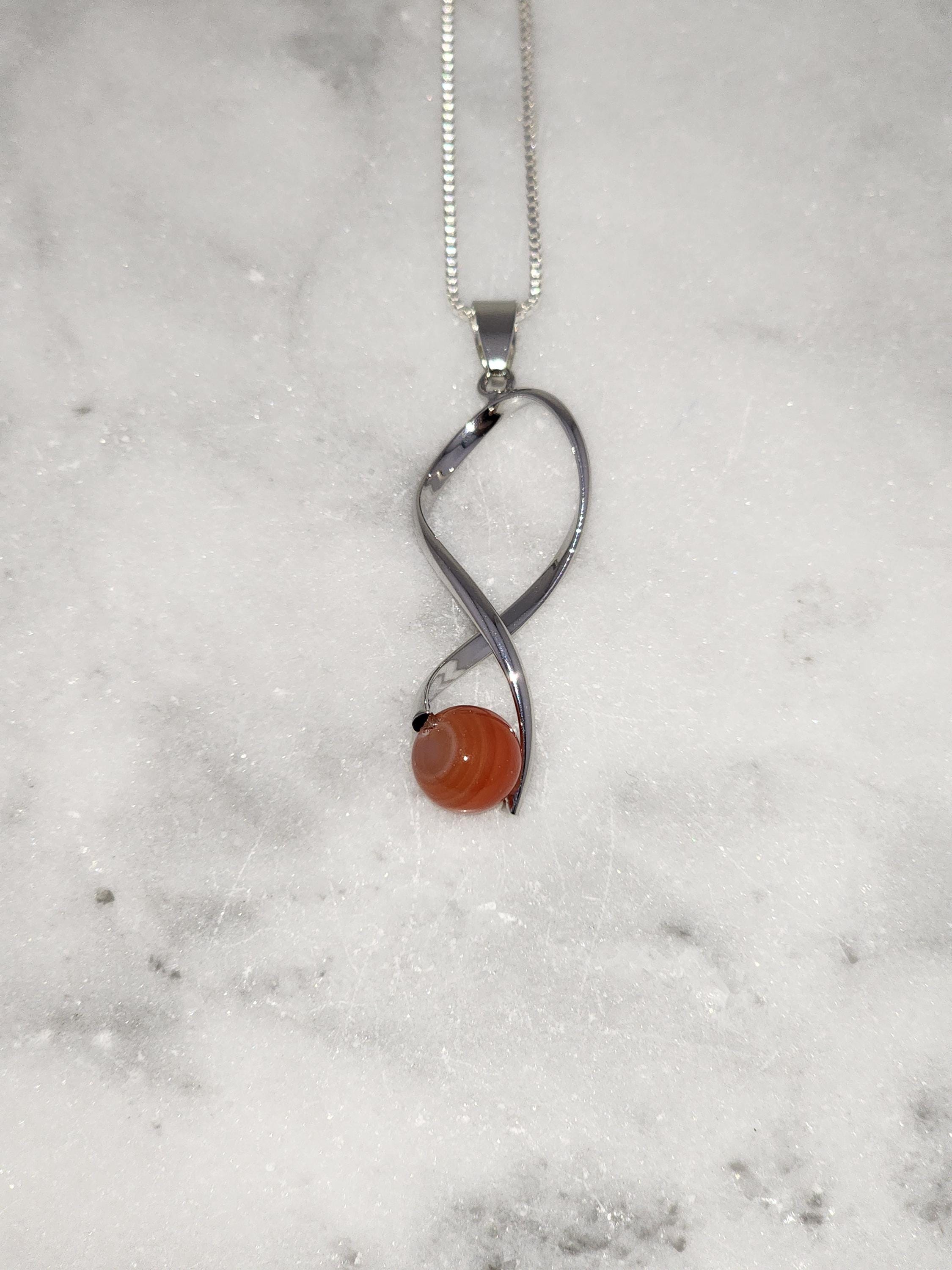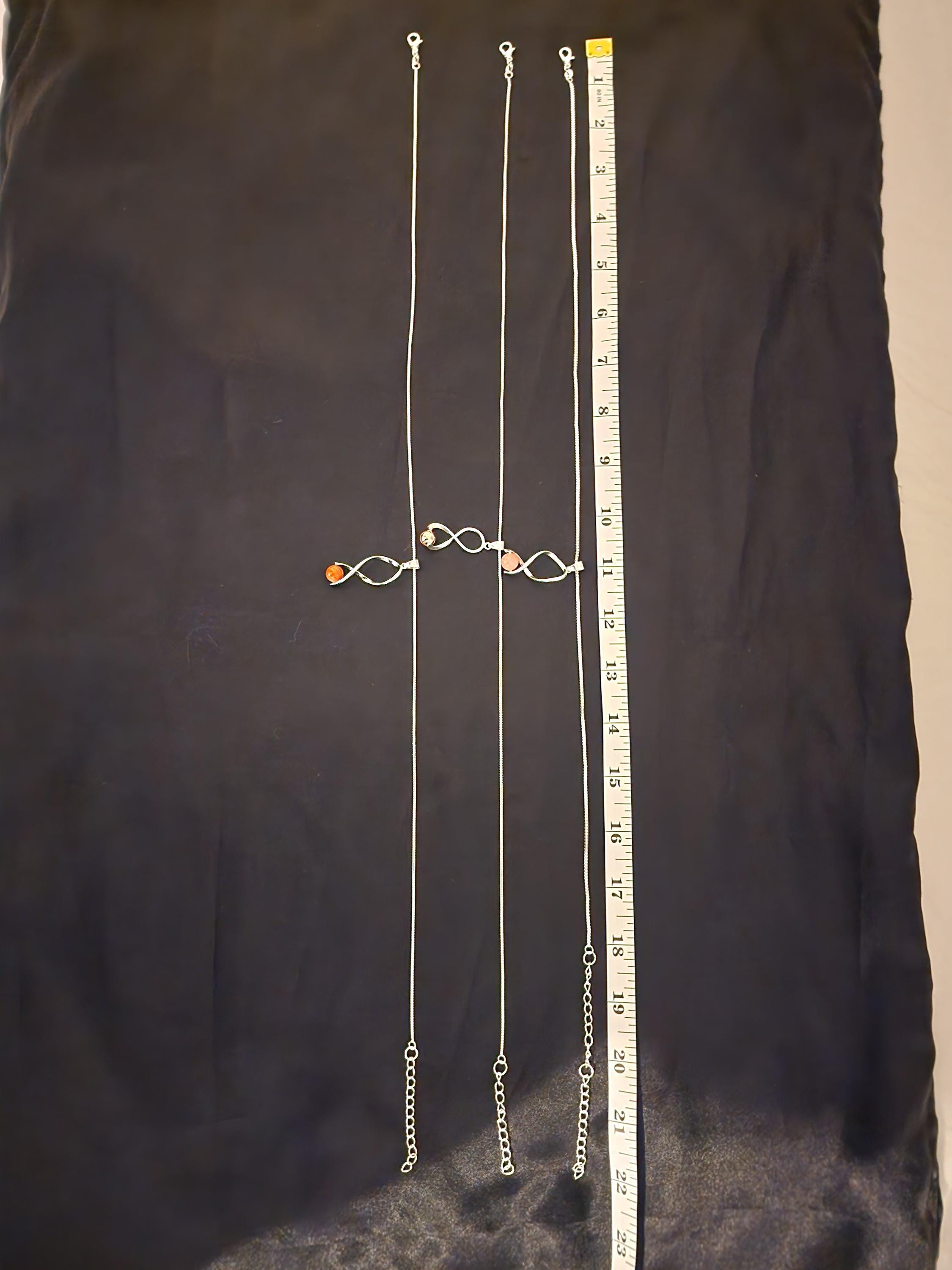 I made these necklaces using sterling silver plated chain that have extenders, making them 20"- 22" in length. I added infinity twisted platinum pendants that have gemstone beads locked in them. YOUR CHOICES OF GEMSTONE BEADS ARE: #1- Pink Chalcedony #2- Pink Hematite #3- Red Banded Agate * Your purchase will arrive in pretty packaging * Shipping is included