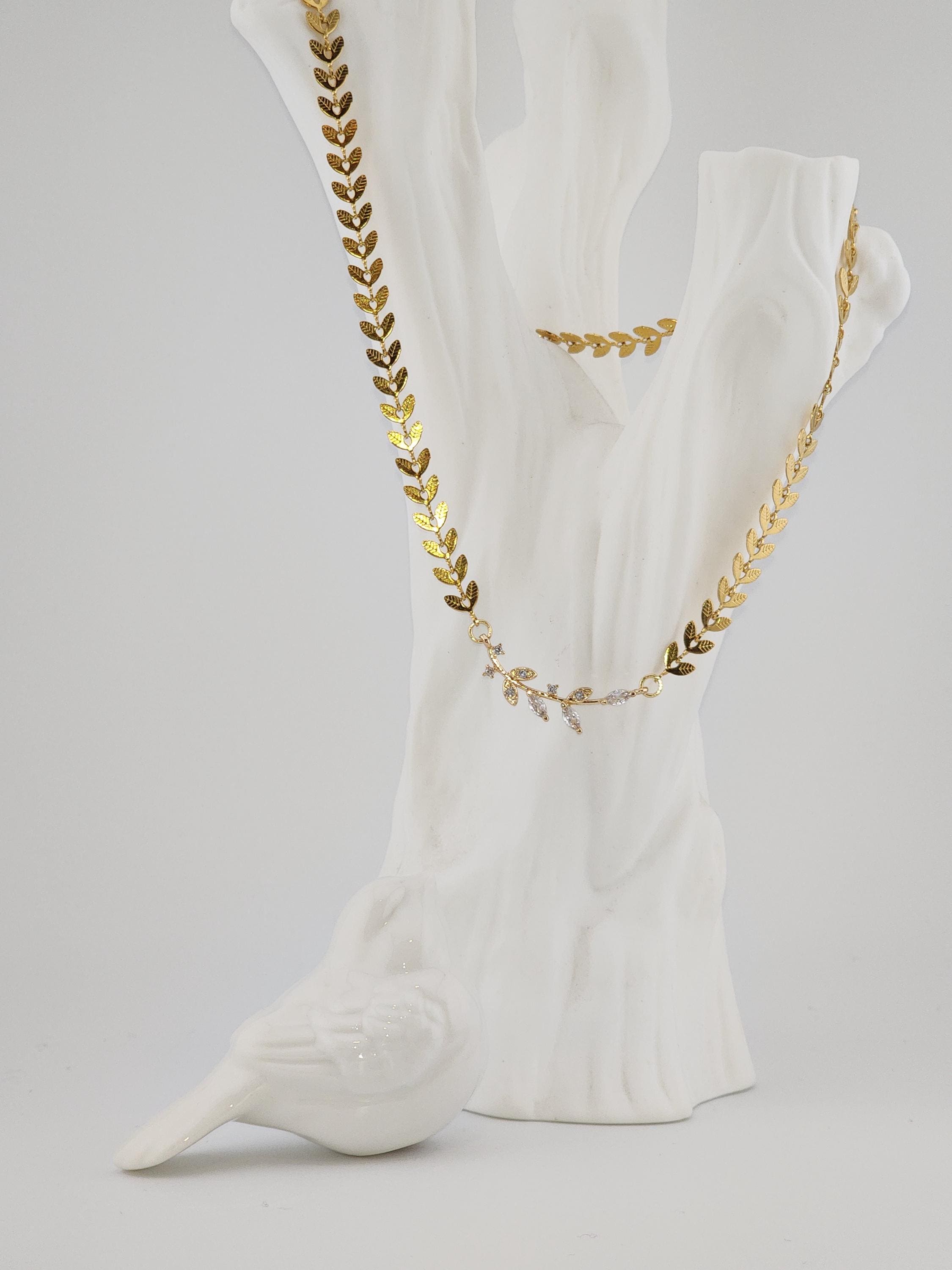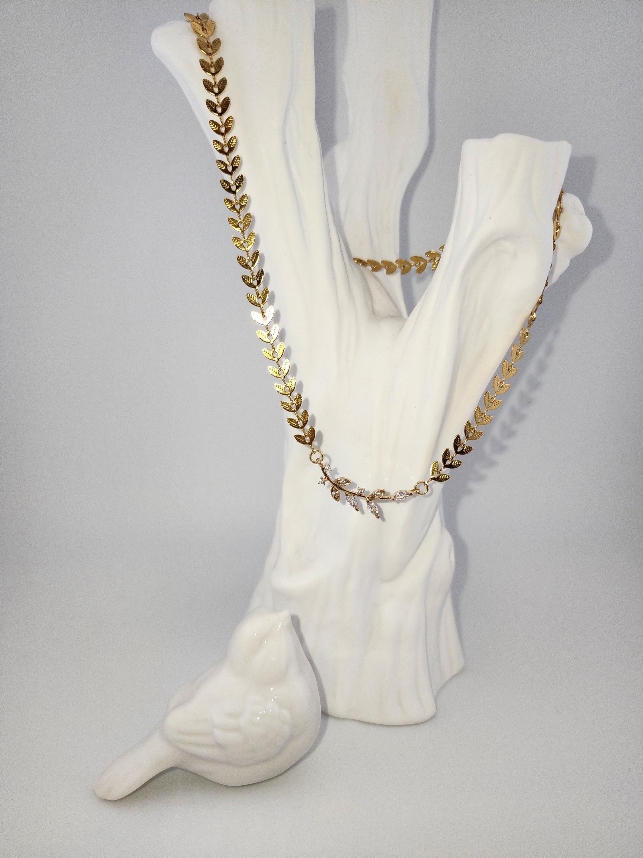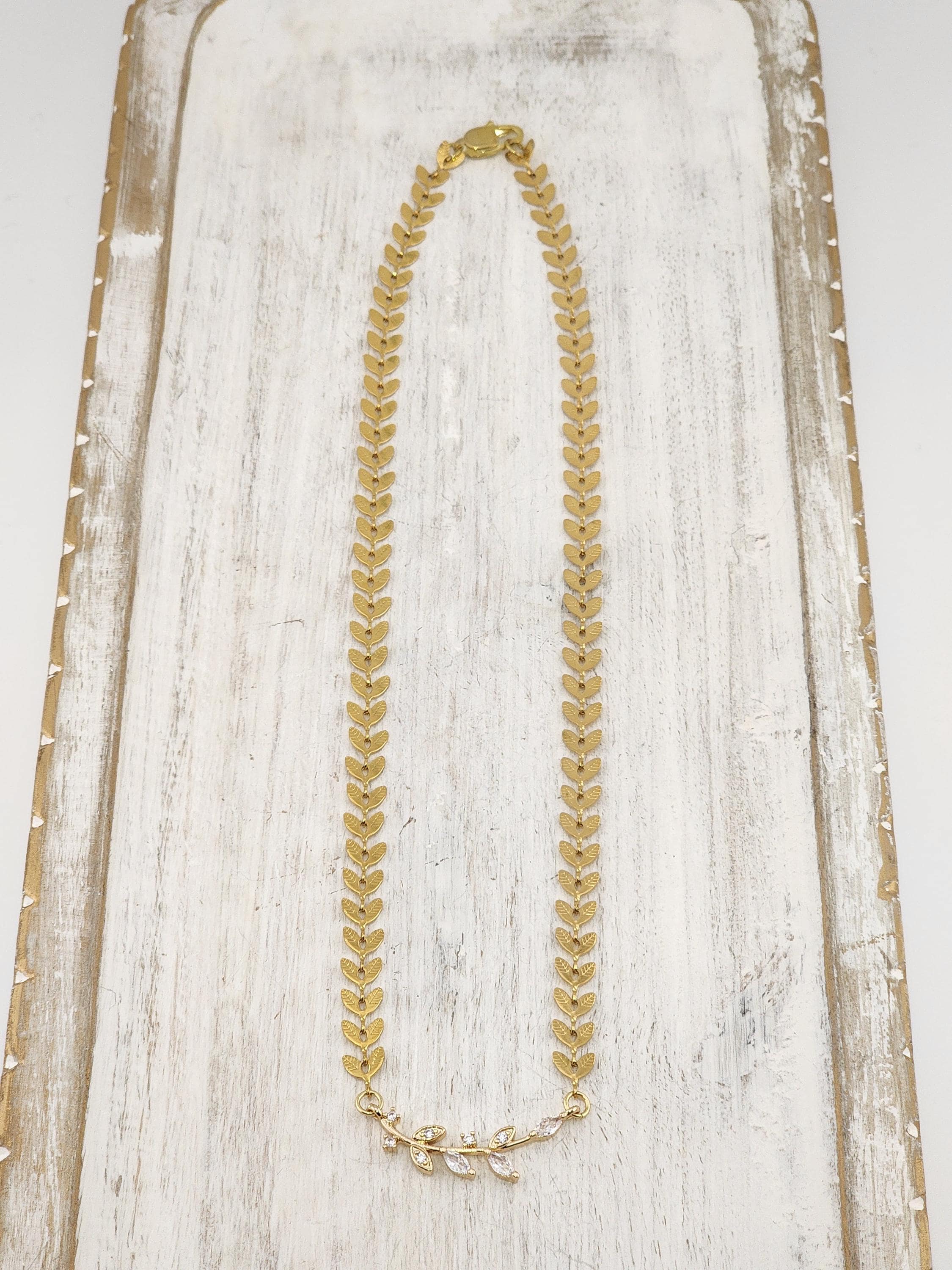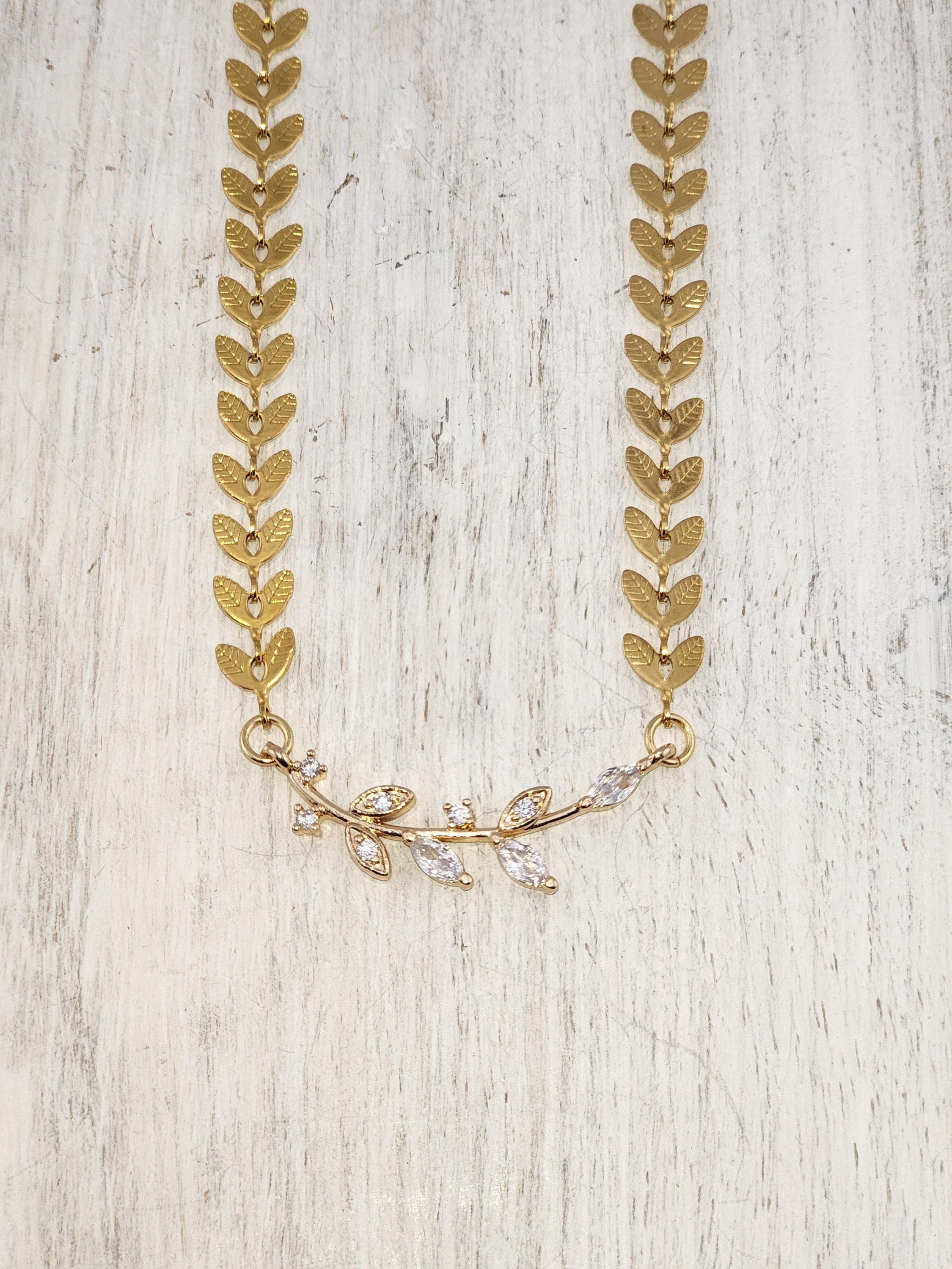 I made this stunningly beautiful necklace using tarnish resistant 18k gold plated brass leaf specialty chain and giving it an 18k gold plated brass branch connector that has cubic zirconia crystal leaves and 24k gold plated connecting rings. GORGEOUS! * Your purchase will arrive in pretty packaging * Shipping is included