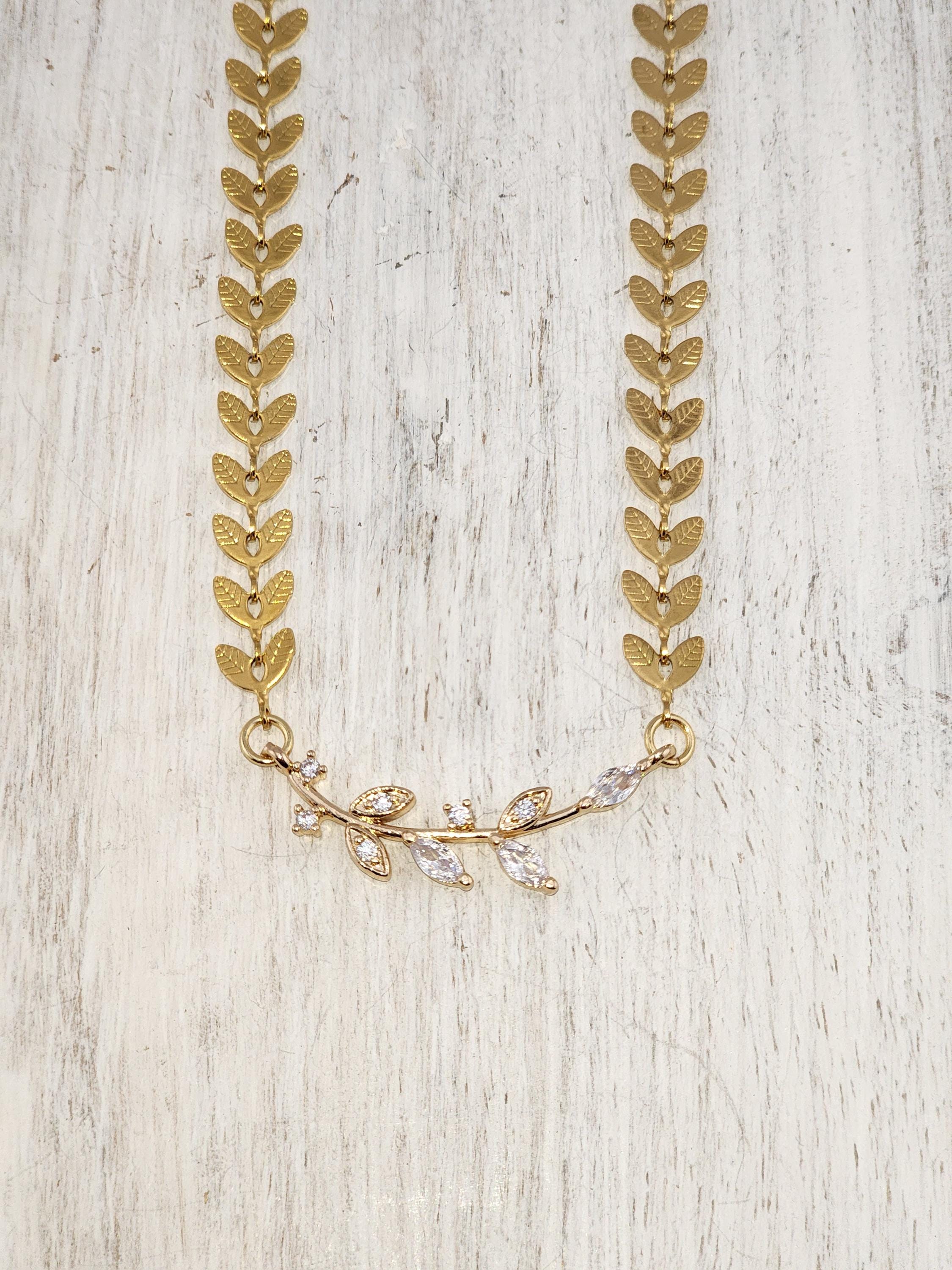 I made this stunningly beautiful necklace using tarnish resistant 18k gold plated brass leaf specialty chain and giving it an 18k gold plated brass branch connector that has cubic zirconia crystal leaves and 24k gold plated connecting rings. GORGEOUS! * Your purchase will arrive in pretty packaging