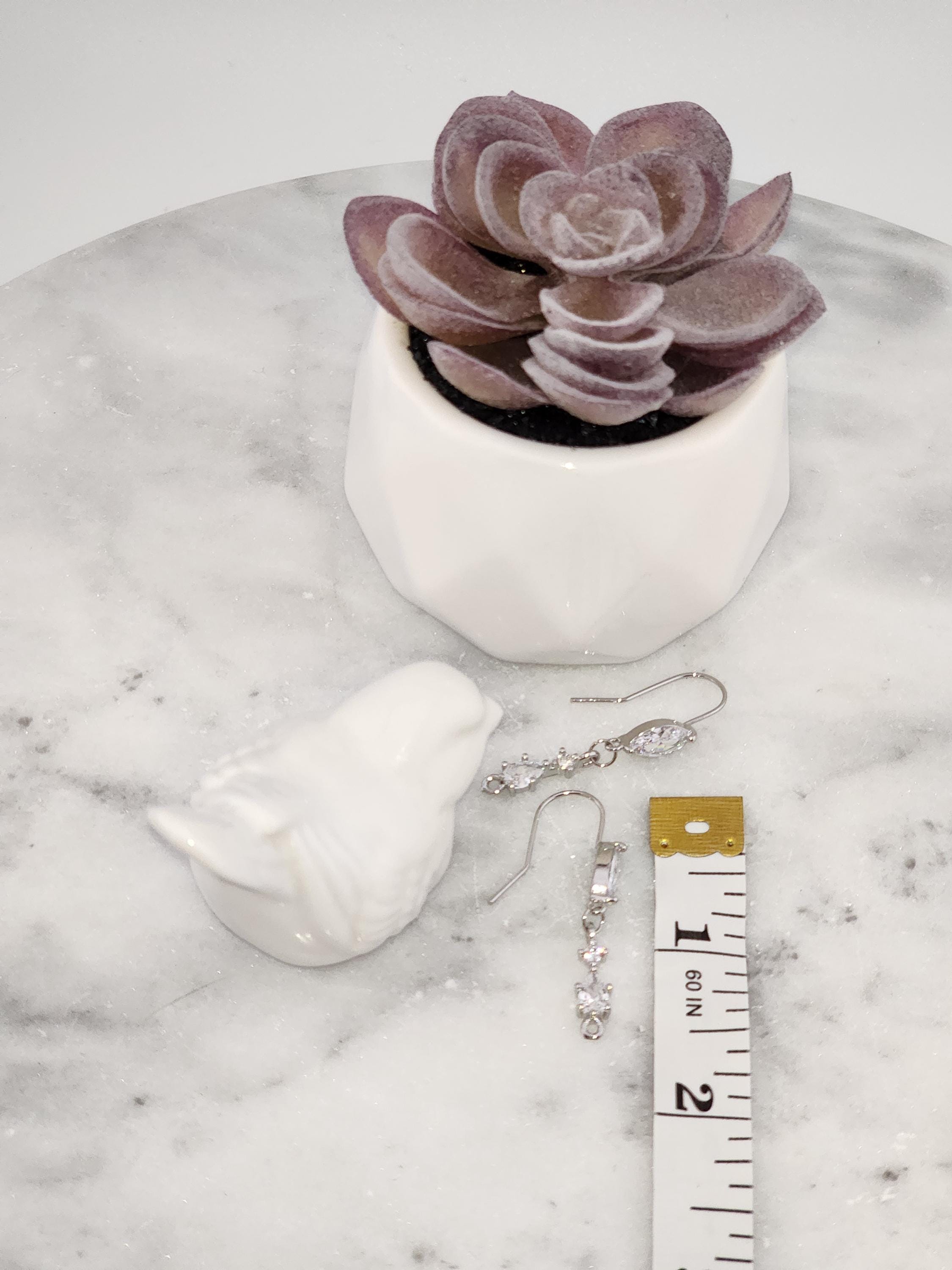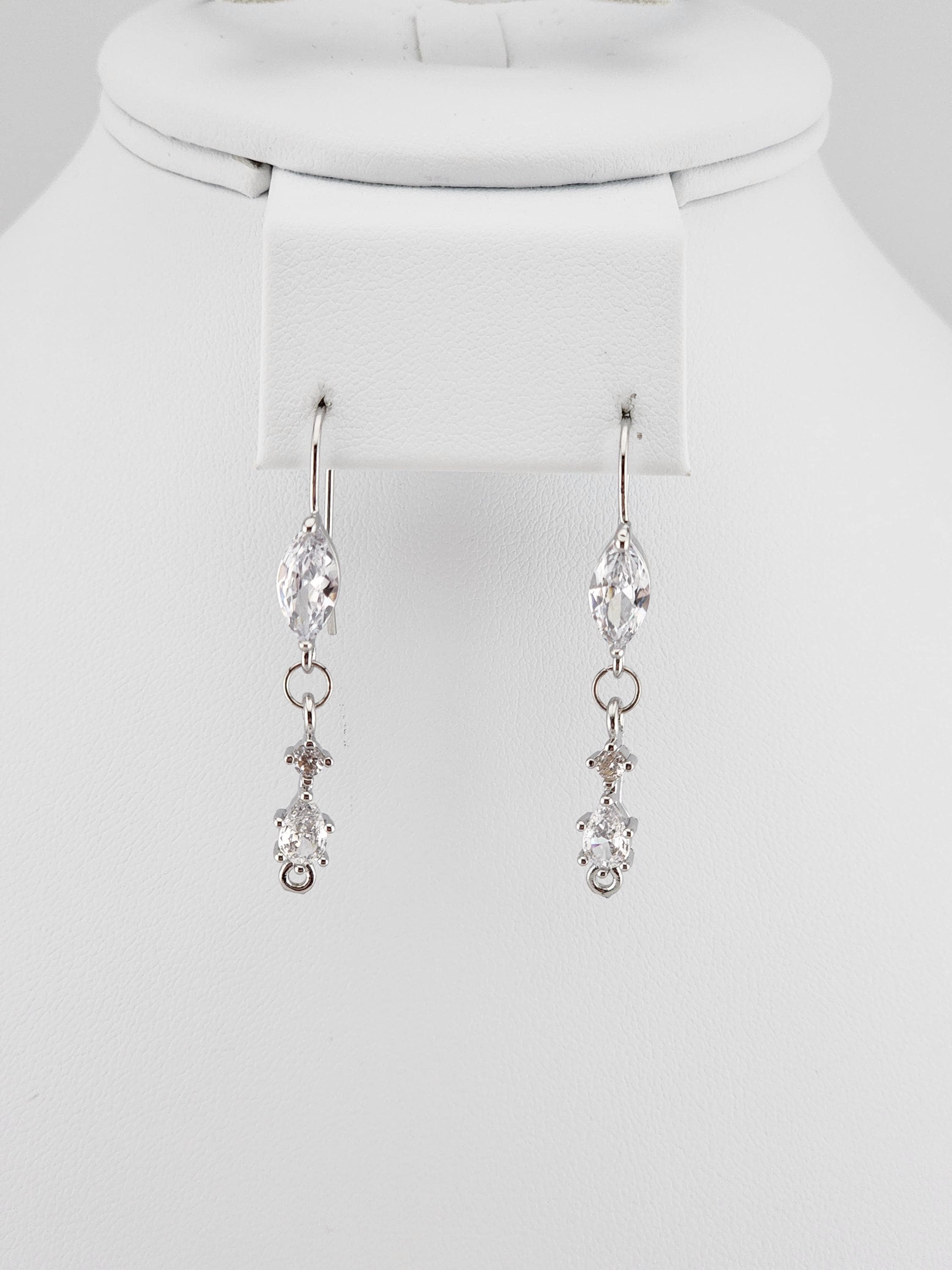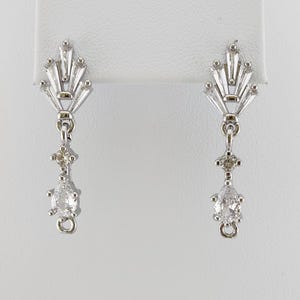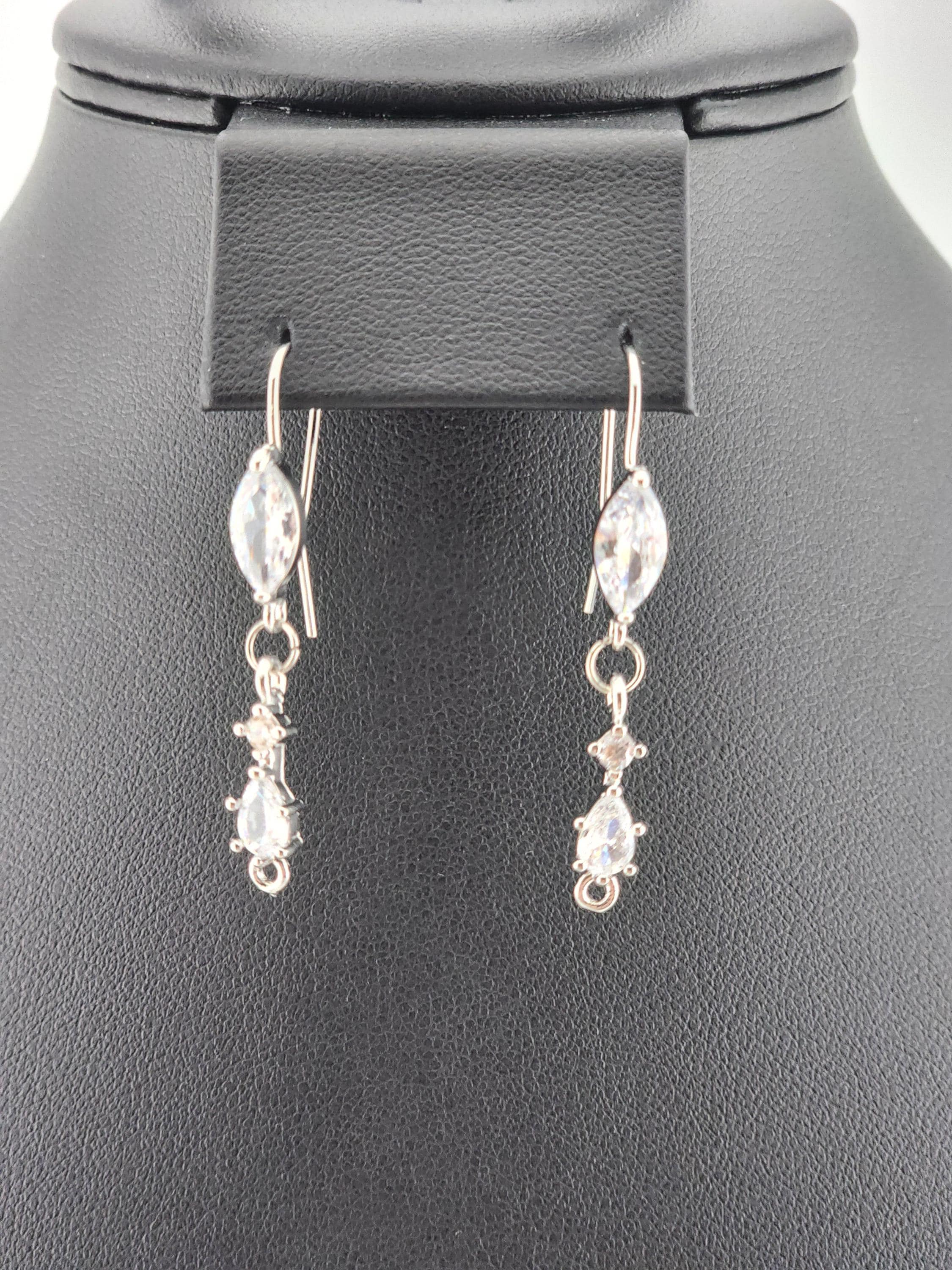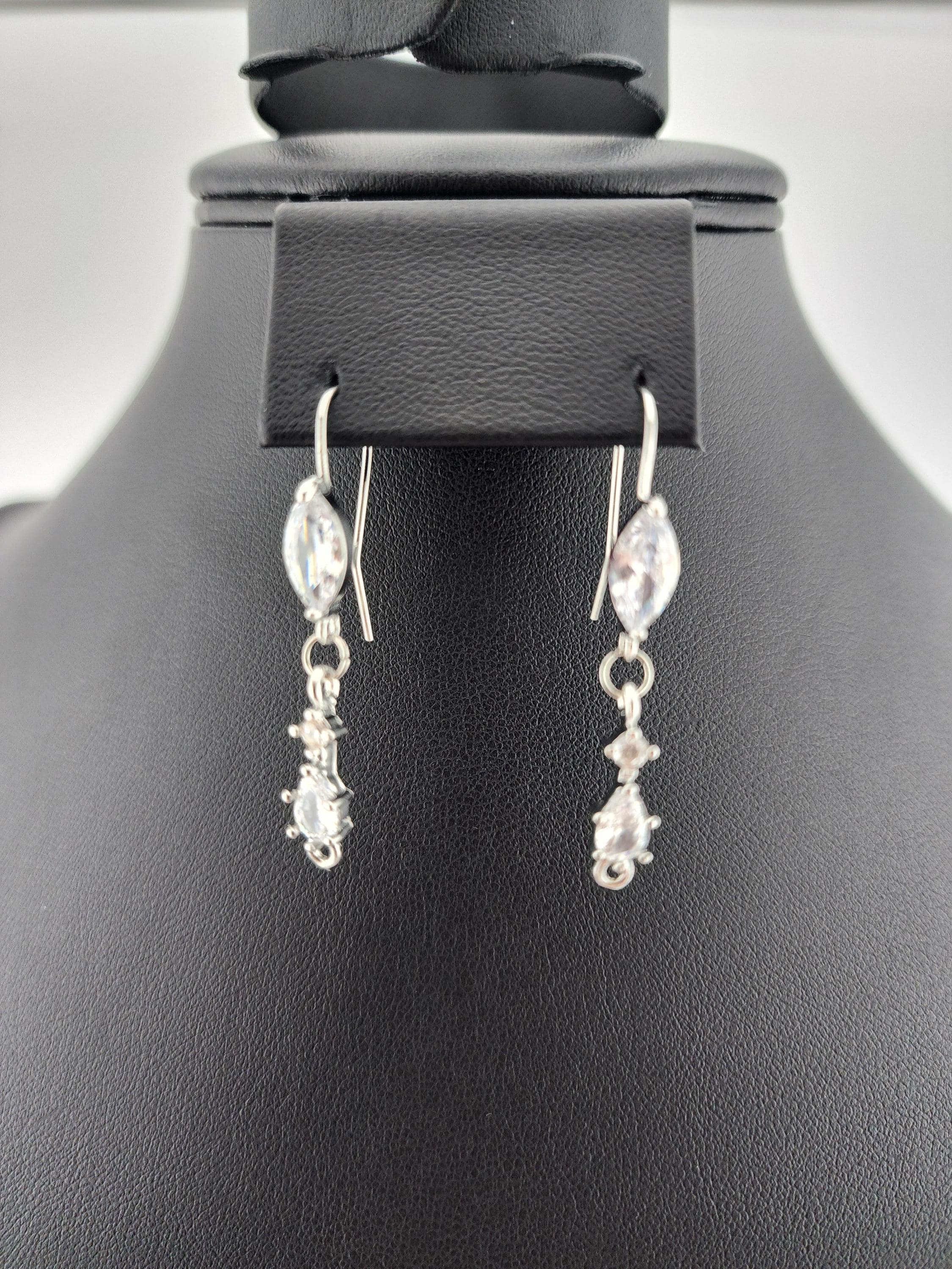 Fantastic Art Nouveau style platinum and pave' crystal dangle earrings. I made them using platinum plated brass and marquise cut CZ crystal U-shape ear wire hooks. Then I added silver plated CZ pave' clear teardrop gemstone connector charms that hang from sterling silver plated connecting rings. THEY ARE GORGEOUS! * Your purchase will arrive in pretty packaging * Shipping is included