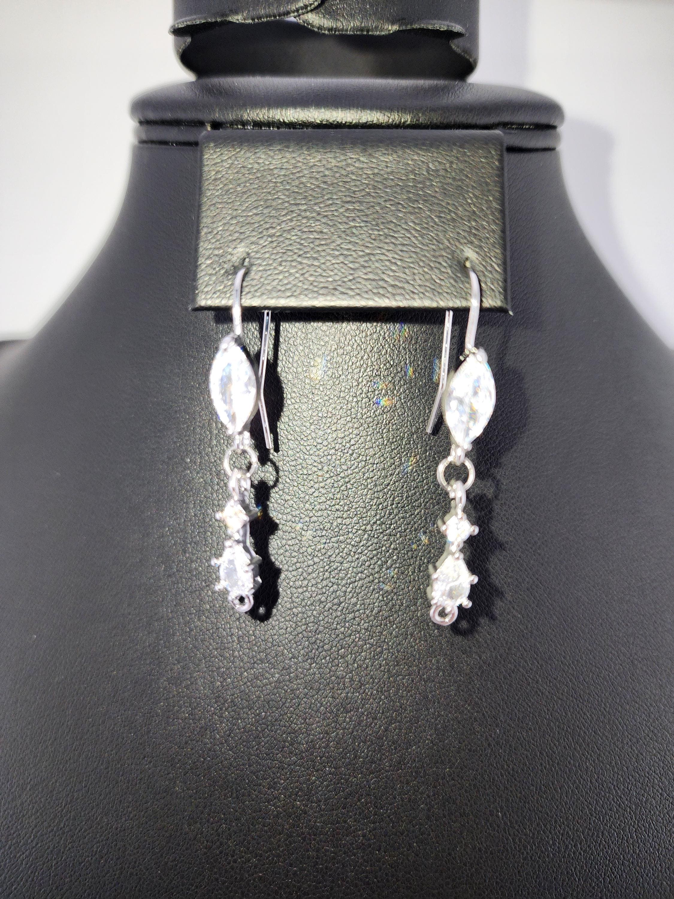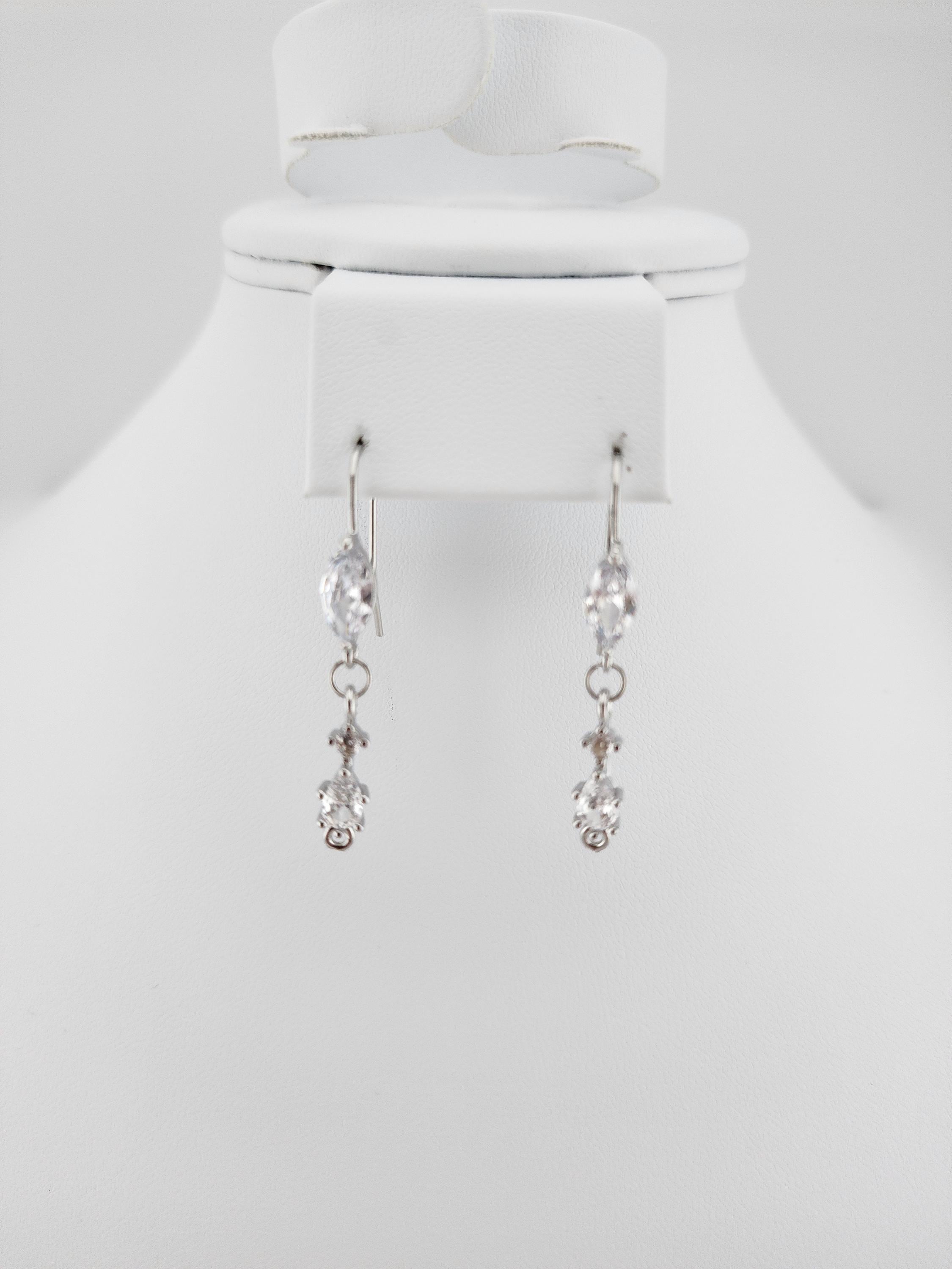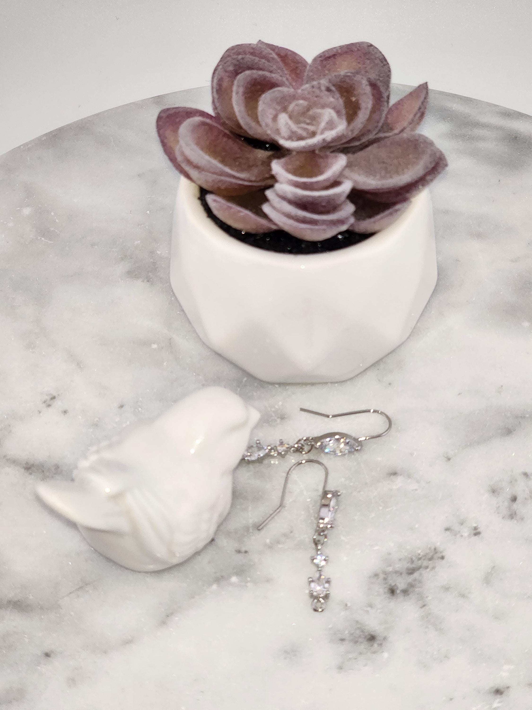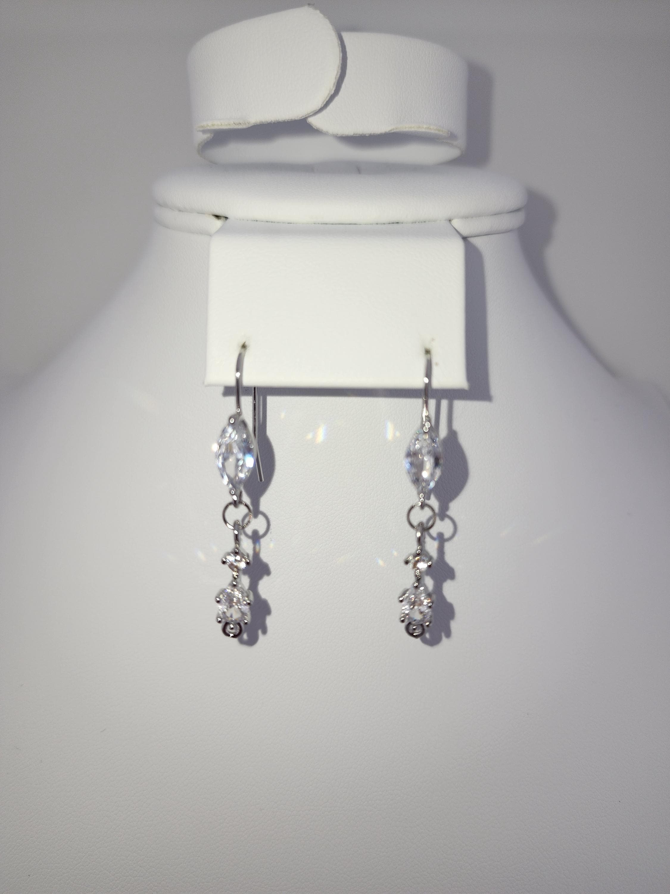 Fantastic Art Nouveau style platinum and pave' crystal dangle earrings. I made them using platinum plated brass and marquise cut CZ crystal U-shape ear wire hooks. Then I added silver plated CZ pave' clear teardrop gemstone connector charms that hang from sterling silver plated connecting rings. THEY ARE GORGEOUS! * Your purchase will arrive in pretty packaging * Shipping is included