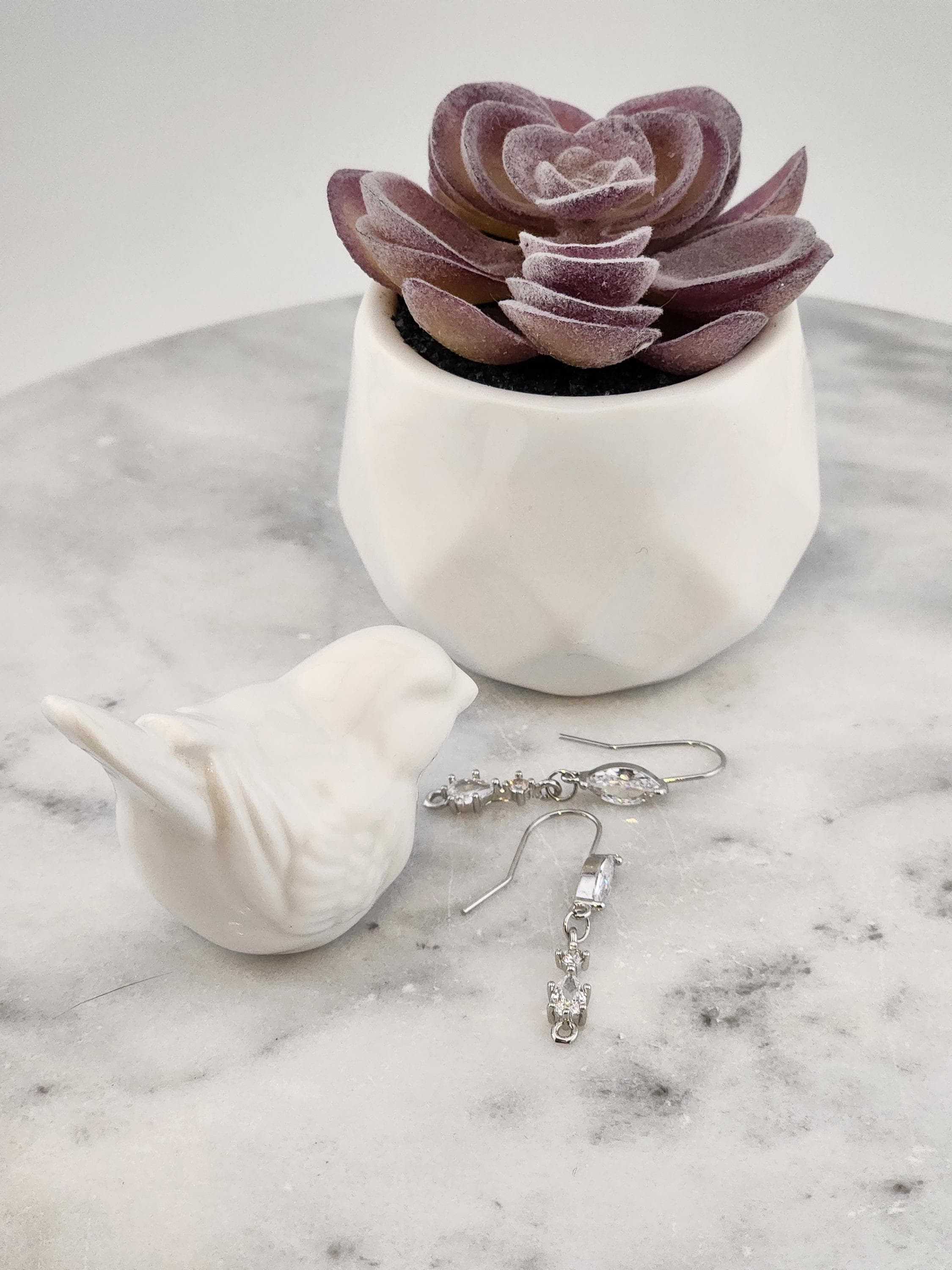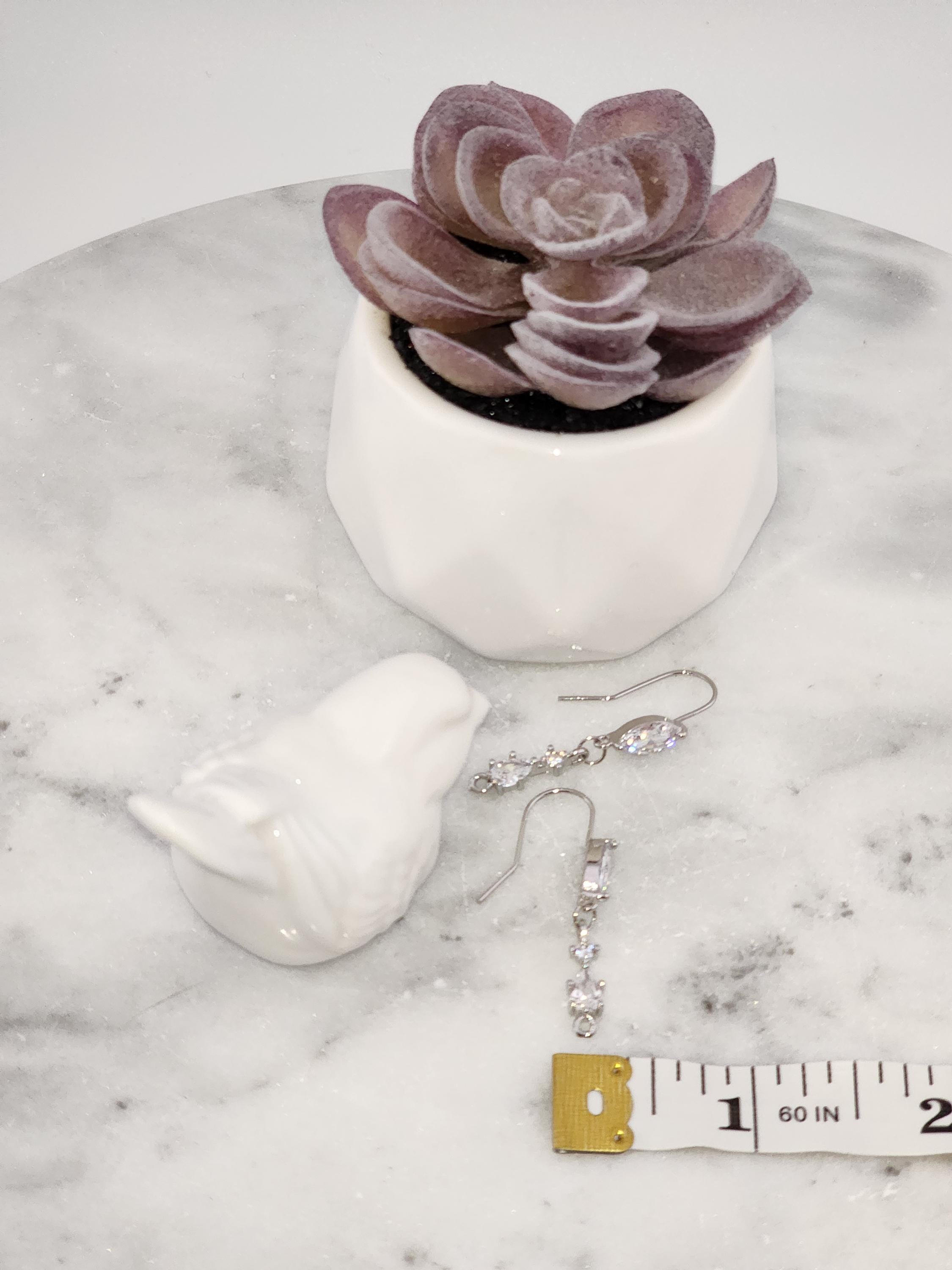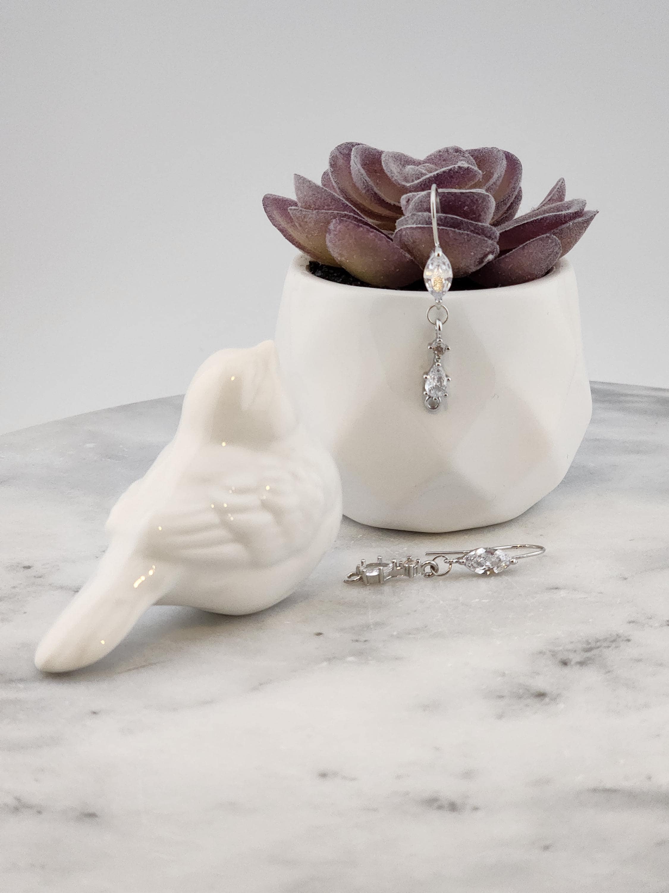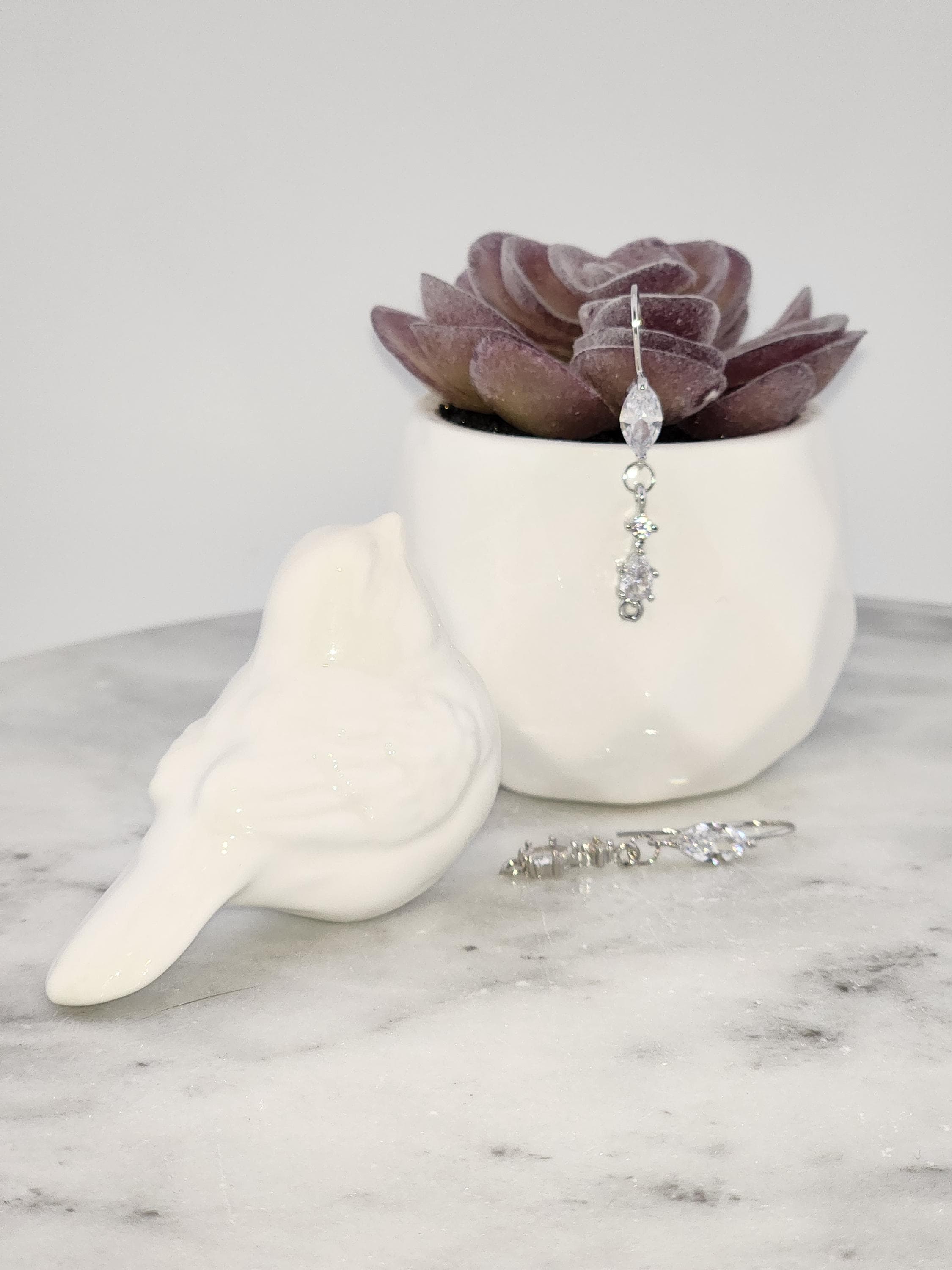 Fantastic Art Nouveau style platinum and pave' crystal dangle earrings. I made them using platinum plated brass and marquise cut CZ crystal U-shape ear wire hooks. Then I added silver plated CZ pave' clear teardrop gemstone connector charms that hang from sterling silver plated connecting rings. THEY ARE GORGEOUS! * Your purchase will arrive in pretty packaging * Shipping is included