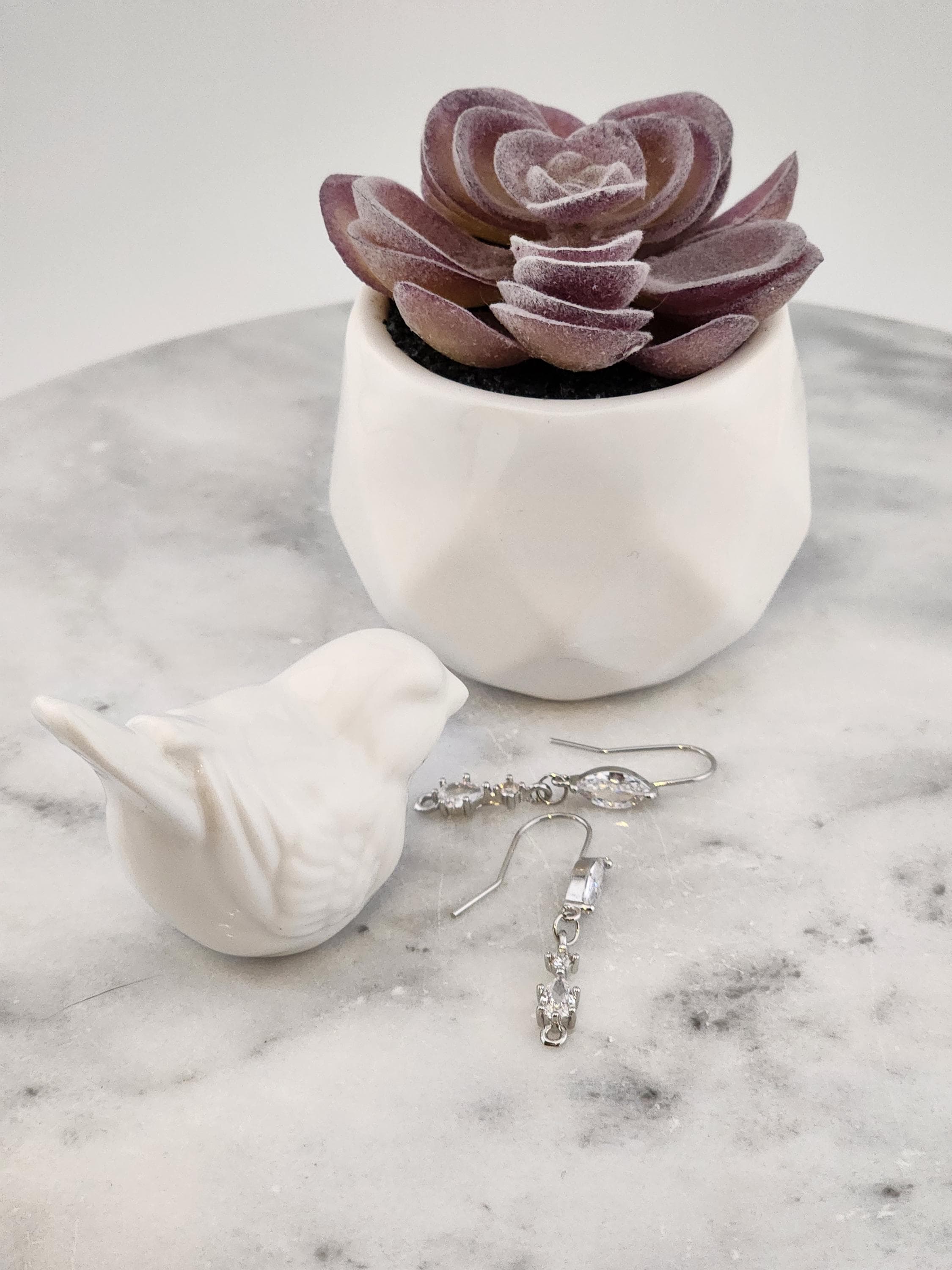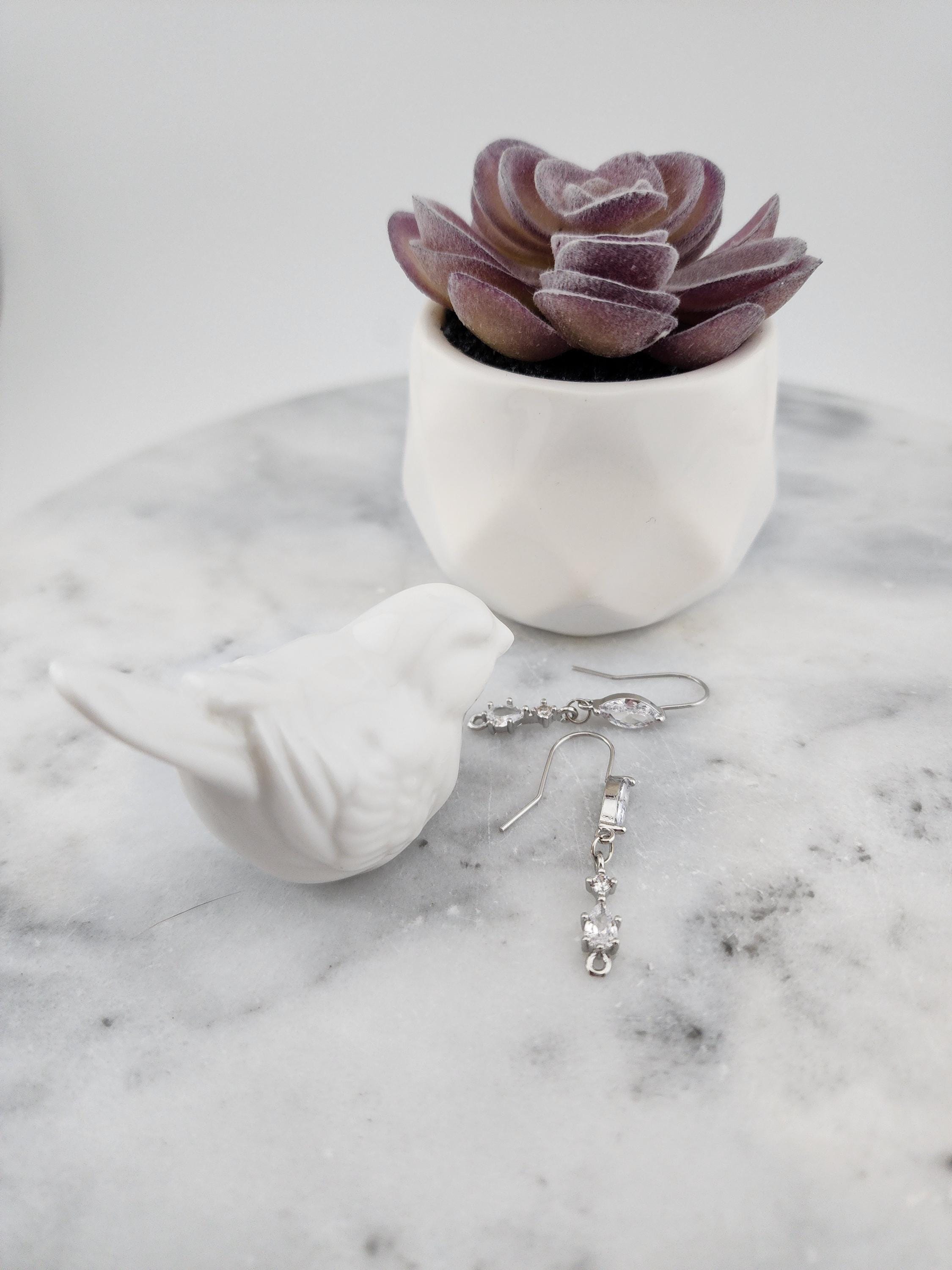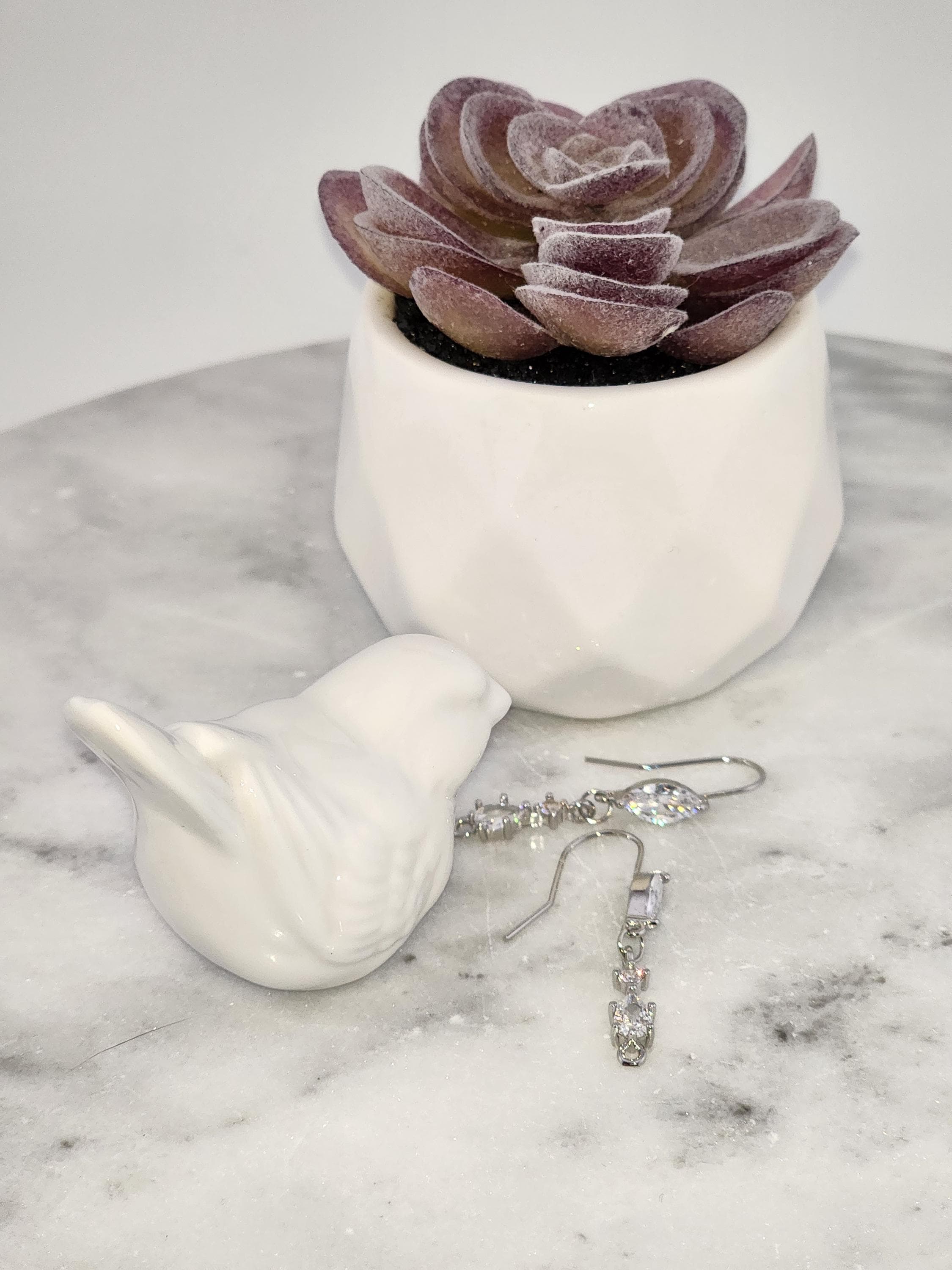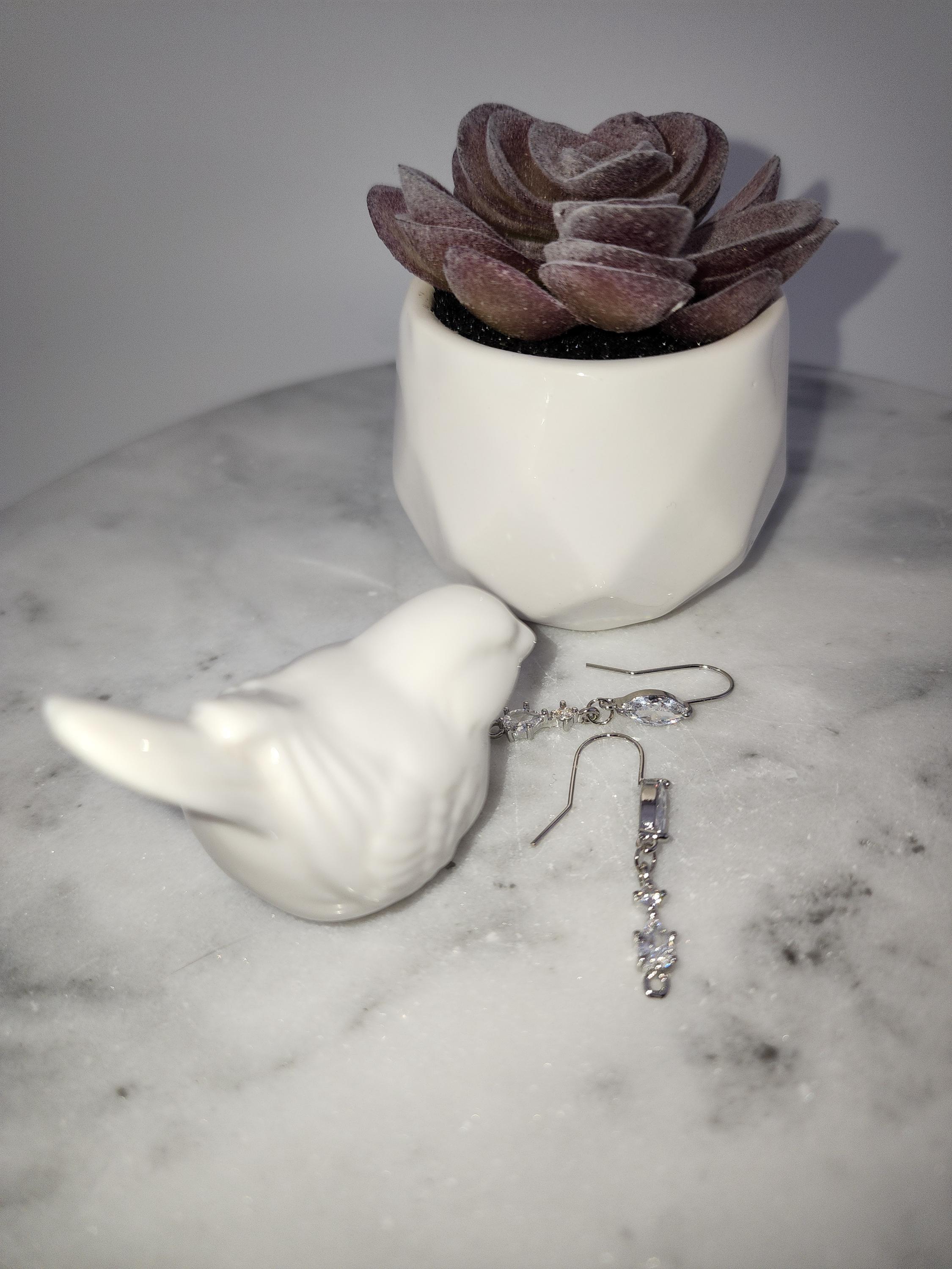 Fantastic Art Nouveau style platinum and pave' crystal dangle earrings. I made them using platinum plated brass and marquise cut CZ crystal U-shape ear wire hooks. Then I added silver plated CZ pave' clear teardrop gemstone connector charms that hang from sterling silver plated connecting rings. THEY ARE GORGEOUS! * Your purchase will arrive in pretty packaging * Shipping is included