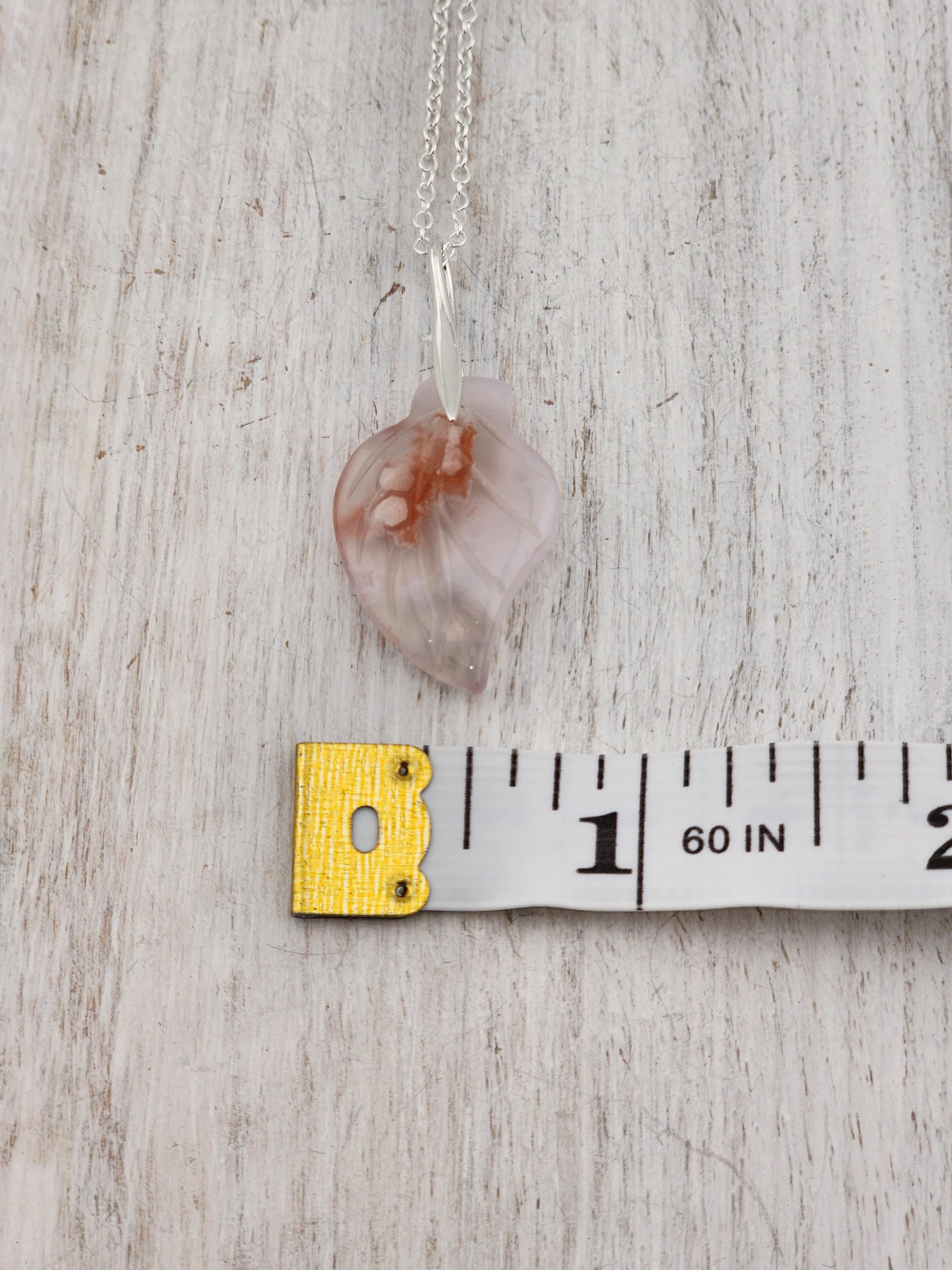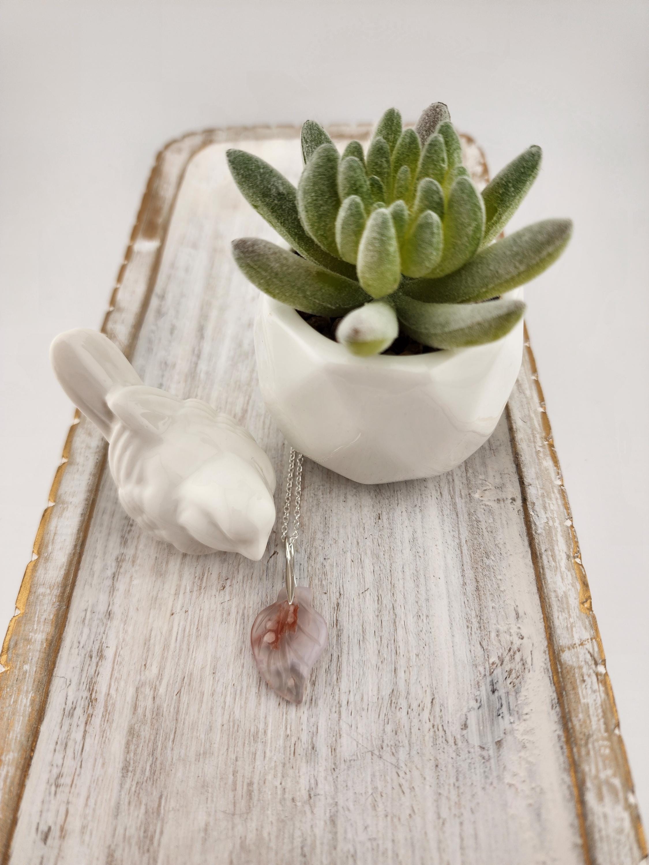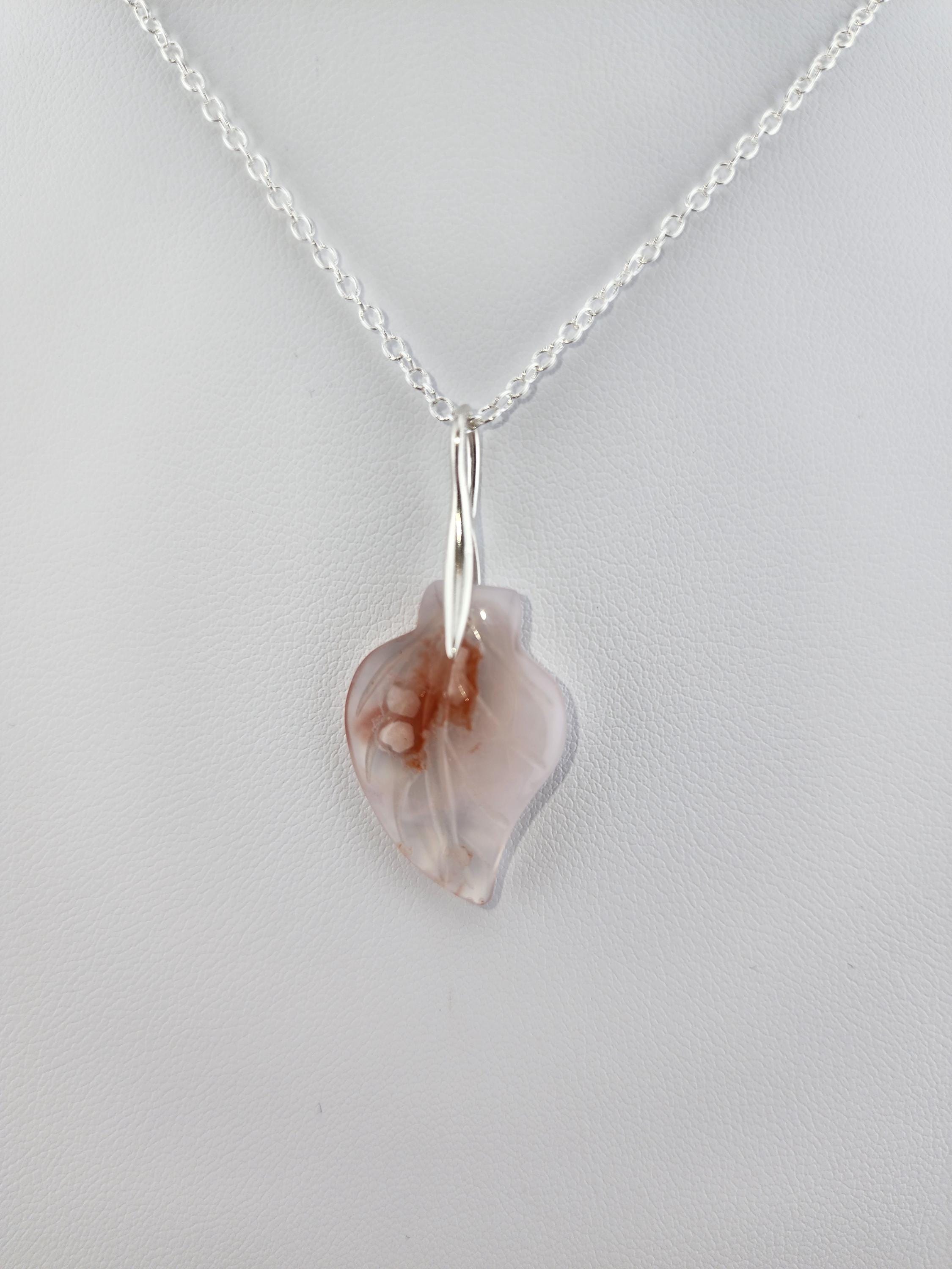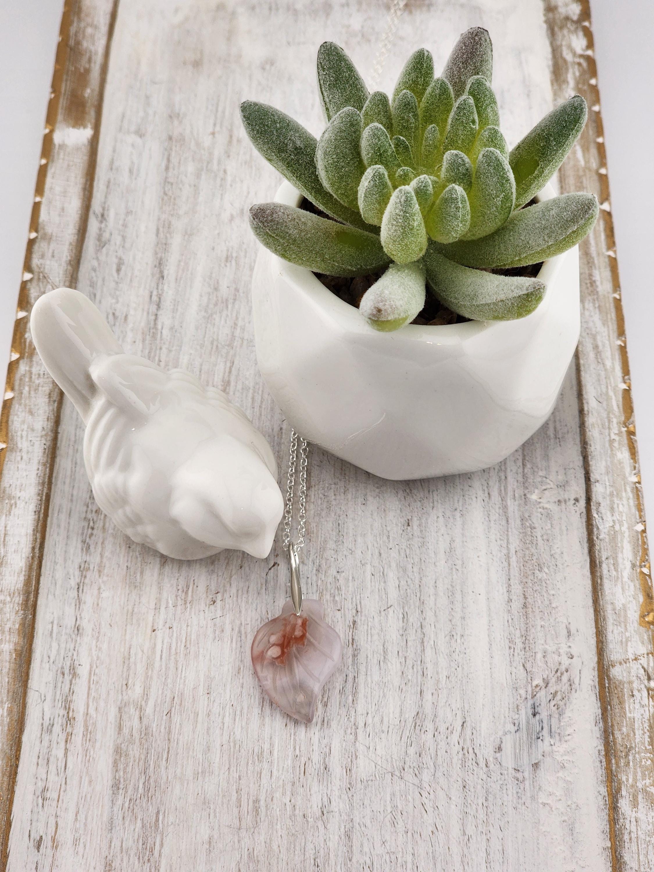 I made this elegant boho necklace using dainty sterling silver chain. I added a handcrafted cherry blossom Aka flower agate gemstone leaf pendant that hangs from a sterling silver bail. * Your purchase will arrive in pretty packaging * Shipping is free within the U.S.