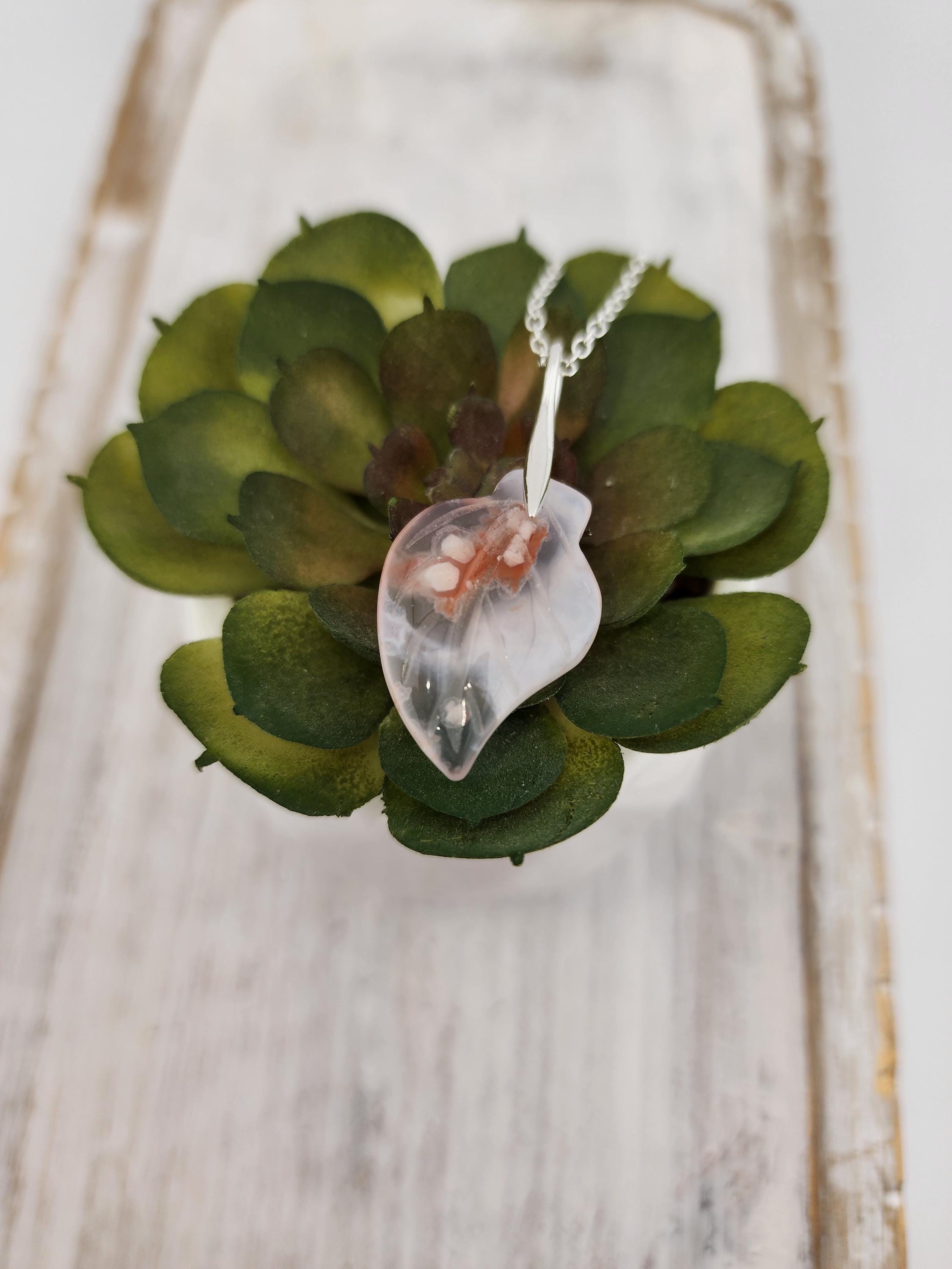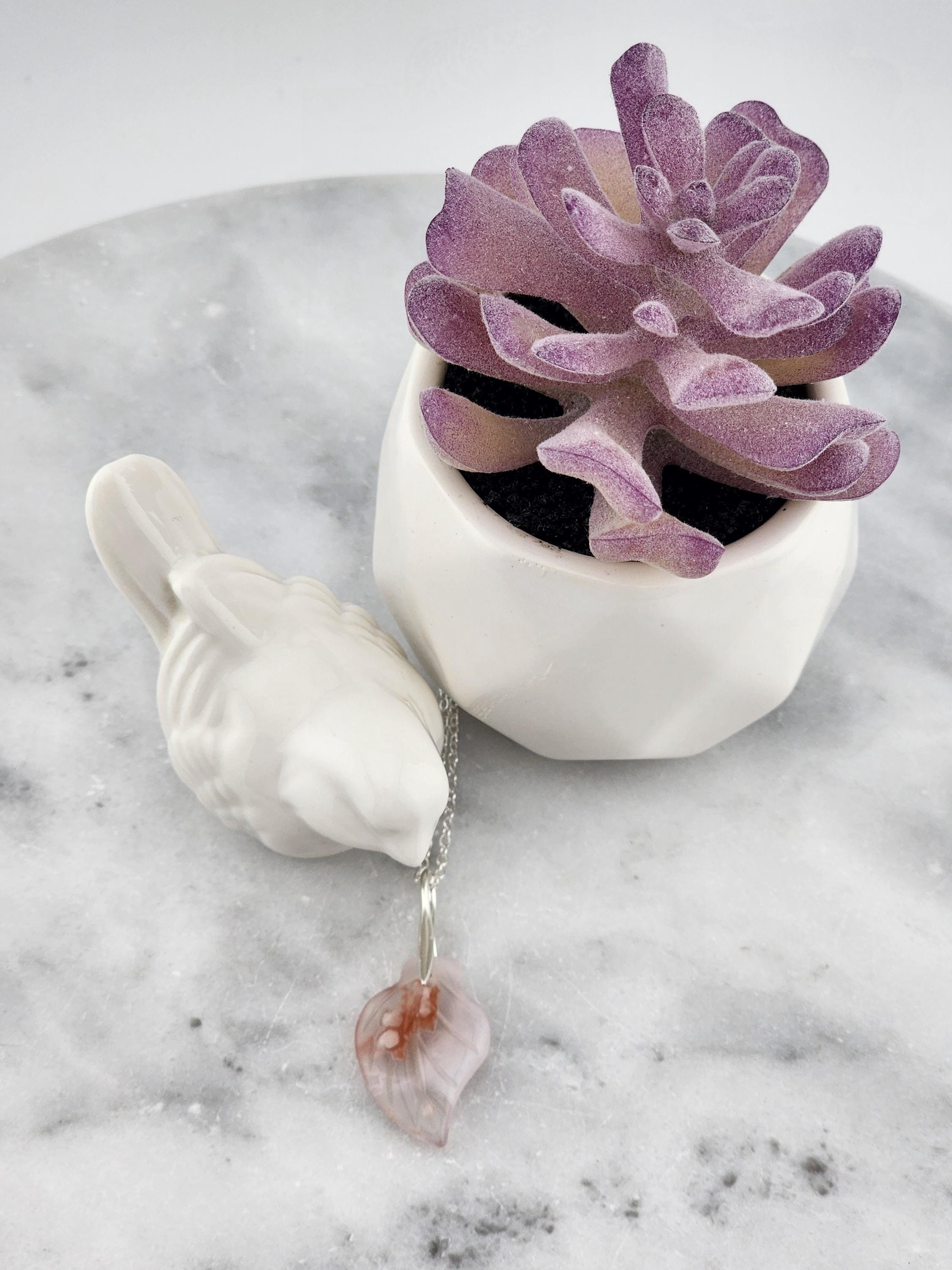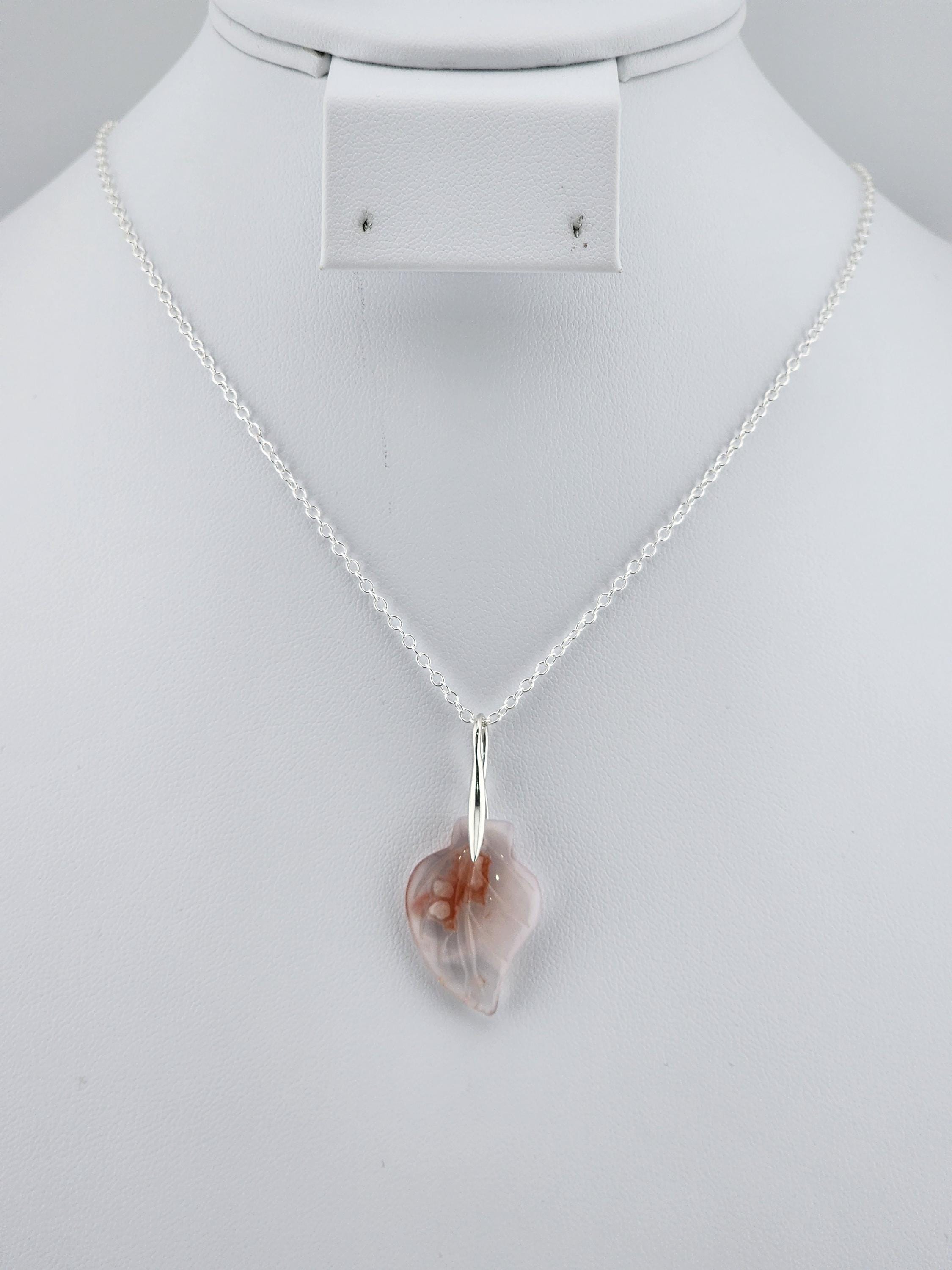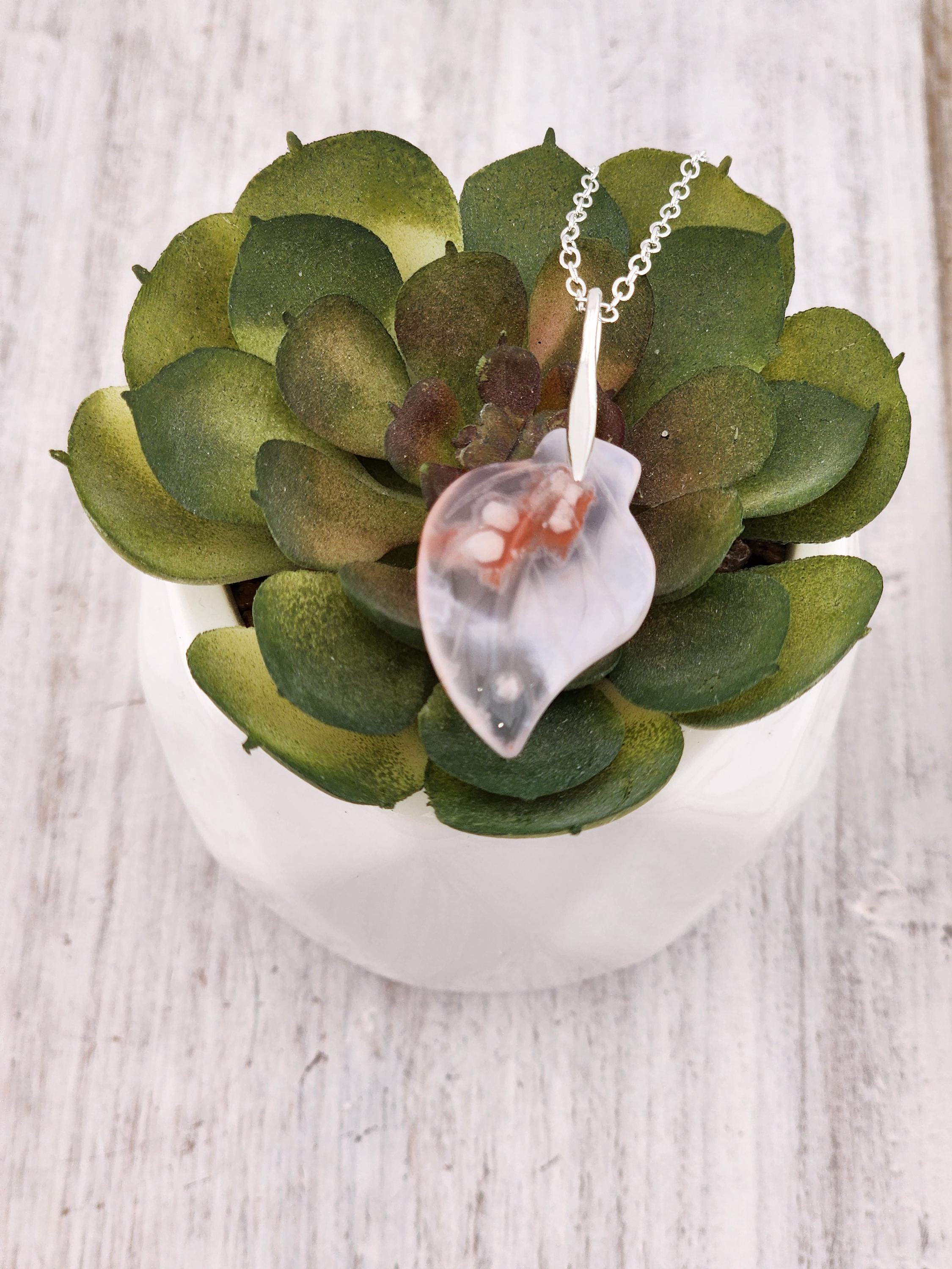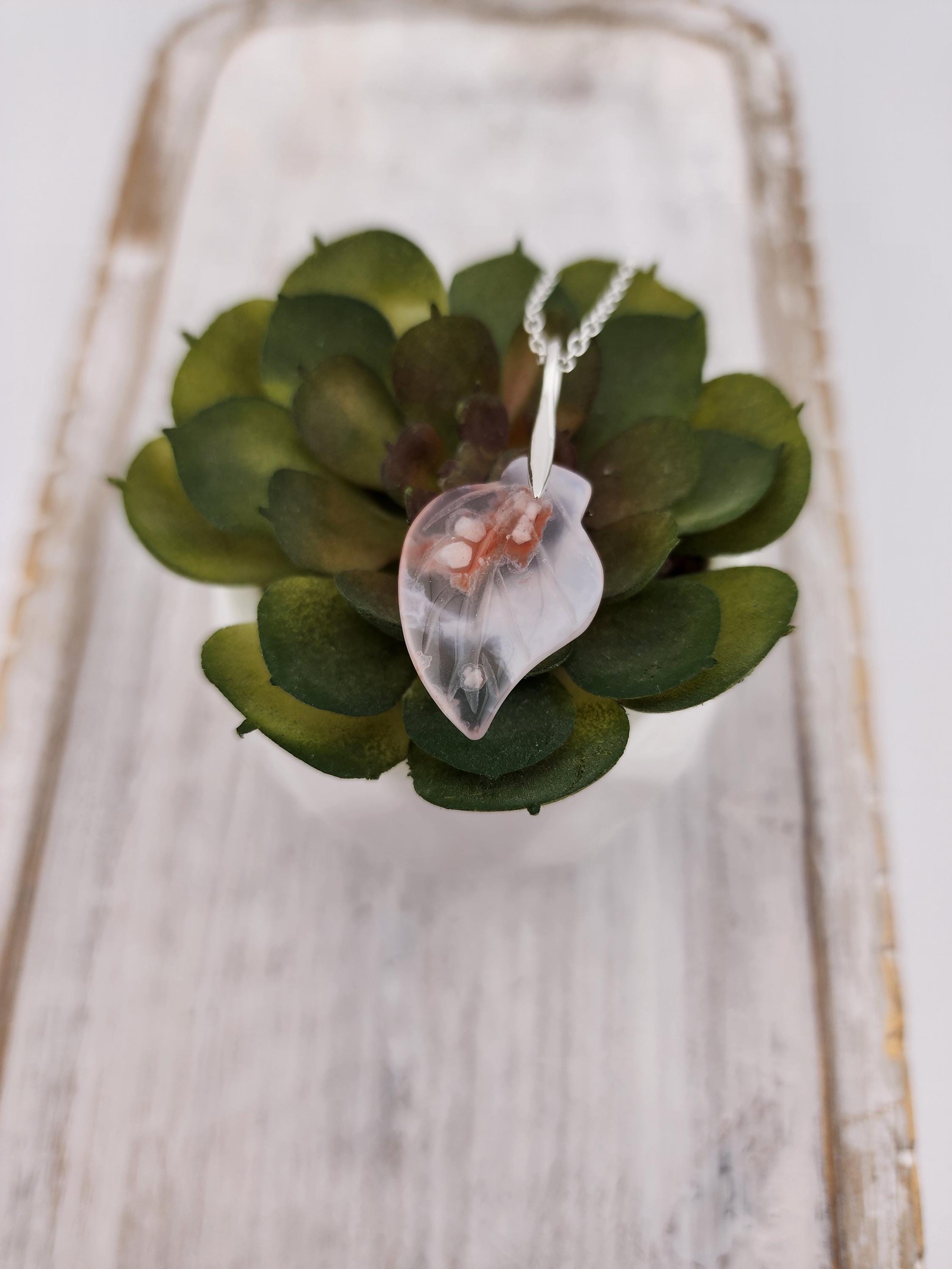 I made this elegant boho necklace using dainty sterling silver chain. I added a handcrafted cherry blossom Aka flower agate gemstone leaf pendant that hangs from a sterling silver bail. * Your purchase will arrive in pretty packaging * Shipping is free within the U.S.