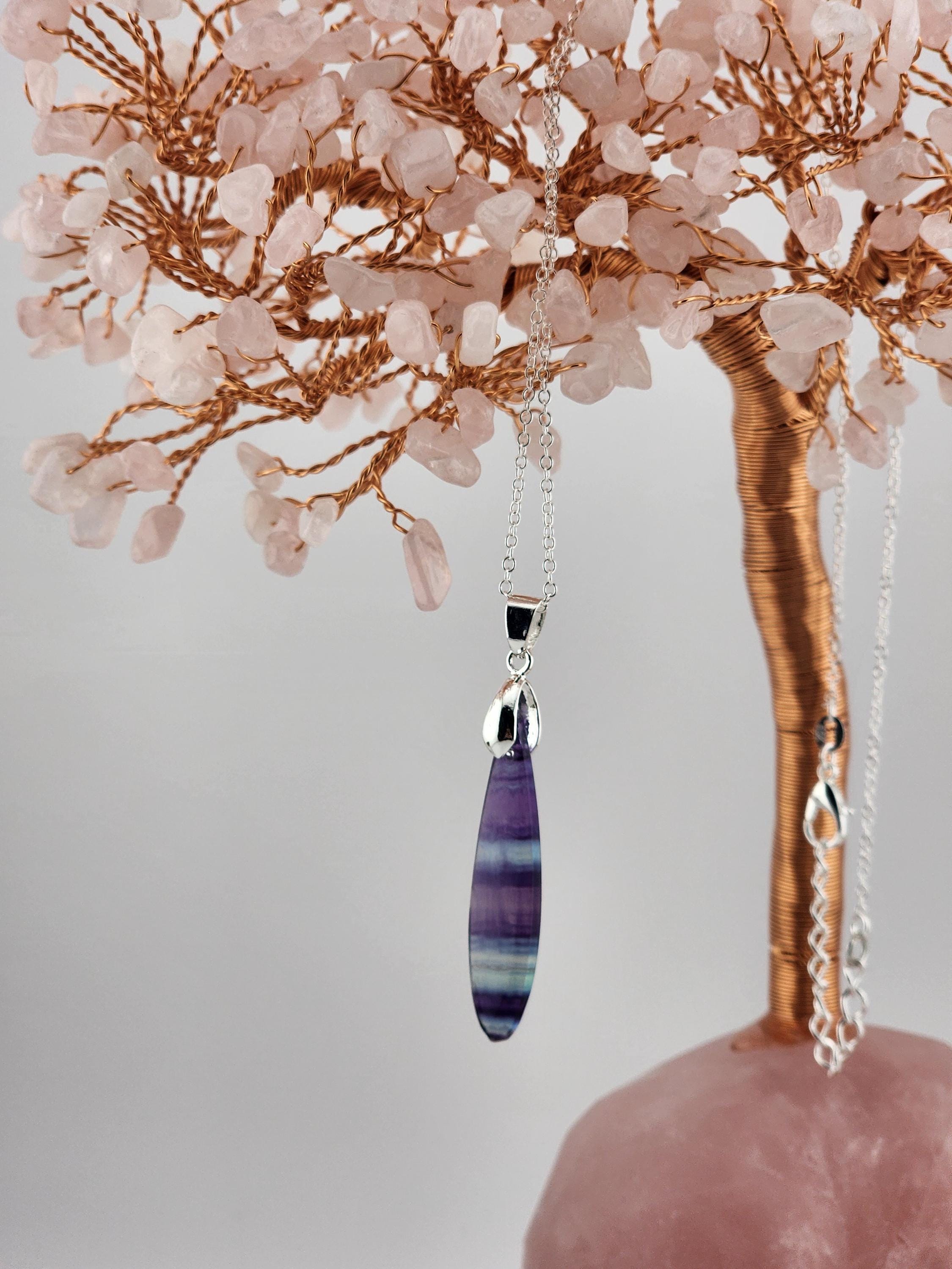 I made this necklace using delicate sterling silver chain with an extender that makes the necklace 20"-22" in length. The pendant is a handcrafted Rainbow Fluorite long teardrop gemstone that hangs from a sterling silver bail. * Your purchase will arrive in pretty packaging * Shipping is free within the U.S.