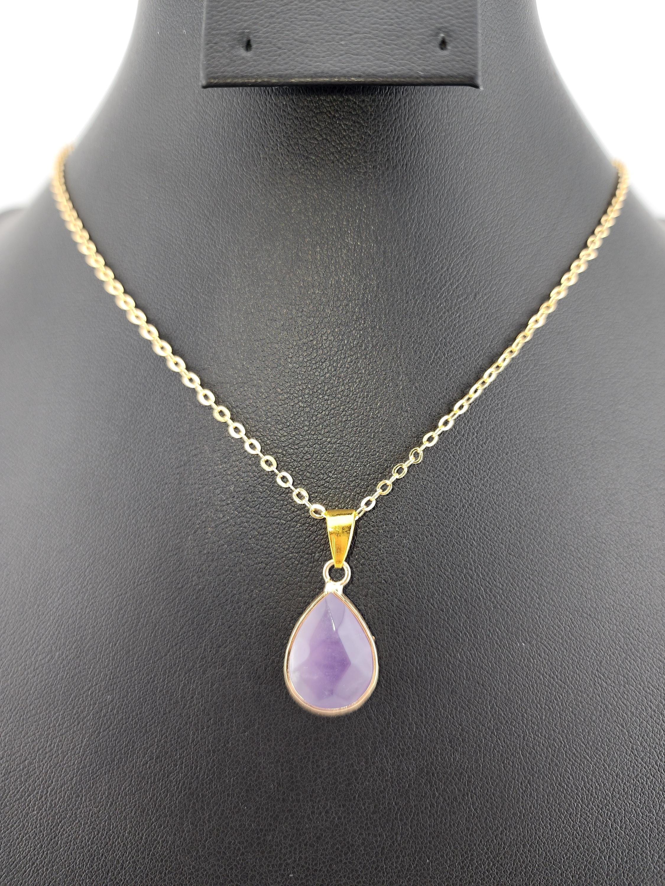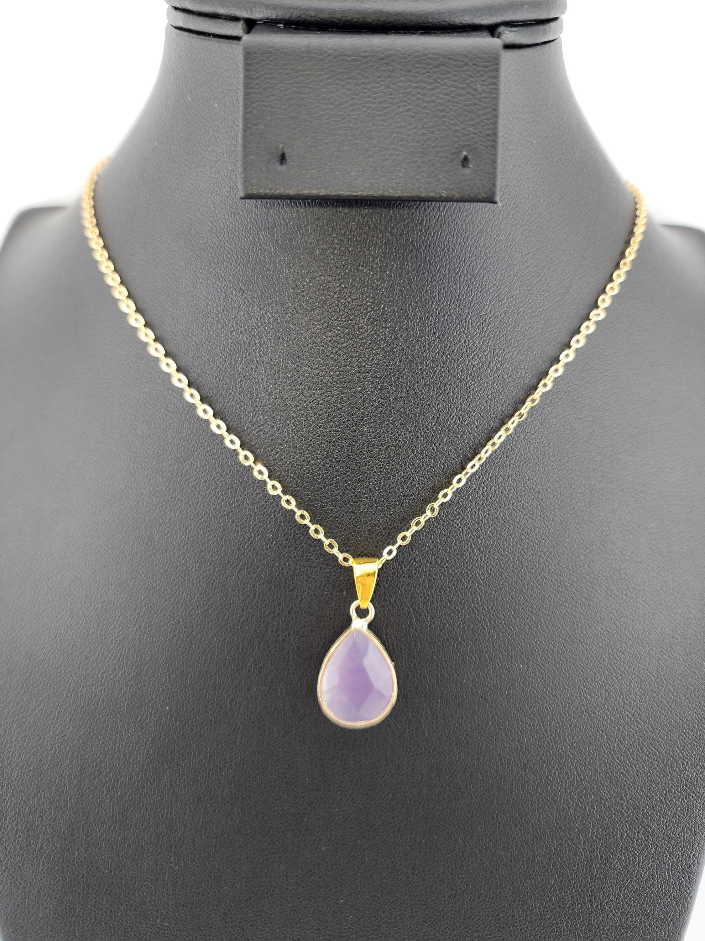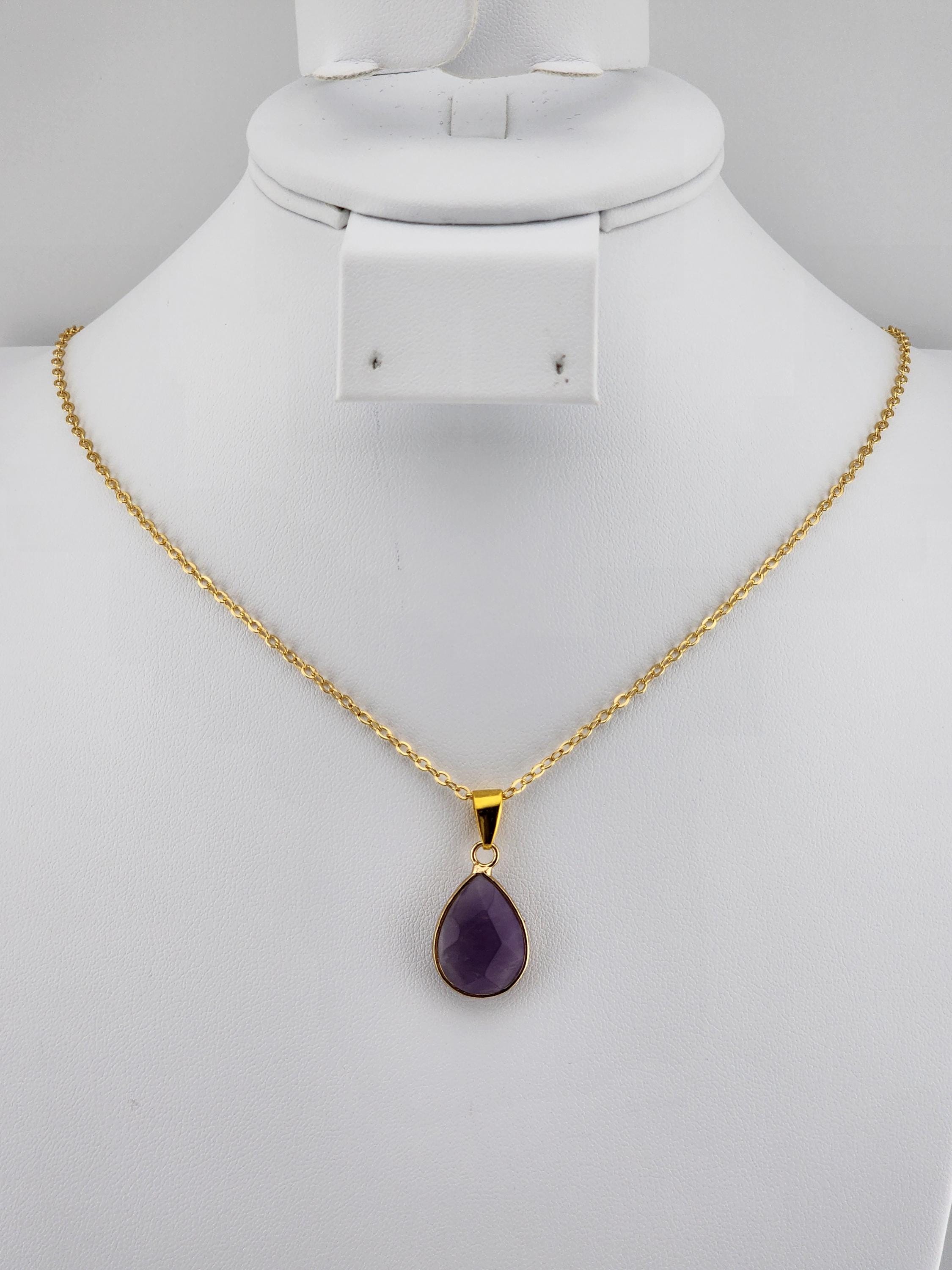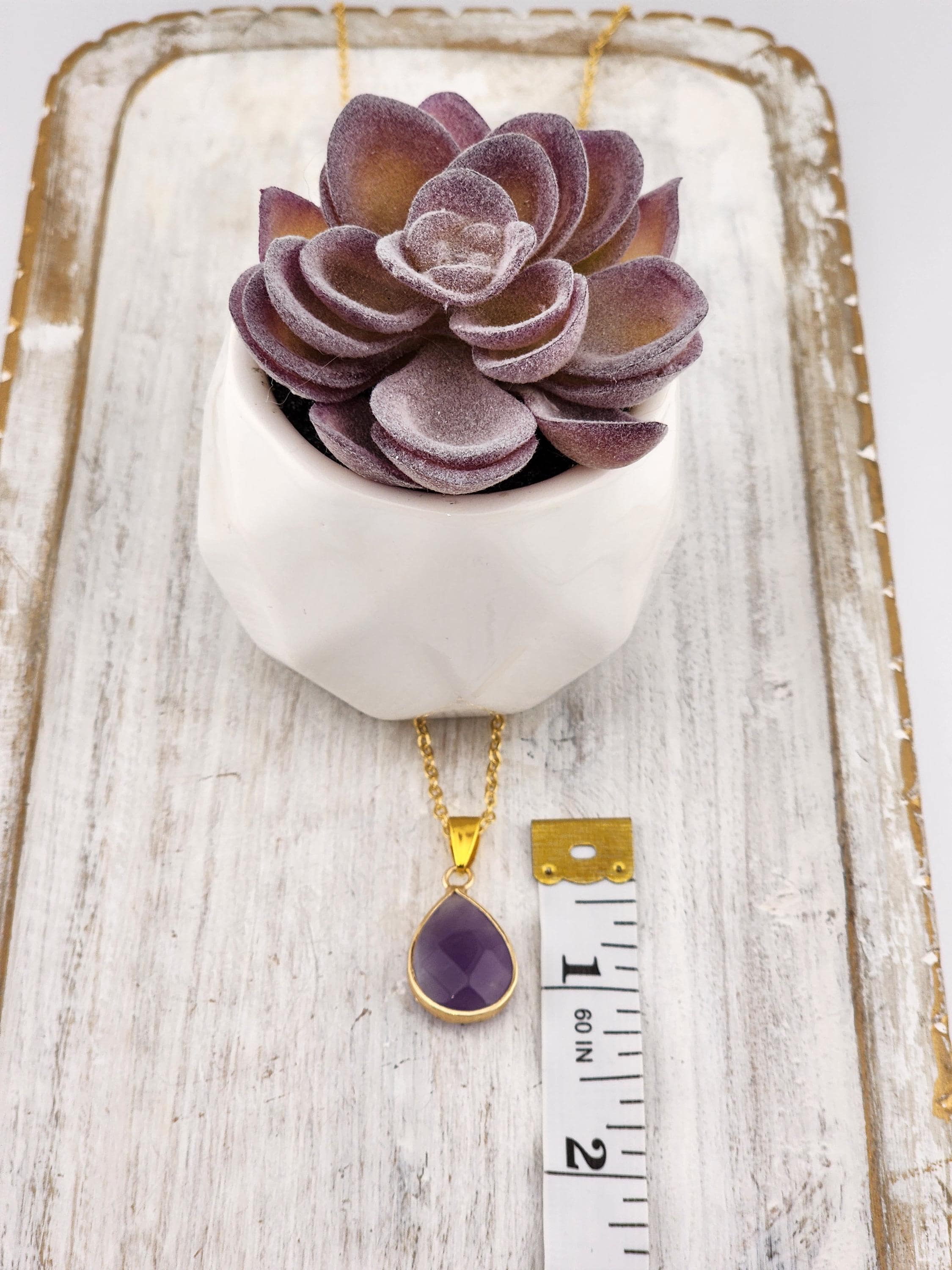 I made this necklace using elegant tarnish resistant 18k gold plated chain. It has a pretty 18k gold plated brass hook style clasp with 24k gold plated connecting rings. The pendant is a faceted teardrop shape purple amethyst crystal. * Your purchase will arrive in pretty packaging * Shipping is included
