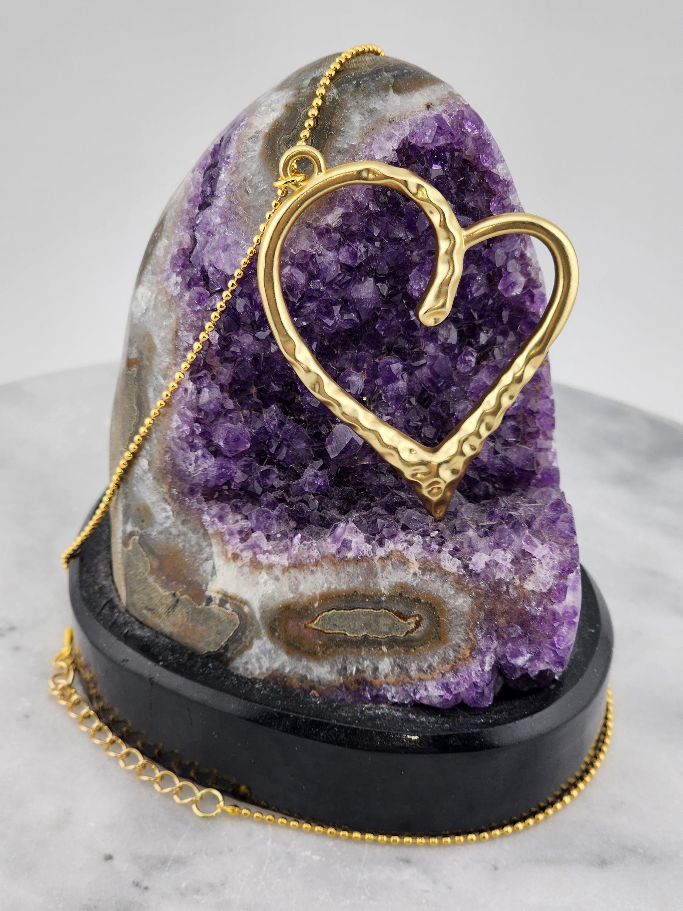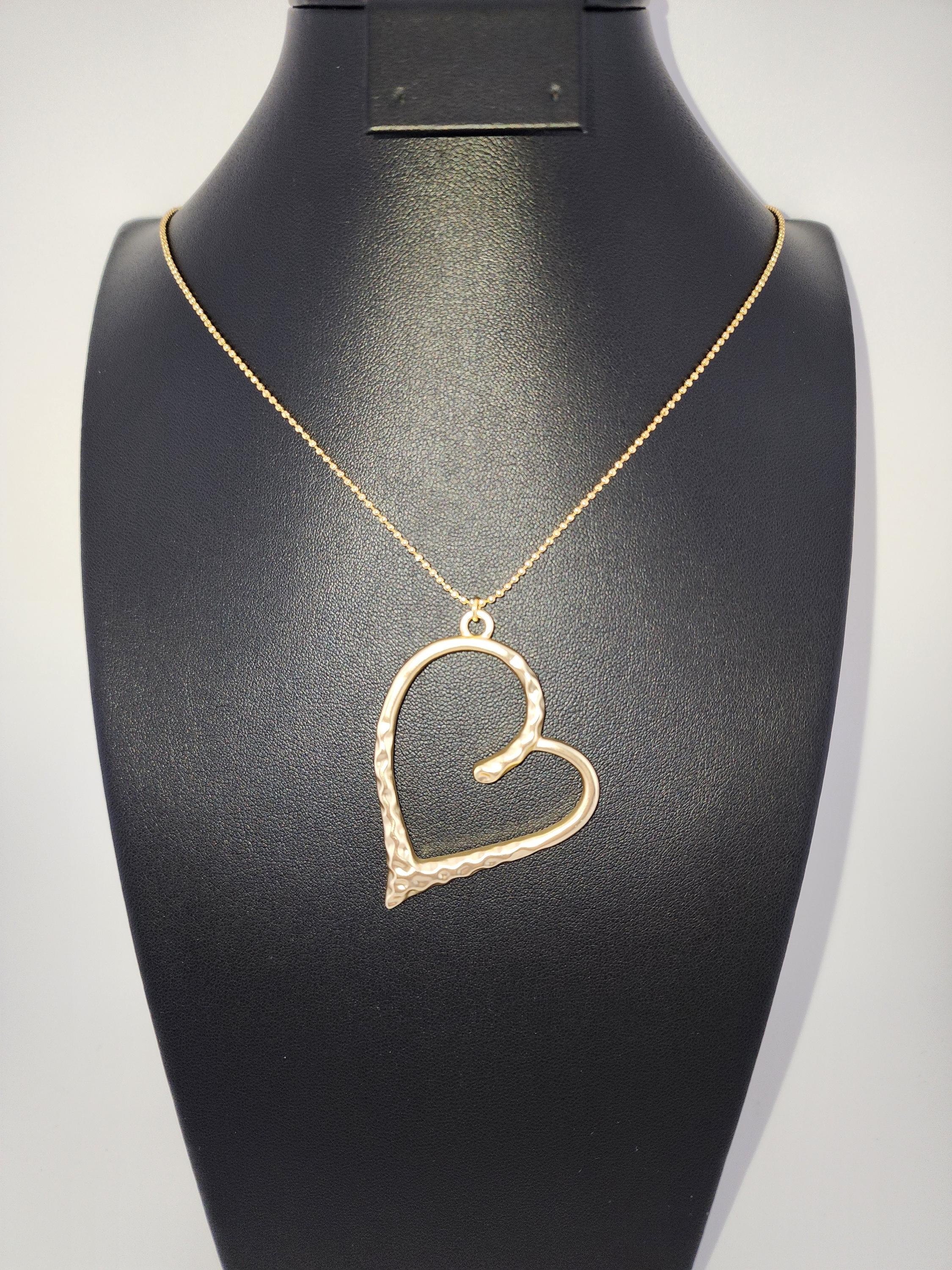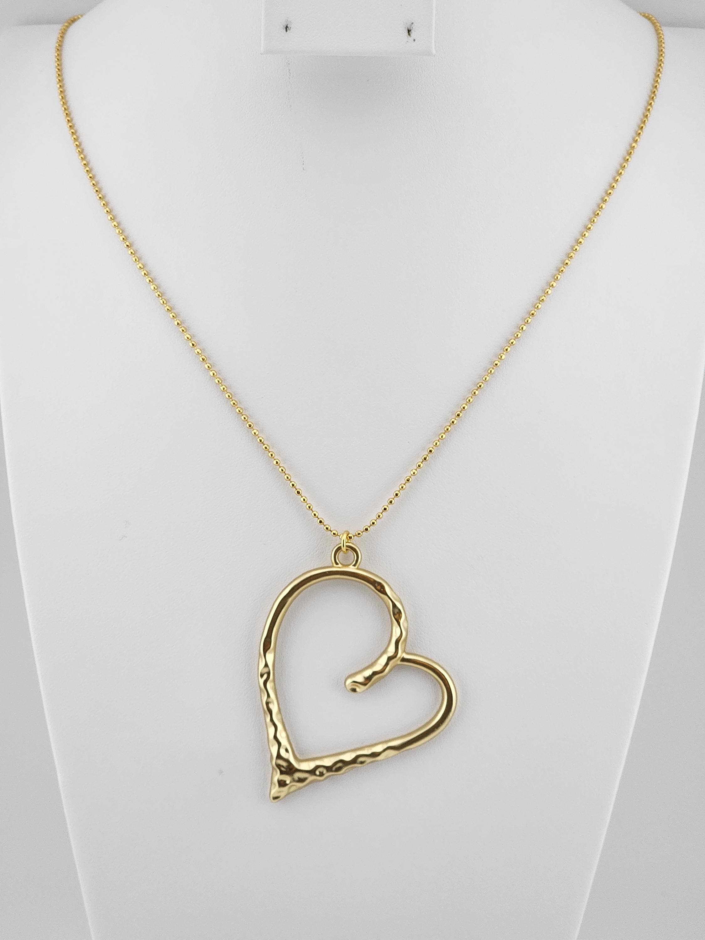 I made this necklace using tarnish resistant 18k gold plated dot chain. It has an extender chain making the necklace adjustable from 22" to 24" in length. The pendant is a large hollow hammered tarnish resistant 14k gold plated heart. There are 24k gold plated connecting rings. The gold ensures that the pendant necklace will stay bright and shiny and is perfect for Love Day. * Your purchase will arrive in pretty packaging * Shipping is included