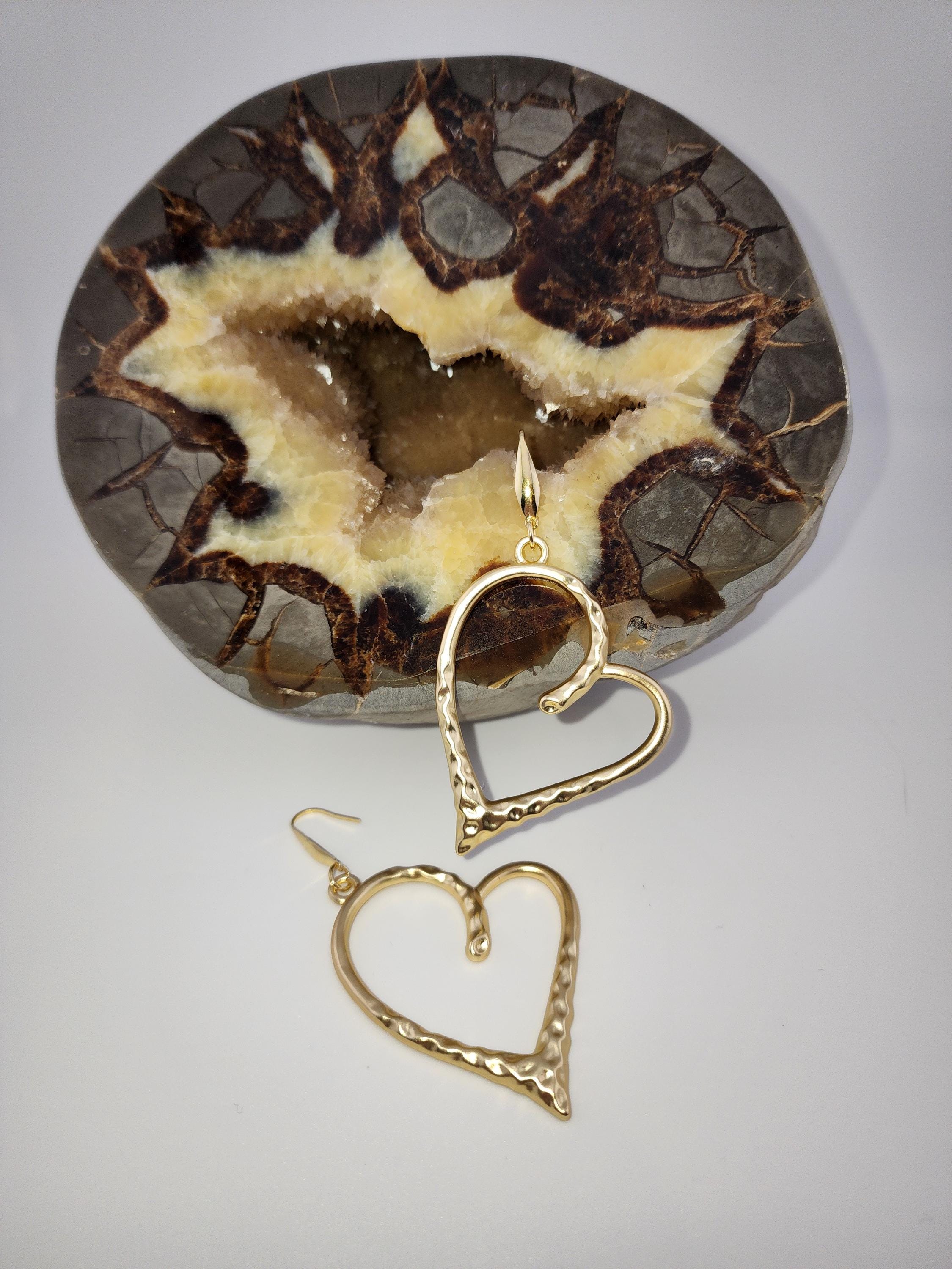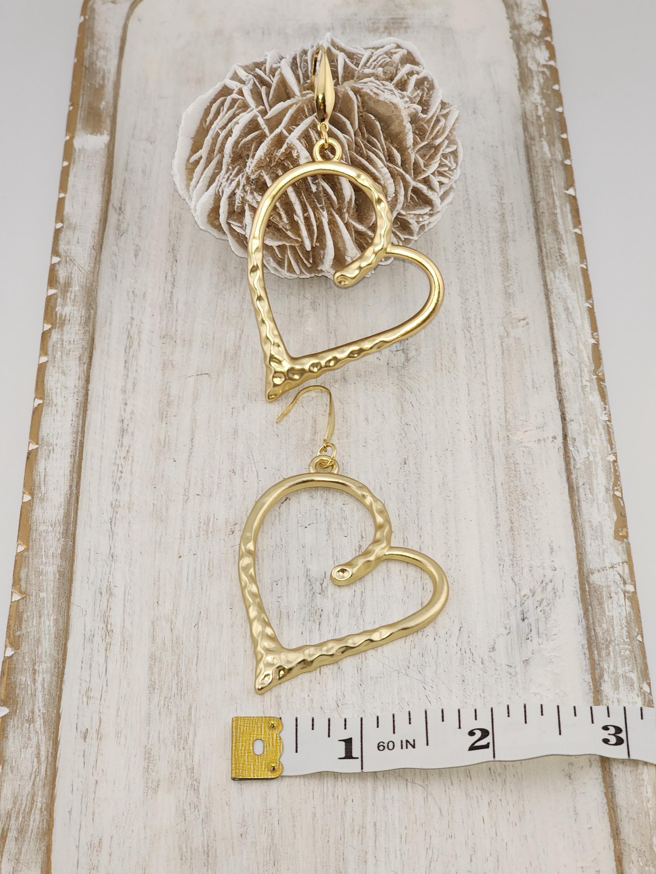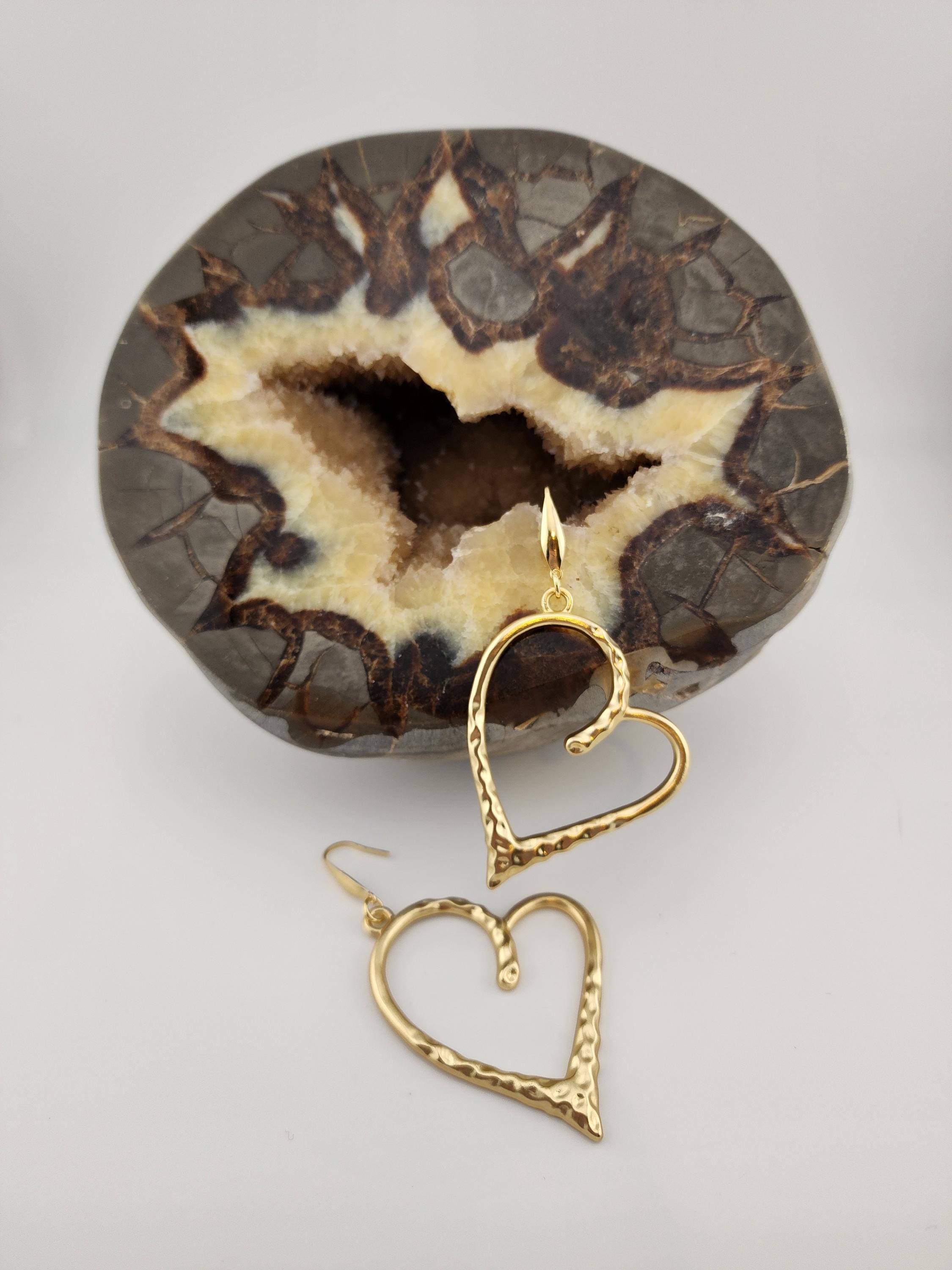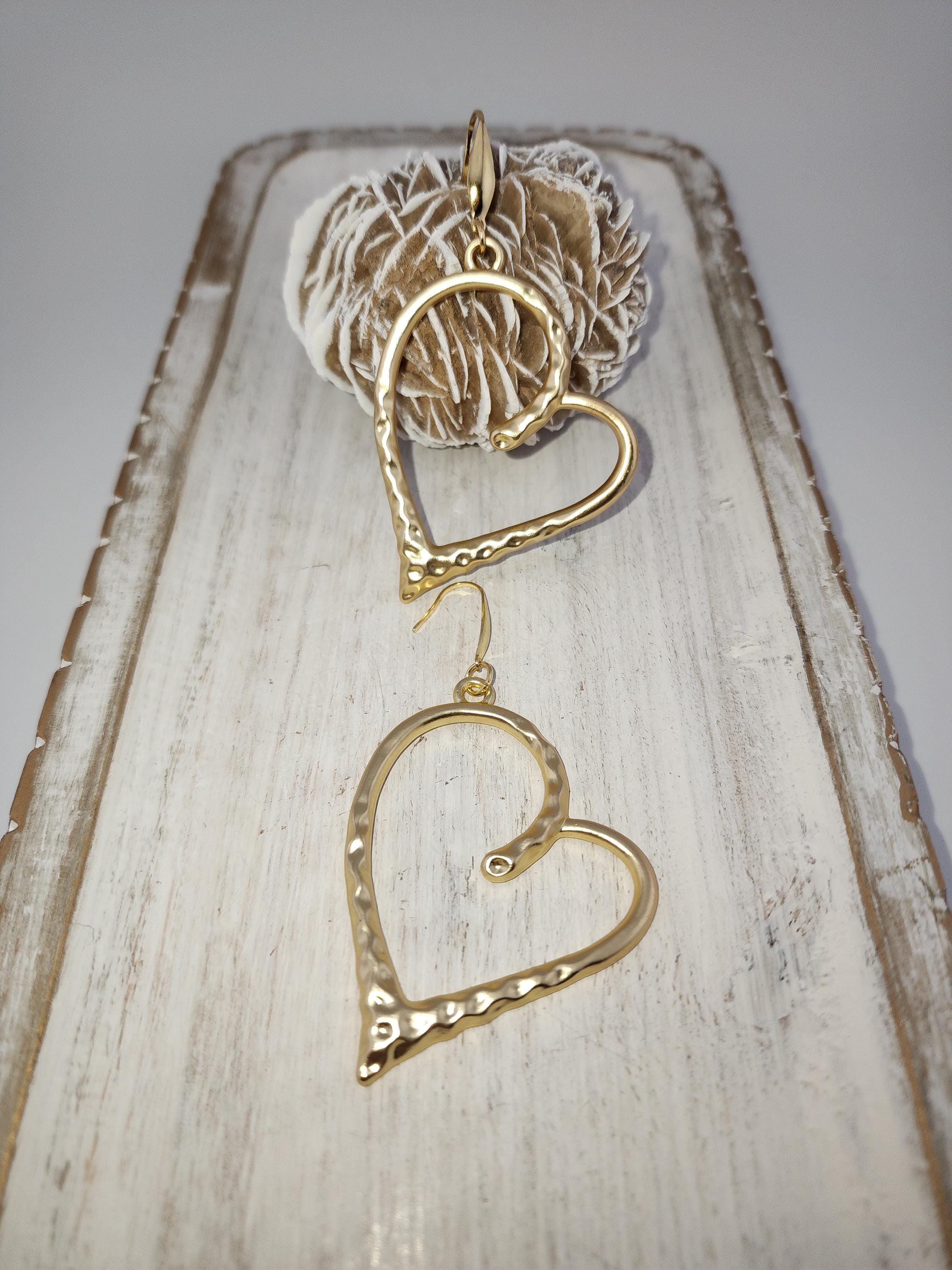 These earrings are made using gold threader hooks. From them are large hammered 14k gold plated hollow heart pendant charms that hang from 18k gold plated connecting rings. The gold ensures that the earrings will stay bright and shiny. Perfect for LOVE DAY gifts. * Your purchase will arrive in pretty packaging * Shipping is free