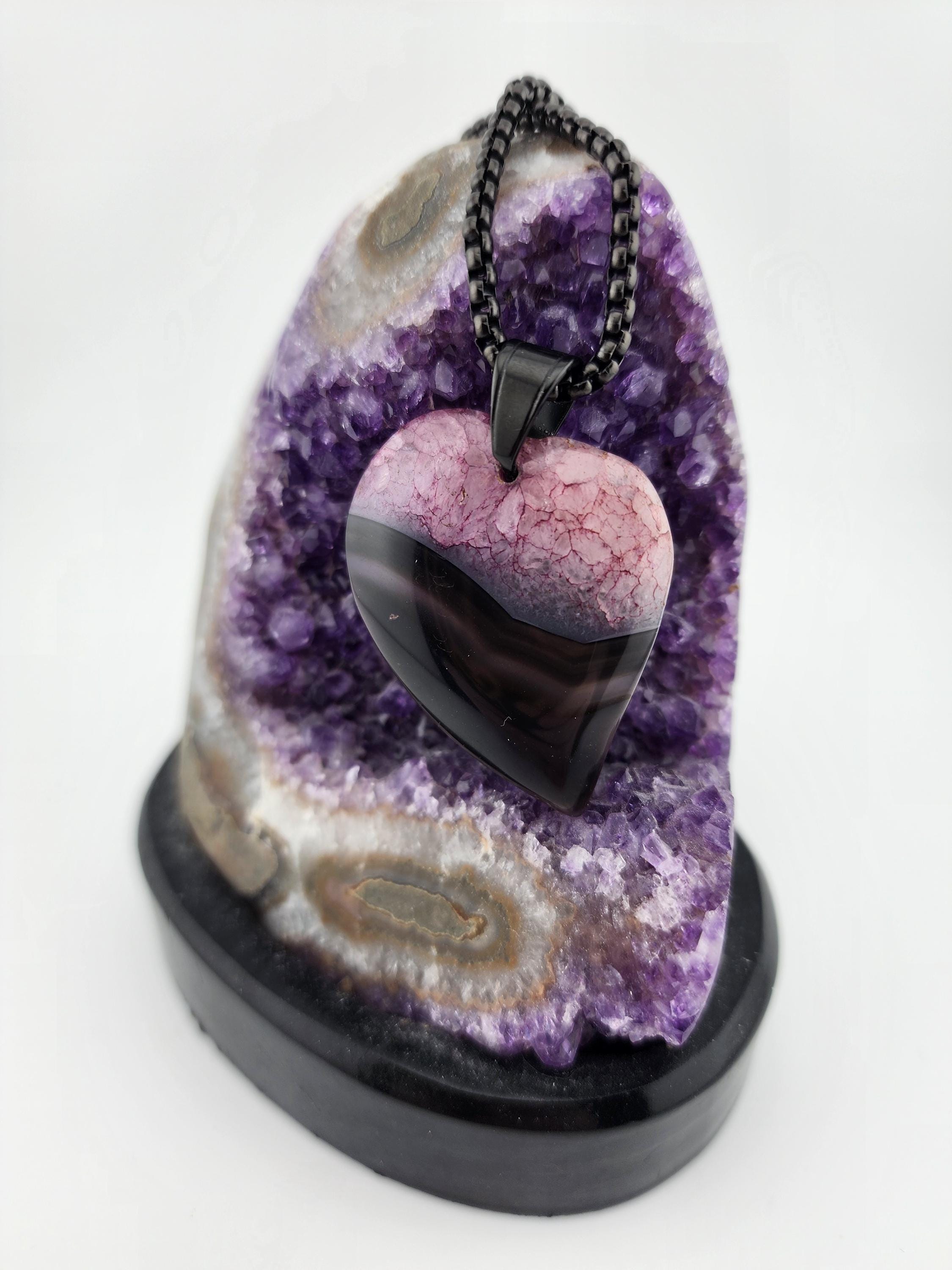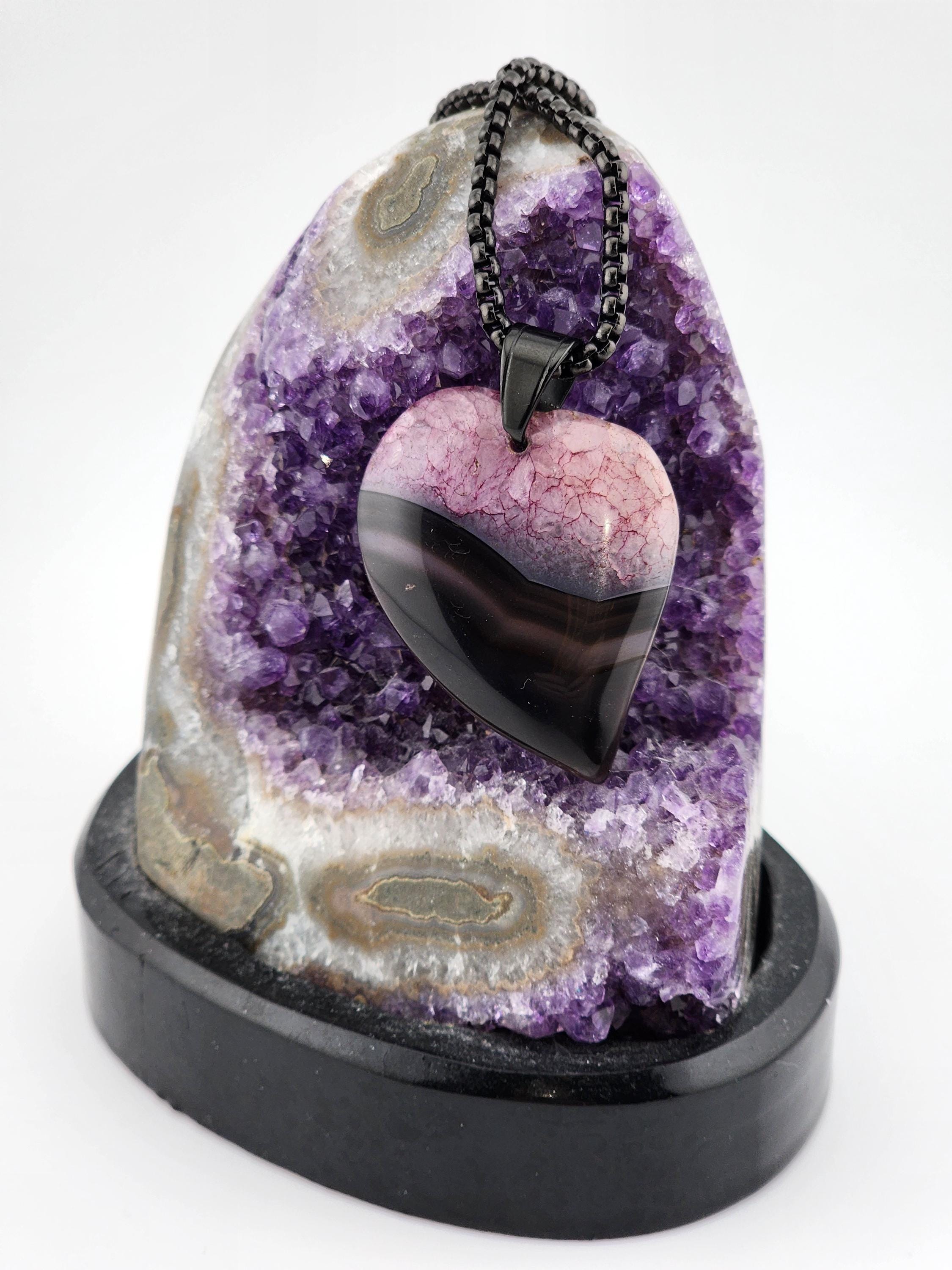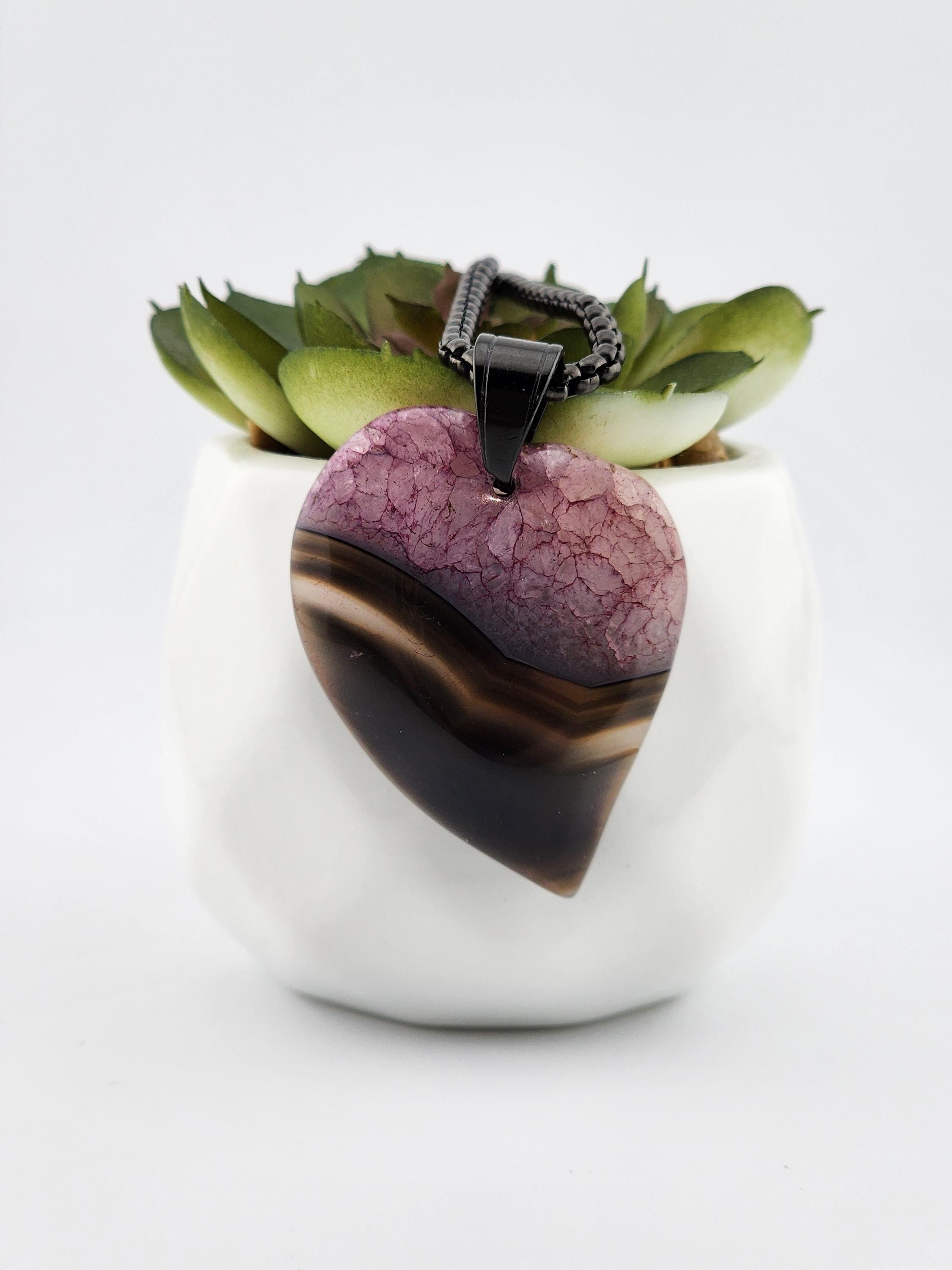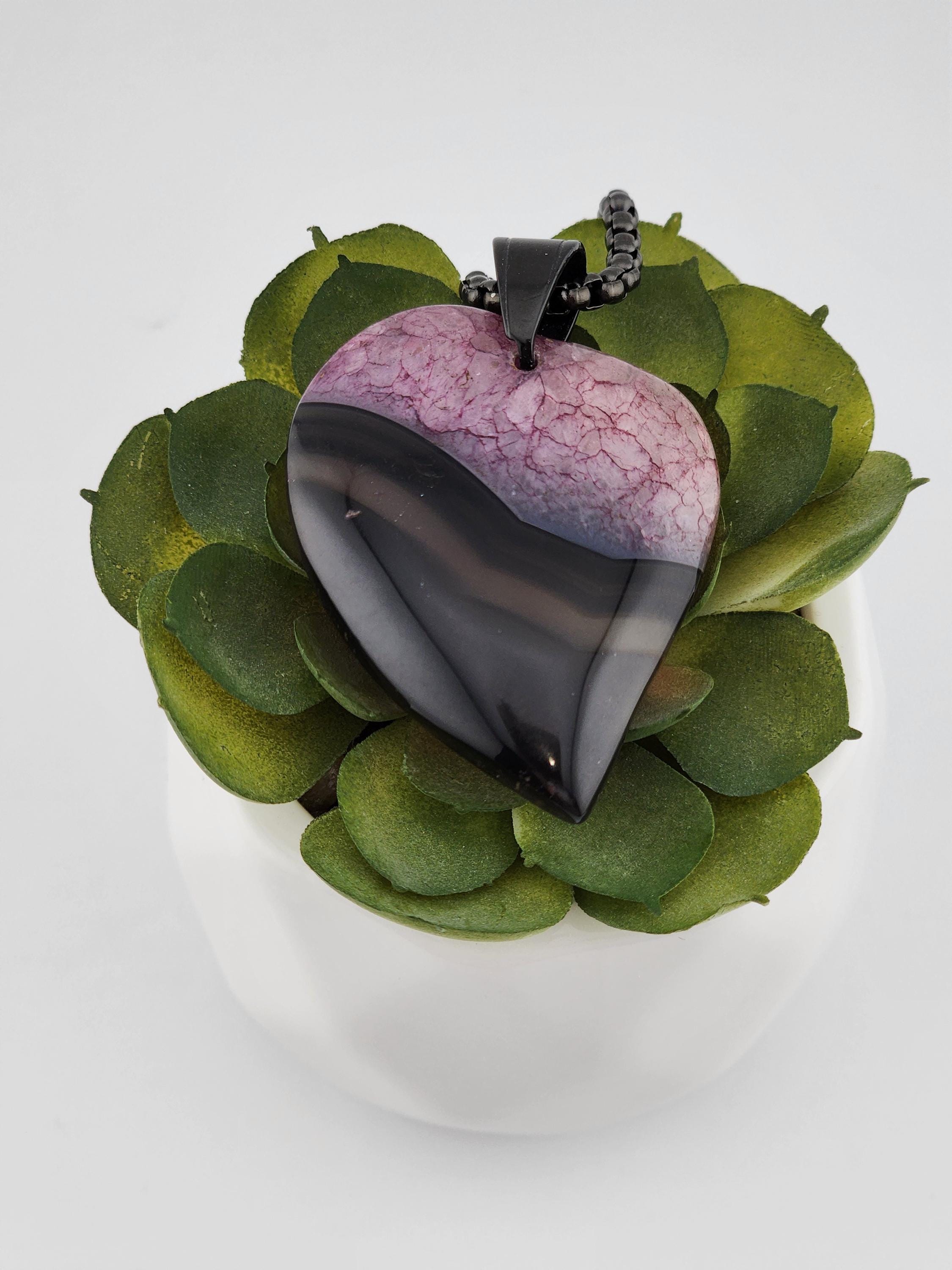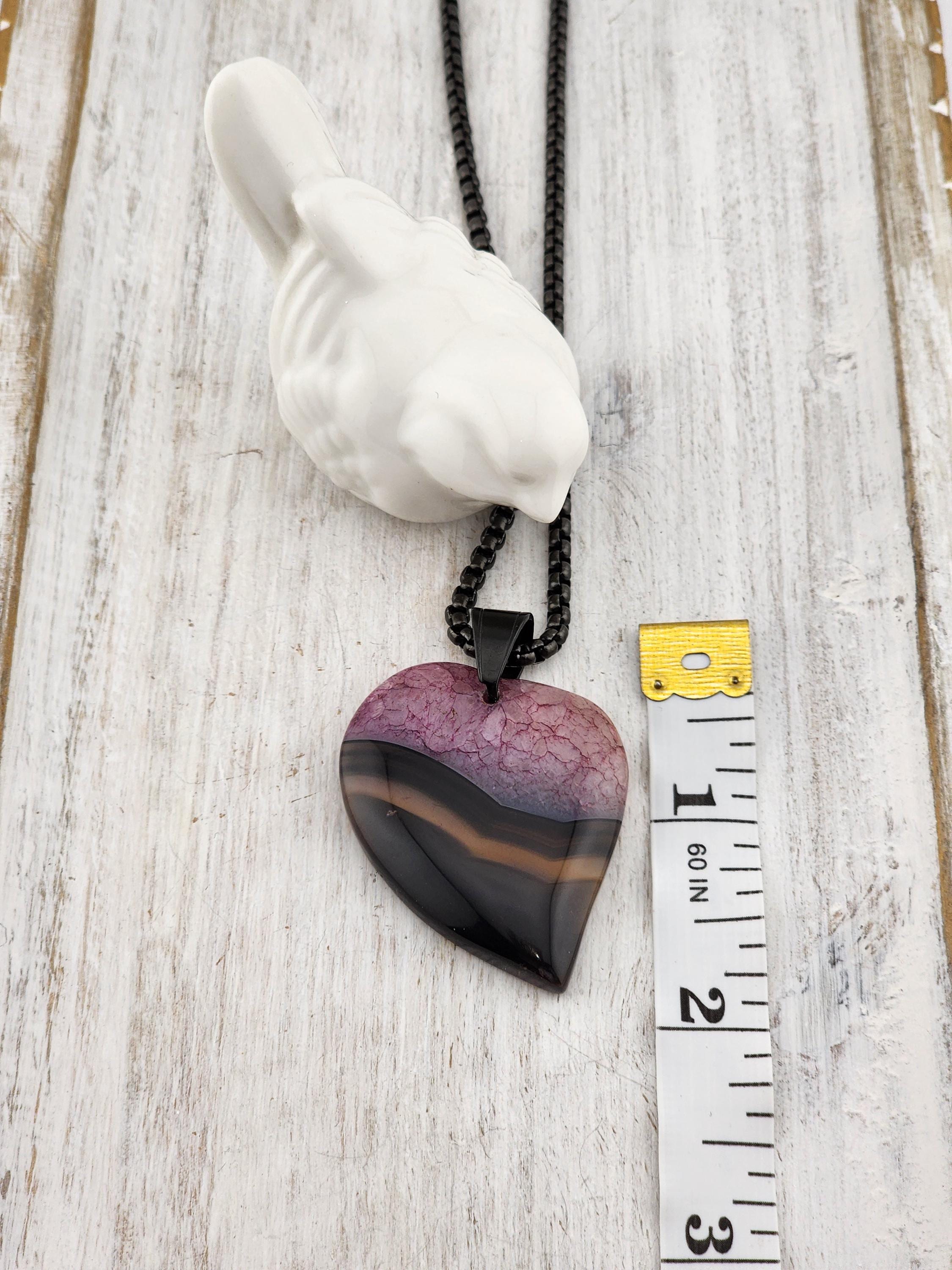 I made this necklace using highly polished black square rolo chain. It has an extender chain making the necklace adjustable from 20" to 22" in length. I added a heart shaped natural gradient color crystal stone pendant in purple and black. A perfect boho style LOVE DAY gift, whenever that may be for you. * Your purchase will arrive in pretty packaging * Shipping is included