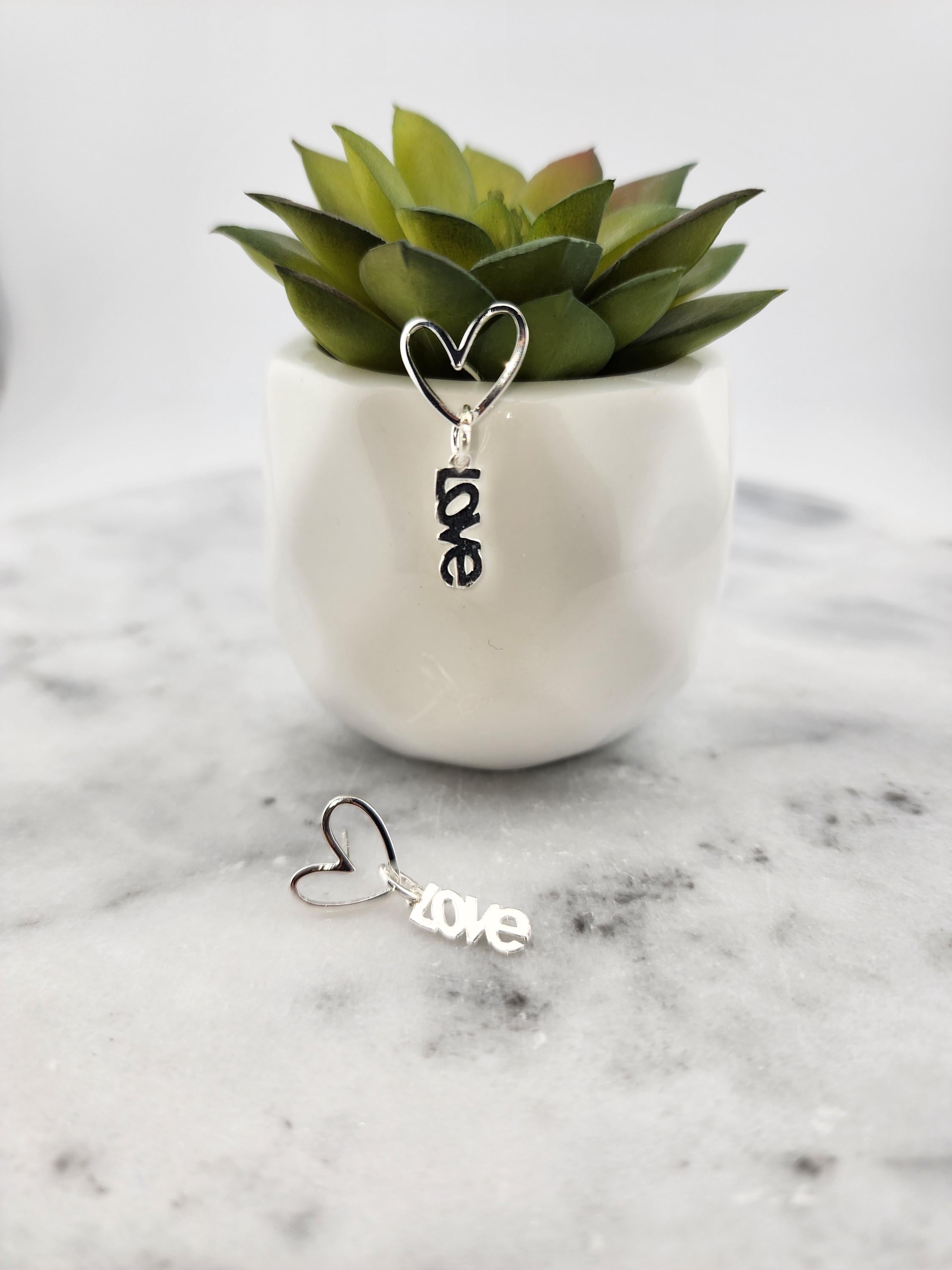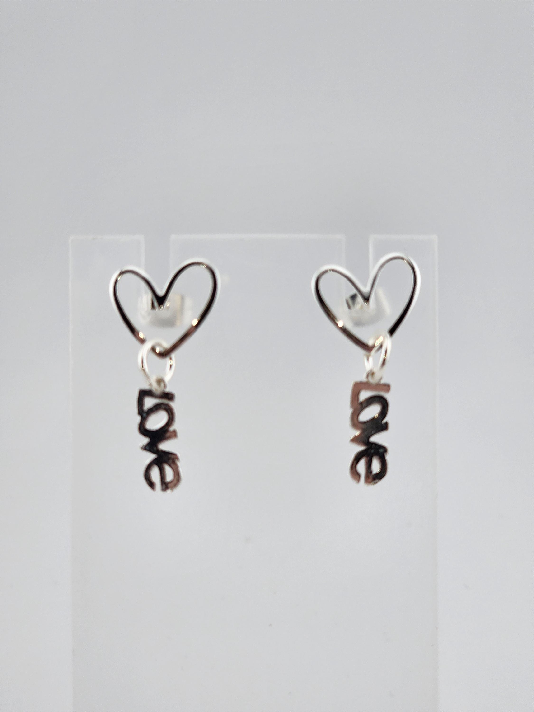 These are sterling silver plated brass hollow heart earrings with 925 sterling silver LOVE word charms that hang from sterling silver rings. Perfect for LOVE DAY gifts, or any occasion. * Your purchase will arrive in pretty packaging * Shipping is included