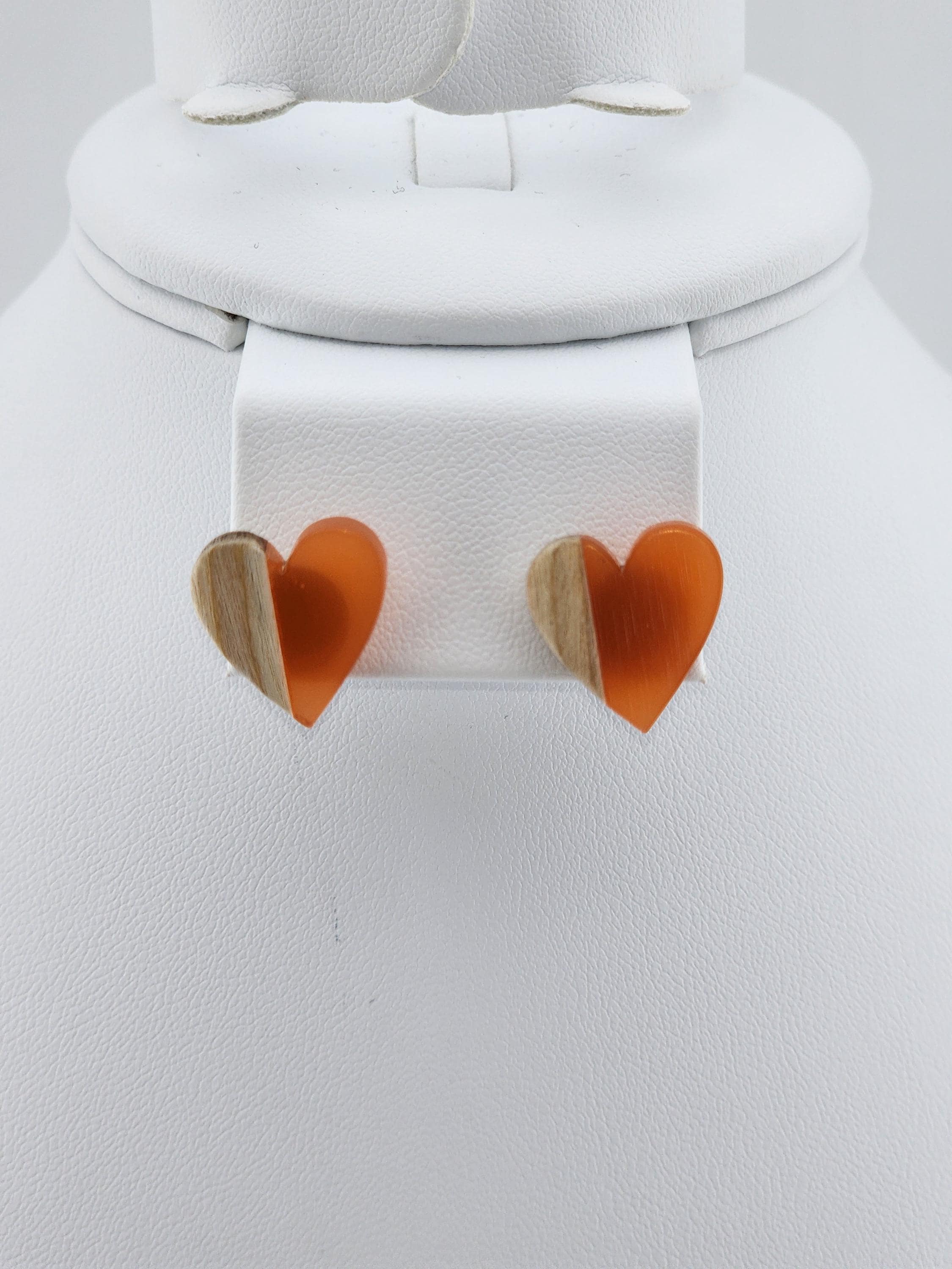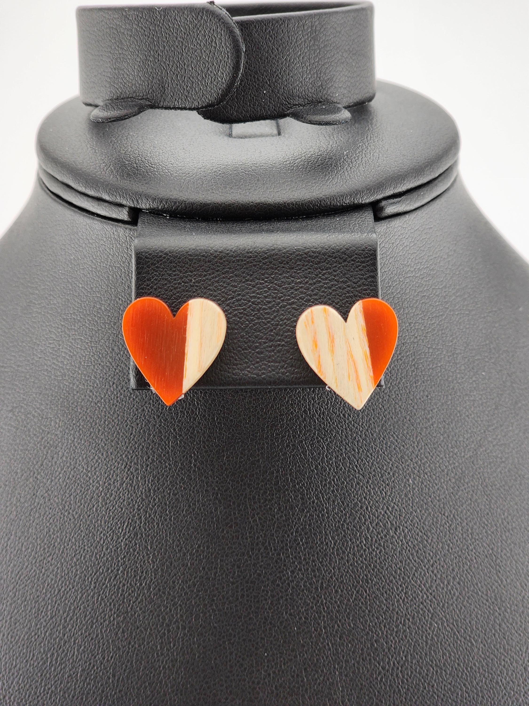These are colored resin and wood heart post earrings. These are perfect for Valentine's Day gifts to wear everyday. There are 10 different colors. YOUR CHOICES ARE: #1- Pink #2- Red #3- Purple #4- Green #5- Orange #6- Blue #7- Yellow #8- Pale Green #9- Pale Yellow #10- Natural * Shipping is included
