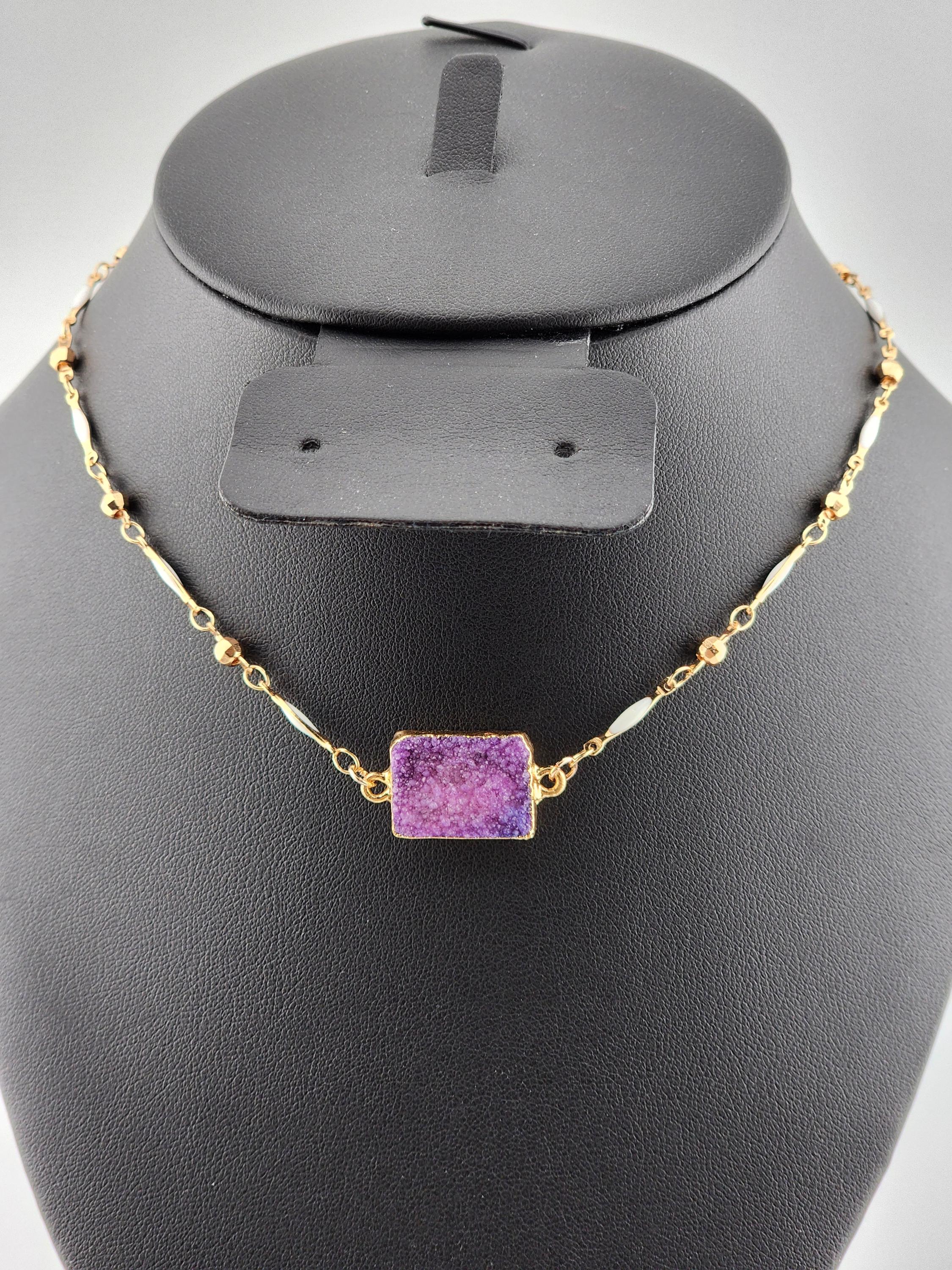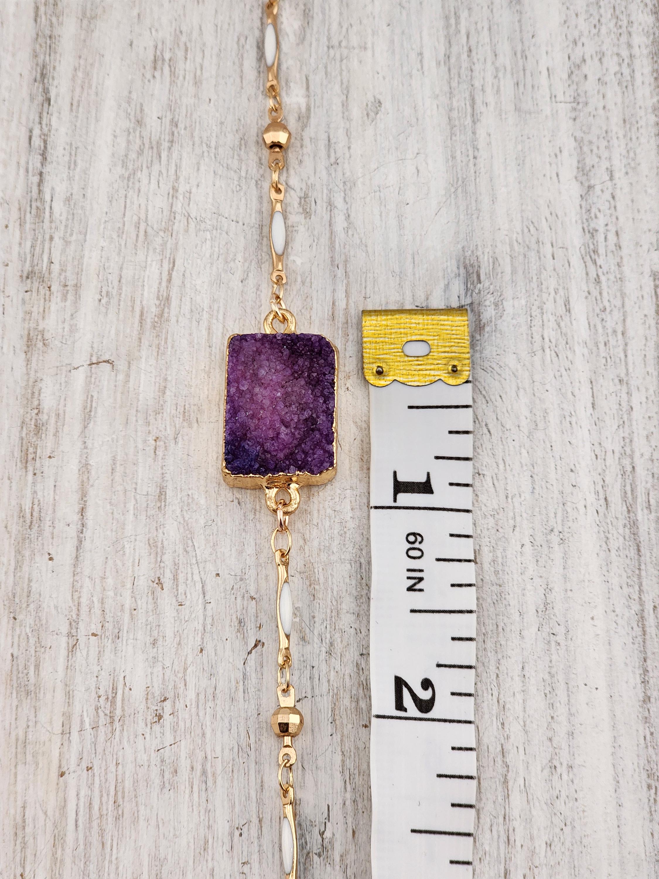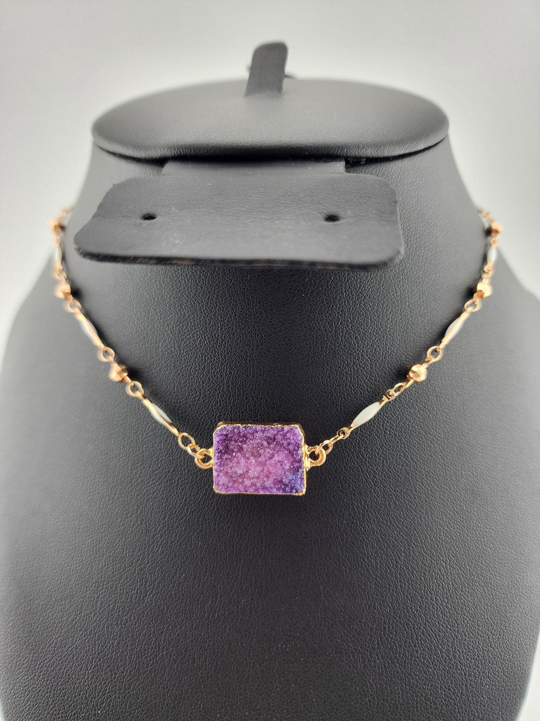 I made this beautiful choker using rose gold ball and white enamel link chain. It has an extender making it adjustable from 14"-16" in length. There is a rectangular shaped deep purple druzy quartz crystal connector in front. Perfect for February birthdays, or for any occasion. * Your purchase will arrive in pretty packaging * Shipping is included