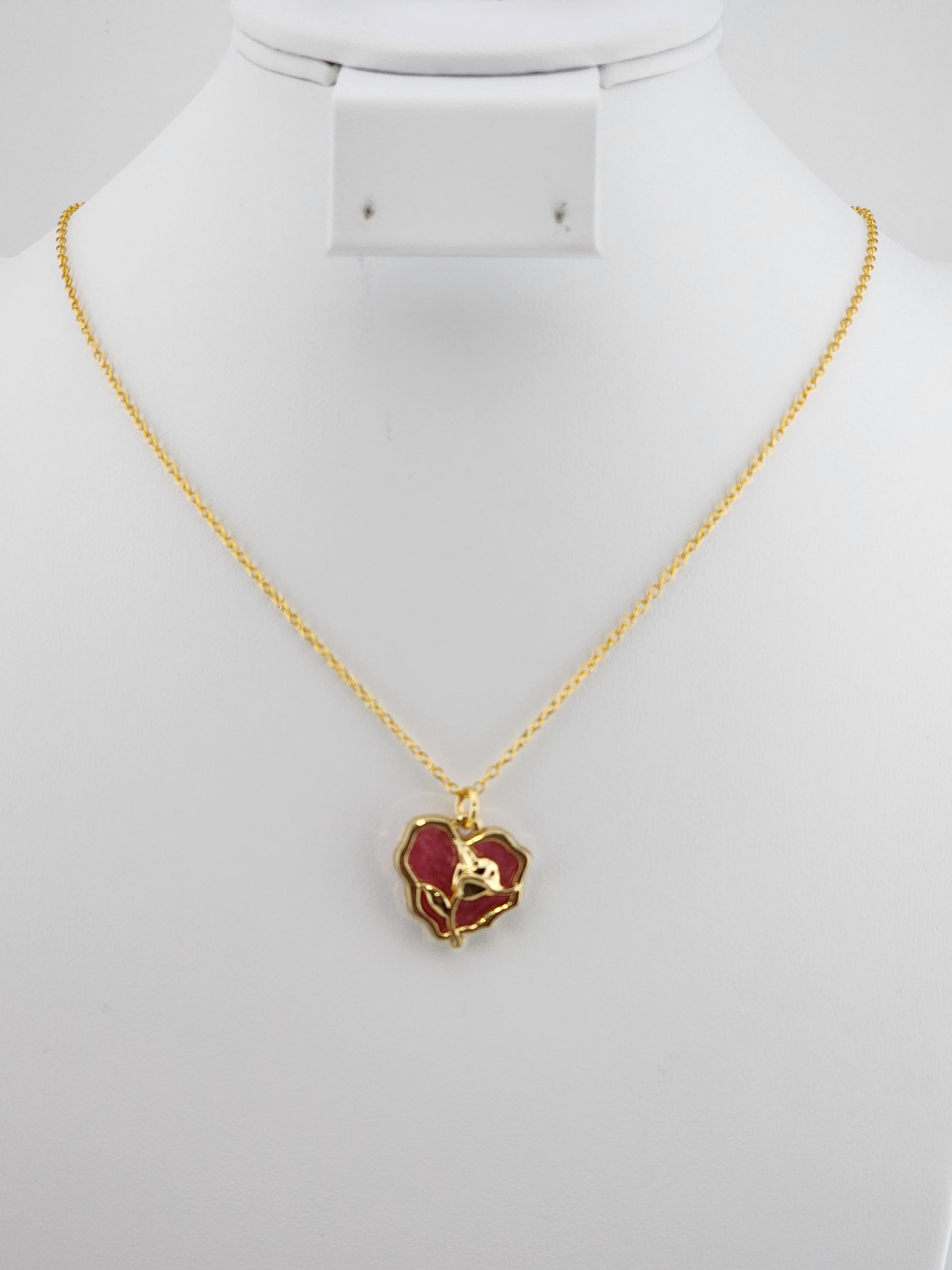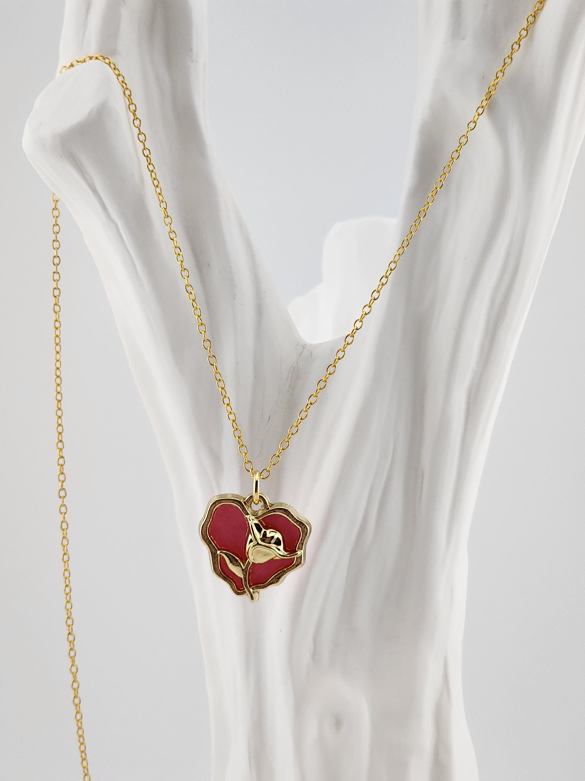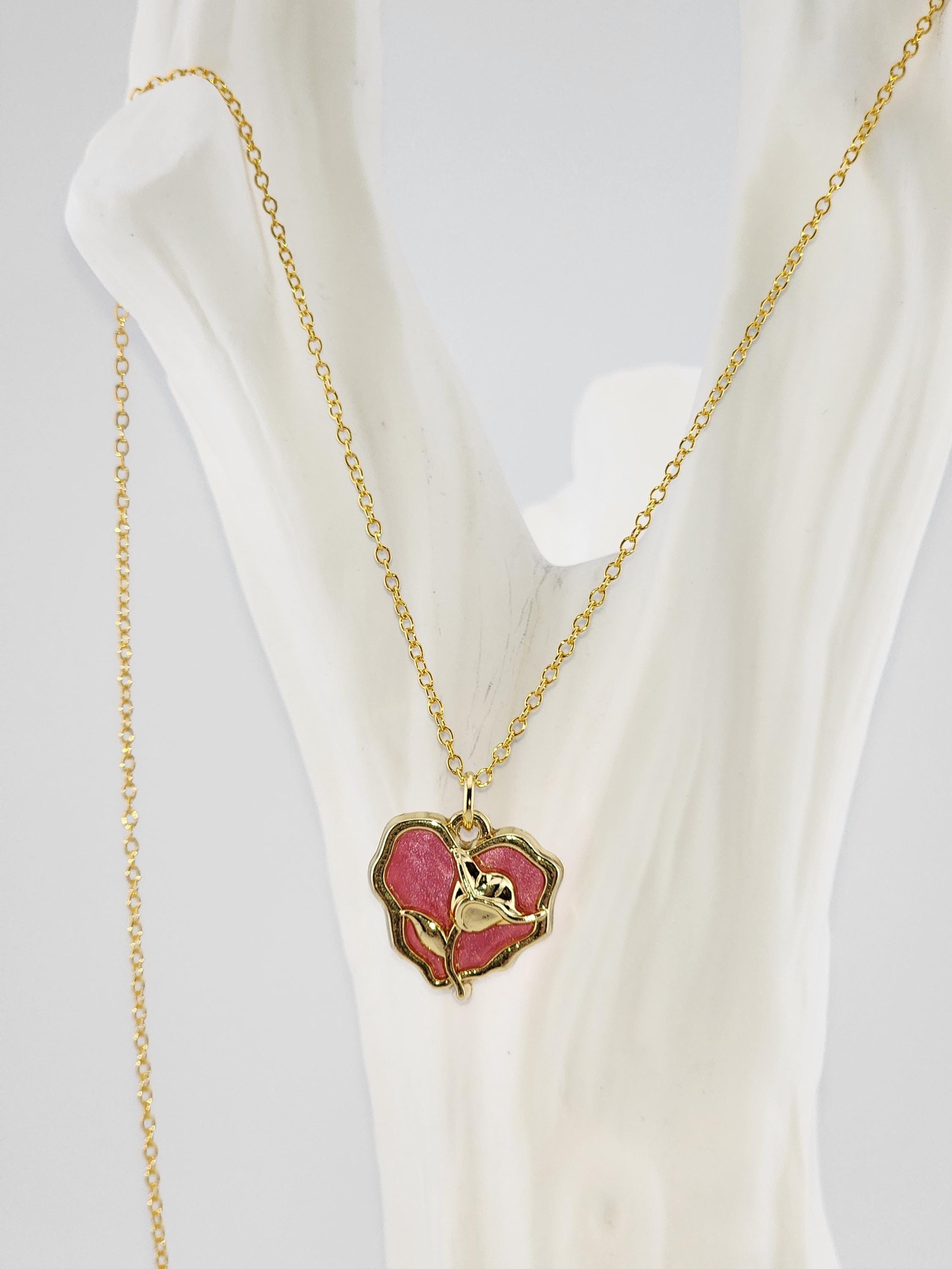 I made this necklace using gold over sterling silver chain. It has an extender making it adjustable from 21"-23" in length. The pendant is a wavy heart and gold rose charm filled with rose colored resin shell. It hangs from an 18k gold connecting ring. * Your purchase will arrive in pretty packaging * Shipping is included