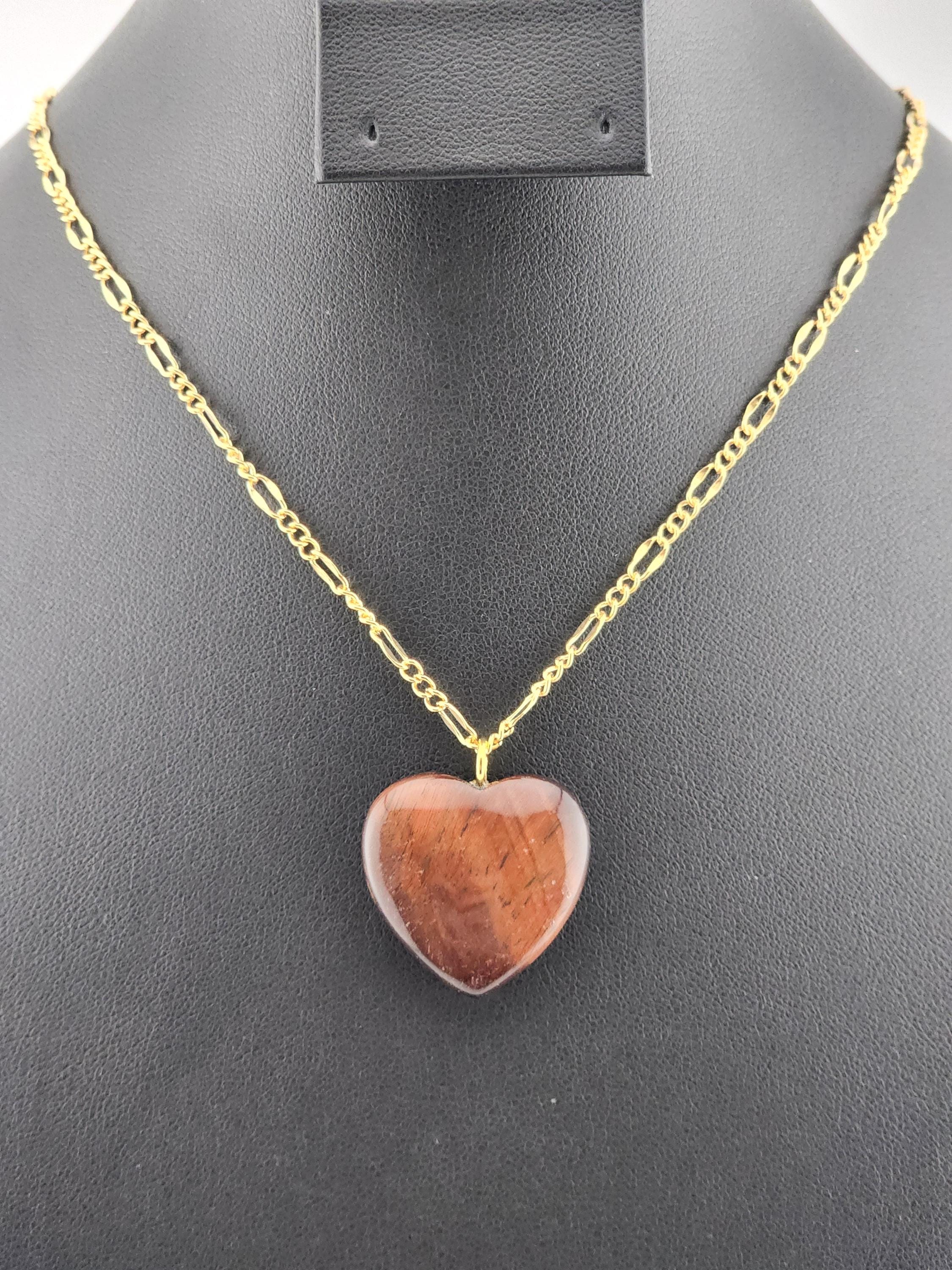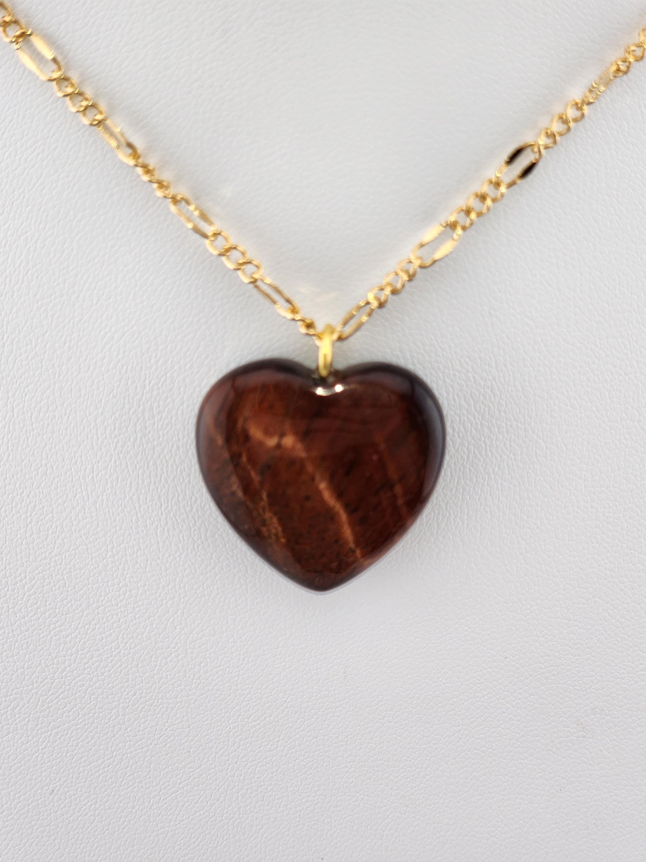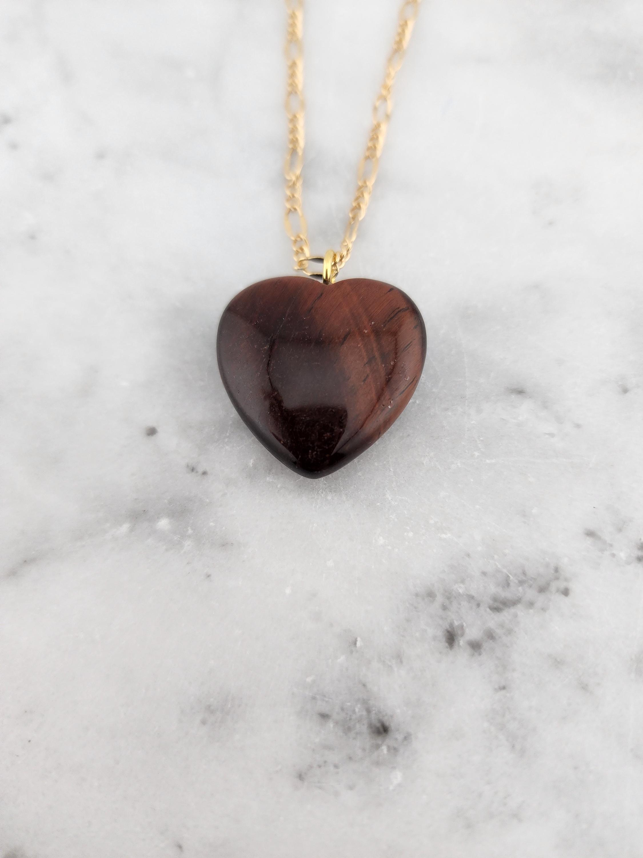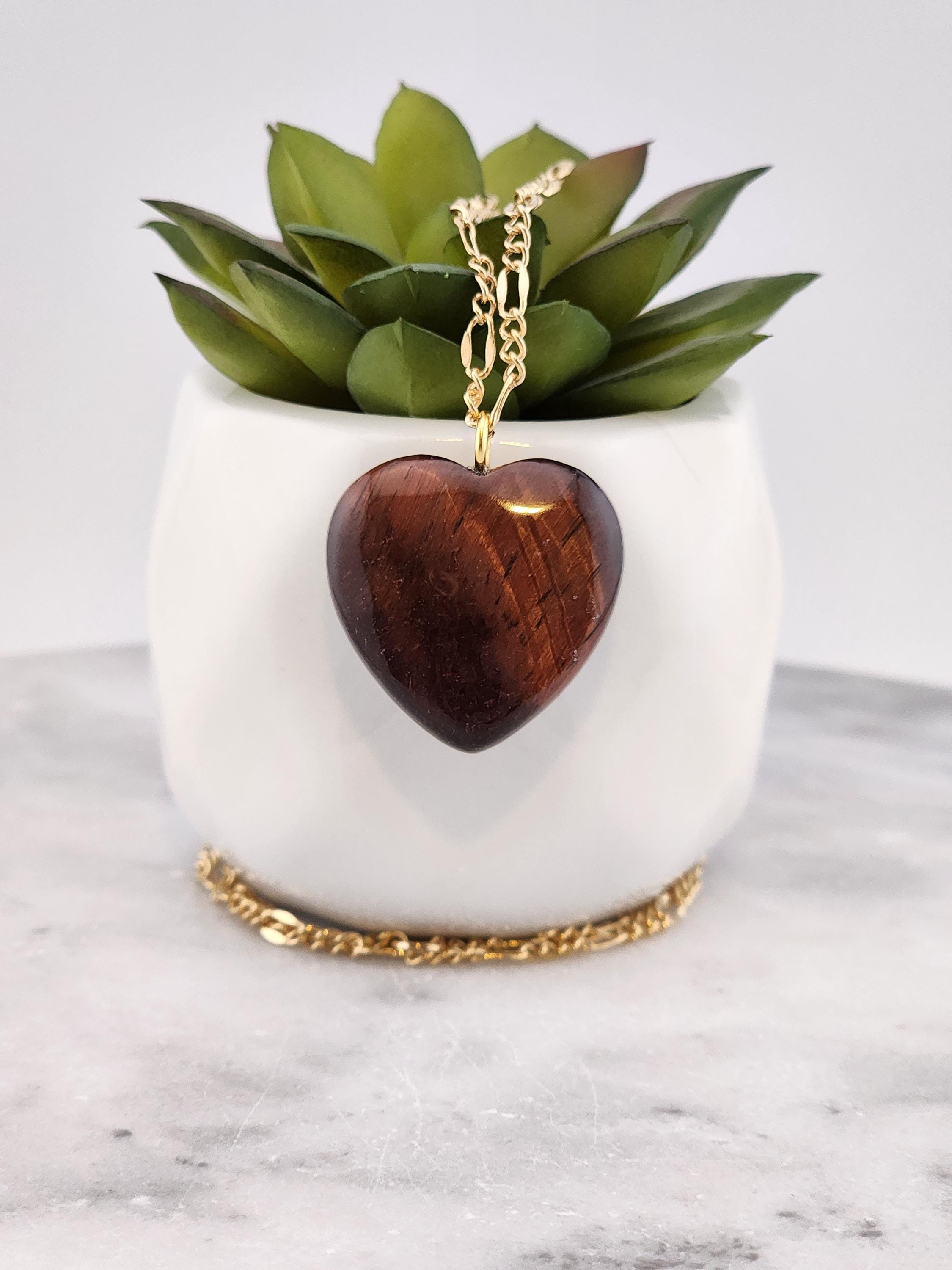 I made this necklace using tarnish resistant 18k gold plated lip chain that has an extender chain making it adjustable from 20"-22" in length. The pendant is a natural red tiger's eye heart shaped gemstone. There are 18k gold plated connecting rings. * Your purchase will arrive in pretty packaging >>>>>>>>>>>>>>>>>>>>>>>>>>>>>>>>>>>>>>>>>>>>>>>>>>>>>>>>>>>>>>>>>>>>>>>>>>>>> PROPERTIES OF RED TIGER'S EYE: - Red Tiger's Eye is metaphysically known for boosting courage, confidence, and motivation, grounding fiery energy with its connection to the Root Chakra, offering protection, enhancing focus for long projects, and balancing passion with practicality, drawing on Earth's stability and Fire's drive for action and self-worth. It's believed to calm nerves, ignite inner strength, and help overcome fear, making it a powerful stone for manifesting goals and increasing vitality. OR, SO THEY SAY...