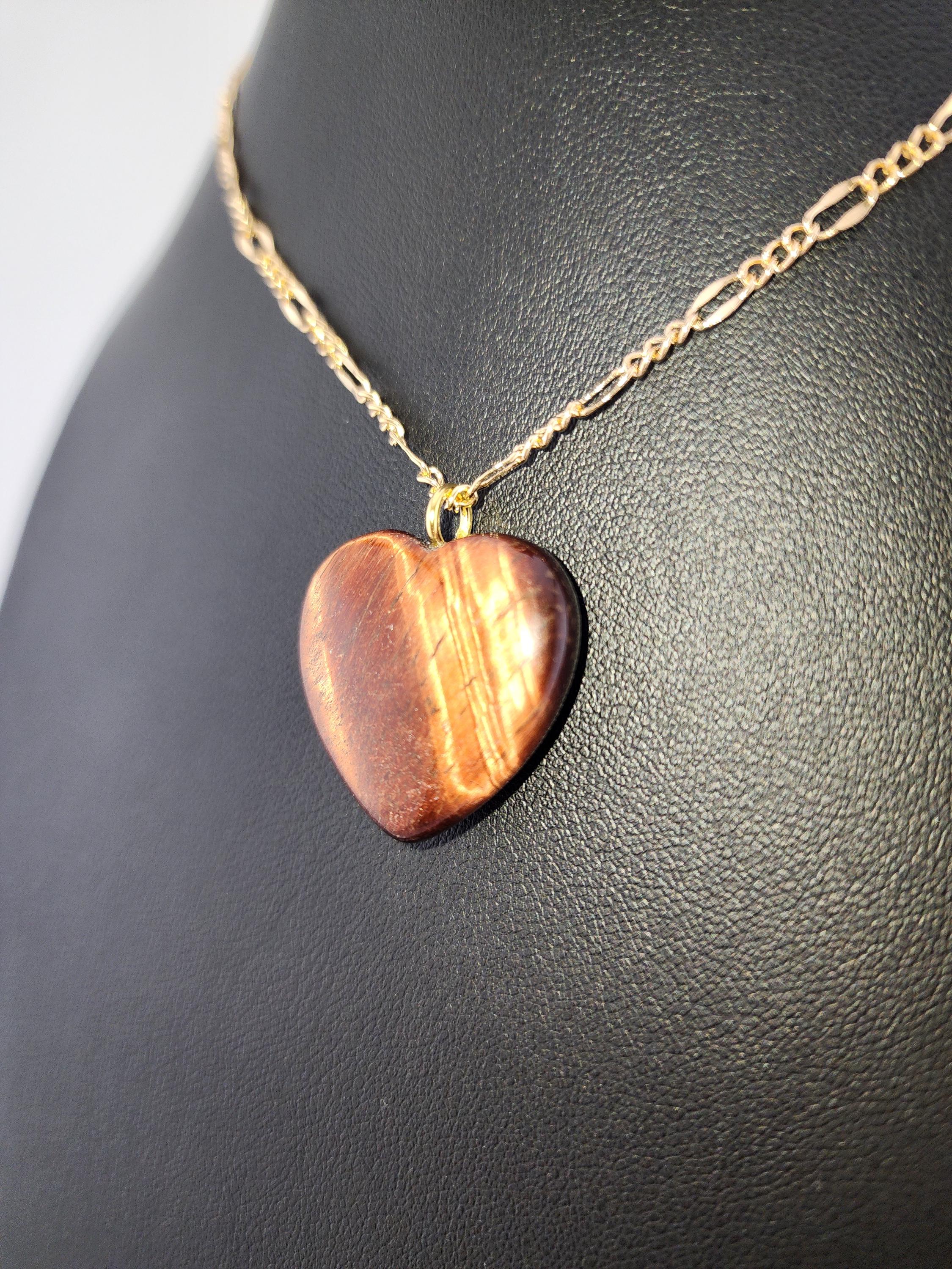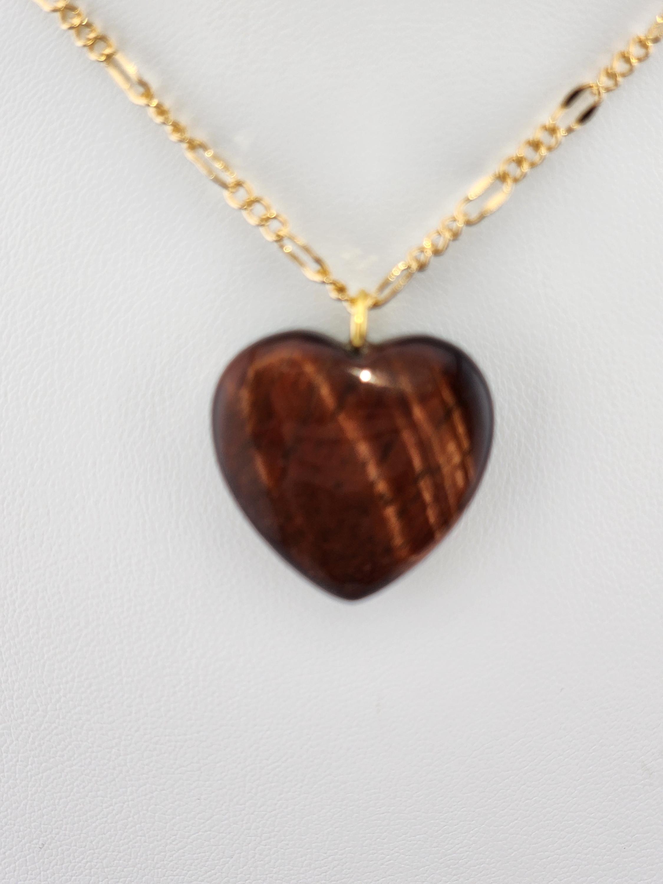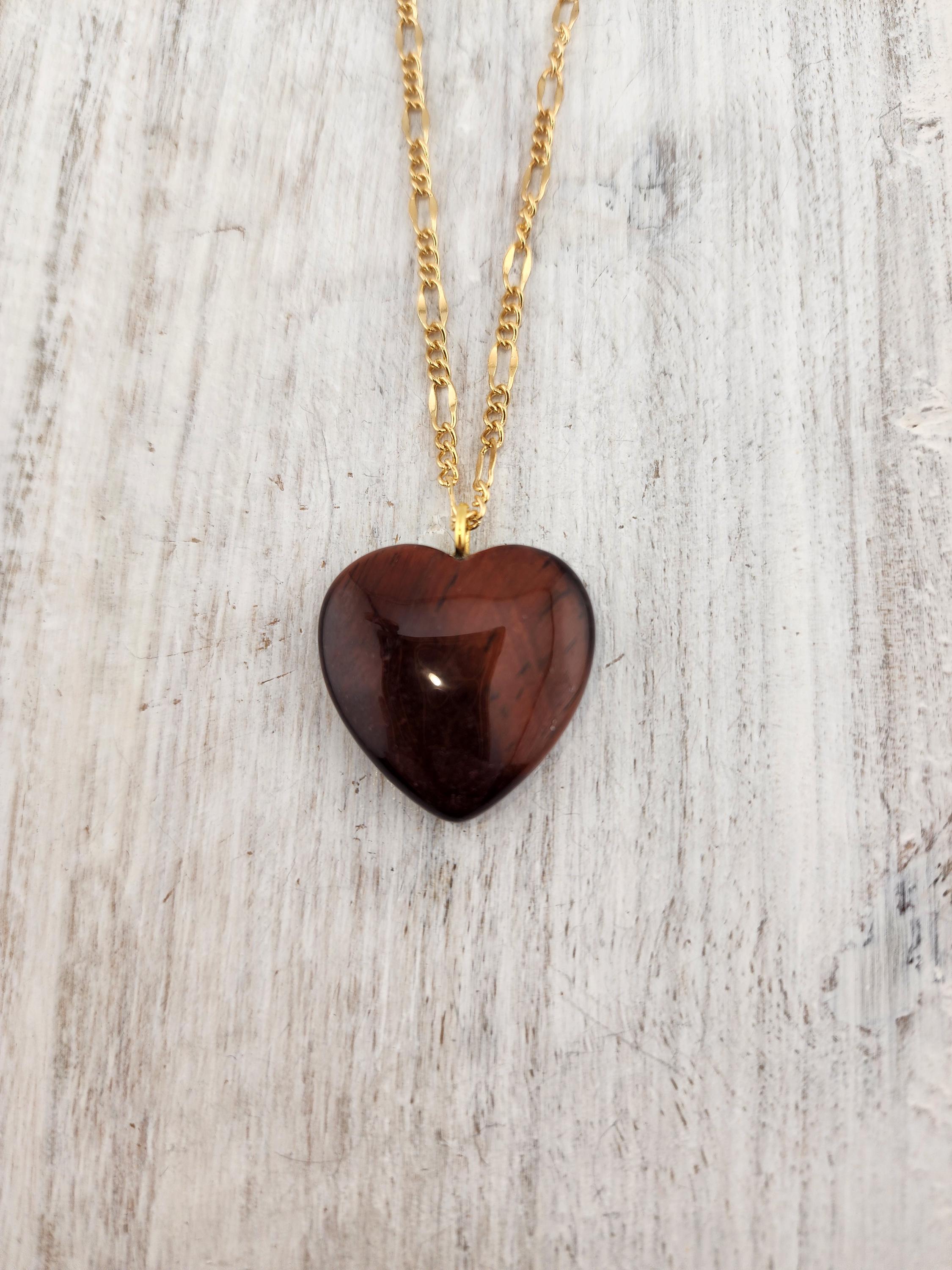 I made this necklace using tarnish resistant 18k gold plated lip chain that has an extender chain making it adjustable from 20"-22" in length. The pendant is a natural red tiger's eye heart shaped gemstone. There are 18k gold plated connecting rings. * Your purchase will arrive in pretty packaging >>>>>>>>>>>>>>>>>>>>>>>>>>>>>>>>>>>>>>>>>>>>>>>>>>>>>>>>>>>>>>>>>>>>>>>>>>>>> PROPERTIES OF RED TIGER'S EYE: - Red Tiger's Eye is metaphysically known for boosting courage, confidence, and motivation, grounding fiery energy with its connection to the Root Chakra, offering protection, enhancing focus for long projects, and balancing passion with practicality, drawing on Earth's stability and Fire's drive for action and self-worth. It's believed to calm nerves, ignite inner strength, and help overcome fear, making it a powerful stone for manifesting goals and increasing vitality. OR, SO THEY SAY...