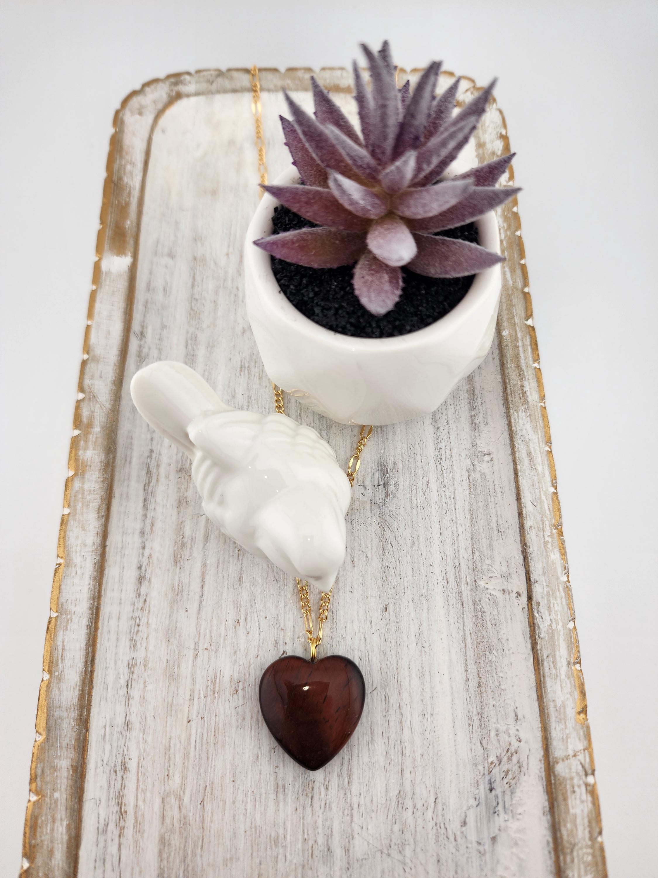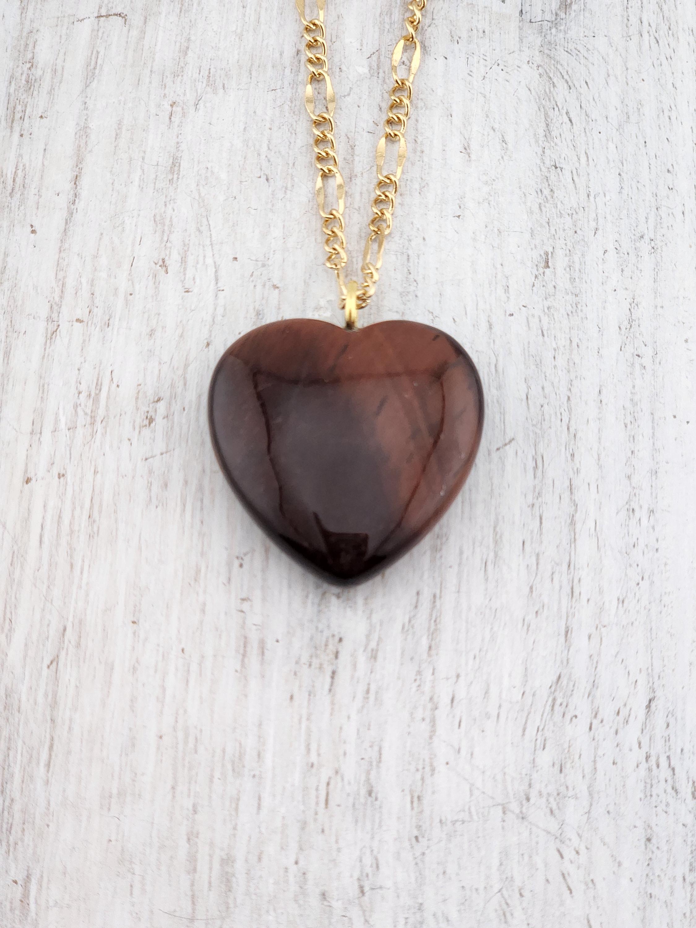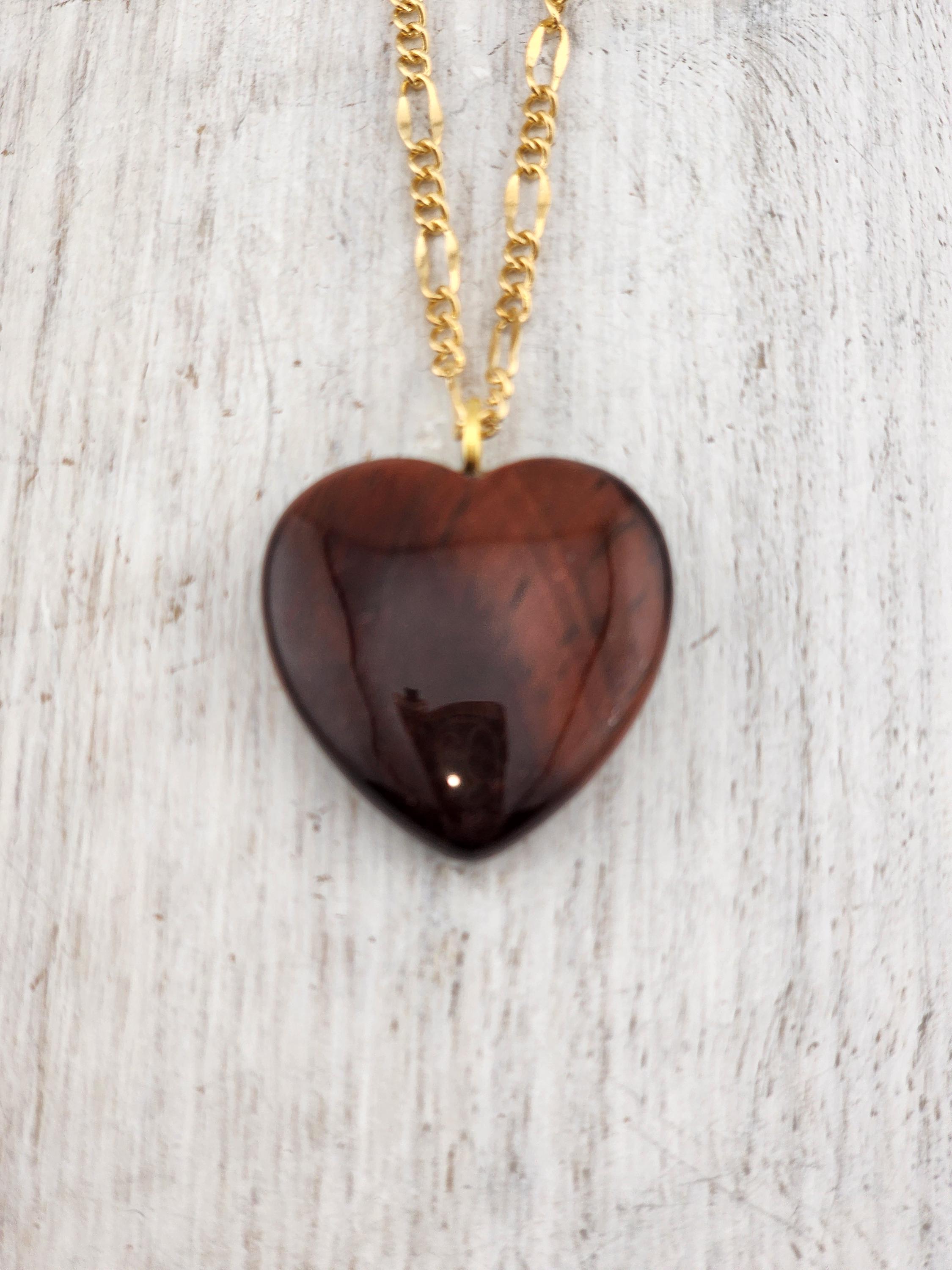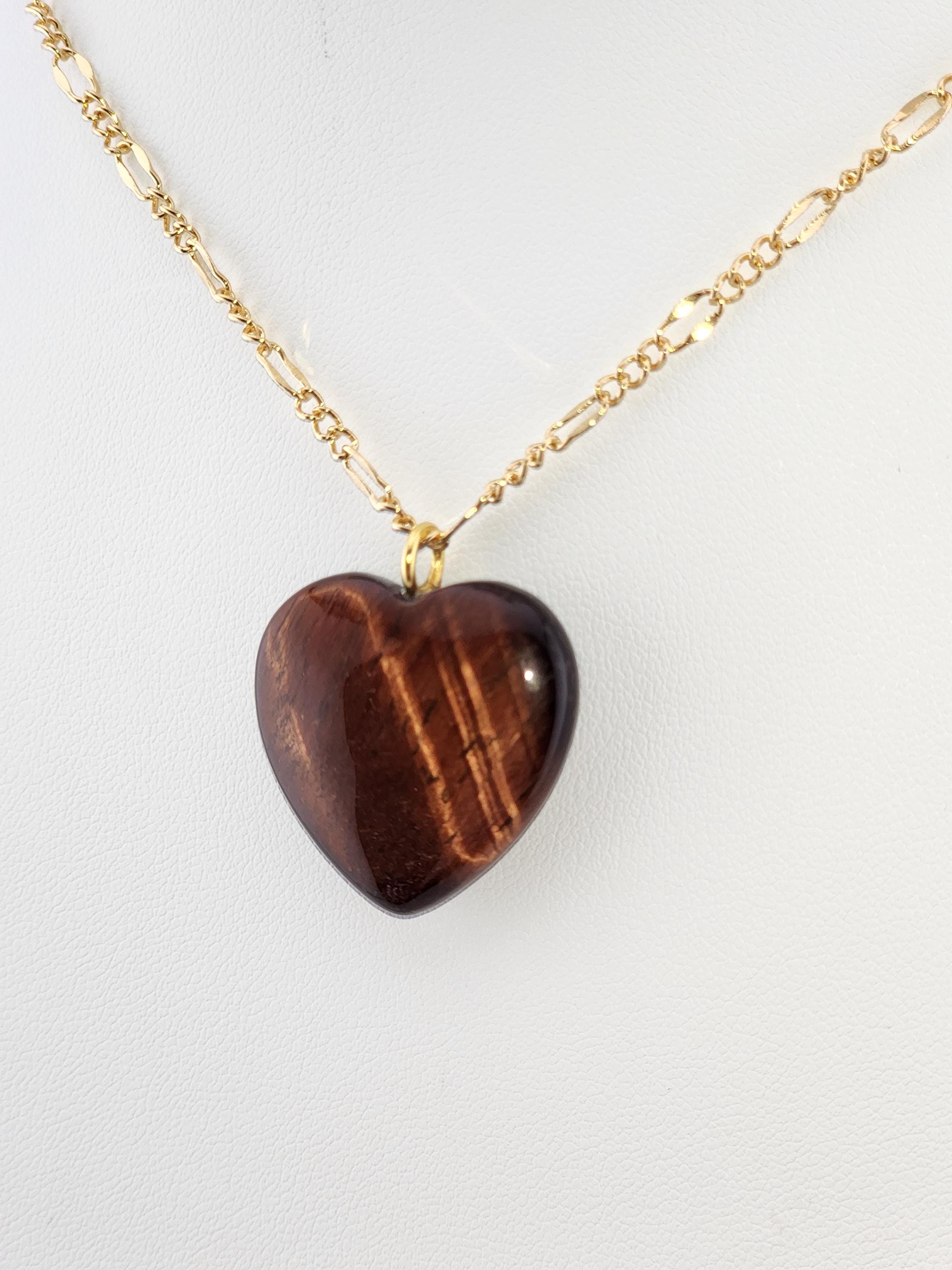 I made this necklace using tarnish resistant 18k gold plated lip chain that has an extender chain making it adjustable from 20"-22" in length. The pendant is a natural red tiger's eye heart shaped gemstone. There are 18k gold plated connecting rings. * Your purchase will arrive in pretty packaging >>>>>>>>>>>>>>>>>>>>>>>>>>>>>>>>>>>>>>>>>>>>>>>>>>>>>>>>>>>>>>>>>>>>>>>>>>>>> PROPERTIES OF RED TIGER'S EYE: - Red Tiger's Eye is metaphysically known for boosting courage, confidence, and motivation, grounding fiery energy with its connection to the Root Chakra, offering protection, enhancing focus for long projects, and balancing passion with practicality, drawing on Earth's stability and Fire's drive for action and self-worth. It's believed to calm nerves, ignite inner strength, and help overcome fear, making it a powerful stone for manifesting goals and increasing vitality. OR, SO THEY SAY...