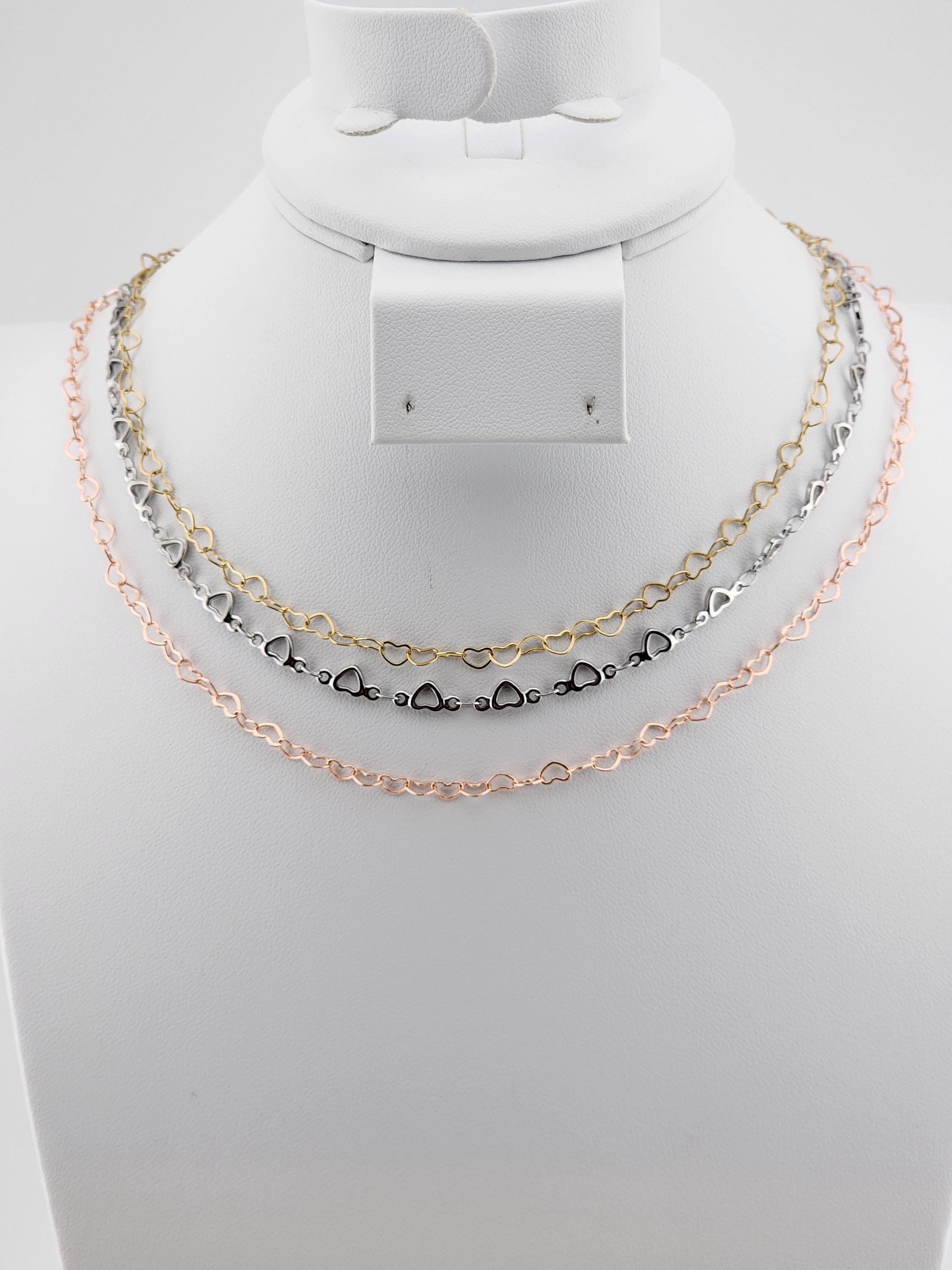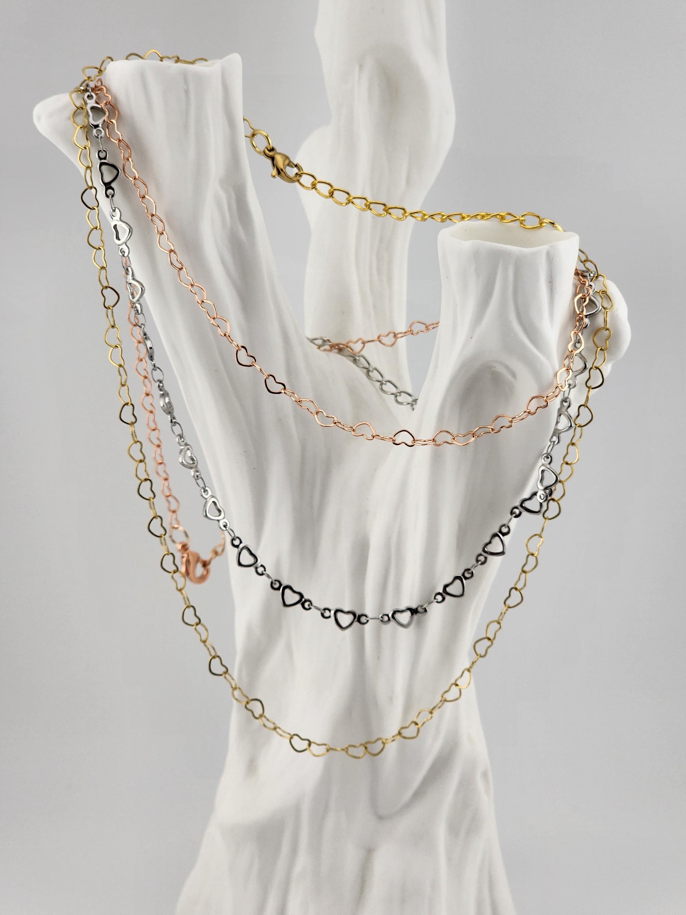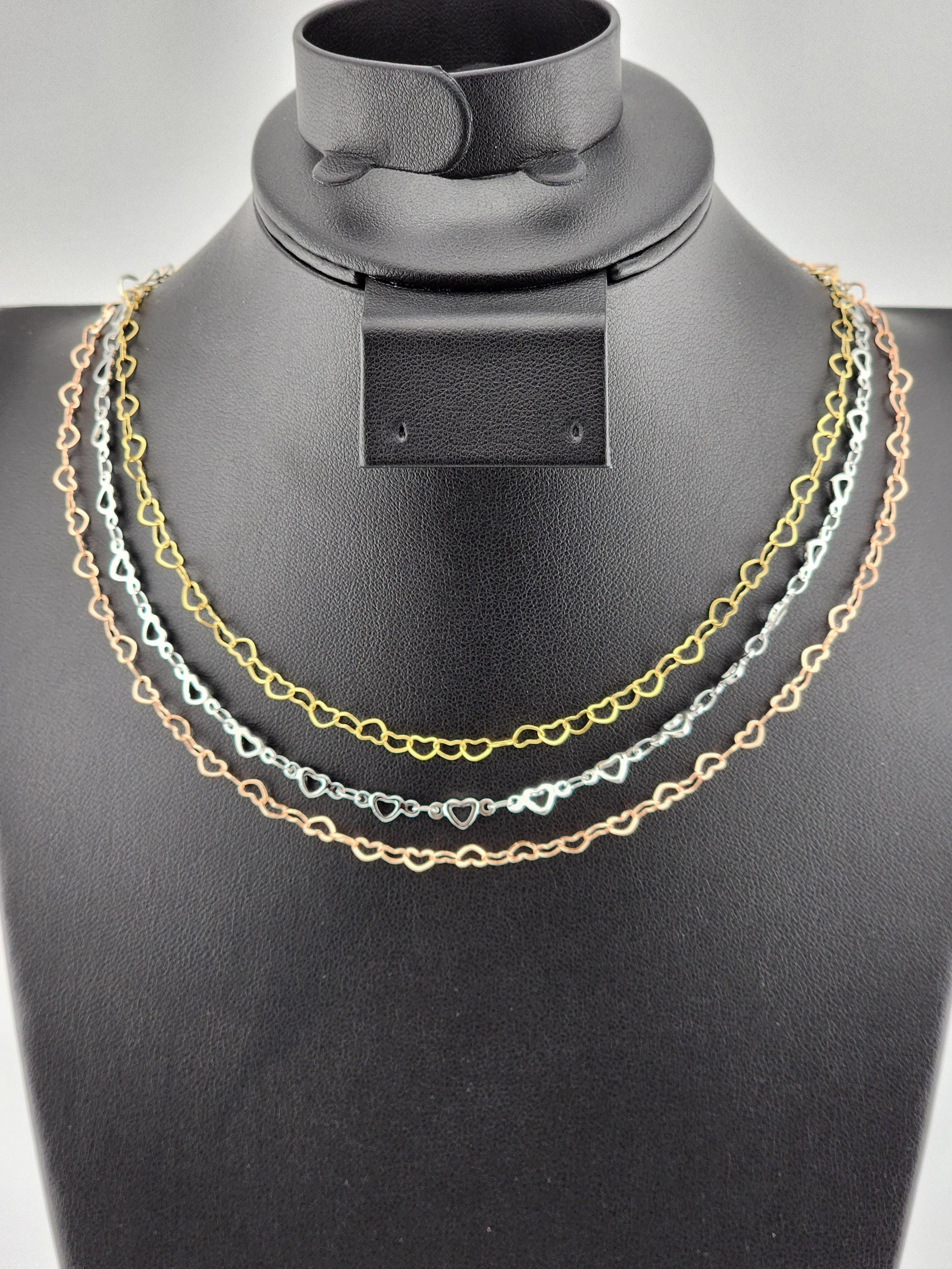 I made these choker necklaces using open hearts chains in different colors. The necklaces have extenders making them adjustable from 14"-16" in length. YOUR CHOICES OF COLORS ARE: #1- Yellow Gold with 18k gold plated connecting rings #2- Silver #3- Rose Gold with sterling silver plated connecting rings